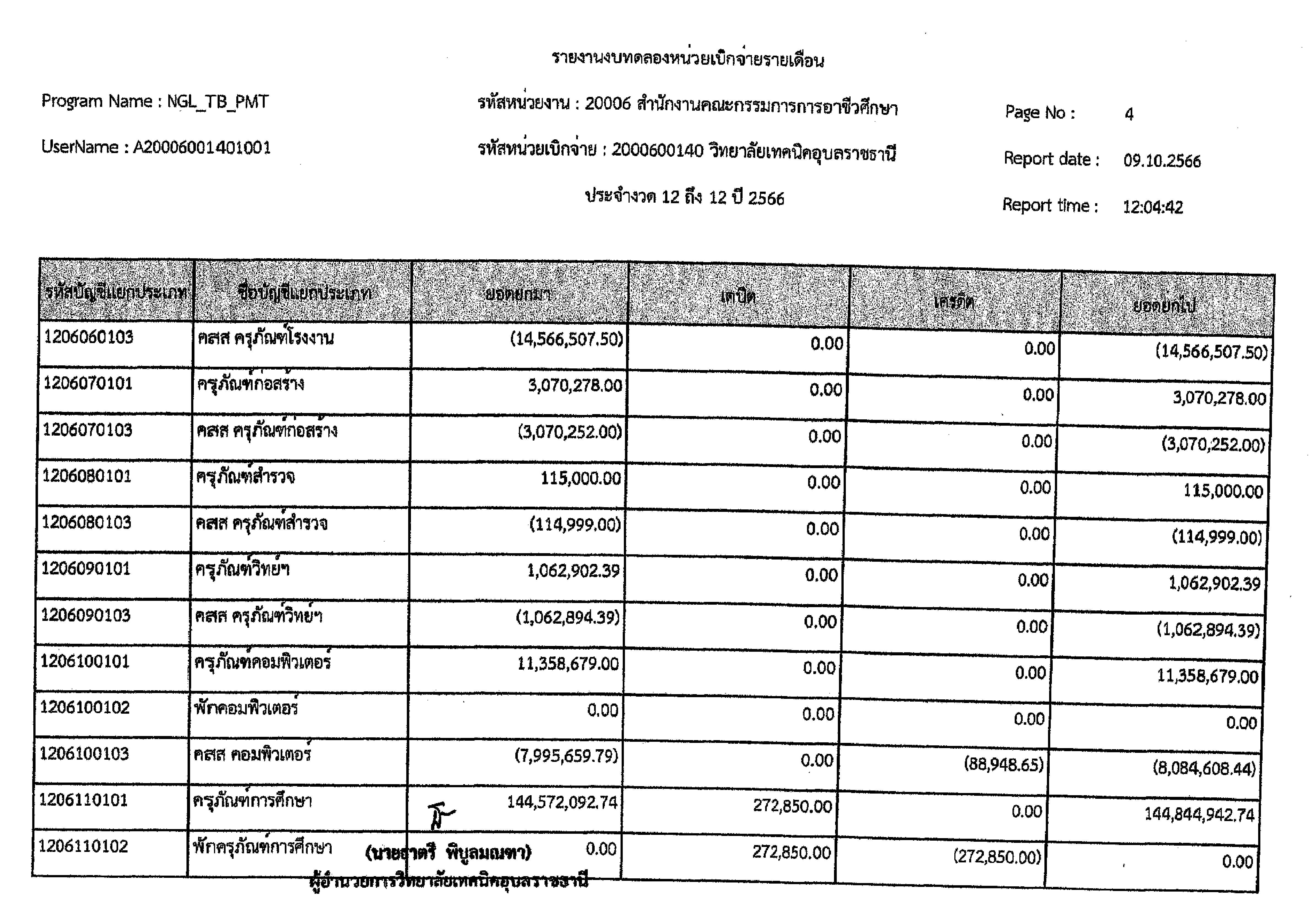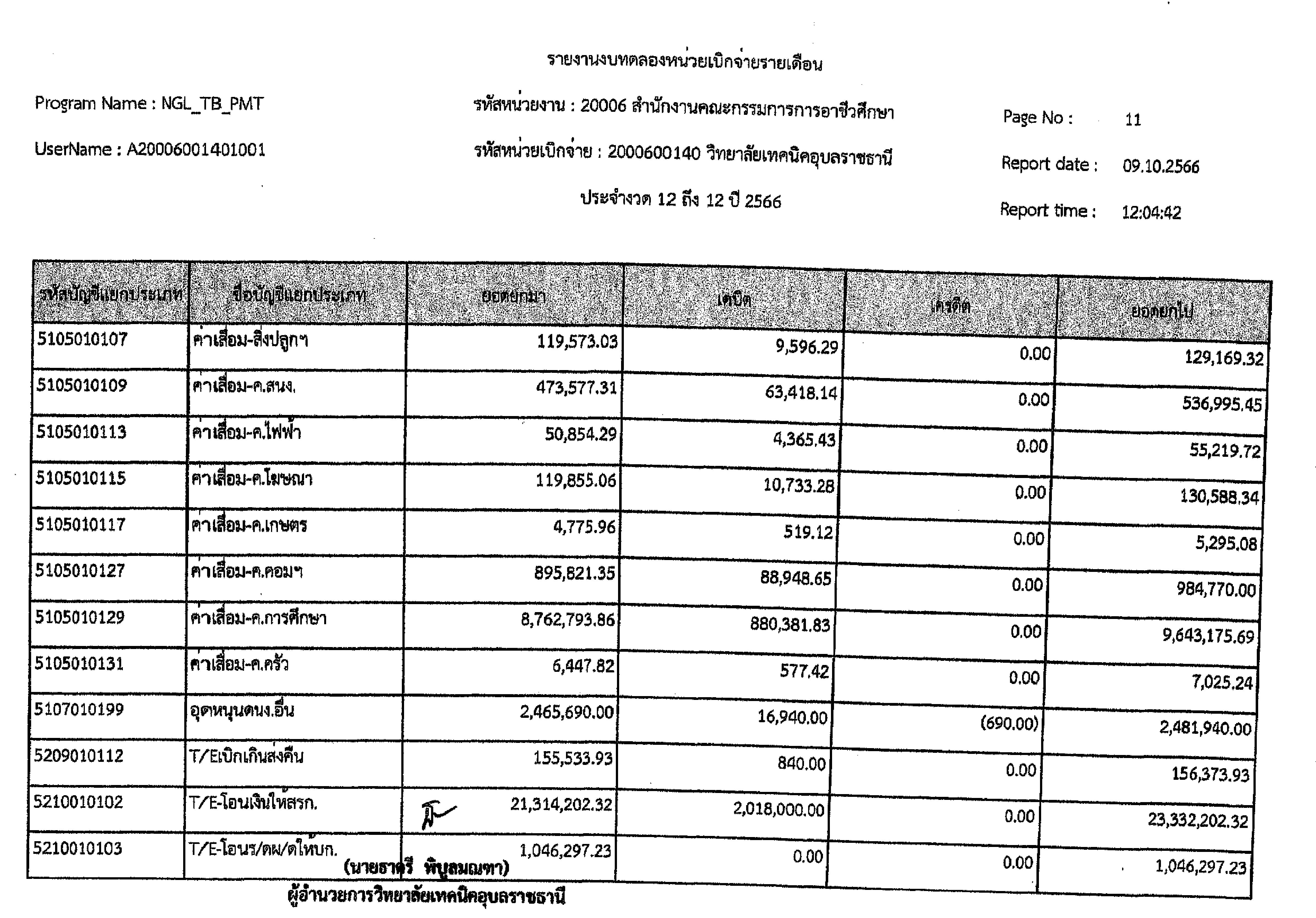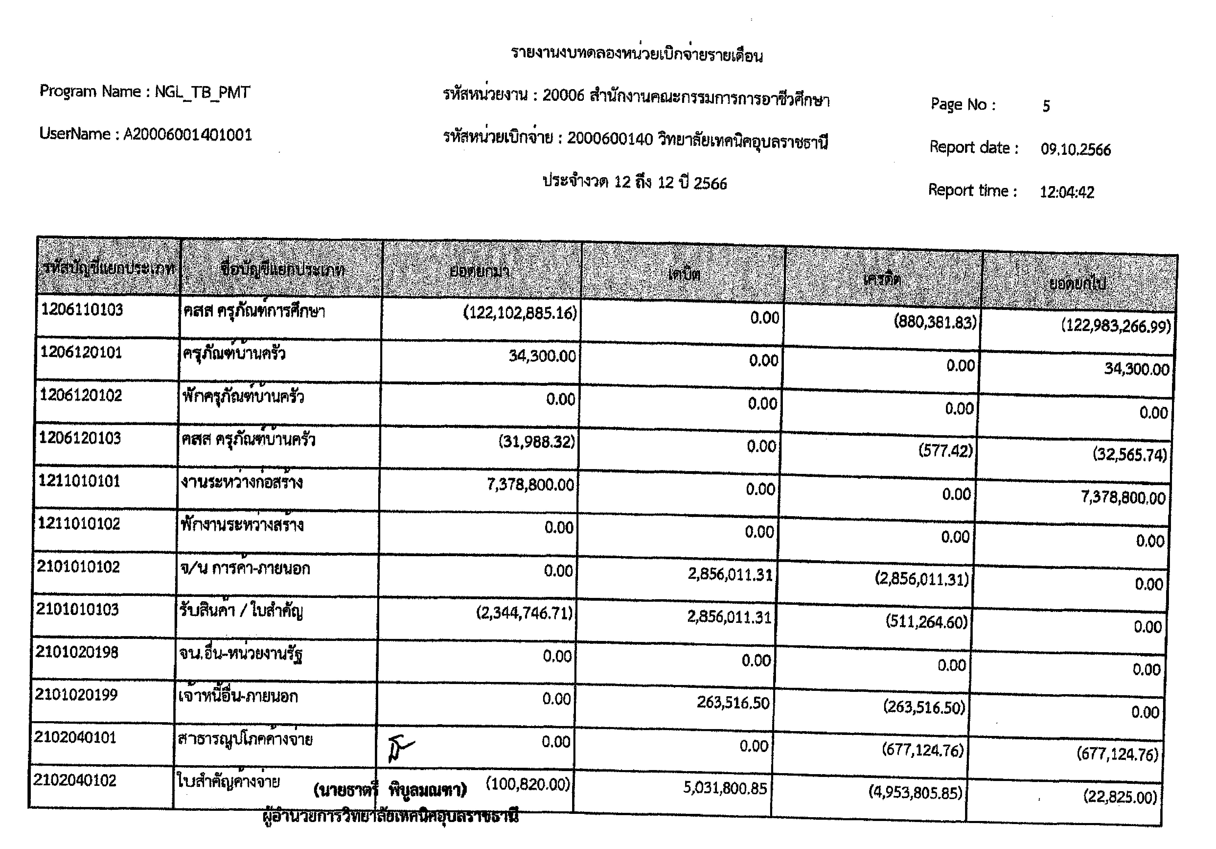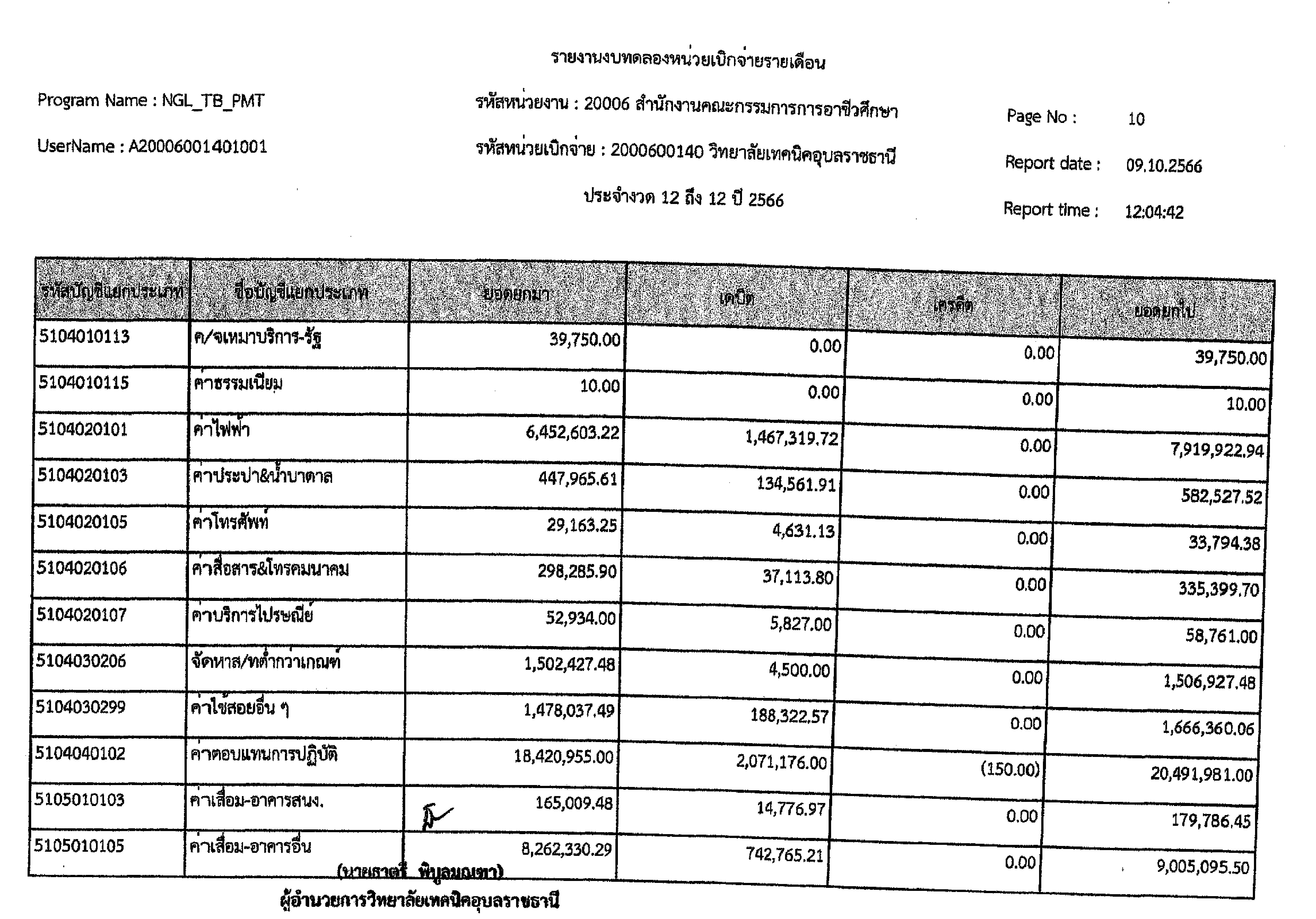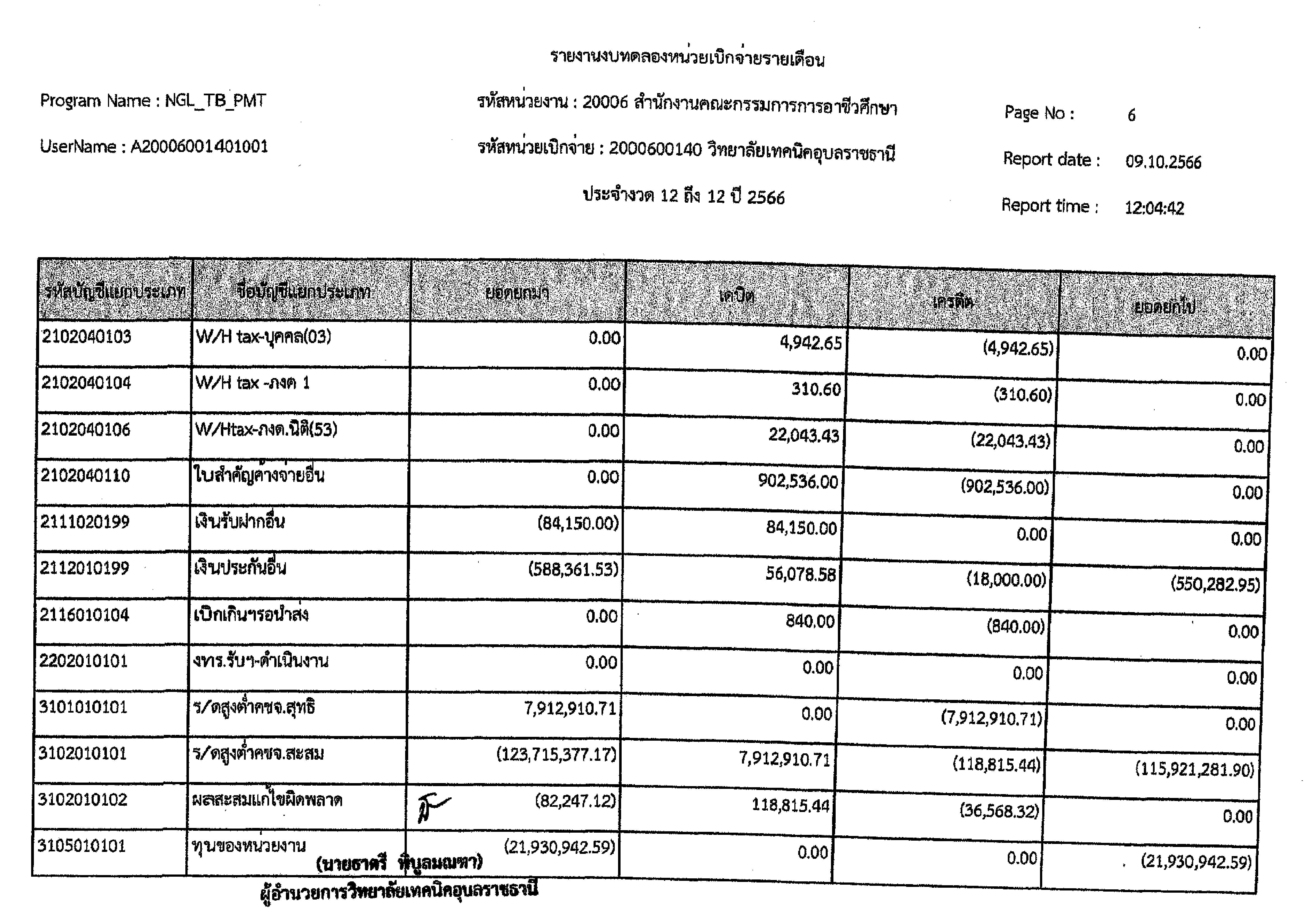 รายงานงบทดลองประจำเดือนกันยายน 2566