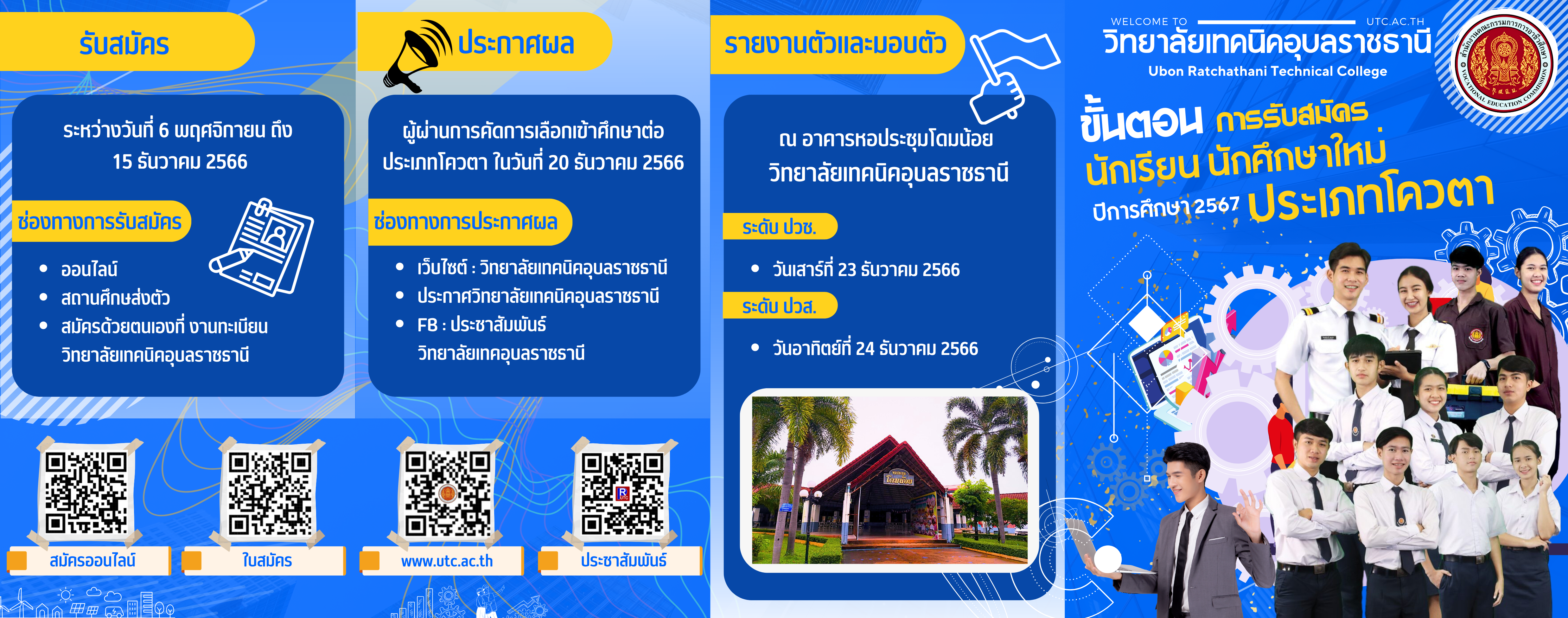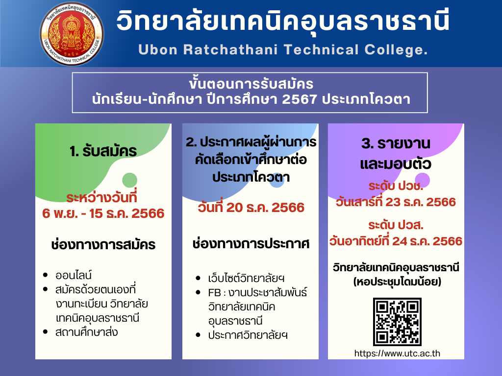 วิทยาลัยเทคนิคอุบลราชธานี กำหนดการรับนักเรียน นักศึกษาเข้าศึกษาต่อ