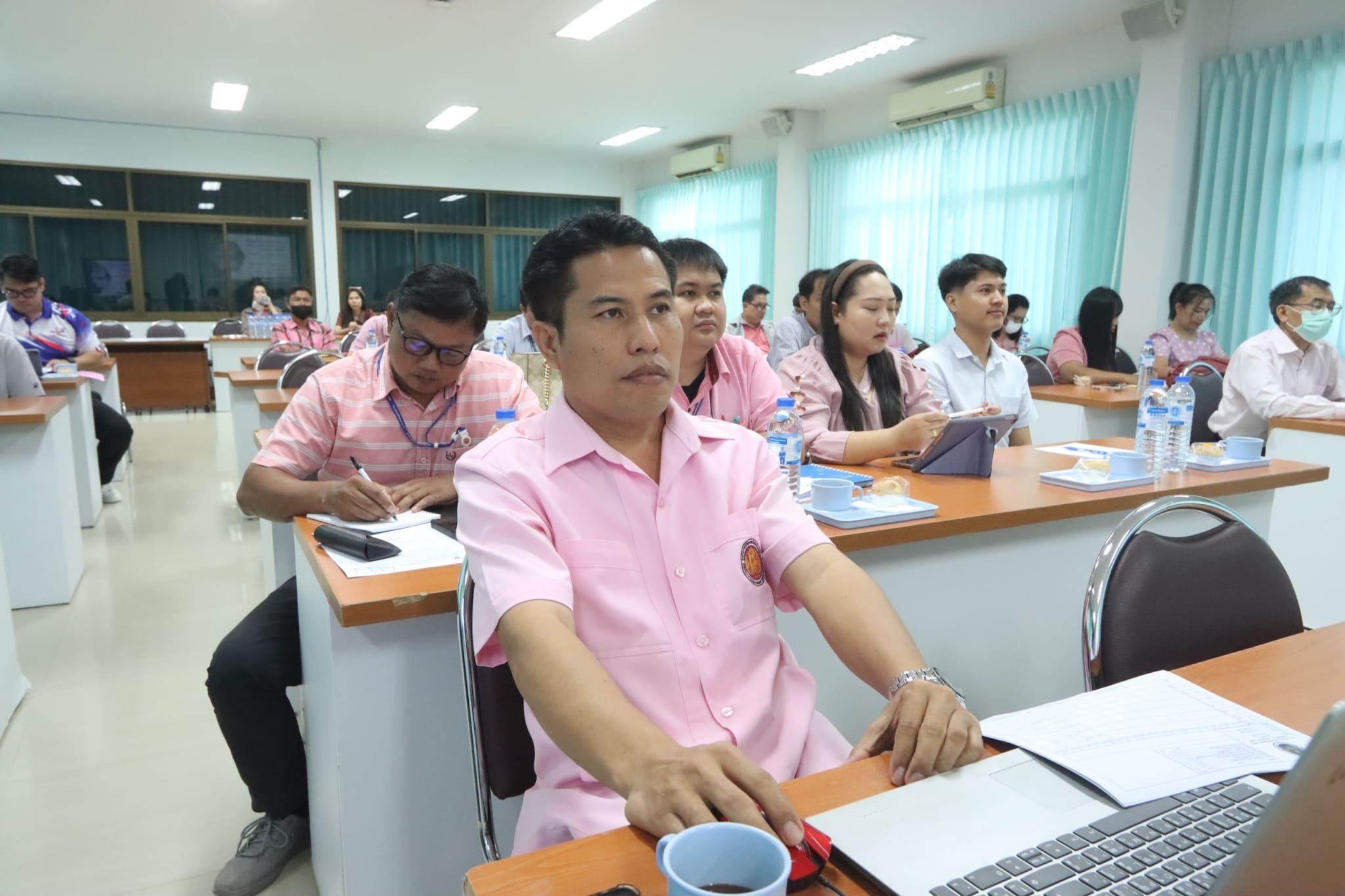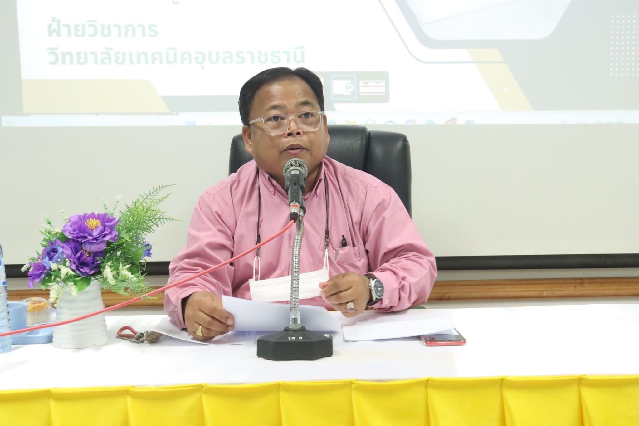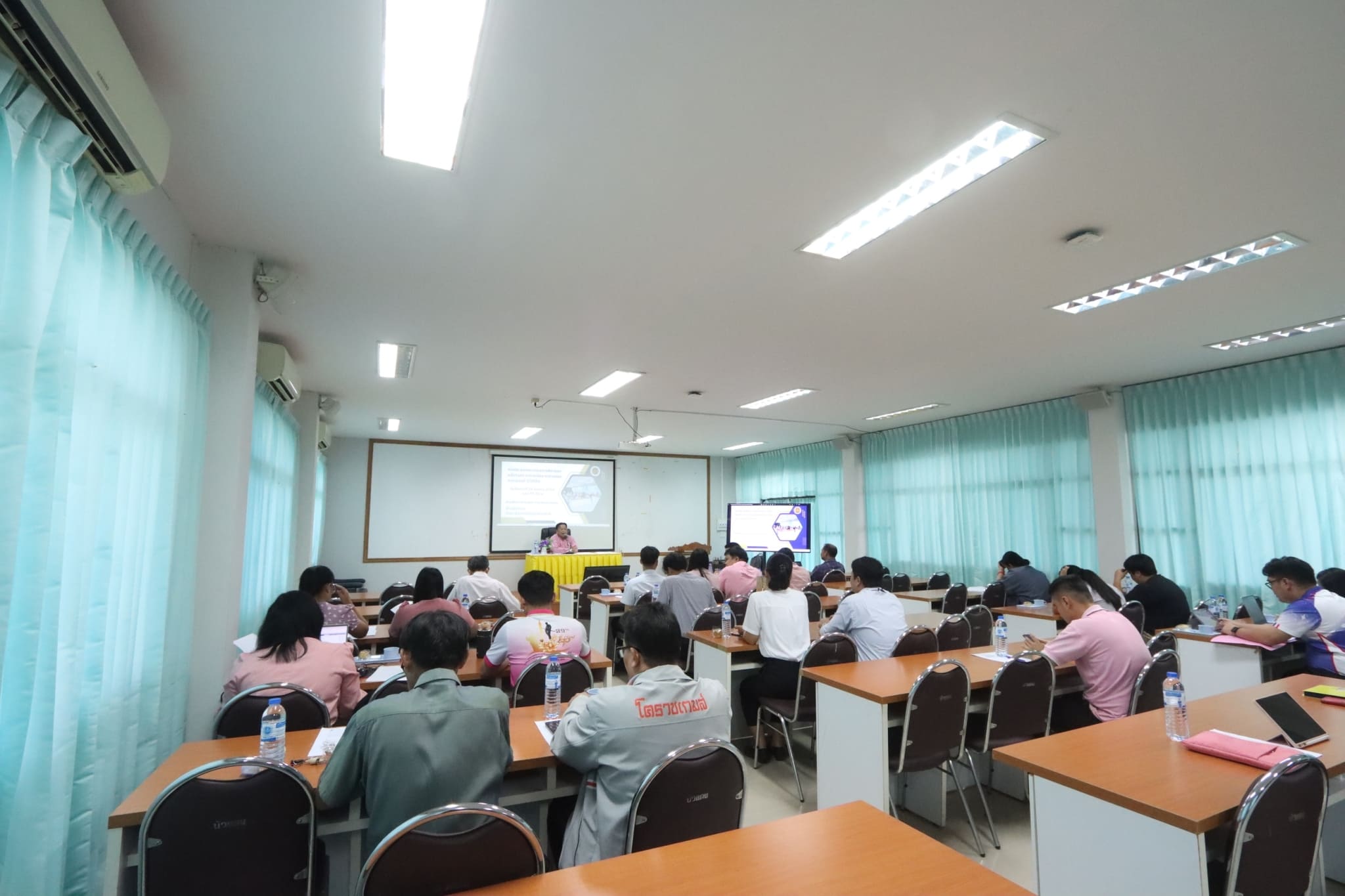 วันที่ ๒๔ ตุลาคม ๒๕๖๖ เวลา ๐๙.๓๐ น. นายธาตรี พิบูลมณฑา ผู้อำนวยการวิทยาลัยเทคนิคอุบลราชธานี มอบหมายให้ นายสุวิชา มั่นยืน รองผู้อำนวยการฝ่ายวิชาการ เป็นประธานในการประชุมคณะกรรมการพิจารณากลั่นกรอง ตารางเรียน ตารางสอน ภาคเรียนที่ ๒ ปีการศึกษา ๒๕๖๖ ณ ห้องประชุมบัวแดง วิทยาลัยเทคนิคอุบลราชธานี โดยมี นายคารมย์ แก้วกันยา หัวหน้างานพัฒนาหลักสูตรการเรียนการสอน พร้อมด้วย หัวหน้าแผนกวิชา หัวหน้างาน ครู และบุคลากรทางการศึกษาที่เกี่ยวข้อง เข้าร่วมการประชุมอย่างพร้อมเพรียง ทั้งนี้เพื่อพิจารณากลั่นกรองความถูกต้องเหมาะสม ตรวจสอบชั่วโมงเรียน และหน่วยกิตให้ถูกต้อง ตามแผนการเรียนของภาคเรียนที่ ๒ ปีการศึกษา ๒๕๖๖ ต่อไป