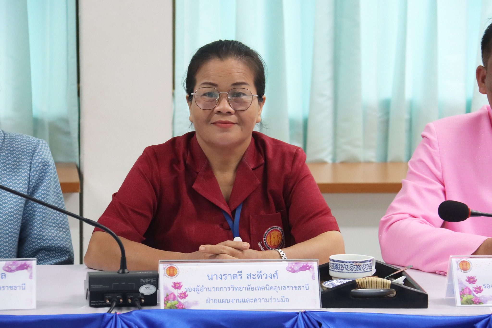 วันที่ ๒๗ ตุลาคม ๒๕๖๖ เวลา ๐๙.๐๐ น. นายธาตรี พิบูลมณฑา ผู้อำนวยการวิทยาลัยเทคนิคอุบลราชธานี ปฏิบัติหน้าที่ ผู้อำนวยการสำนักงานอาชีวศึกษาจังหวัดอุบลราชธานี พร้อมด้วย นางสาวสายฝน สาระผล รองผู้อำนวยการฝ่ายบริหารทรัพยากร นางราตรี สะดีวงศ์ รองผู้อำนวยการฝ่ายแผนงานและความร่วมมือ และนายสุวิชา มั่นยืน รองผู้อำนวยการฝ่ายวิชาการ ให้การต้อนรับคณะนิเทศติดตาม ชุดสร้างสรรค์นวัตกรรมสังคม (Social Innovation Toolkit) ณ ห้องประชุมบัวแดง ซึ่งนำโดย นางสาววิลสา พงศธร เจ้าหน้าที่องค์การยูนิเซฟแห่งประเทศไทย พร้อมด้วยคณะหน่วยศึกษานิเทศก์ และคณะสำนักนโยบายและแผนการอาชีวศึกษา สำนักงานคณะกรรมการการอาชีวศึกษา ในการนี้มี นายชารินทร์ ลาฤทธิ์ และนายกิตติพงศ์ จันทร์งาม รองผู้อำนวยการวิทยาลัยการอาชีพศีขรภูมิ ร่วมให้การต้อนรับ นอกจากนี้มี นายณัฐพล เทพมา หัวหน้าแผนกวิชาเทคโนโลยีคอมพิวเตอร์ นางณชิตา เถาว์โท หัวหน้าสำนักงานอาชีวศึกษาจังหวัดอุบลราชธานี นายทรงศักดิ์ สัตนาโค หัวหน้างานอาชีวศึกษาระบบทวิภาคี และนายนราวัฒน์ เขียวอ่อน หัวหน้างานวิทยบริการและห้องสมุด ร่วมให้การต้อนรับอย่างพร้อมเพรียง ทั้งนี้เพื่อออกแบบเครื่องมือวัดประเมินผลการใช้เครื่องมือชุดสร้างสรรค์นวัตกรรมสังคมแก่ผู้บริหารและบุคลากรของสำนักงานคณะกรรมการการอาชีวศึกษา ซึ่งผู้บริหารและบุคลากรดังกล่าวสามารถนำไปประยุกต์ใช้กับการสอนได้ต่อไป