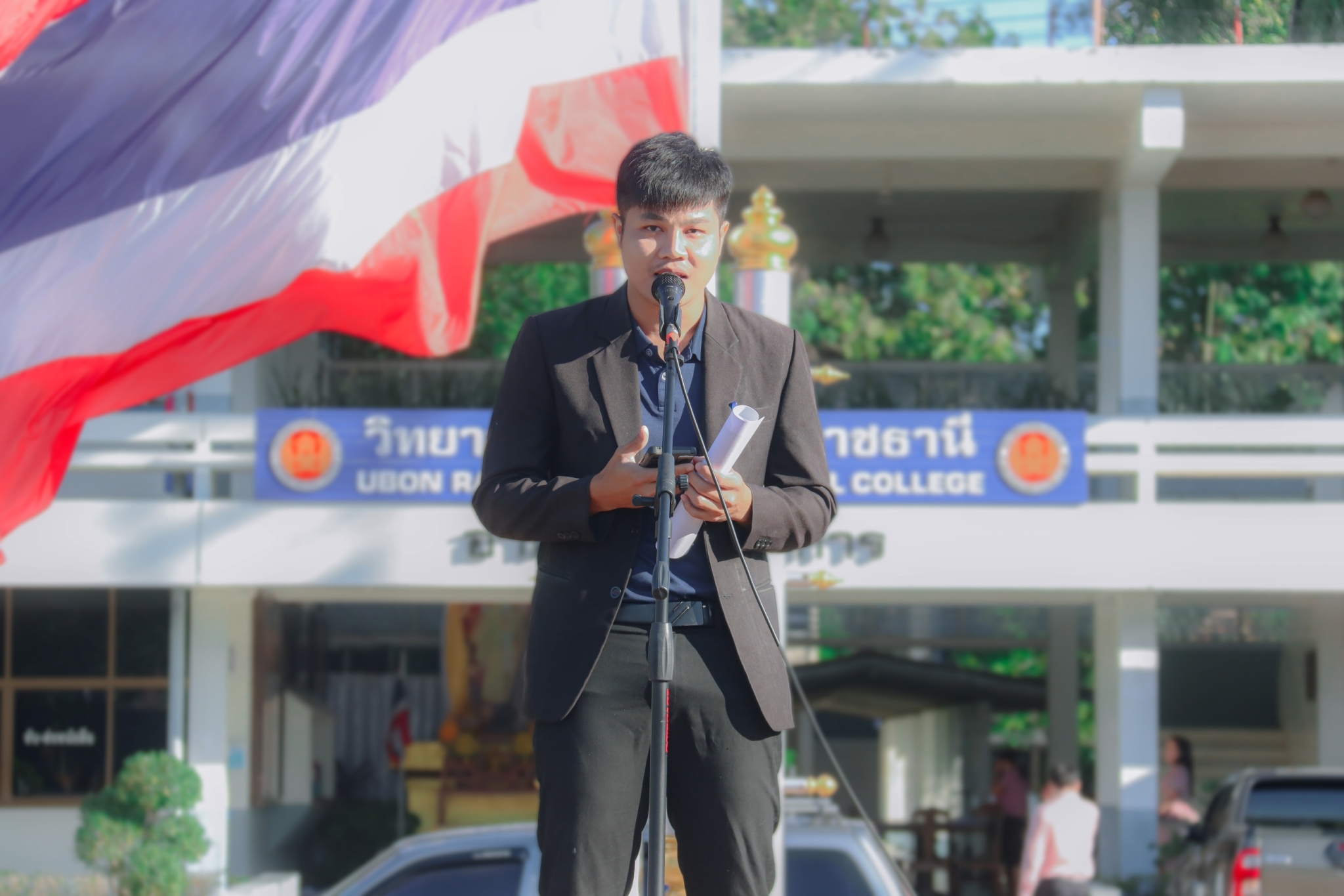 วันที่ ๓๑ ตุลาคม ๒๕๖๖ เวลา ๐๗.๓๐ น. นายธาตรี พิบูลมณฑา ผู้อำนวยการวิทยาลัยเทคนิคอุบลราชธานี มอบหมายให้ นางสาวสายฝน สาระผล รองผู้อำนวยการฝ่ายบริหารทรัพยากร กล่าวให้โอวาทแก่นักเรียน นักศึกษา ณ ลานกิจกรรมหน้าเสาธง โดยได้เน้นย้ำเรื่องการลงทะเบียนเรียนล่าช้า ความรับผิดชอบต่อหน้าที่ของการเป็นนักเรียน นักศึกษาอีกด้วย นอกจากนี้มีนายสรรพสิทธิ์ ละออเอี่ยม หัวหน้างานปกครอง ได้ประชาสัมพันธ์เกี่ยวกับเรื่องโทษของการดื่มน้ำกระท่อมในสถานศึกษา และการครอบครองบุหรี่ไฟฟ้า โดยมี นางราตรี สะดีวงศ์ รองผู้อำนวยการฝ่ายแผนงานและความร่วมมือ นายไวพจน์ ศรีธัญ รองผู้อำนวยการฝ่ายพัฒนากิจการนักเรียนนักศึกษา นายสุวิชา มั่นยืน รองผู้อำนวยการฝ่ายวิชาการ นำคณะครู บุคลากรทางการศึกษา และนักเรียน นักศึกษา เข้าร่วมกิจกรรมอย่างพร้อมเพรียง