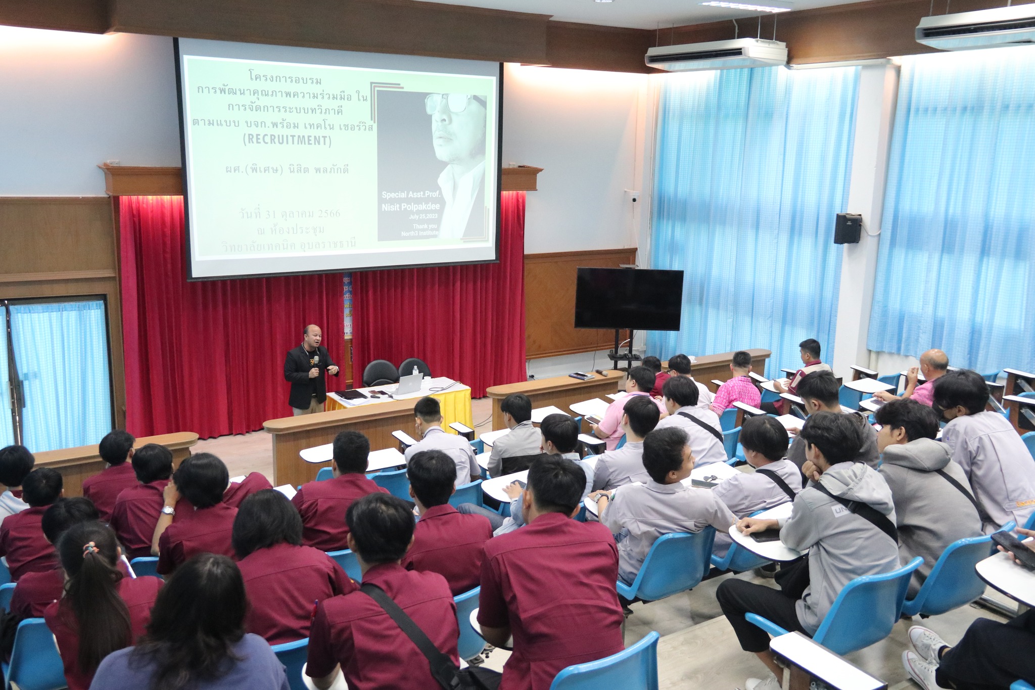 วันที่ ๓๑ ตุลาคม ๒๕๖๖ เวลา ๐๙.๓๐ น. นายธาตรี พิบูลมณฑา ผู้อำนวยการวิทยาลัยเทคนิคอุบลราชธานี มอบหมายให้ นายไวพจน์ ศรีธัญ รองผู้อำนวยการฝ่ายพัฒนากิจการนักเรียนนักศึกษา พร้อมด้วยนายสุวิชา มั่นยืน รองผู้อำนวยการฝ่ายวิชาการ นำคณะครู และนักศึกษา แผนกวิชาช่างไฟฟ้ากำลัง และแผนกวิชาอิเล็กทรอนิกส์ เข้าร่วมรับฟังการนำเสนอโครงการทวิภาคีและคัดเลือกนักศึกษา ณ ห้องประชุมบัวฟ้า ซึ่งจัดโดยบริษัท พร้อม เทคโน เซอร์วิส จำกัด โดยมี ว่าที่ ร.ต.กรีฑาวุฒิ ทนงจิตร หัวหน้างานความร่วมมือ พร้อมด้วยคณะครู และนักศึกษา แผนกวิชาช่างไฟฟ้ากำลัง และแผนกวิชาอิเล็กทรอนิกส์ เข้าร่วมรับฟังการนำเสนออย่างพร้อมเพรียง ทั้งนี้เพื่อฝึกทักษะประสบการณ์วิชาชีพกับสถานประกอบการอย่างต่อเนื่องเป็นระยะเวลา 1 ปี โดยบริษัทฯ ให้การสนับสนุนเรื่องค่าใช้จ่ายเกี่ยวกับที่พัก ค่าเดินทาง และมีรายได้ตลอดระยะเวลาการฝึกงาน พร้อมทั้งมีโอกาสเข้าเป็นพนักงานของบริษัทฯ หลังสิ้นสุดโครงการต่อไป