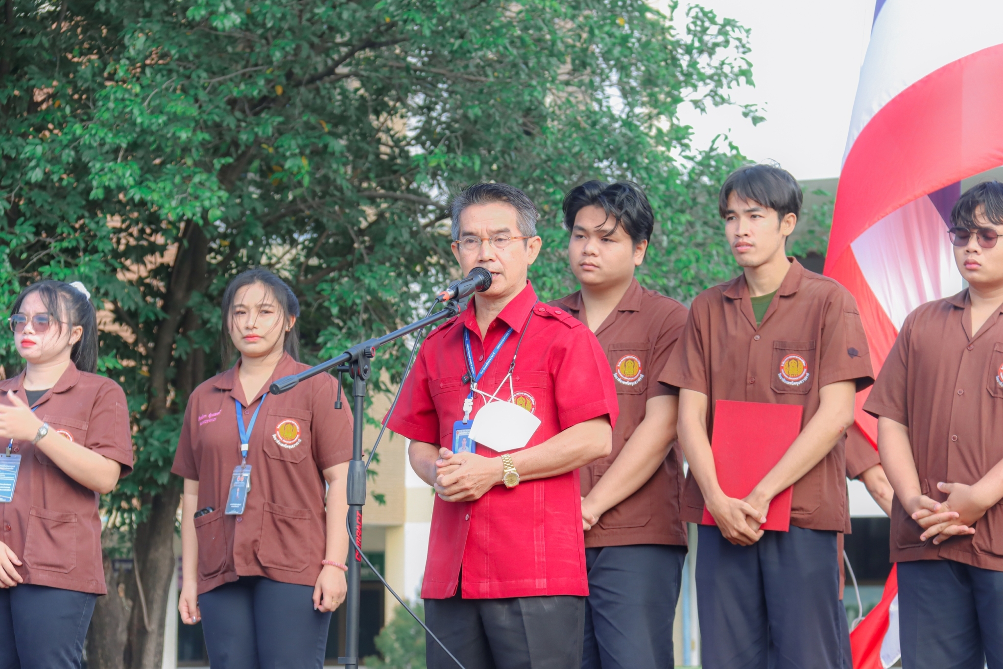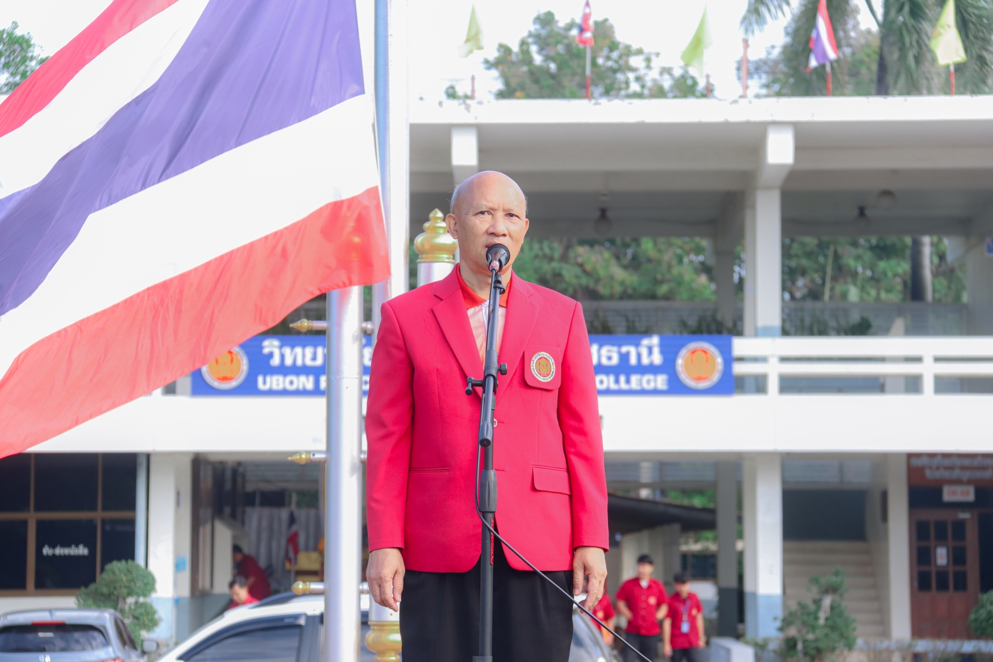 วันที่ ๑ พฤศจิกายน ๒๕๖๖ เวลา ๐๗.๓๐ น. นายธาตรี พิบูลมณฑา ผู้อำนวยการวิทยาลัยเทคนิคอุบลราชธานี มอบหมายให้ นายไวพจน์ ศรีธัญ รองผู้อำนวยการฝ่ายพัฒนากิจการนักเรียนนักศึกษา กล่าวให้โอวาทแก่นักเรียน นักศึกษา ณ ลานกิจกรรมหน้าเสาธง โดยได้ประชาสัมพันธ์กิจกรรมและข่าวสารต่าง ๆ ของวิทยาลัยเทคนิคอุบลราชธานี รวมทั้งเน้นย้ำเรื่องจุดอำนวยความสะดวกในการจราจร ทั้ง ๔ จุดและความปลอดภัยของนักเรียน นักศึกษา ภายในวิทยาลัยฯ อีกด้วย โดยมี นางราตรี สะดีวงศ์ รองผู้อำนวยการฝ่ายแผนงานและความร่วมมือ นายสุวิชา มั่นยืน รองผู้อำนวยการฝ่ายวิชาการ นำคณะครู บุคลากรทางการศึกษา และนักเรียน นักศึกษา เข้าร่วมกิจกรรมอย่างพร้อมเพรียง