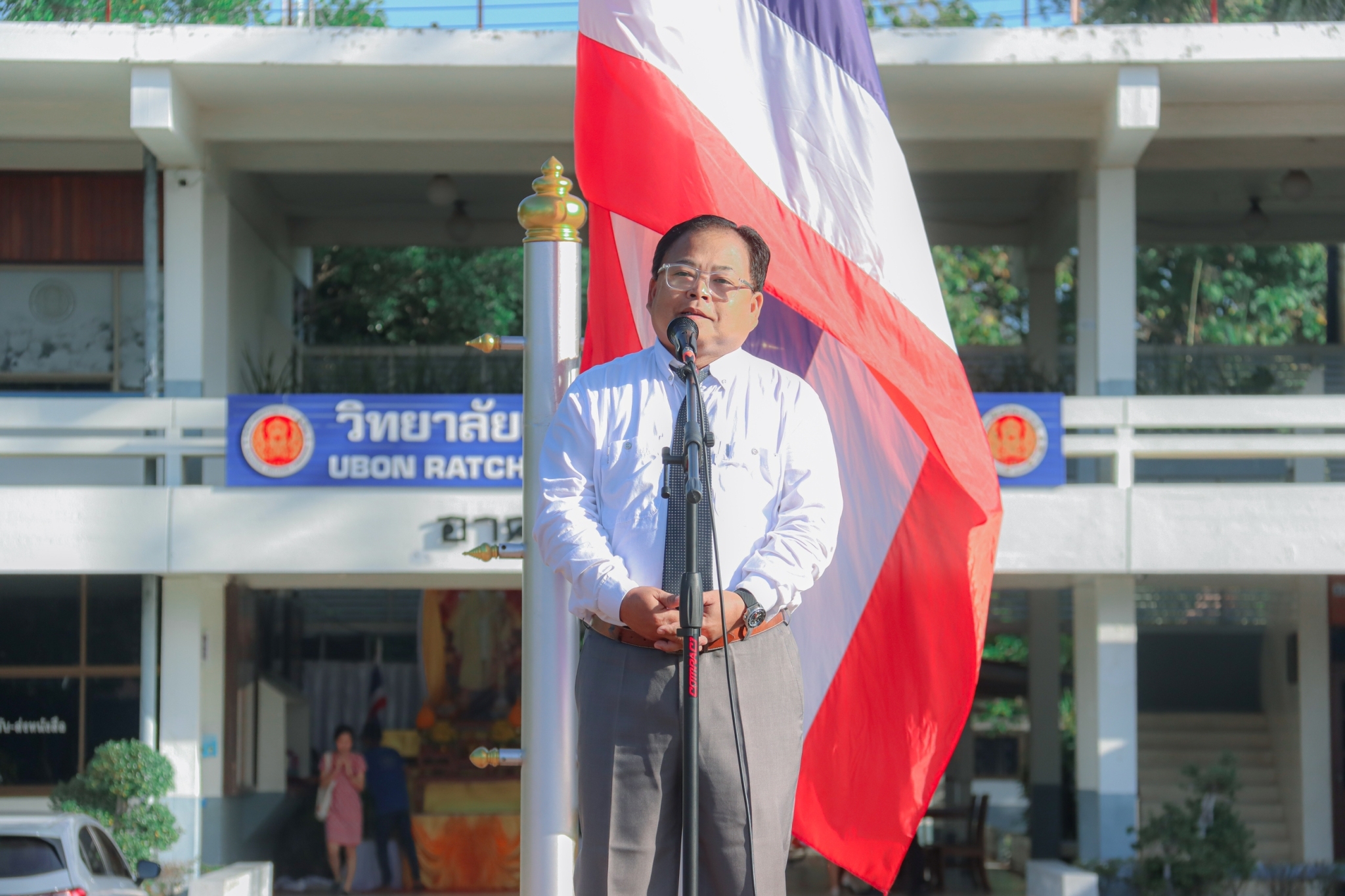 วันที่ ๒ พฤศจิกายน ๒๕๖๖ เวลา ๐๗.๓๐ น. นายธาตรี พิบูลมณฑา ผู้อำนวยการวิทยาลัยเทคนิคอุบลราชธานี มอบหมายให้ นายสุวิชา มั่นยืน รองผู้อำนวยการฝ่ายวิชาการ กล่าวให้โอวาทแก่นักเรียน นักศึกษา ณ ลานกิจกรรมหน้าเสาธง โดยได้ให้ความรู้เกี่ยวกับกฎหมายจราจร โทษของน้ำกระท่อม และเน้นย้ำเรื่องความรับผิดชอบต่อหน้าที่ และการตรงต่อเวลาในการเข้าร่วมกิจกรรมหน้าเสาธง โดยมี นางราตรี สะดีวงศ์ รองผู้อำนวยการฝ่ายแผนงานและความร่วมมือ นายไวพจน์ ศรีธัญ รองผู้อำนวยการฝ่ายพัฒนากิจการนักเรียนนักศึกษา นำคณะครู บุคลากรทางการศึกษา และนักเรียน นักศึกษา เข้าร่วมกิจกรรมอย่างพร้อมเพรียง