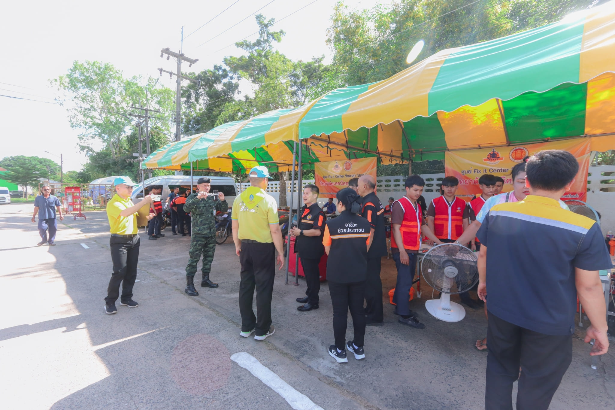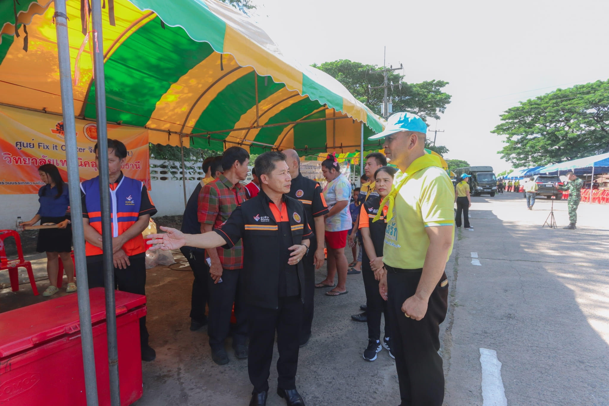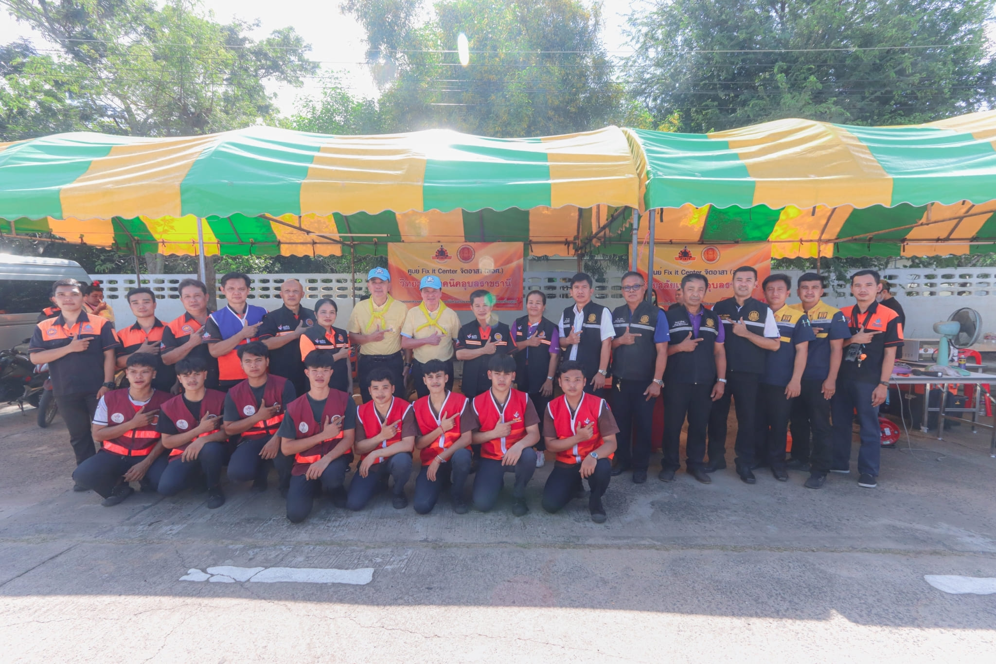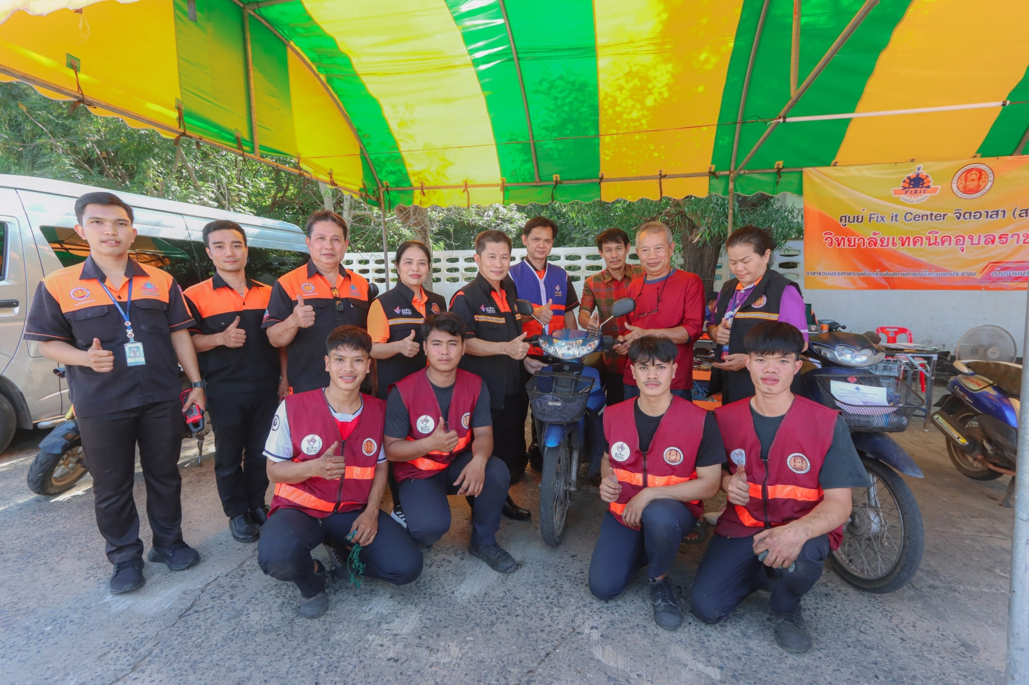 วันที่ ๓ พฤศจิกายน ๒๕๖๖ เวลา ๑๓.๓๐ น. นายธาตรี พิบูลมณฑา ผู้อำนวยการวิทยาลัยเทคนิคอุบลราชธานี พร้อมด้วย นายไวพจน์ ศรีธัญ รองผู้อำนวยการฝ่ายพัฒนากิจการนักเรียนนักศึกษา นางราตรี สะดีวงศ์ รองผู้อำนวยการ ฝ่ายแผนงานและความร่วมมือ นางสาวสายฝน สาระผล รองผู้อำนวยการฝ่ายบริหารทรัพยากร เข้าร่วมพิธีเปิดกิจกรรมจิตอาสาพัฒนา “จัดเก็บกวาด ล้างทำความสะอาดพื้นที่ และส่งประชาชนกลับเข้าบ้านเรือนที่อยู่อาศัย” และกิจกรรมวงดนตรีจิตอาสาเปิดวงส่งพี่น้องกลับบ้าน ณ ศูนย์พักพิงชั่วคราวโครงการปรับปรุงคุณภาพน้ำ เทศบาลเมืองวารินชำราบ อำเภอวารินชำราบ จังหวัดอุบลราชธานี ในการนี้ได้รับเกียรติจาก นายศุภศิษย์ กอเจริญยศ ผู้ว่าราชการจังหวัดอุบลราชธานี เป็นประธานในพิธีเปิดกิจกรรม โดยมี นายวัฒนา ทองเทพ หัวหน้างานโครงการพิเศษและการบริการชุมชน นายนรา เดชะคำภู หัวหน้าศูนย์ซ่อมสร้างเพื่อชุมชน (Fix it Center) แบบถาวร วิทยาลัยเทคนิคอุบลราชธานี นายกตนนท์ นาทัน หัวหน้าแผนกวิชาช่างยนต์/เครื่องกล พร้อมด้วยคณะครู และบุคลากรทางการศึกษาที่เกี่ยวข้อง นำนักเรียน นักศึกษา แผนกวิชาช่างยนต์/เครื่องกล และแผนกวิชาช่างไฟฟ้ากำลัง เข้าร่วมจัดตั้งศูนย์ Fix it Center จิตอาสา (สอศ.) วิทยาลัยเทคนิคอุบลราชธานี ทั้งนี้เพื่อบูรณาการให้ความช่วยเหลือในการซ่อมรถจักรยานยนต์และเครื่องใช้ไฟฟ้า ให้แก่ผู้ประสบอุทกภัยในเขตพื้นที่เทศบาลเมืองวารินชำราบ อำเภอวารินชำราบ จังหวัดอุบลราชธานี