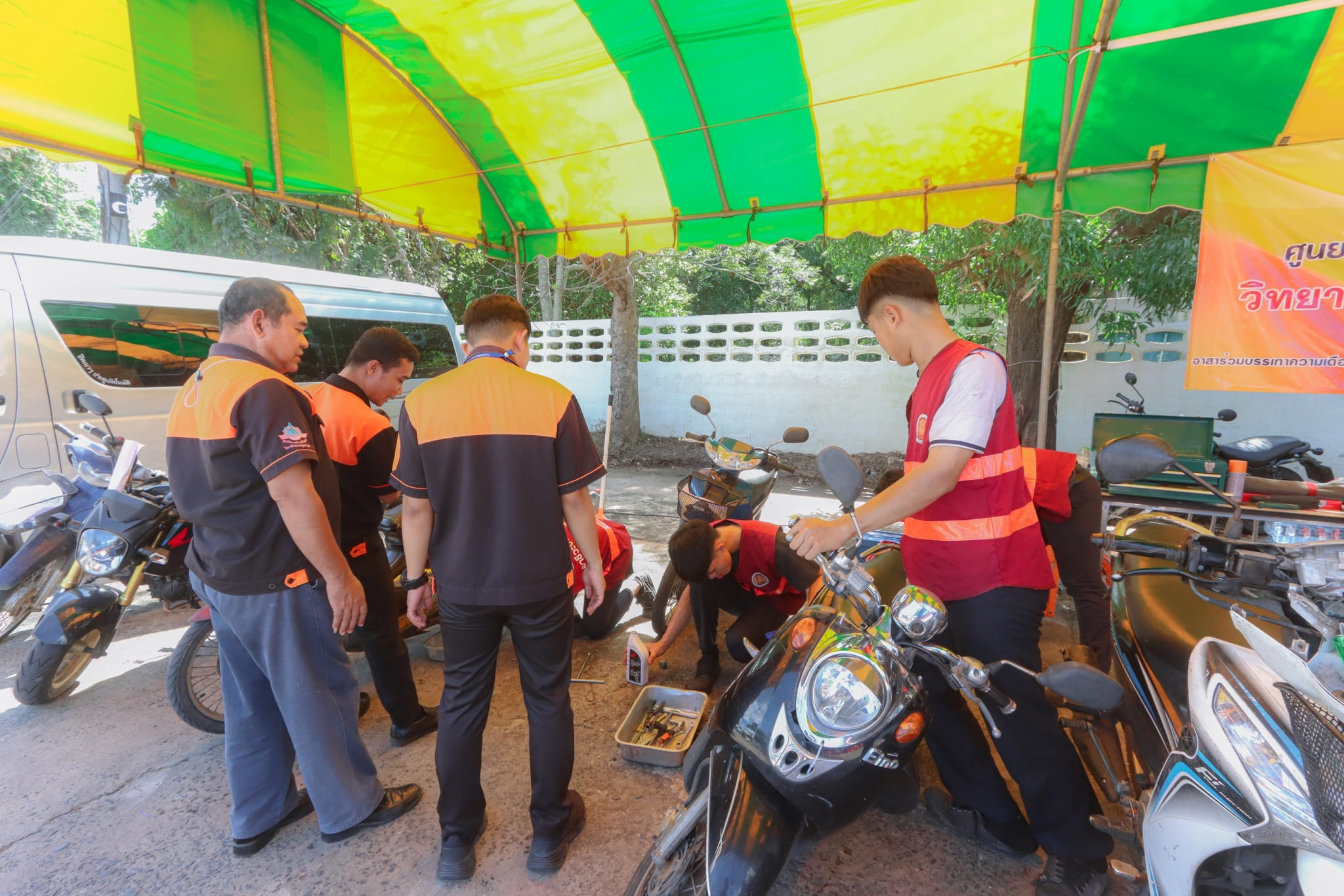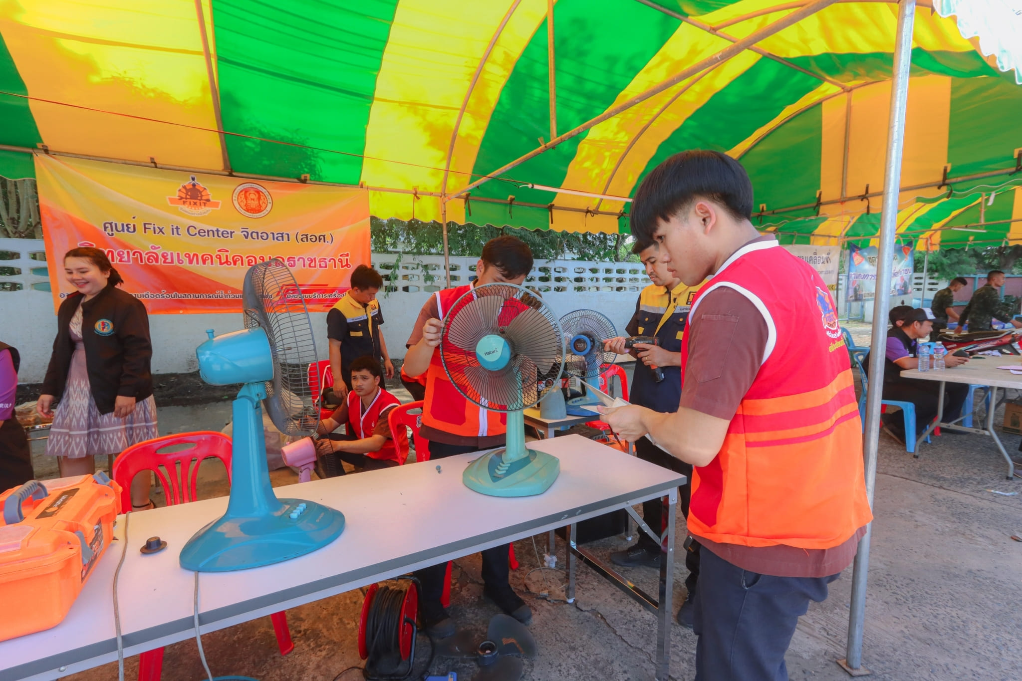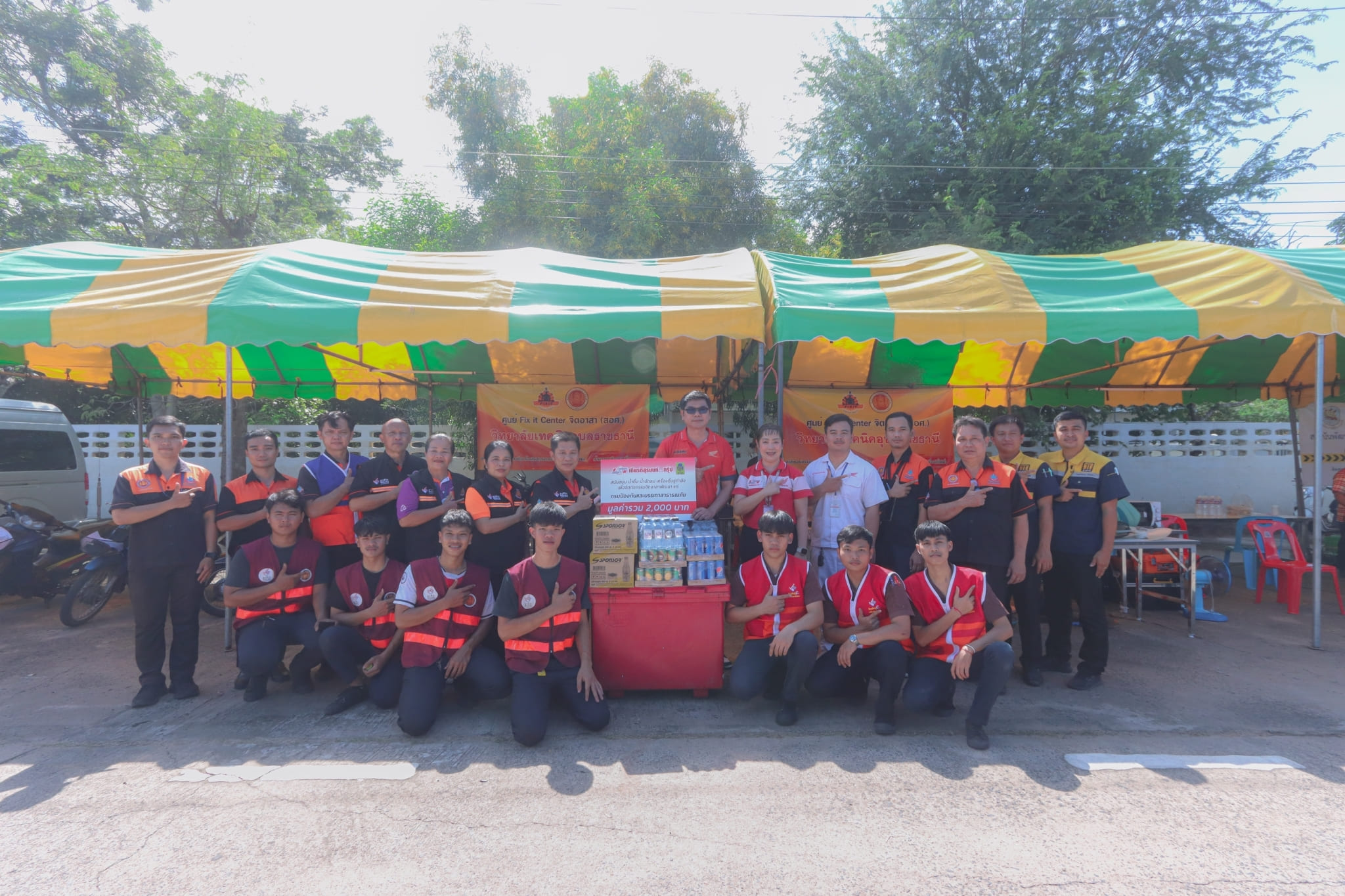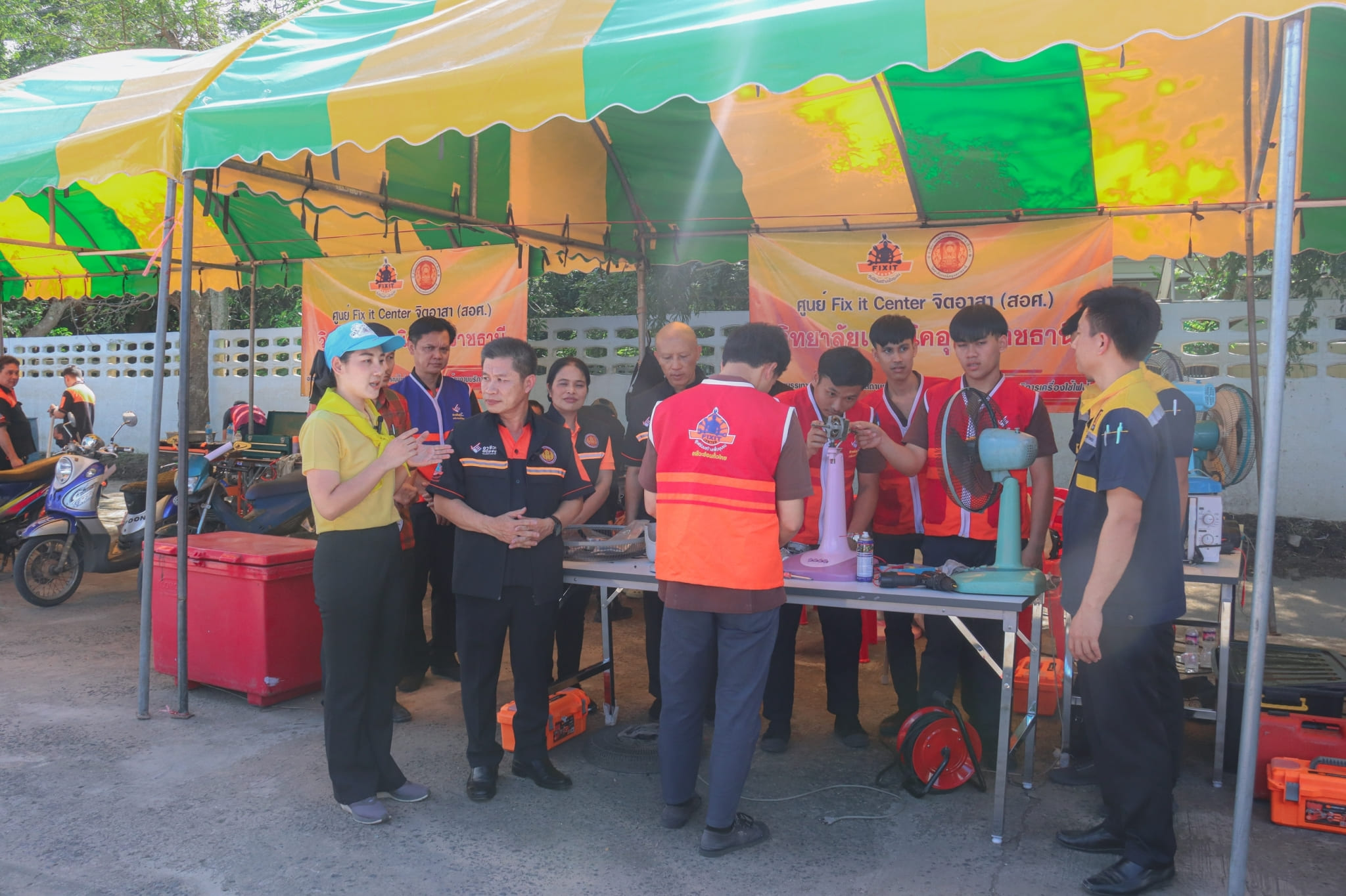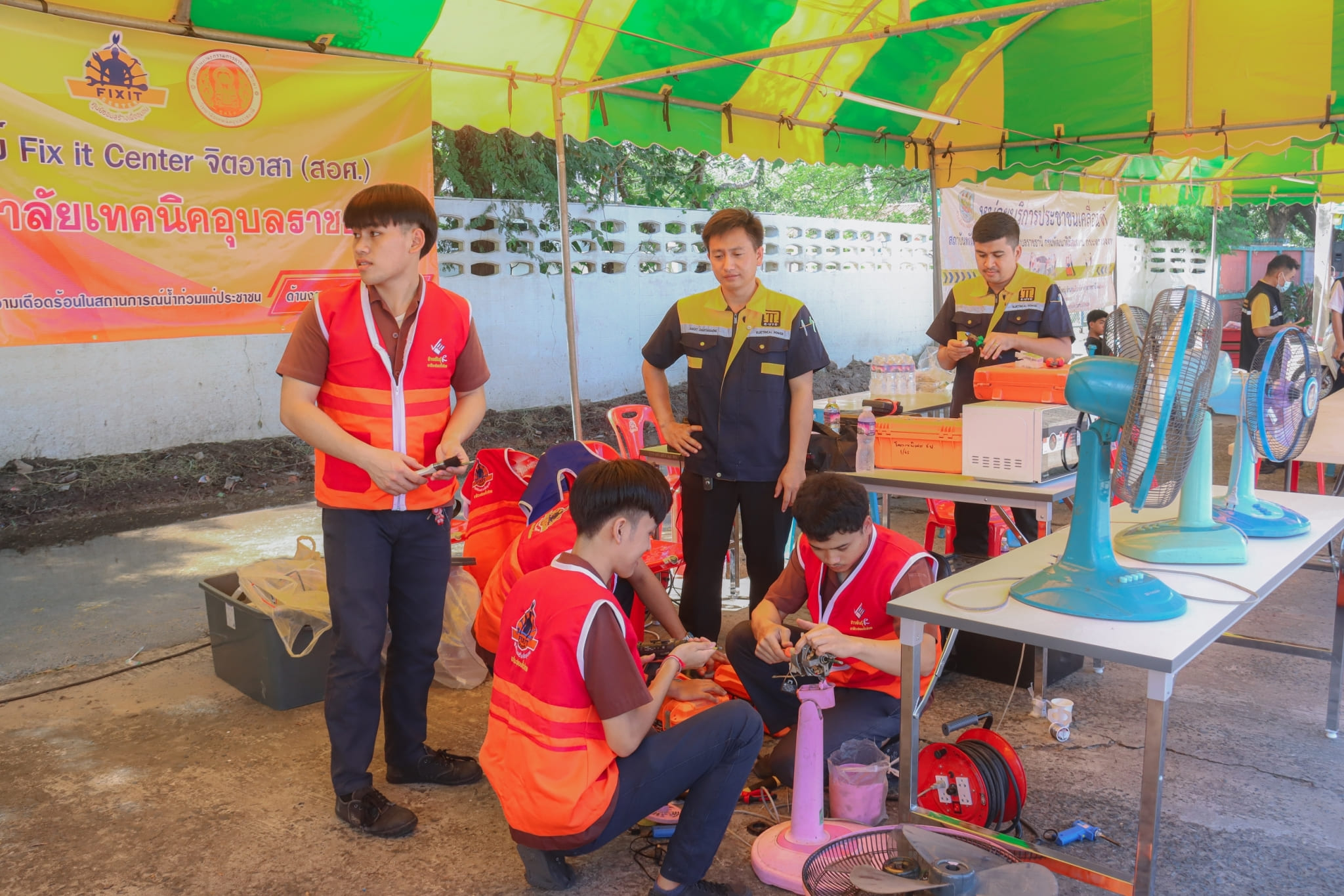 วันที่ ๓ พฤศจิกายน ๒๕๖๖ เวลา ๑๓.๓๐ น. นายธาตรี พิบูลมณฑา ผู้อำนวยการวิทยาลัยเทคนิคอุบลราชธานี พร้อมด้วย นายไวพจน์ ศรีธัญ รองผู้อำนวยการฝ่ายพัฒนากิจการนักเรียนนักศึกษา นางราตรี สะดีวงศ์ รองผู้อำนวยการ ฝ่ายแผนงานและความร่วมมือ นางสาวสายฝน สาระผล รองผู้อำนวยการฝ่ายบริหารทรัพยากร เข้าร่วมพิธีเปิดกิจกรรมจิตอาสาพัฒนา “จัดเก็บกวาด ล้างทำความสะอาดพื้นที่ และส่งประชาชนกลับเข้าบ้านเรือนที่อยู่อาศัย” และกิจกรรมวงดนตรีจิตอาสาเปิดวงส่งพี่น้องกลับบ้าน ณ ศูนย์พักพิงชั่วคราวโครงการปรับปรุงคุณภาพน้ำ เทศบาลเมืองวารินชำราบ อำเภอวารินชำราบ จังหวัดอุบลราชธานี ในการนี้ได้รับเกียรติจาก นายศุภศิษย์ กอเจริญยศ ผู้ว่าราชการจังหวัดอุบลราชธานี เป็นประธานในพิธีเปิดกิจกรรม โดยมี นายวัฒนา ทองเทพ หัวหน้างานโครงการพิเศษและการบริการชุมชน นายนรา เดชะคำภู หัวหน้าศูนย์ซ่อมสร้างเพื่อชุมชน (Fix it Center) แบบถาวร วิทยาลัยเทคนิคอุบลราชธานี นายกตนนท์ นาทัน หัวหน้าแผนกวิชาช่างยนต์/เครื่องกล พร้อมด้วยคณะครู และบุคลากรทางการศึกษาที่เกี่ยวข้อง นำนักเรียน นักศึกษา แผนกวิชาช่างยนต์/เครื่องกล และแผนกวิชาช่างไฟฟ้ากำลัง เข้าร่วมจัดตั้งศูนย์ Fix it Center จิตอาสา (สอศ.) วิทยาลัยเทคนิคอุบลราชธานี ทั้งนี้เพื่อบูรณาการให้ความช่วยเหลือในการซ่อมรถจักรยานยนต์และเครื่องใช้ไฟฟ้า ให้แก่ผู้ประสบอุทกภัยในเขตพื้นที่เทศบาลเมืองวารินชำราบ อำเภอวารินชำราบ จังหวัดอุบลราชธานี