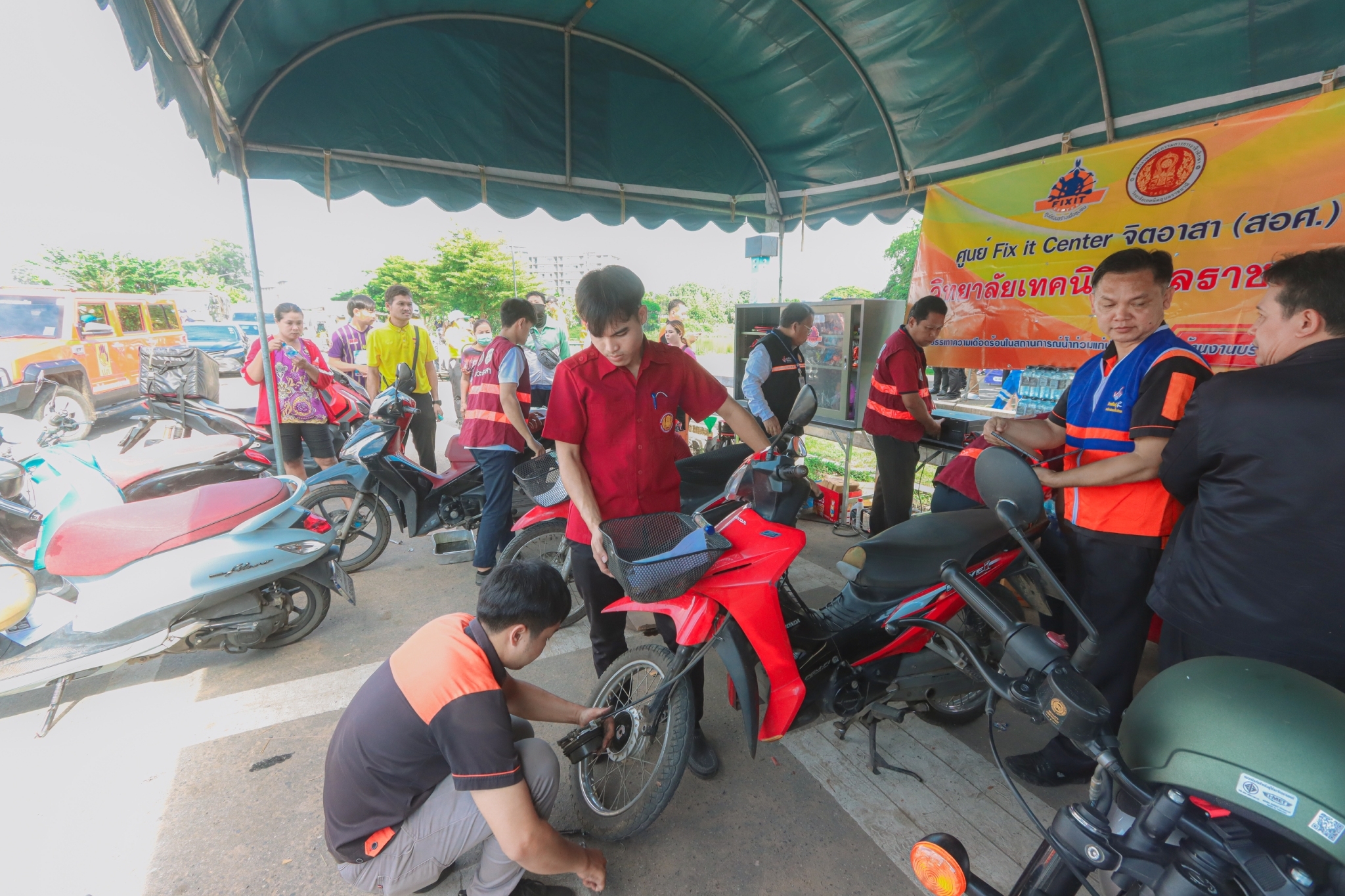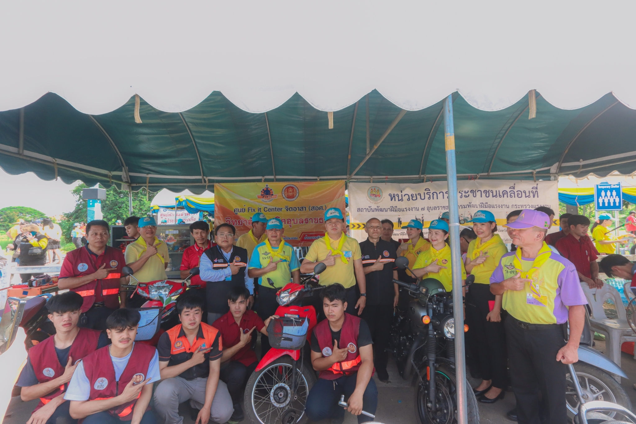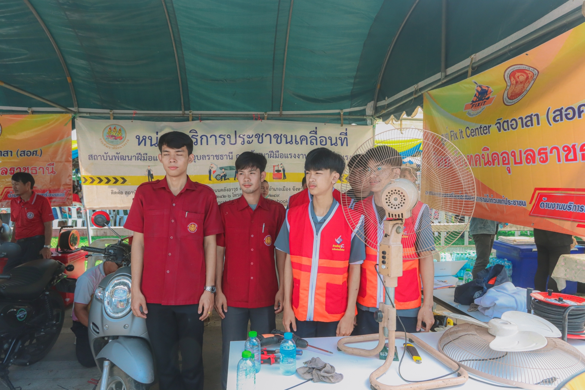 วันที่ ๘ พฤศจิกายน ๒๕๖๖ เวลา ๐๙.๓๐ น. นายธาตรี พิบูลมณฑา ผู้อำนวยการวิทยาลัยเทคนิคอุบลราชธานี มอบหมายให้ นายไวพจน์ ศรีธัญ รองผู้อำนวยการฝ่ายพัฒนากิจการนักเรียนนักศึกษา นายสุวิชา มั่นยืน รองผู้อำนวยการฝ่ายวิชาการ เข้าร่วมพิธีเปิดกิจกรรมจิตอาสาภัยพิบัติ ขั้นฟื้นฟู ณ ศูนย์พักพิงชั่วคราวสวนสาธารณะห้วยม่วง ตำบลในเมือง อำเภอเมืองอุบลราชธานี จังหวัดอุบลราชธานี ในการนี้ได้รับเกียรติจาก นายศุภศิษย์ กอเจริญยศ ผู้ว่าราชการจังหวัดอุบลราชธานี เป็นประธานในพิธีเปิดกิจกรรม โดยมี นายวัฒนา ทองเทพ หัวหน้างานโครงการพิเศษและการบริการชุมชน นายนรา เดชะคำภู หัวหน้าศูนย์ซ่อมสร้างเพื่อชุมชน (Fix it Center) แบบถาวร วิทยาลัยเทคนิคอุบลราชธานี นายกตนนท์ นาทัน หัวหน้าแผนกวิชาช่างยนต์/เครื่องกลพร้อมด้วยคณะครู และบุคลากรทางการศึกษาที่เกี่ยวข้อง นำนักเรียน นักศึกษา แผนกวิชาช่างยนต์/เครื่องกล และแผนกวิชาช่างไฟฟ้ากำลัง เข้าร่วมจัดตั้งศูนย์ Fix it Center จิตอาสา (สอศ.) วิทยาลัยเทคนิคอุบลราชธานี ทั้งนี้เพื่อบูรณาการให้ความช่วยเหลือในการซ่อมรถจักรยานยนต์และเครื่องใช้ไฟฟ้า ให้แก่ผู้ประสบอุทกภัยในเขตพื้นที่เทศบาลเมืองวารินชำราบ อำเภอวารินชำราบ จังหวัดอุบลราชธานี