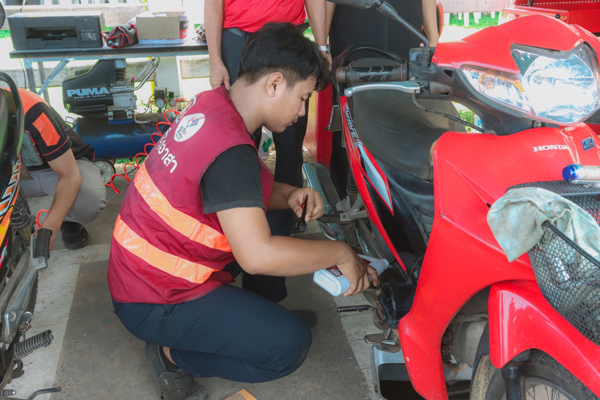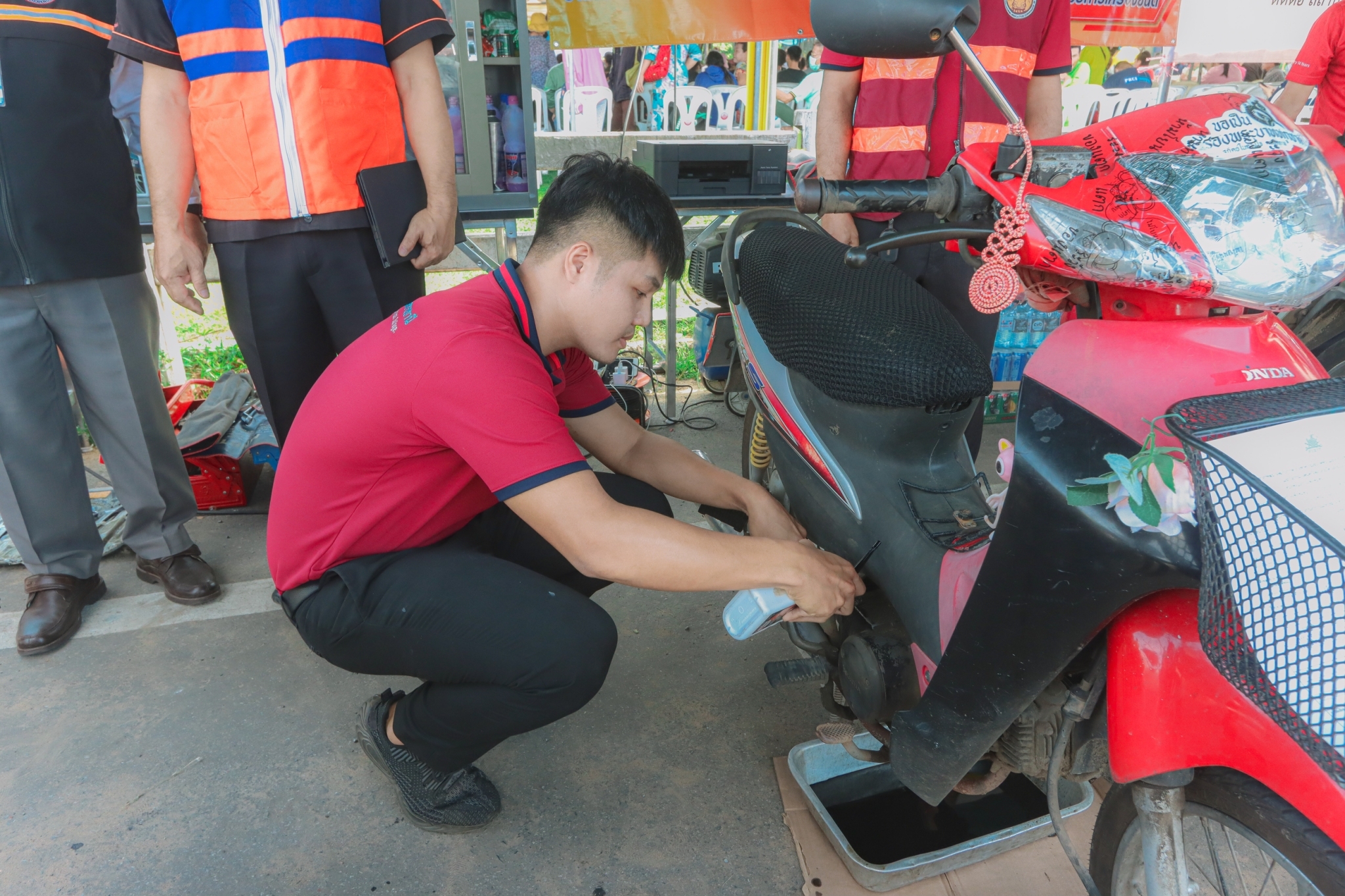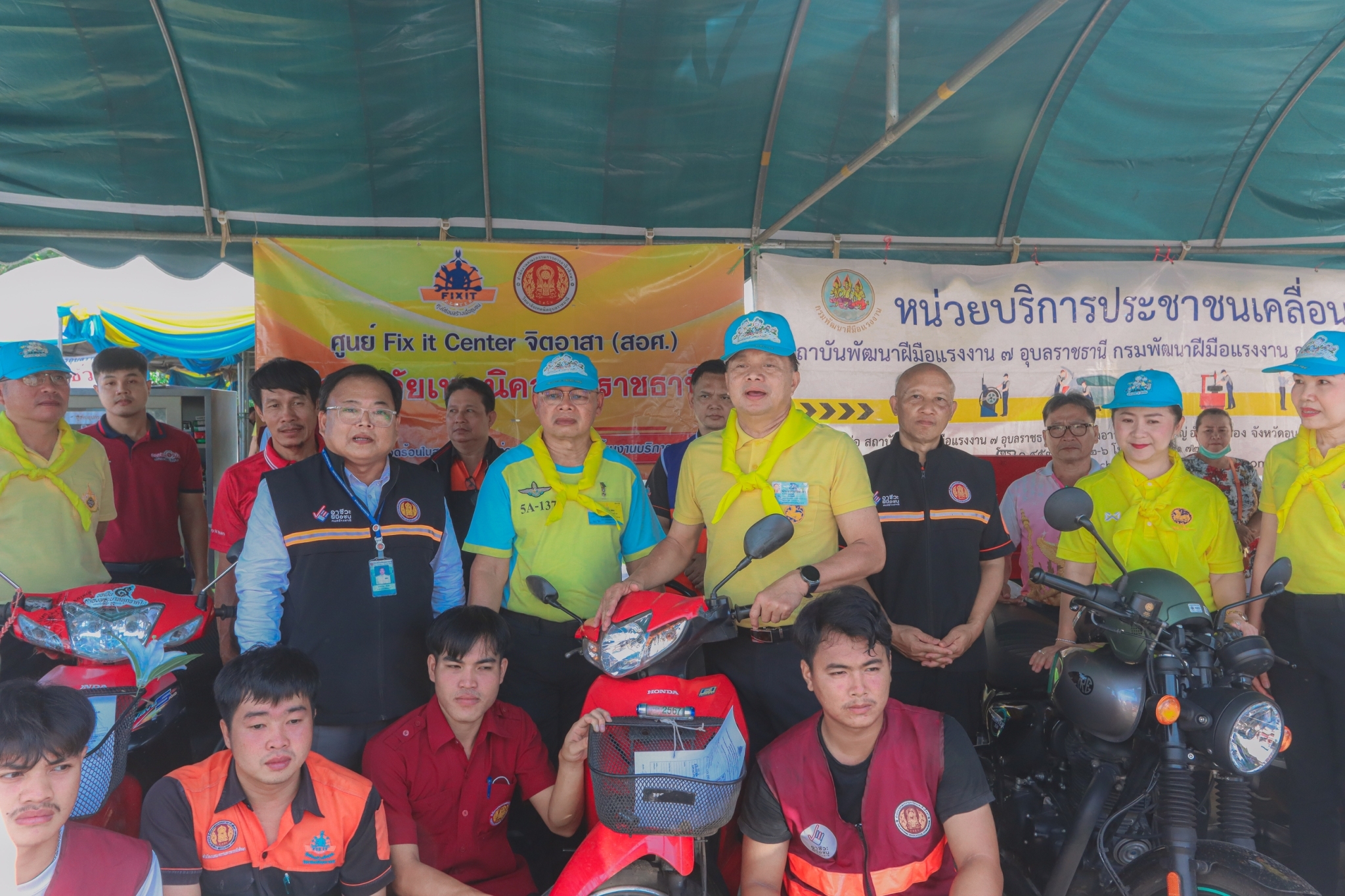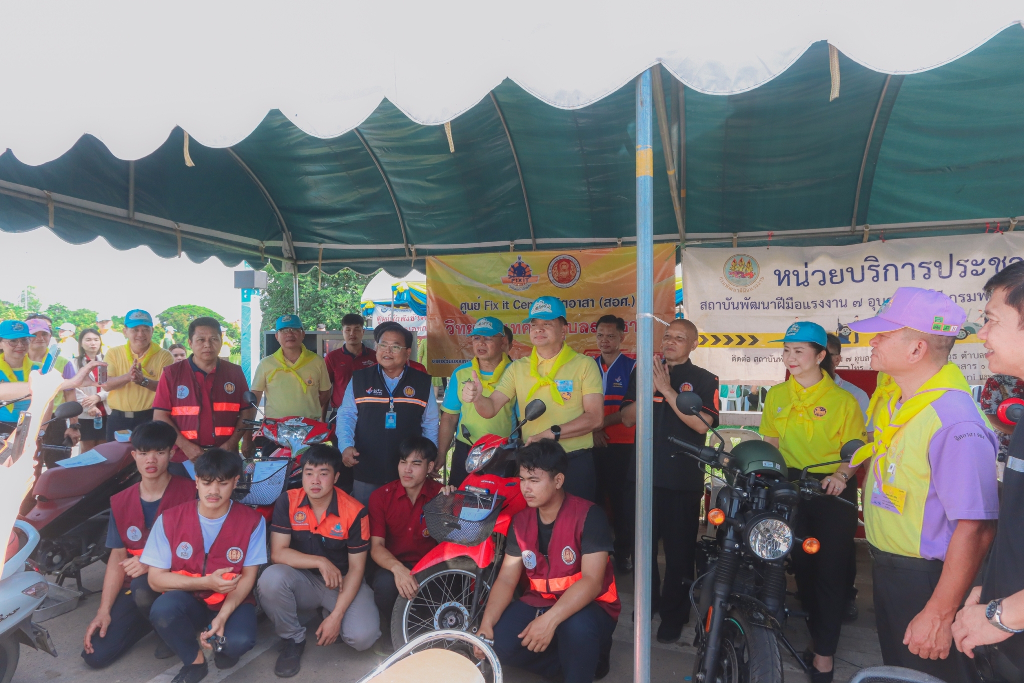 วันที่ ๘ พฤศจิกายน ๒๕๖๖ เวลา ๐๙.๓๐ น. นายธาตรี พิบูลมณฑา ผู้อำนวยการวิทยาลัยเทคนิคอุบลราชธานี มอบหมายให้ นายไวพจน์ ศรีธัญ รองผู้อำนวยการฝ่ายพัฒนากิจการนักเรียนนักศึกษา นายสุวิชา มั่นยืน รองผู้อำนวยการฝ่ายวิชาการ เข้าร่วมพิธีเปิดกิจกรรมจิตอาสาภัยพิบัติ ขั้นฟื้นฟู ณ ศูนย์พักพิงชั่วคราวสวนสาธารณะห้วยม่วง ตำบลในเมือง อำเภอเมืองอุบลราชธานี จังหวัดอุบลราชธานี ในการนี้ได้รับเกียรติจาก นายศุภศิษย์ กอเจริญยศ ผู้ว่าราชการจังหวัดอุบลราชธานี เป็นประธานในพิธีเปิดกิจกรรม โดยมี นายวัฒนา ทองเทพ หัวหน้างานโครงการพิเศษและการบริการชุมชน นายนรา เดชะคำภู หัวหน้าศูนย์ซ่อมสร้างเพื่อชุมชน (Fix it Center) แบบถาวร วิทยาลัยเทคนิคอุบลราชธานี นายกตนนท์ นาทัน หัวหน้าแผนกวิชาช่างยนต์/เครื่องกลพร้อมด้วยคณะครู และบุคลากรทางการศึกษาที่เกี่ยวข้อง นำนักเรียน นักศึกษา แผนกวิชาช่างยนต์/เครื่องกล และแผนกวิชาช่างไฟฟ้ากำลัง เข้าร่วมจัดตั้งศูนย์ Fix it Center จิตอาสา (สอศ.) วิทยาลัยเทคนิคอุบลราชธานี ทั้งนี้เพื่อบูรณาการให้ความช่วยเหลือในการซ่อมรถจักรยานยนต์และเครื่องใช้ไฟฟ้า ให้แก่ผู้ประสบอุทกภัยในเขตพื้นที่เทศบาลเมืองวารินชำราบ อำเภอวารินชำราบ จังหวัดอุบลราชธานี