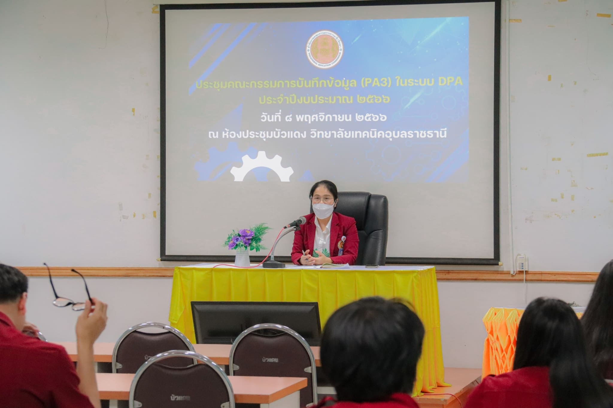 วันที่ ๘ พฤศจิกายน ๒๕๖๖ เวลา ๑๕.๐๐ น. นายธาตรี พิบูลมณฑา ผู้อำนวยการวิทยาลัยเทคนิคอุบลราชธานี มอบหมายให้ นางสาวสายฝน สาระผล รองผู้อำนวยการฝ่ายบริหารทรัพยากร เป็นประธานในการประชุมคณะกรรมการบันทึกข้อมูล (PA3) ในระบบ DPA ประจำปีงบประมาณ พ.ศ. ๒๕๖๖ ณ ห้องประชุมบัวแดง วิทยาลัยเทคนิคอุบลราชธานี โดยมี นายบัณฑิต เหลาทอง หัวหน้าศูนย์วิทยฐานะและพัฒนาครู บุคลากร วิทยาลัยเทคนิคอุบลราชธานี พร้อมด้วย หัวหน้างาน หัวหน้าแผนกวิชา ครู และบุคลากรทางการศึกษาที่เกี่ยวข้อง เข้าร่วมการประชุมอย่างพร้อมเพรียง ทั้งนี้เพื่อให้การบันทึกข้อมูล (PA3) ในระบบ DPA ประจำปีงบประมาณ พ.ศ. ๒๕๖๖ เป็นไปด้วยความเรียบร้อยต่อไป