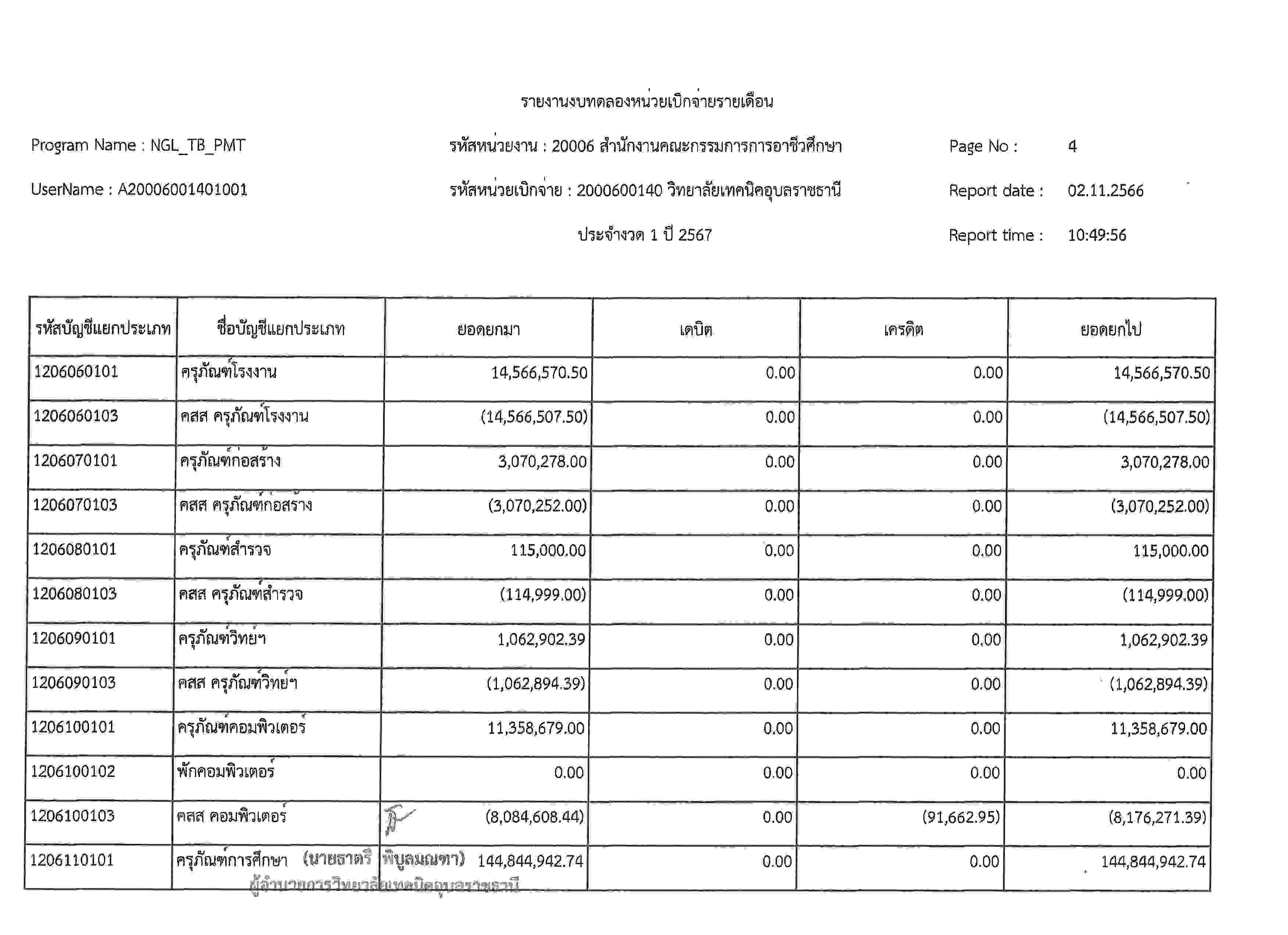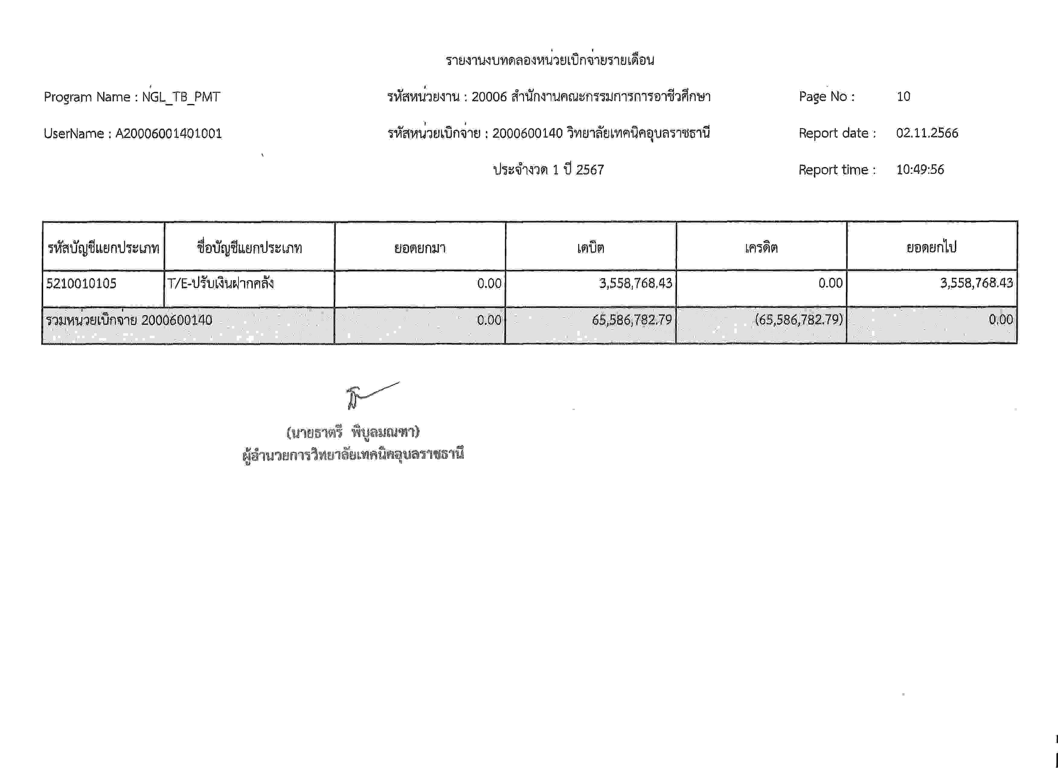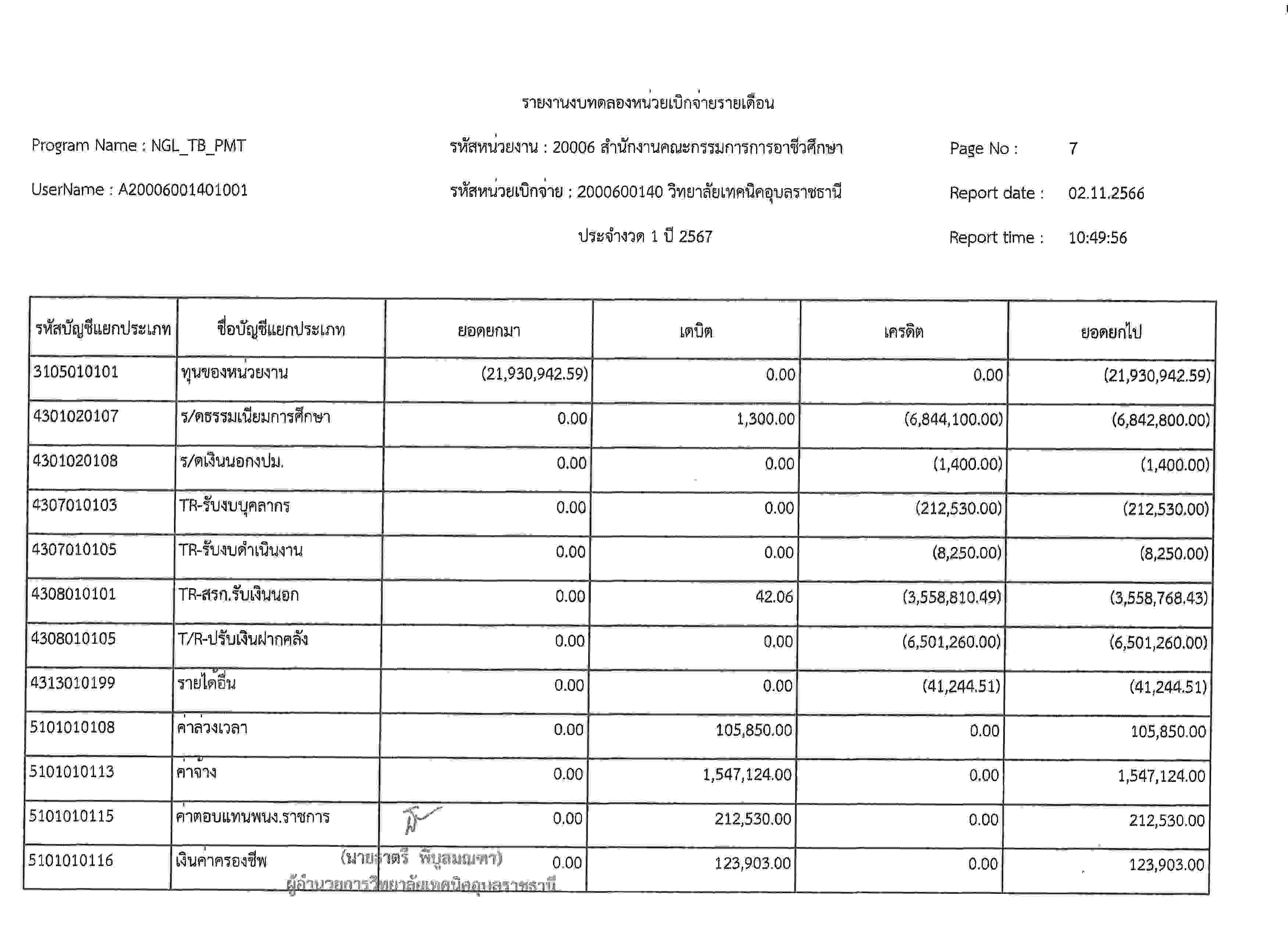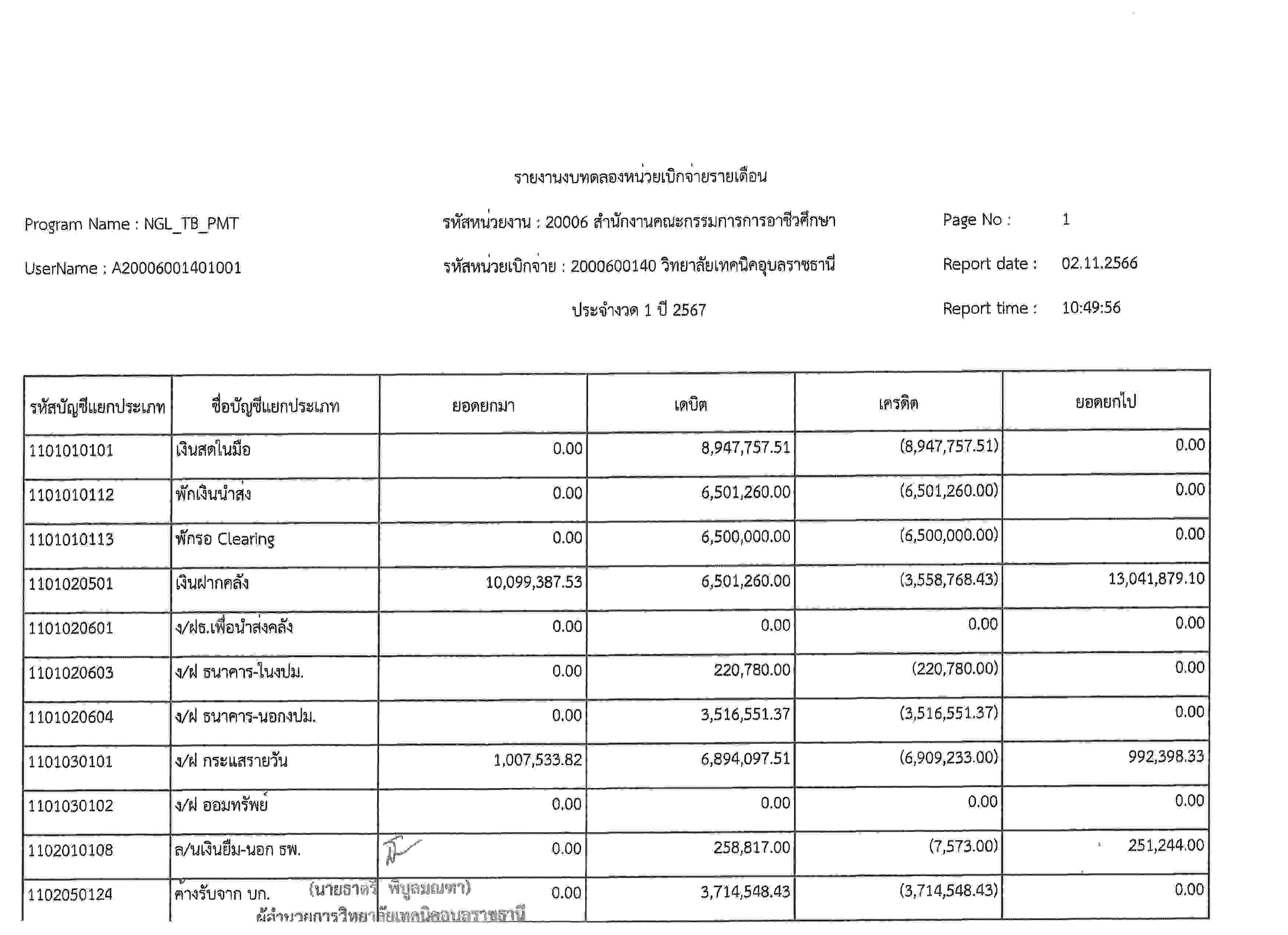 รายงานงบทดลองประจำเดือน ตุลาคม 2566
