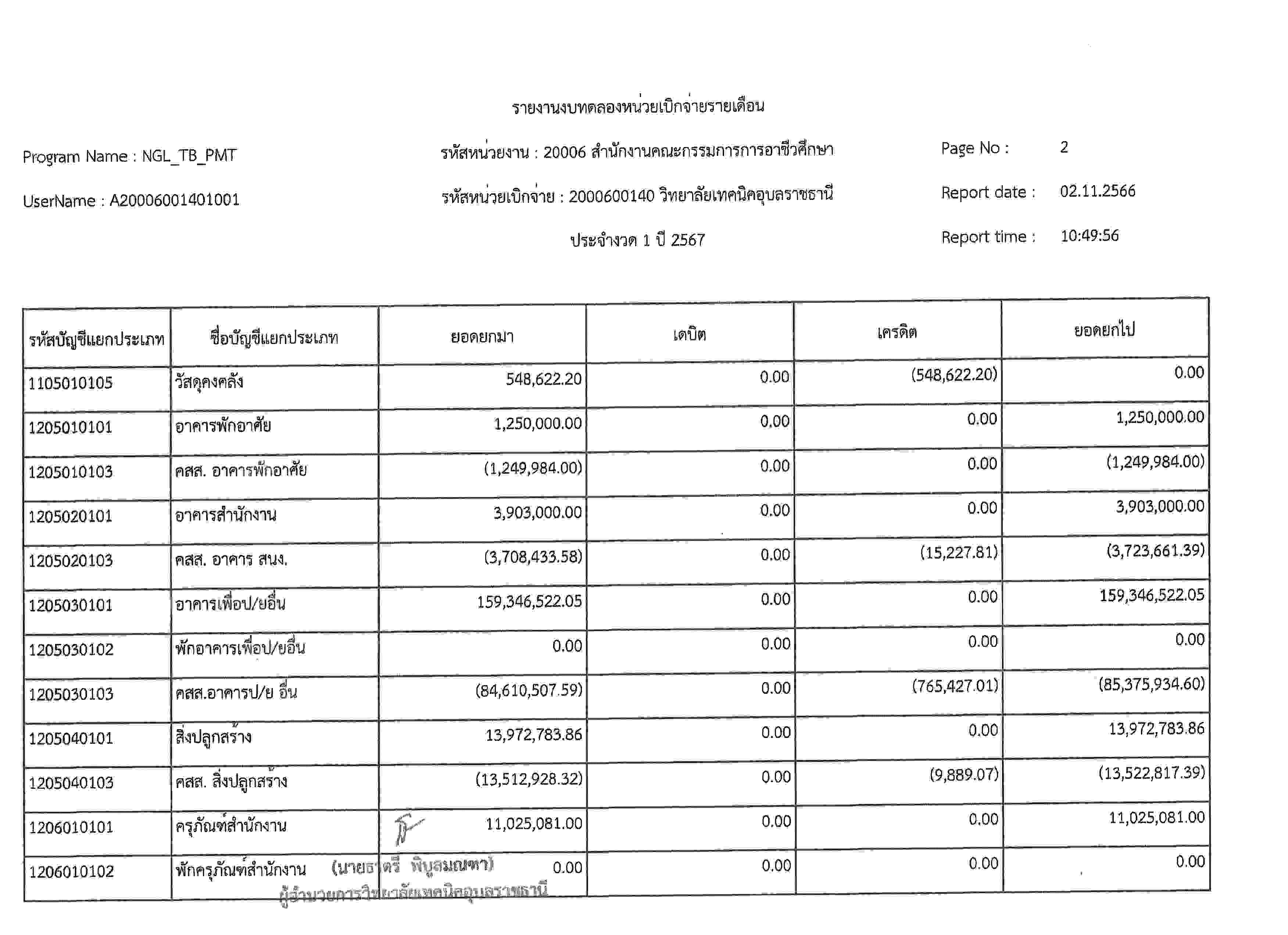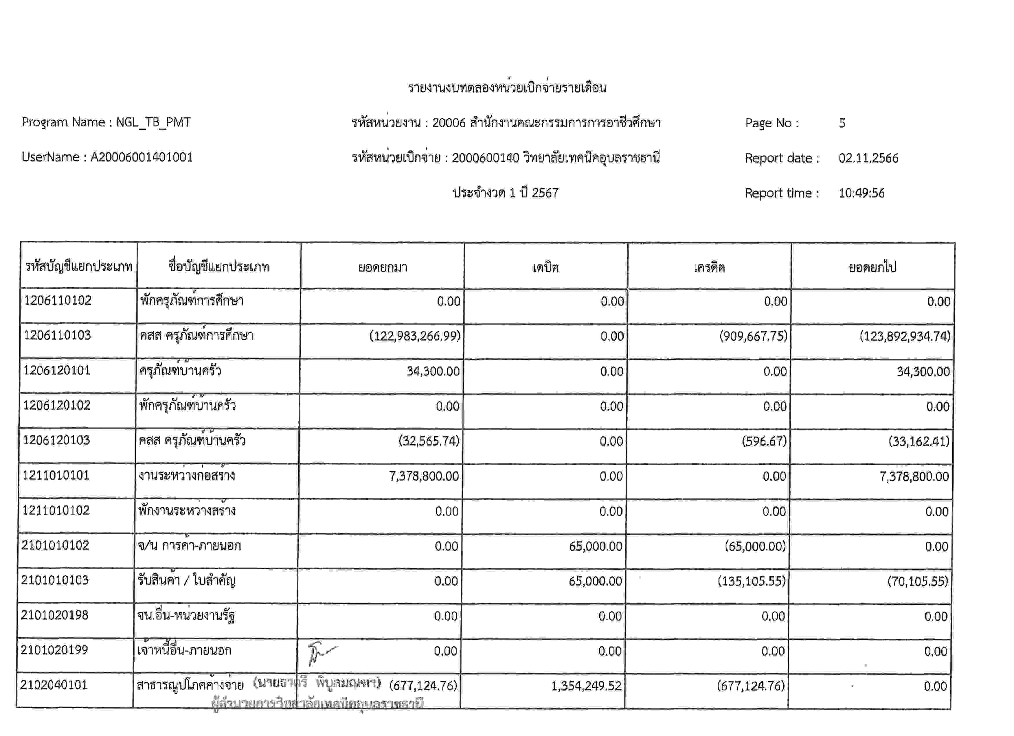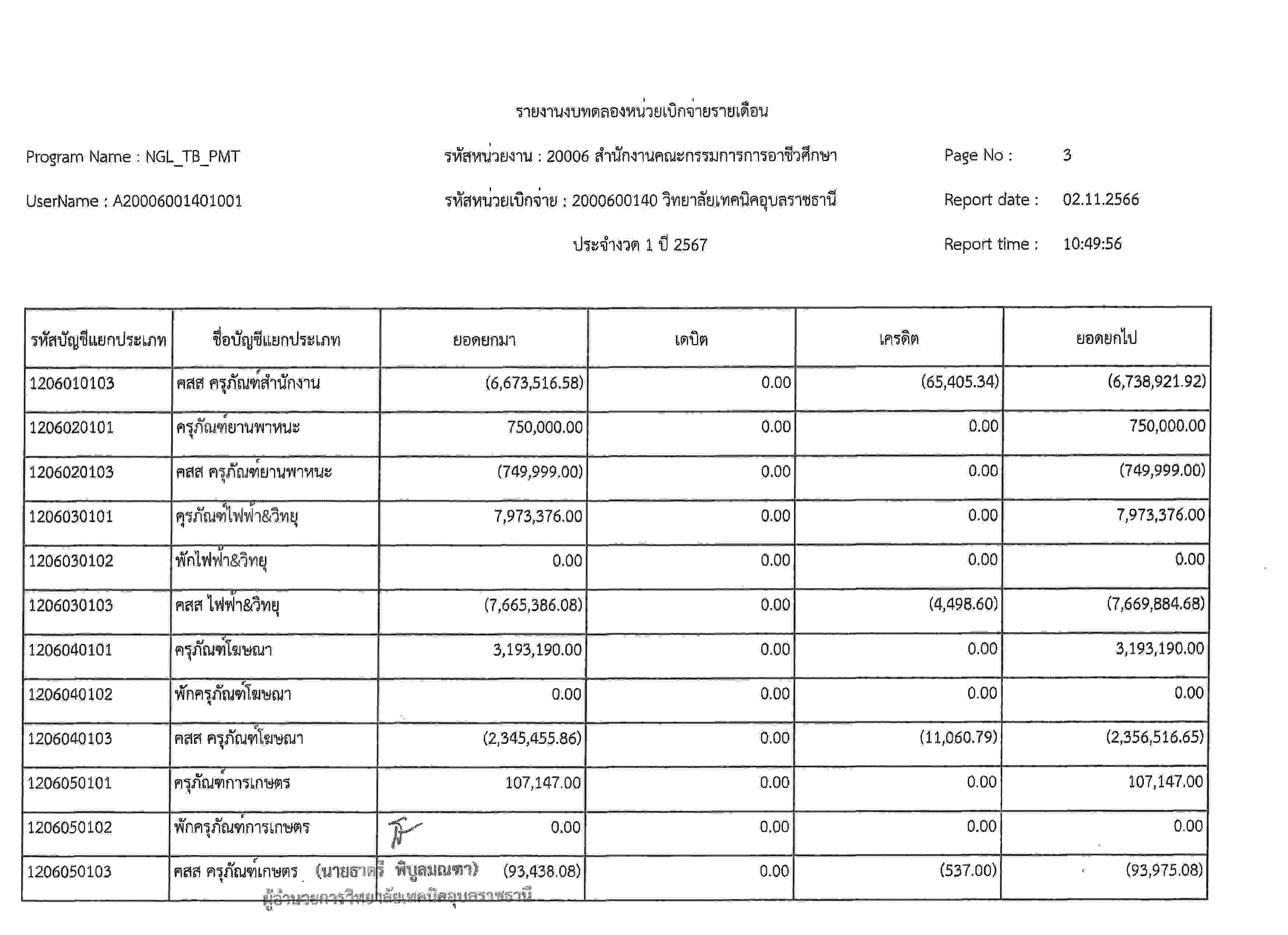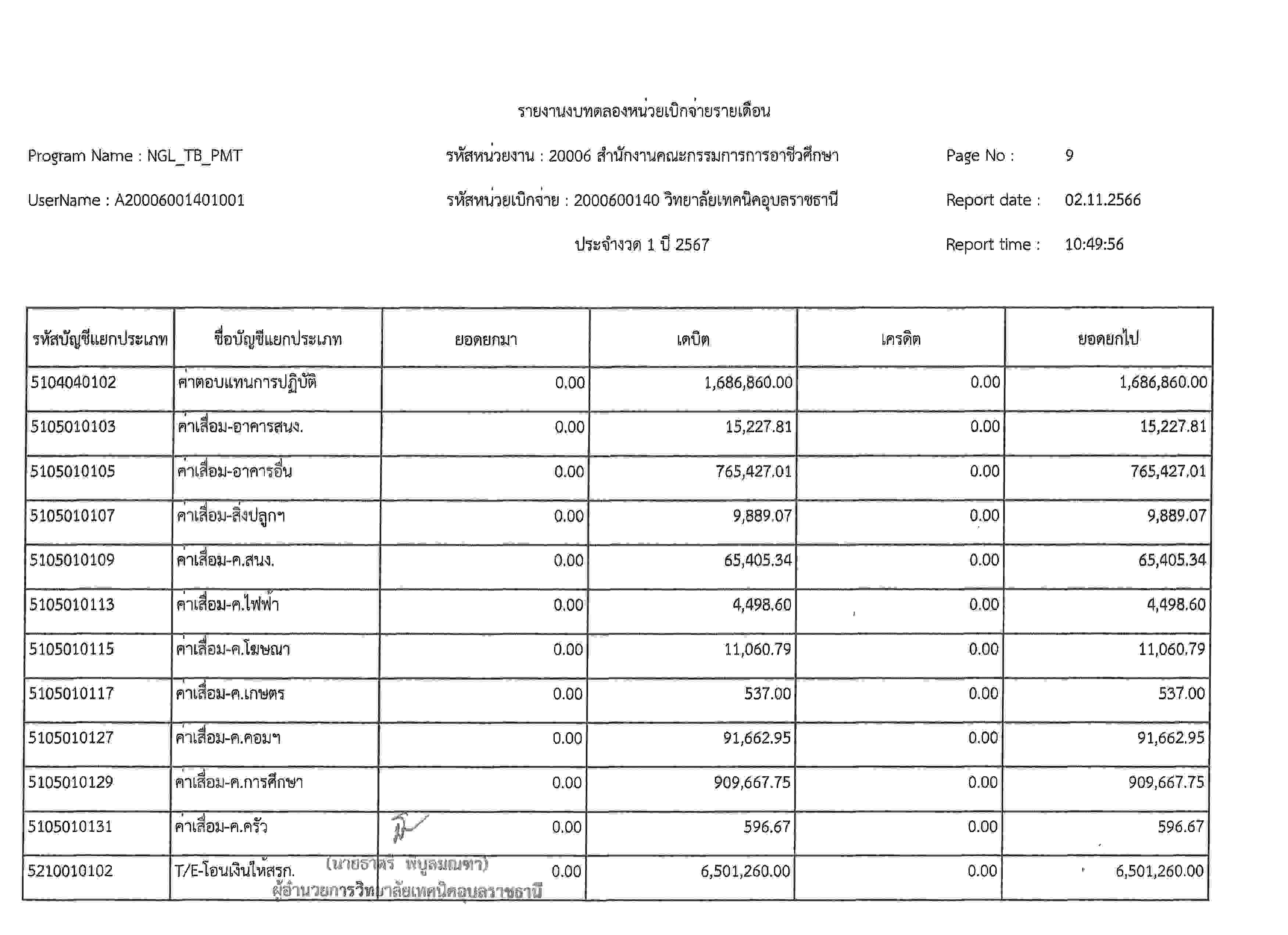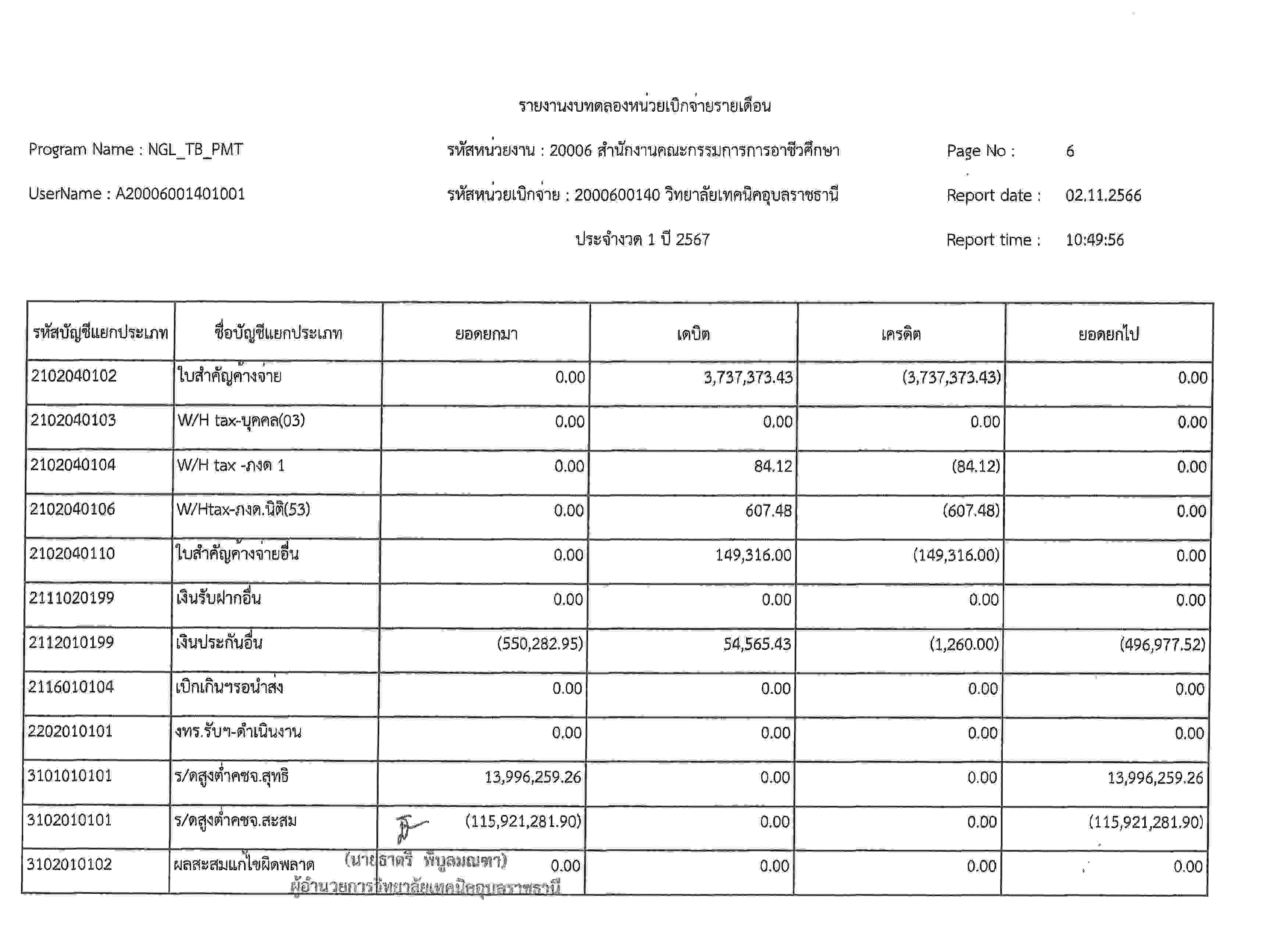 รายงานงบทดลองประจำเดือน ตุลาคม 2566