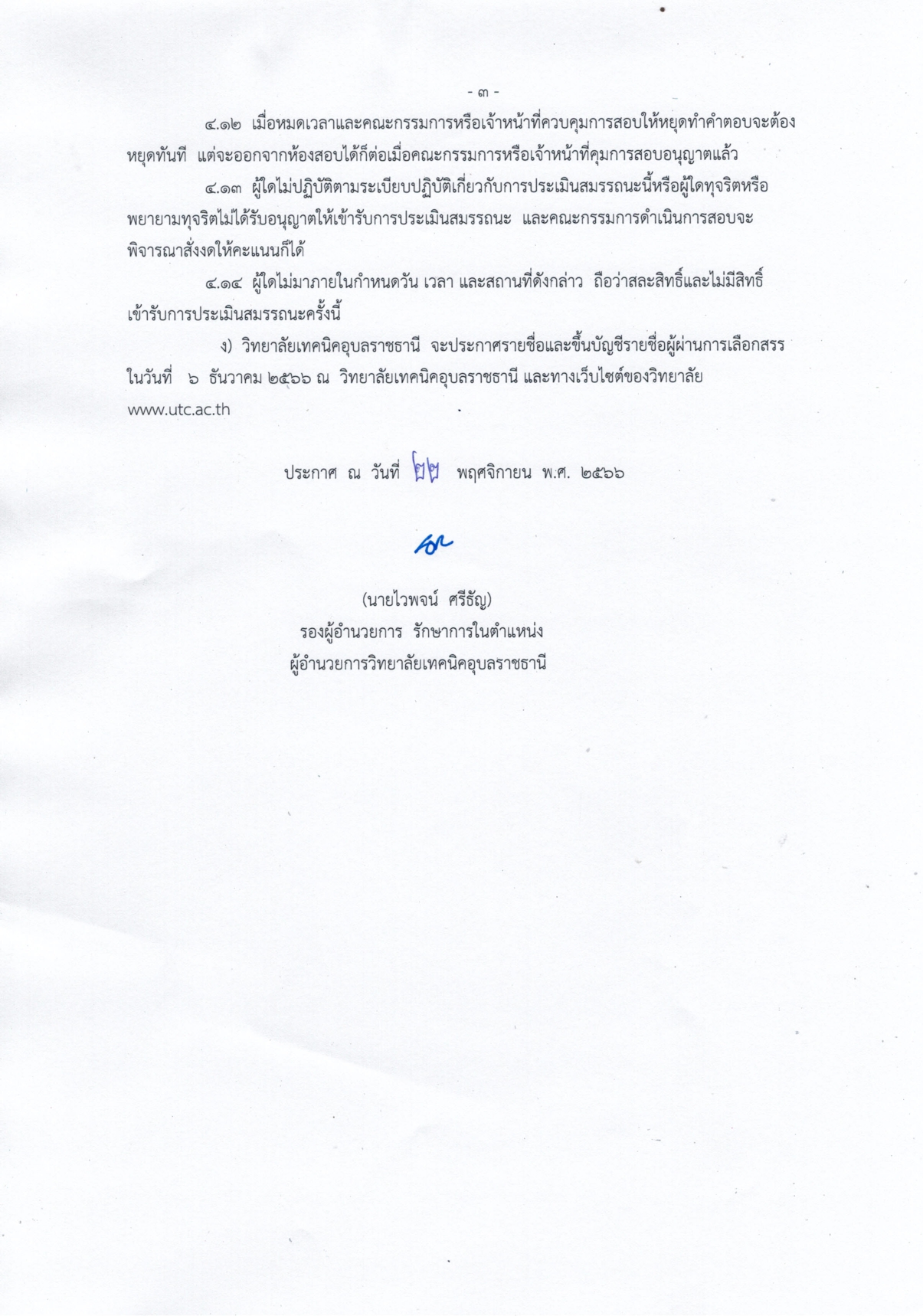 ประกาศวิทยาลัยเทคนิคอุบลราชธานี