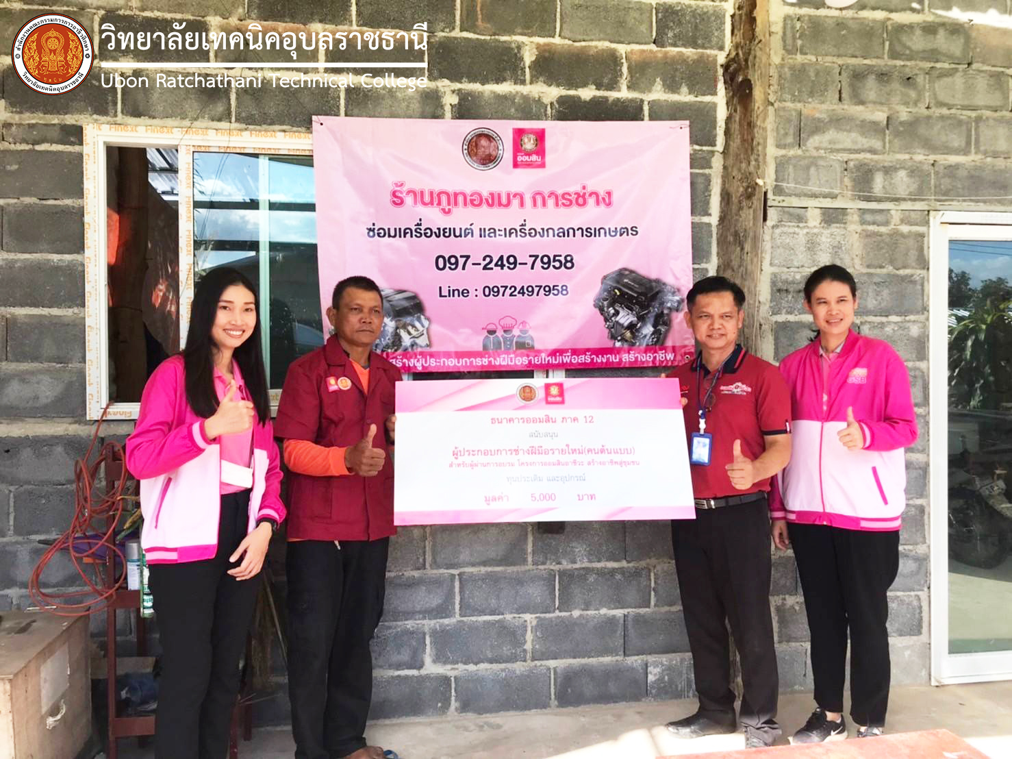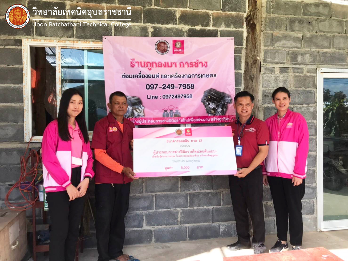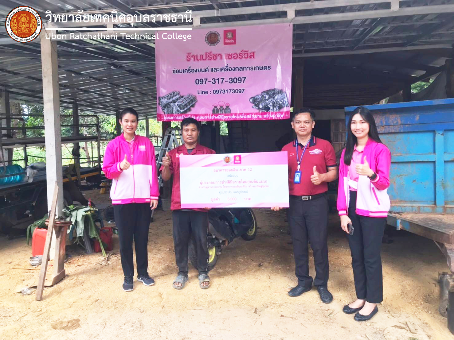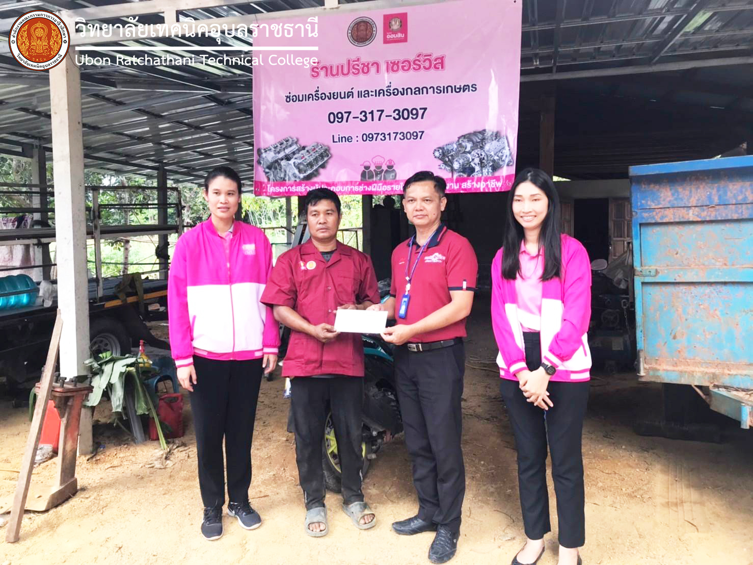 วันที่ ๒๑ พฤศจิกายน ๒๕๖๖ ที่ผ่านมา นายธาตรี พิบูลมณฑา ผู้อำนวยการวิทยาลัยเทคนิคอุบลราชธานี ได้มอบหมายให้ นายวัฒนา ทองเทพ หัวหน้างานโครงการพิเศษและการบริการชุมชน ลงพื้นที่มอบเงินสนับสนุนโครงการสร้างผู้ประกอบการช่างฝีมือรายใหม่ ๒ แห่ง ได้แก่ ร้านภูทองมา การช่าง และร้านปรีชา เซอร์วิส ซึ่งให้บริการซ่อมเครื่องยนต์ และเครื่องกลการเกษตร ณ ตำบลนาโพธิ์กลาง อำเภอโขงเจียม จังหวัดอุบลราชธานี ซึ่งเป็นเงินสนับสนุน จำนวน ๕,๐๐๐ บาท โดยมีคณะทีมงานจากธนาคารออมสิน ลงพื้นที่มอบเงินสนับสนุนโครงการด้วย