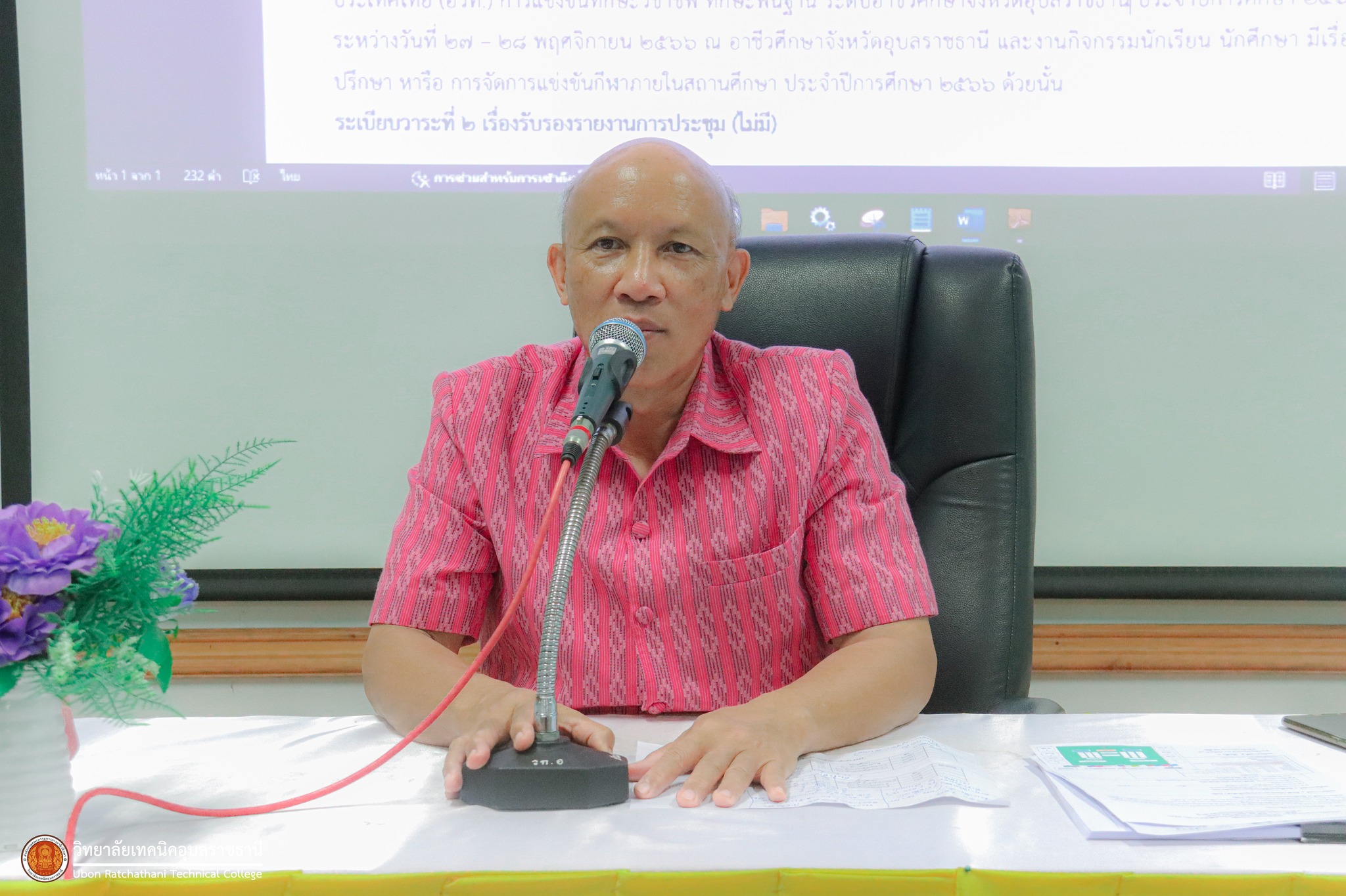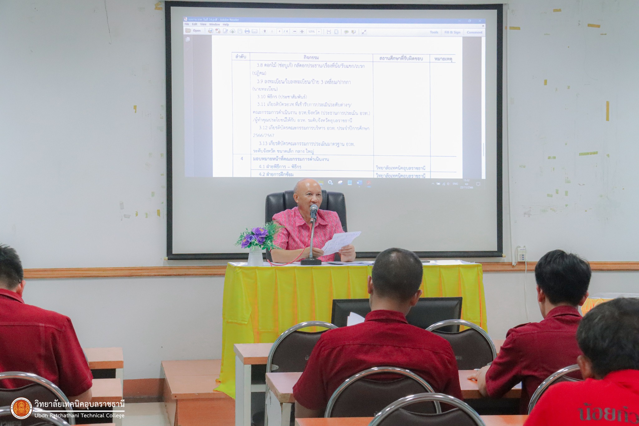 วันที่ ๒๒ พฤศจิกายน ๒๕๖๖ เวลา ๑๕.๐๐ น. นายธาตรี พิบูลมณฑา ผู้อำนวยการวิทยาลัยเทคนิคอุบลราชธานี มอบหมายให้ นายไวพจน์ ศรีธัญ รองผู้อำนวยการฝ่ายพัฒนากิจการนักเรียนนักศึกษา เป็นประธานในการประชุมเตรียมความพร้อมการจัดงานประชุมวิชาการองค์การนักวิชาชีพในอนาคตแห่งประเทศไทย (อวท.) การแข่งขันทักษะวิชาชีพและทักษะพื้นฐาน ระดับอาชีวศึกษาจังหวัดอุบลราชธานี ประจำปีการศึกษา ๒๕๖๖ และการจัดแข่งขันกีฬาภายในสถานศึกษา ประจำปีการศึกษา ๒๕๖๖ ณ ห้องประชุมบัวฟ้า โดยมี นายเจริญพร เจตอธิการ หัวหน้างานกิจกรรมนักเรียนนักศึกษา พร้อมด้วยหัวหน้าแผนกวิชา หัวหน้างาน ครู บุคลากรทางการศึกษา และนักศึกษา องค์การนักวิชาชีพในอนาคตแห่งประเทศไทย วิทยาลัยเทคนิคอุบลราชธานี เข้าร่วมการประชุมอย่างพร้อมเพรียง ทั้งนี้เพื่อให้การจัดงานประชุมวิชาการองค์การนักวิชาชีพในอนาคตแห่งประเทศไทย (อวท.) การแข่งขันทักษะวิชาชีพและทักษะพื้นฐาน ระดับอาชีวศึกษาจังหวัดอุบลราชธานี ประจำปีการศึกษา ๒๕๖๖ และการจัดการแข่งขันกีฬาภายในสถานศึกษา ประจำปีการศึกษา ๒๕๖๖ เป็นไปด้วยความเรียบร้อยต่อไป