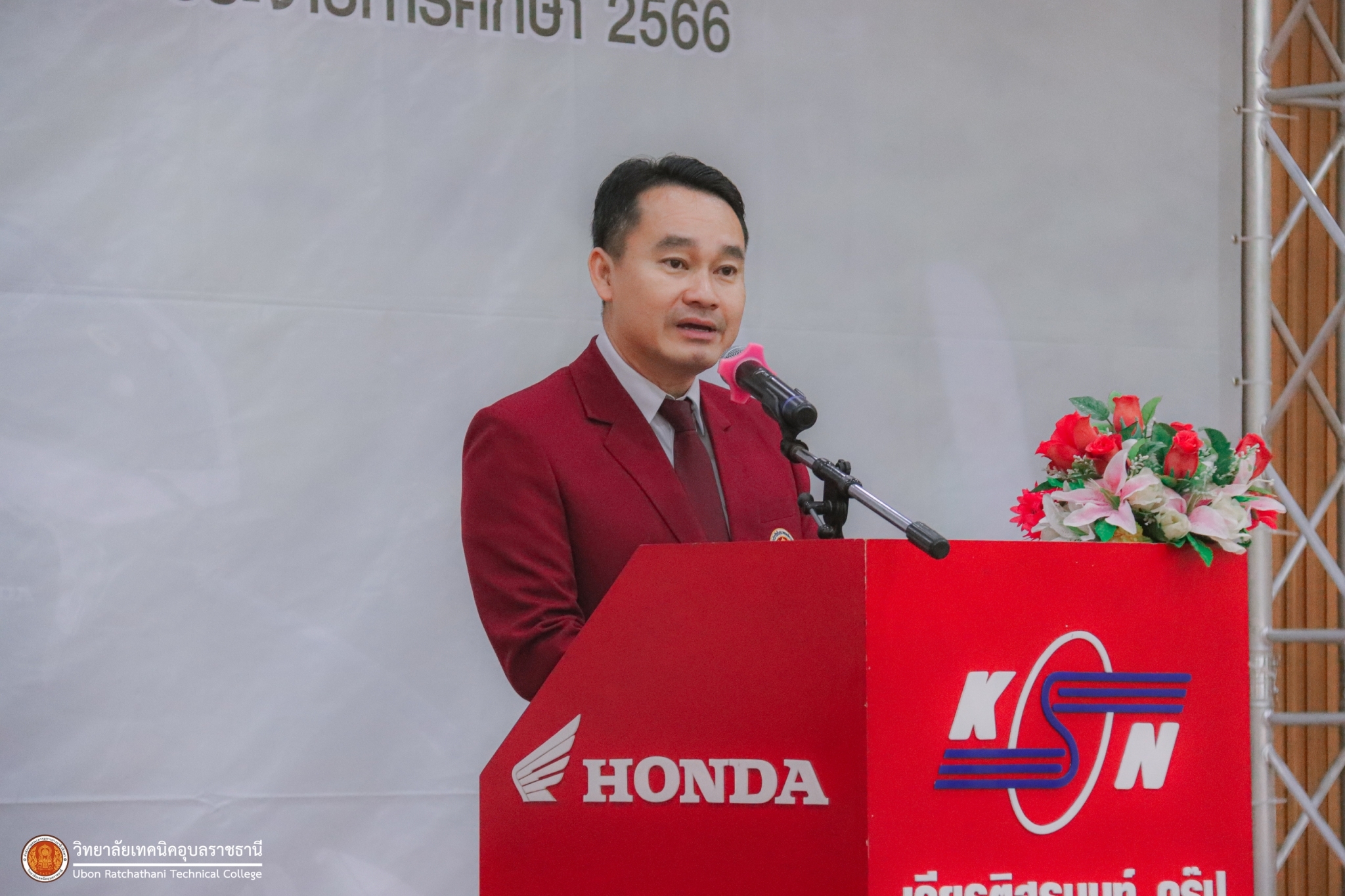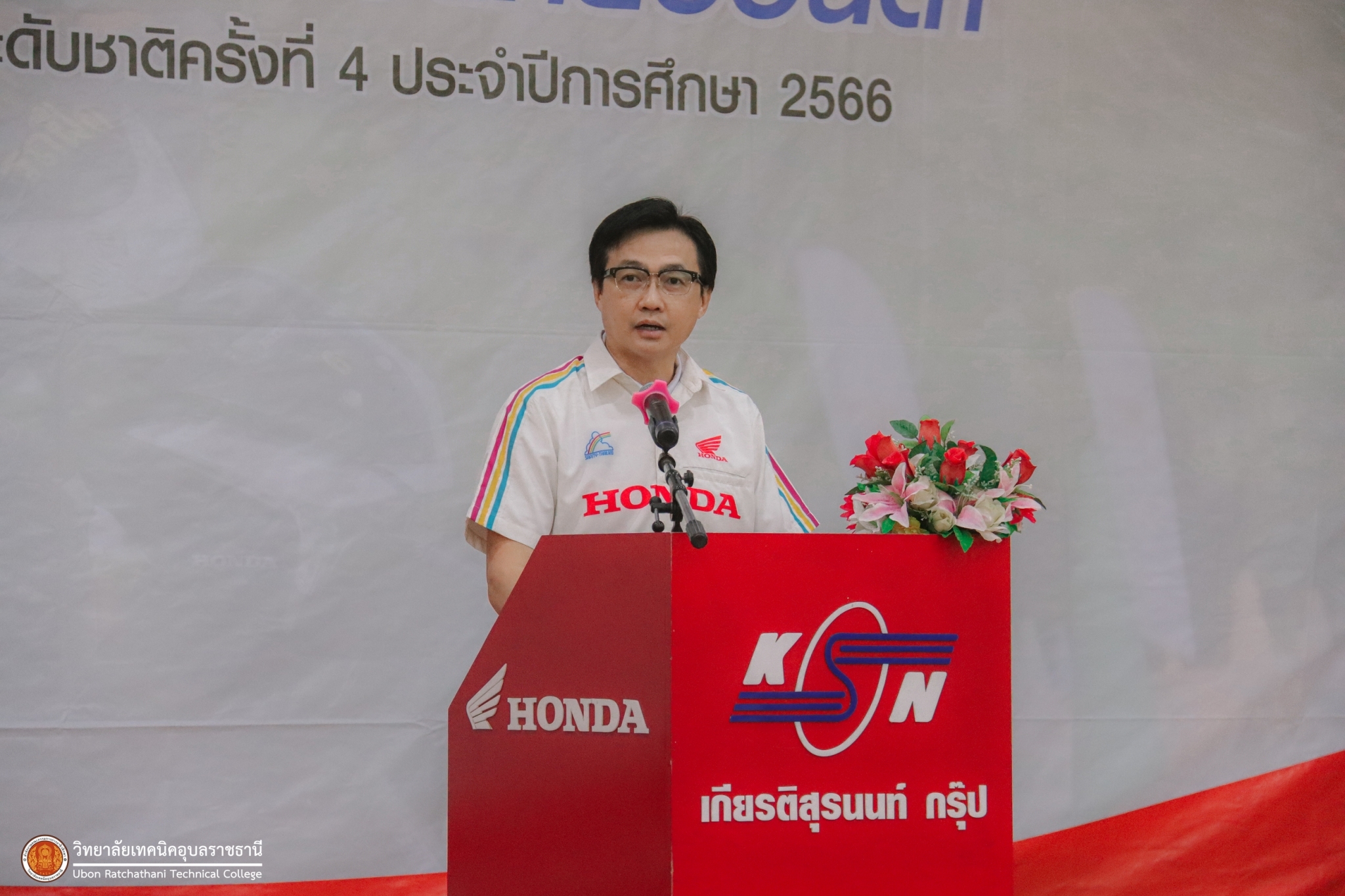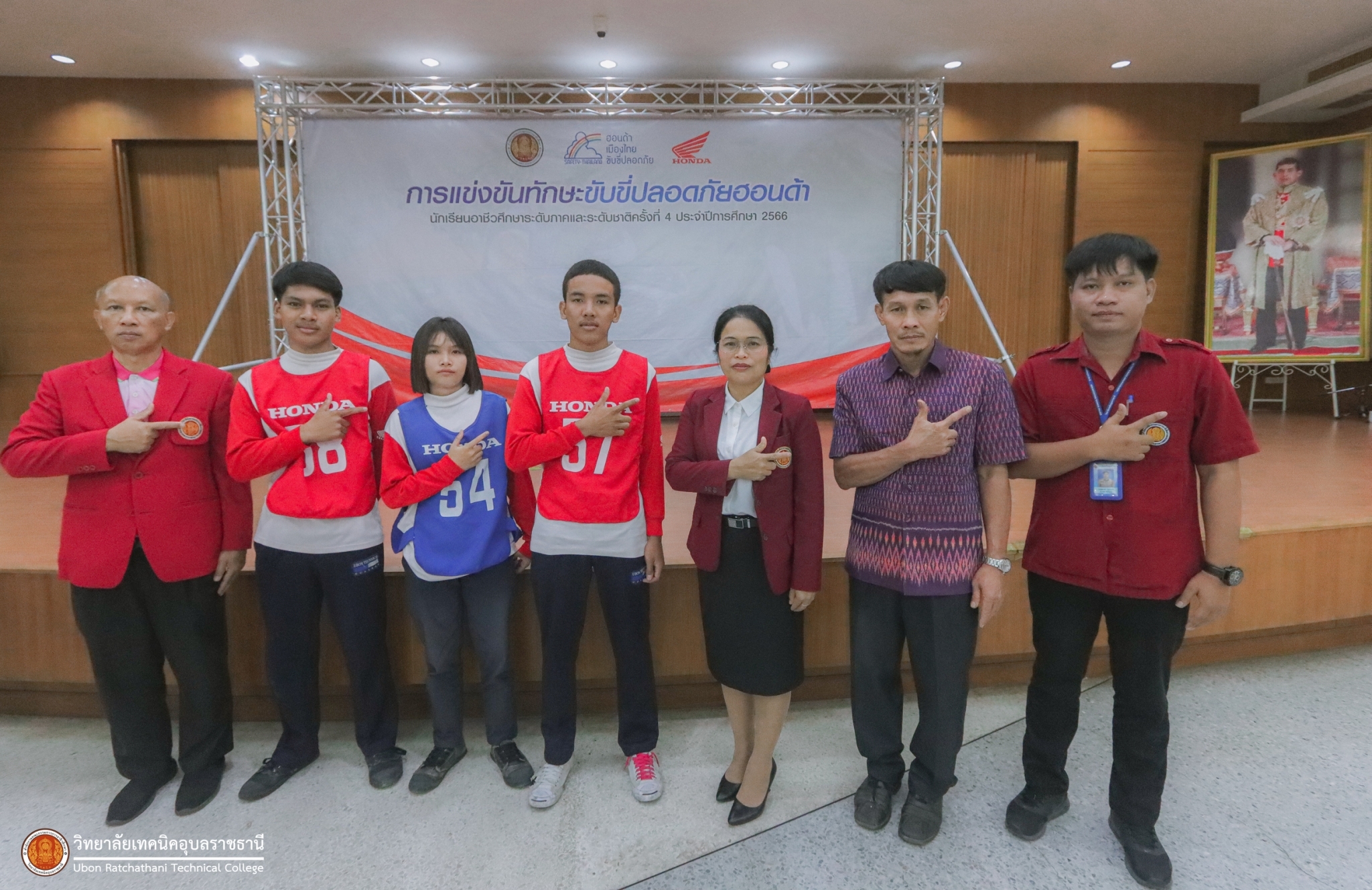 วันที่ ๒๓ พฤศจิกายน ๒๕๖๖ เวลา ๐๙.๐๐ น. นายธาตรี พิบูลมณฑา ผู้อำนวยการวิทยาลัยเทคนิคอุบลราชธานี ปฏิบัติหน้าที่ ผู้อำนวยการสำนักงานอาชีวศึกษาจังหวัดอุบลราชธานี มอบหมายให้ นายไวพจน์ ศรีธัญ รองผู้อำนวยการฝ่ายพัฒนากิจการนักเรียนนักศึกษา นางสาวสายฝน สาระผล รองผู้อำนวยการฝ่ายบริหารทรัพยากร นายกตนนท์ นาทัน หัวหน้าแผนกวิชาช่างยนต์/เครื่องกล เข้าร่วมพิธีเปิดการแข่งขันทักษะขับขี่ปลอดภัยฮอนด้า ครั้งที่ ๔ ประจำปีการศึกษา ๒๕๖๖ (ภาคตะวันออกเฉียงเหนือ) ณ ศูนย์ฝึกขับขี่ปลอดภัยฮอนด้า เกียรติสุรนนท์อุบลราชธานี ในการนี้ได้รับเกียรติจาก นายสง่า แต่เชื้อสาย ผู้ช่วยเลขาธิการคณะกรรมการการอาชีวศึกษา เป็นประธานในพิธี โดยมี นายสมเกียรติ หงส์เทศากร หัวหน้าเจ้าหน้าที่บริหารกลุ่มงานส่งเสริมการขับขี่ปลอดภัย บริษัท ไทยฮอนด้า จำกัด นายกิตติพล เกียรติสุรนนท์ รองกรรมการผู้จัดการ เกียรติสุรนนท์ กรุ๊ป พร้อมด้วยคณะผู้บริหารสถานศึกษา ครู และบุคลากรทางการศึกษา ในสังกัดสำนักงานอาชีวศึกษาจังหวัดอุบลราชธานี เข้าร่วมพิธีอย่างพร้อมเพรียง ทั้งนี้เพื่อพัฒนาทักษะการขับขี่ รวมทั้งการแลกเปลี่ยนความรู้ซึ่งกันและกัน เพื่อที่จะได้เผยแพร่ความรู้การขับขี่ปลอดภัยสู่สังคมอย่างมีประสิทธิภาพสูงสุดและสืบไปอย่างยั่งยืน