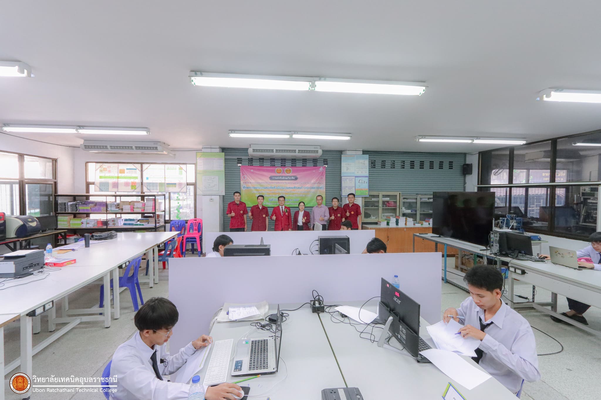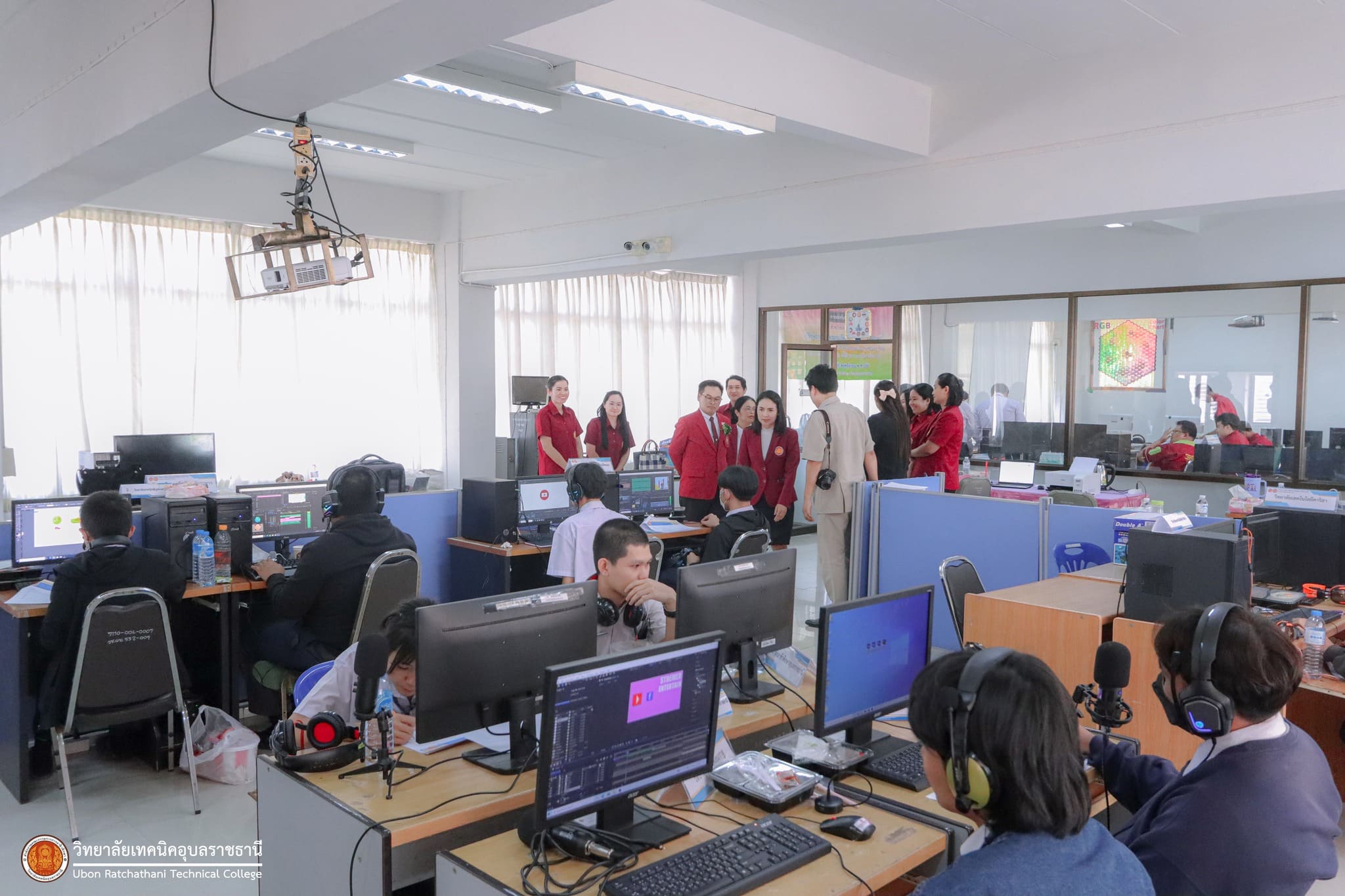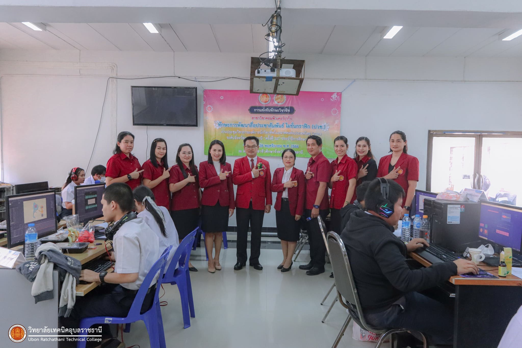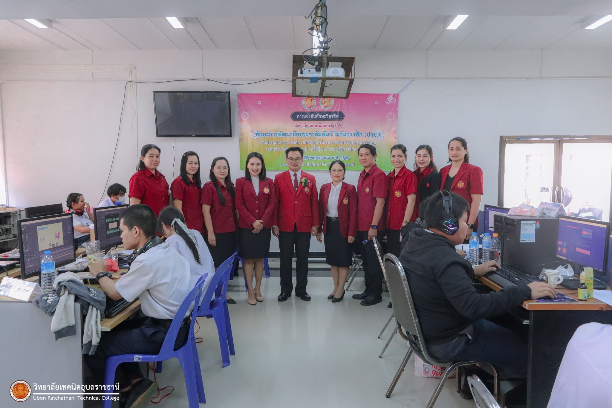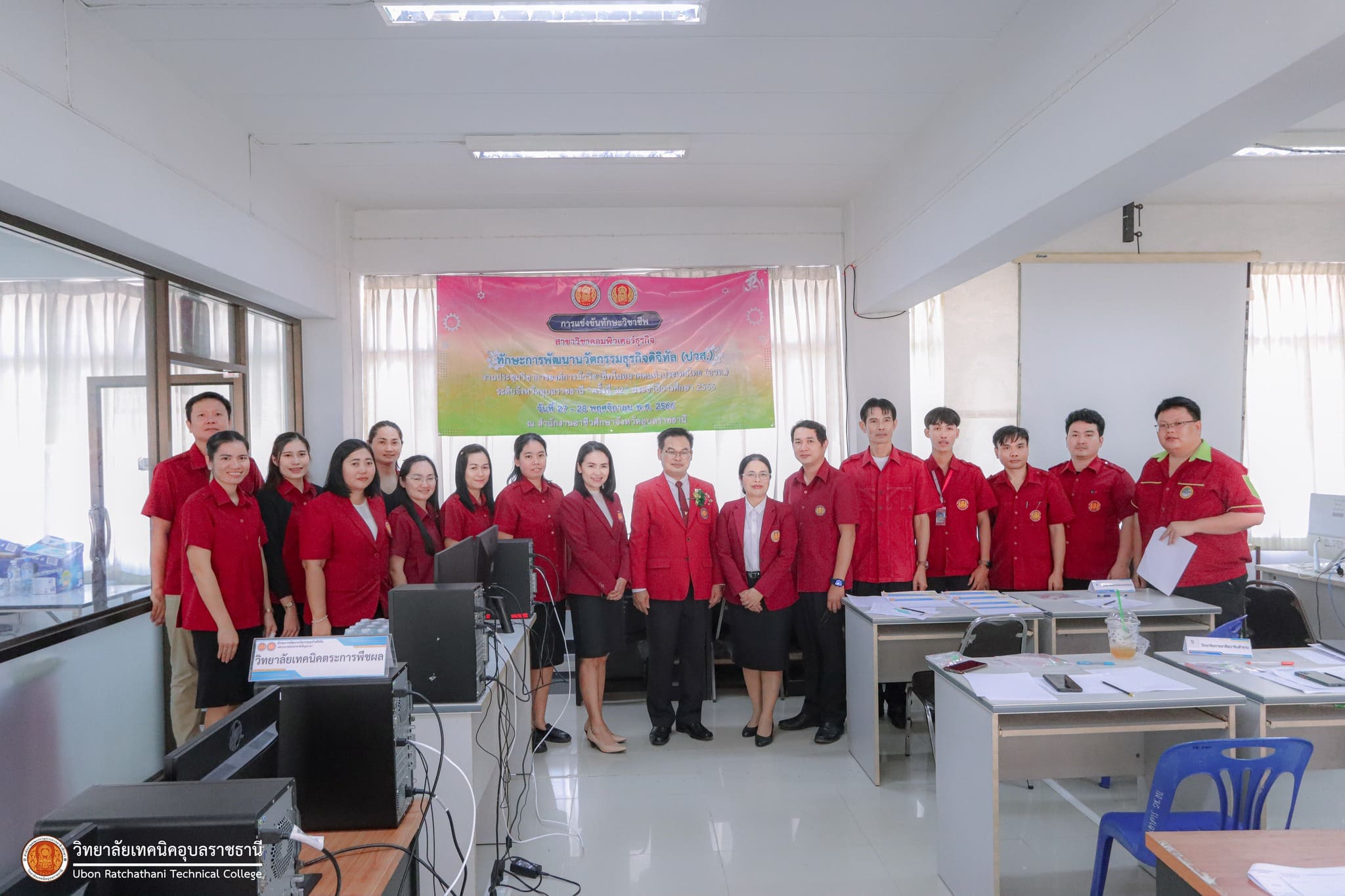 วันที่ ๒๗ พฤศจิกายน ๒๕๖๖ เวลา ๑๓.๓๐ น. นายธาตรี พิบูลมณฑา ผู้อำนวยการวิทยาลัยเทคนิคอุบลราชธานี ปฏิบัติหน้าที่ผู้อำนวยการสำนักงานอาชีวศึกษาจังหวัดอุบลราชธานี มอบหมายให้ นายนิรันดร์ สมมุติ ผู้อำนวยการวิทยาลัยเทคนิคนครอุบลราชธานี พร้อมด้วย นางสาวสายฝน สาระผล รองผู้อำนวยการฝ่ายบริหารทรัพยากร เข้าตรวจเยี่ยมคณะครูผู้ควบคุม และนักเรียน นักศึกษา ผู้เข้าร่วมการแข่งขันทักษะวิชาชีพ ซึ่งได้แก่ ๑.ทักษะงานปูน (ปวช.) ทักษะงานไม้และงานสี (ปวช.) และทักษะประมาณราคางานก่อสร้าง (ปวช./ปวส.) ณ แผนกวิชาโยธา ๒.ทักษะการออกแบบและผลิตด้วยโปรแกรมคอมพิวเตอร์ CAD-CAM (ปวส.) ทักษะเขียนแบบเครื่องกลด้วยคอมพิวเตอร์ (ปวช.) ทักษะออกแบบและเขียนแบบเครื่องกลด้วยคอมพิวเตอร์ (ปวส.) และทักษะมาตรวิทยามิติ (ปวส.) ณ แผนกวิชาช่างกลโรงงาน ๓.ทักษะงานกลึงชิ้นงาน (ปวช.) ทักษะการพัฒนานวัตกรรมธุรกิจดิจิทัล (ปวส.) และทักษะการพัฒนาสื่อประชาสัมพันธ์ โมชั่นกราฟิก (ปวช.) ณ วิทยาลัยเทคนิคนครอุบลราชธานี ทั้งนี้การแข่งขันทักษะทุกรายการนั้น มีวัตถุประสงค์ในการคัดเลือกตัวแทนนักเรียน นักศึกษา ระดับอาชีวศึกษาจังหวัดอุบลราชธานี เพื่อไปเข้าร่วมการแข่งขันทักษะวิชาชีพและทักษะพื้นฐาน ระดับภาคต่อไป