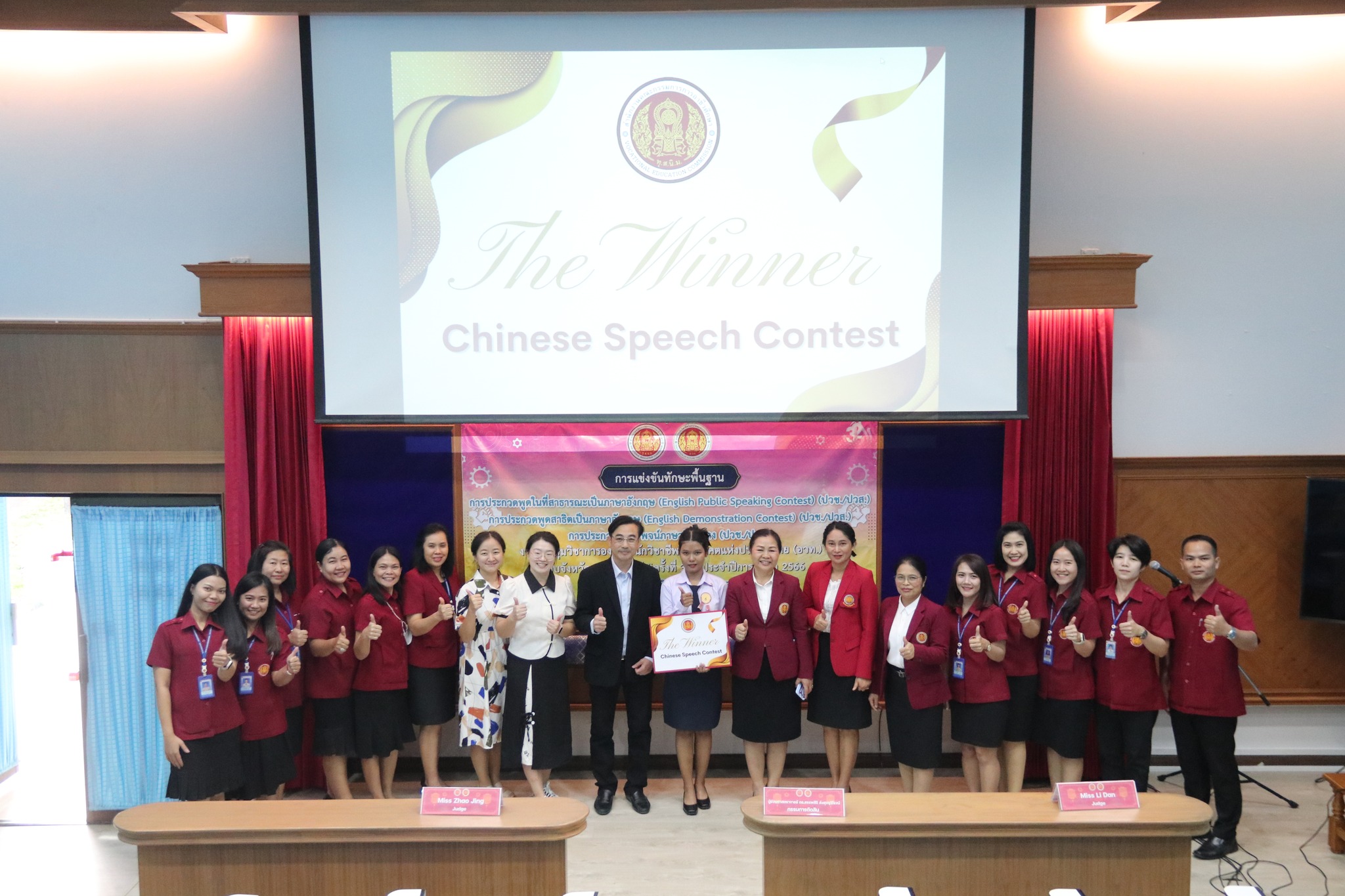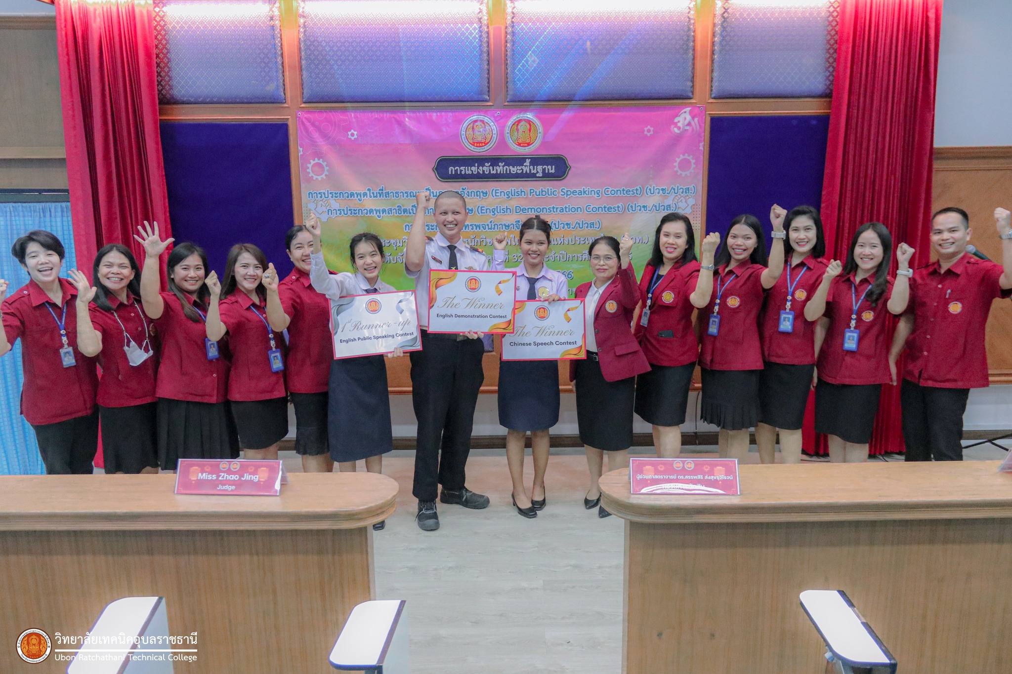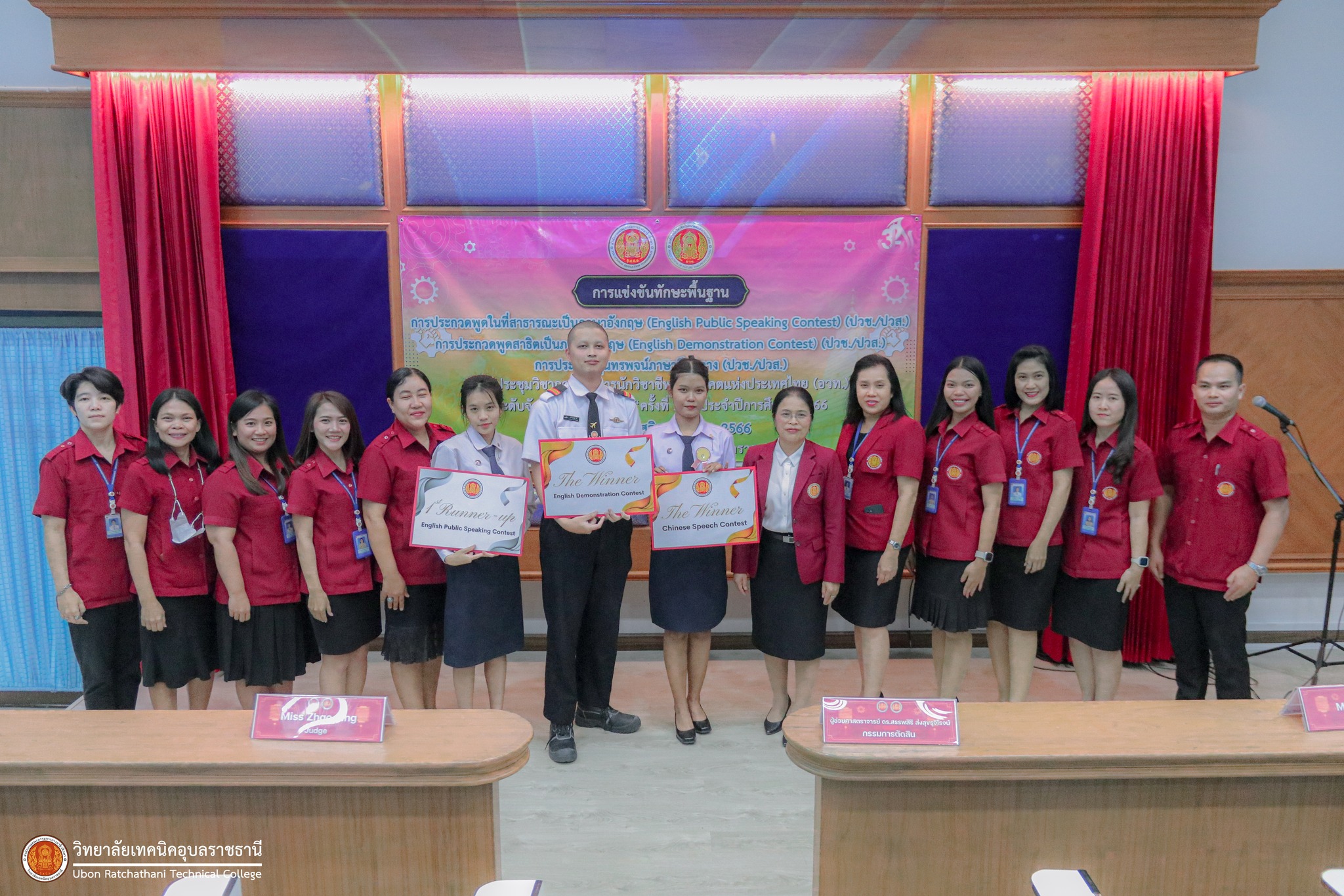วันที่ ๒๗ พฤศจิกายน ๒๕๖๖ เวลา ๑๕.๐๐ น. นายธาตรี พิบูลมณฑา ผู้อำนวยการวิทยาลัยเทคนิคอุบลราชธานี ปฏิบัติหน้าที่ ผู้อำนวยการสำนักงานอาชีวศึกษาจังหวัดอุบลราชธานี มอบหมายให้ นางชัญญณัท จันเทพา ผู้อำนวยการวิทยาลัยเทคนิคเขมราฐ มอบเกียรติบัตรและแสดงความยินดีให้แก่นักเรียน นักศึกษา ผู้เข้าร่วมงานประชุมวิชาการองค์การนักวิชาชีพในอนาคตแห่งประเทศไทย (อวท.) ระดับจังหวัดอุบลราชธานี การแข่งขันทักษะพื้นฐานด้านภาษาต่างประเทศ ณ ห้องประชุมบัวฟ้า ซึ่งผลจากการแข่งขันปรากฏว่าวิทยาลัยเทคนิคอุบลราชธานี ได้รับรางวัลดังต่อไปนี้ ๑.การประกวดกล่าวสุนทรพจน์ภาษาจีนกลาง ( Chinese Public Speaking) ได้รับรางวัลชนะเลิศ ๒.การประกวดพูดสาธิตเป็นภาษาอังกฤษ (English Demonstration Contest) ได้รับรางวัลชนะเลิศ และ ๓.การประกวดพูดในที่สาธารณะเป็นภาษาอังกฤษ (English Public Speaking) ได้รับรางวัลรองชนะเลิศ อันดับ ๑ นำความภาคภูมิใจมาสู่คณะผู้บริหาร ครู บุคลากรทางการศึกษา และนักเรียน นักศึกษา วิทยาลัยเทคนิคอุบลราชธานี เป็นอย่างยิ่ง ทั้งนี้มีนางสาวสายฝน สาระผล รองผู้อำนวยการฝ่ายบริหารทรัพยากร พร้อมด้วยคณะครู และนักเรียน นักศึกษา ในสังกัดสำนักงานอาชีวศึกษาจังหวัดอุบลราชธานี ร่วมแสดงความยินดีอย่างพร้อมเพรียง