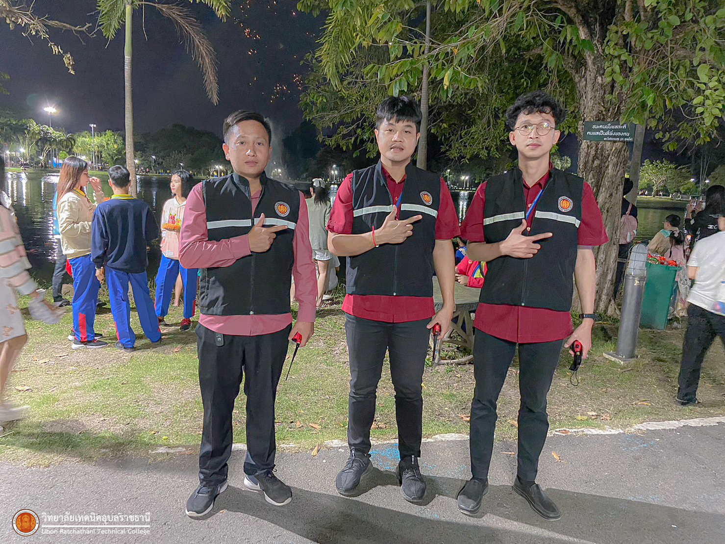 วันที่ ๒๗ พฤศจิกายน ๒๕๖๖ เวลา ๑๙.๓๐ น. นายธาตรี พิบูลมณฑา ผู้อำนวยการวิทยาลัยเทคนิคอุบลราชธานี มอบหมายให้ นายสรรพสิทธิ์ ละออเอี่ยม หัวหน้างานปกครอง พร้อมด้วยคณะครู และบุคลากรทางการศึกษาที่เกี่ยวข้อง ออกตรวจตราและเฝ้าระวังปัญหาความประพฤตินักเรียนและนักศึกษาในเทศกาลวันลอยกระทง ณ เขตพื้นที่อำเภอเมือง จังหวัดอุบลราชธานี ซึ่งได้แก่ ๑.บริเวณเวทีถนนคนเดิน ๒.ท่าน้ำวัดสุปัฏนารามวรวิหาร และ ๓.สวนสาธารณะหนองบัว ทั้งนี้เพื่อตรวจ ติดตาม ดูแลและเฝ้าระวังสถานการณ์ ปัญหาความประพฤตินักเรียน นักศึกษาในเขตพื้นที่จุดเสี่ยงต่างๆ ต่อไป