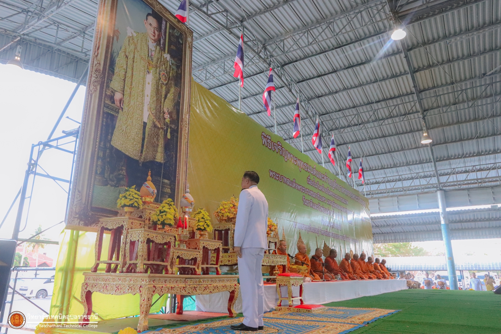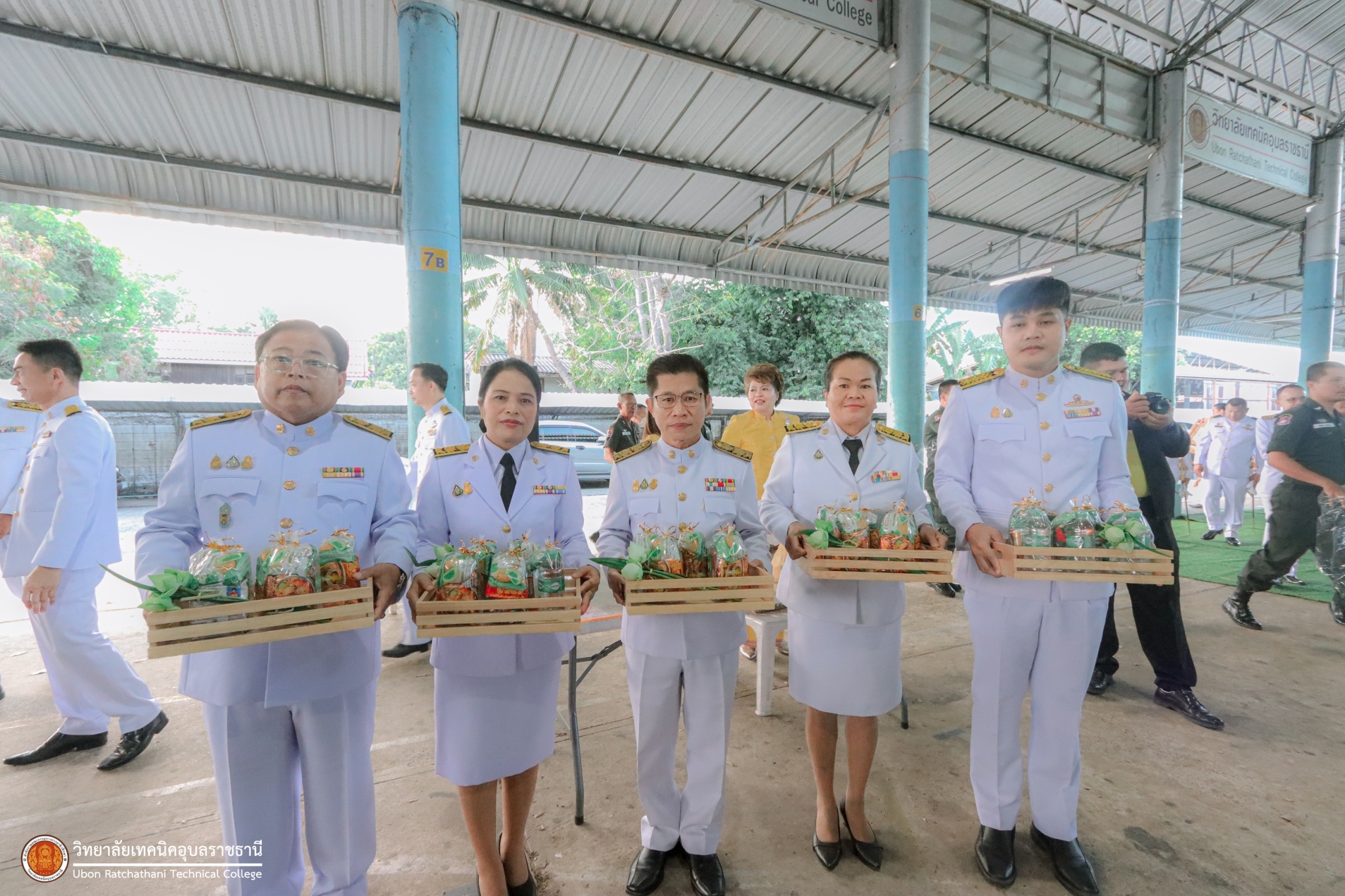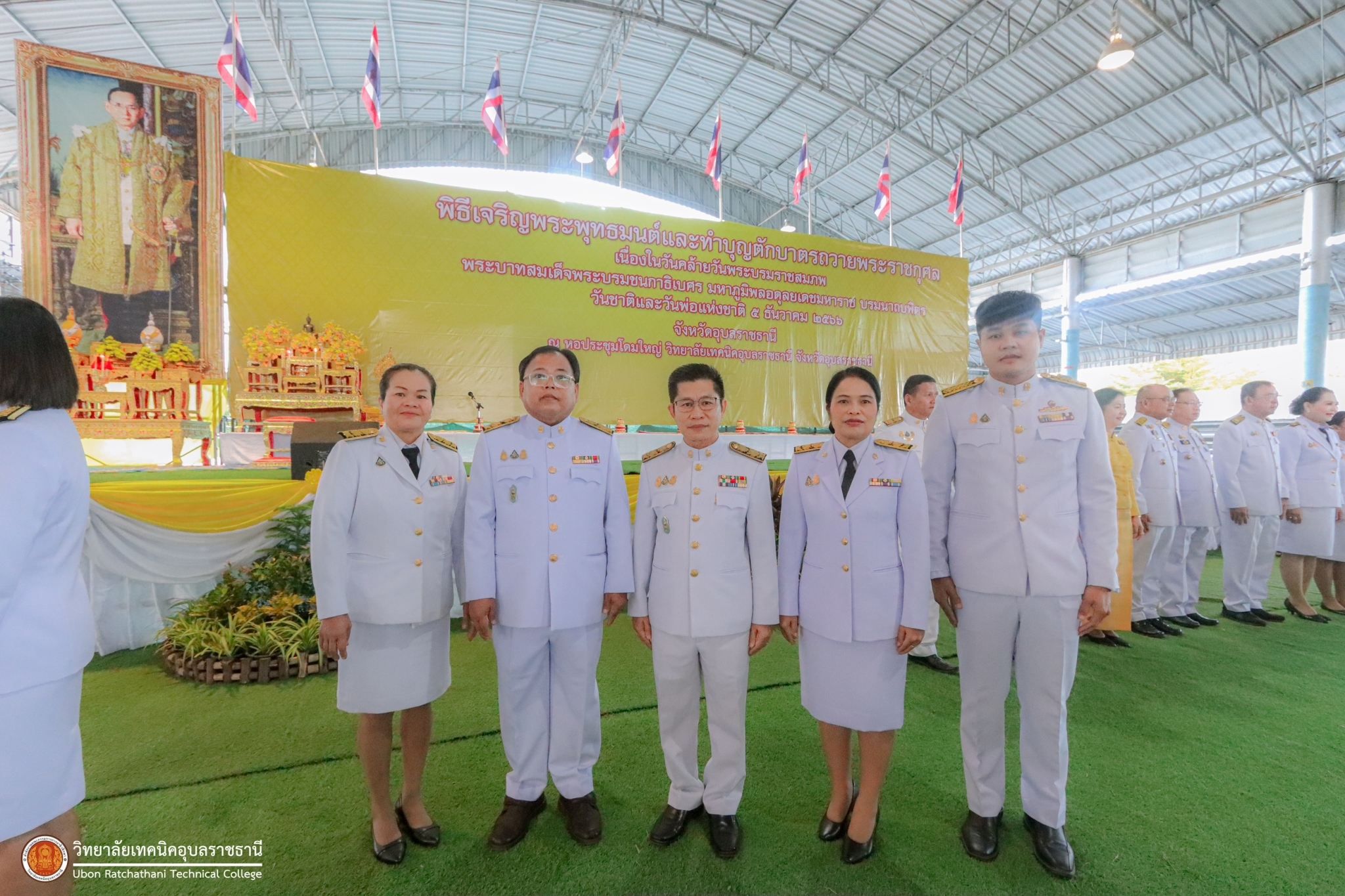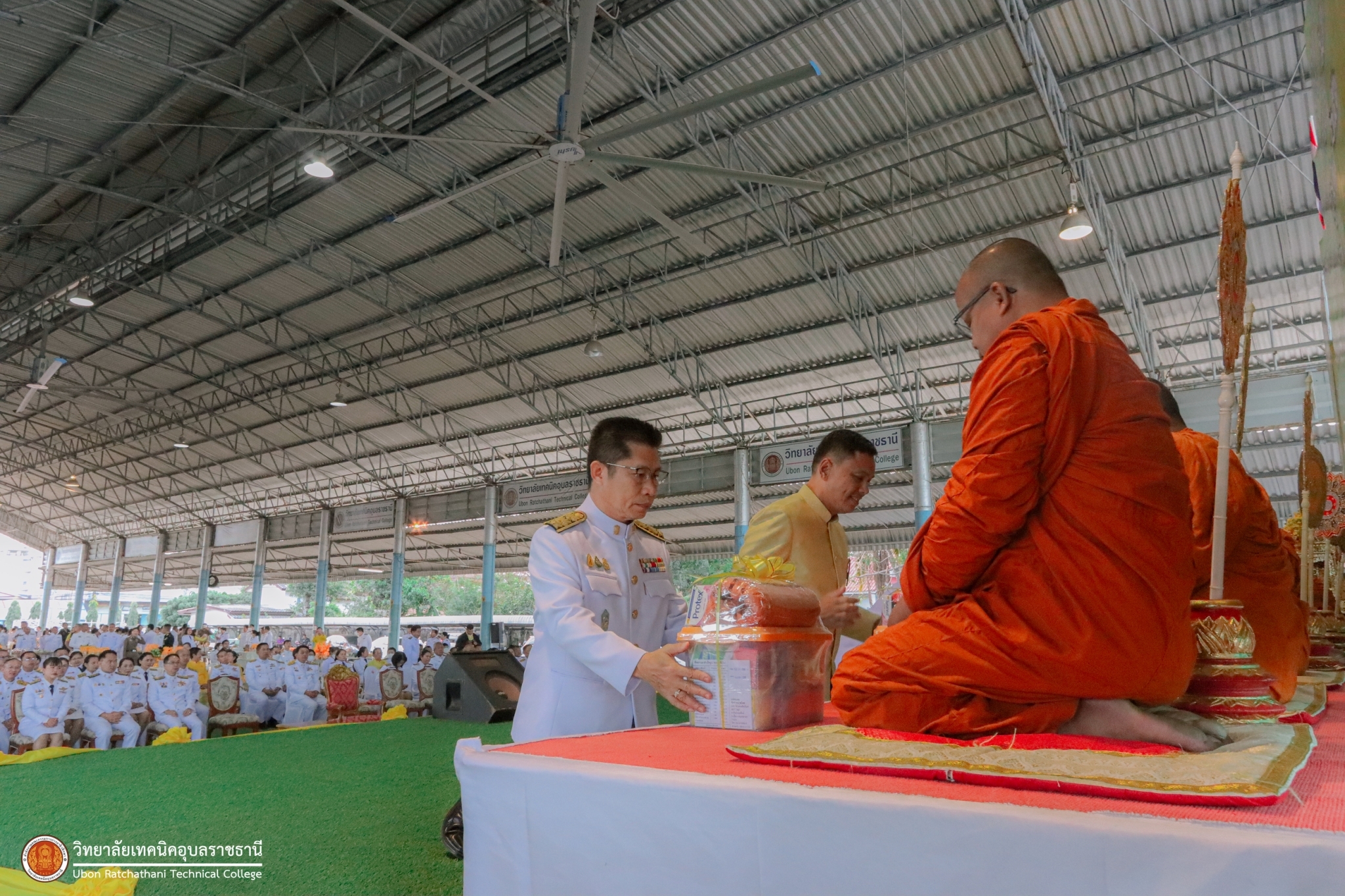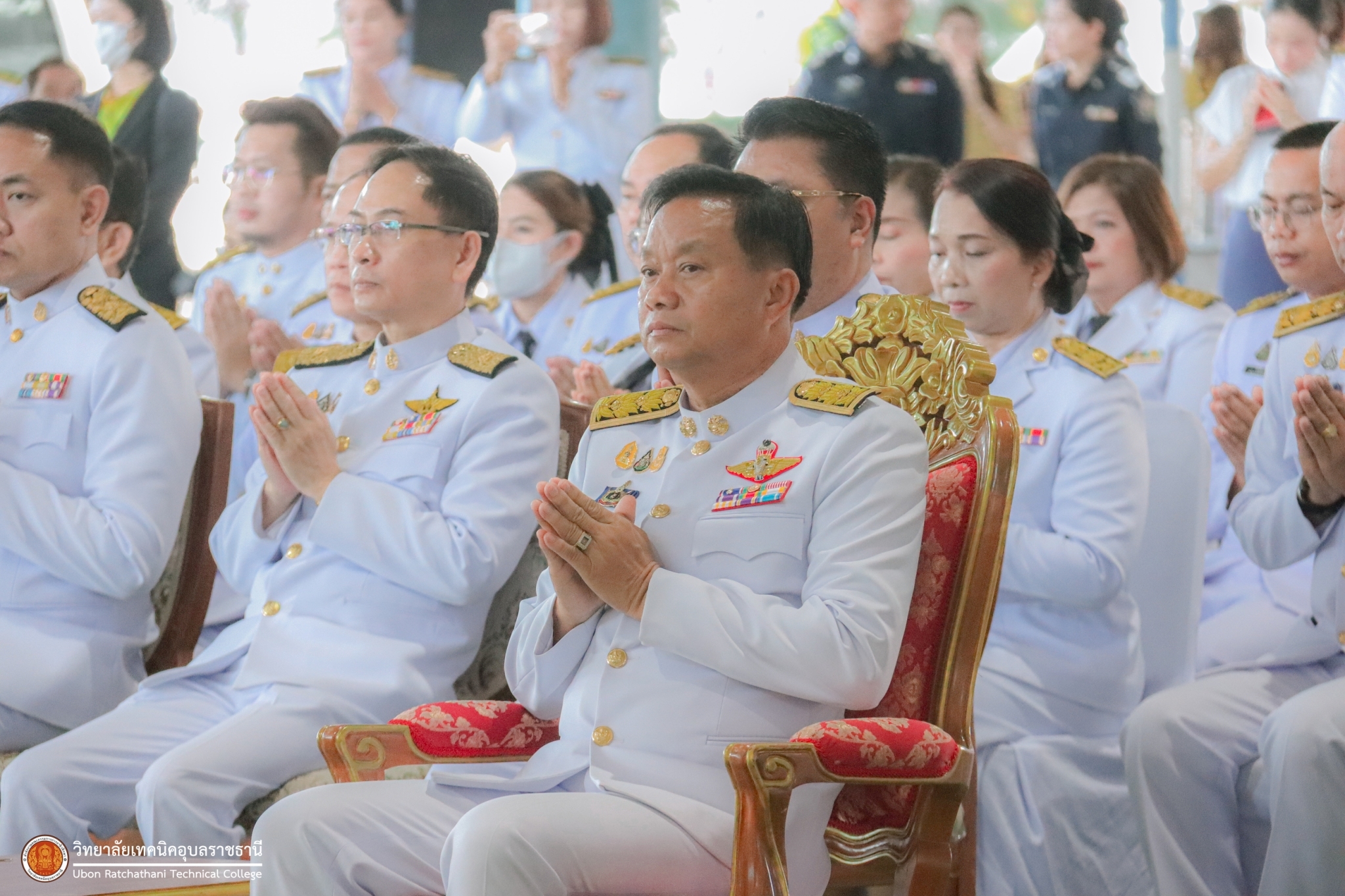 วันที่ ๕ ธันวาคม ๒๕๖๖ เวลา ๐๖.๐๐ น. นายธาตรี พิบูลมณฑา ผู้อำนวยการวิทยาลัยเทคนิคอุบลราชธานี พร้อมด้วย นายสุวิชา มั่นยืน รองผู้อำนวยการฝ่ายวิชาการ นางราตรี สะดีวงศ์ รองผู้อำนวยการฝ่ายแผนงานและความร่วมมือ นางสาวสายฝน สาระผล รองผู้อำนวยการฝ่ายบริหารทรัพยากร และนายสรรพสิทธิ์ ละออเอี่ยม ครูแผนกวิชาช่างยนต์/เครื่องกล เข้าร่วมพิธีเจริญพระพุทธมนต์และทำบุญตักบาตรถวายพระราชกุศล เนื่องในวันคล้ายวันพระบรมราชสมภพ พระบาทสมเด็จพระบรมชนกาธิเบศร มหาภูมิพลอดุลยเดชมหาราช บรมนาถบพิตร วันชาติและวันพ่อแห่งชาติ ๕ ธันวาคม ๒๕๖๖ ณ หอประชุมโดมใหญ่ วิทยาลัยเทคนิคอุบลราชธานี โดยได้รับเกียรติจาก นายศุภศิษย์ กอเจริญยศ ผู้ว่าราชการจังหวัดอุบลราชธานี เป็นประธานในพิธี มีหัวหน้าส่วนราชการ และหน่วยงานต่างๆ เข้าร่วมพิธีอย่างพร้อมเพรียง ทั้งนี้เพื่อแสดงความจงรักภักดี และน้อมรำลึกในพระมหากรุณาธิคุณที่พระองค์มีต่อพสกนิกรชาวไทย