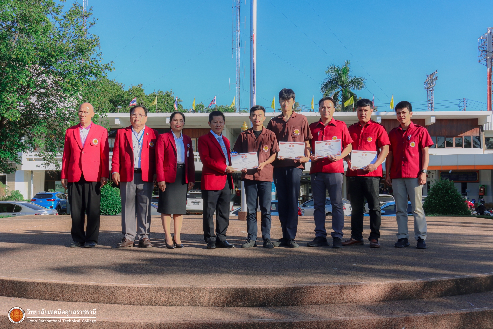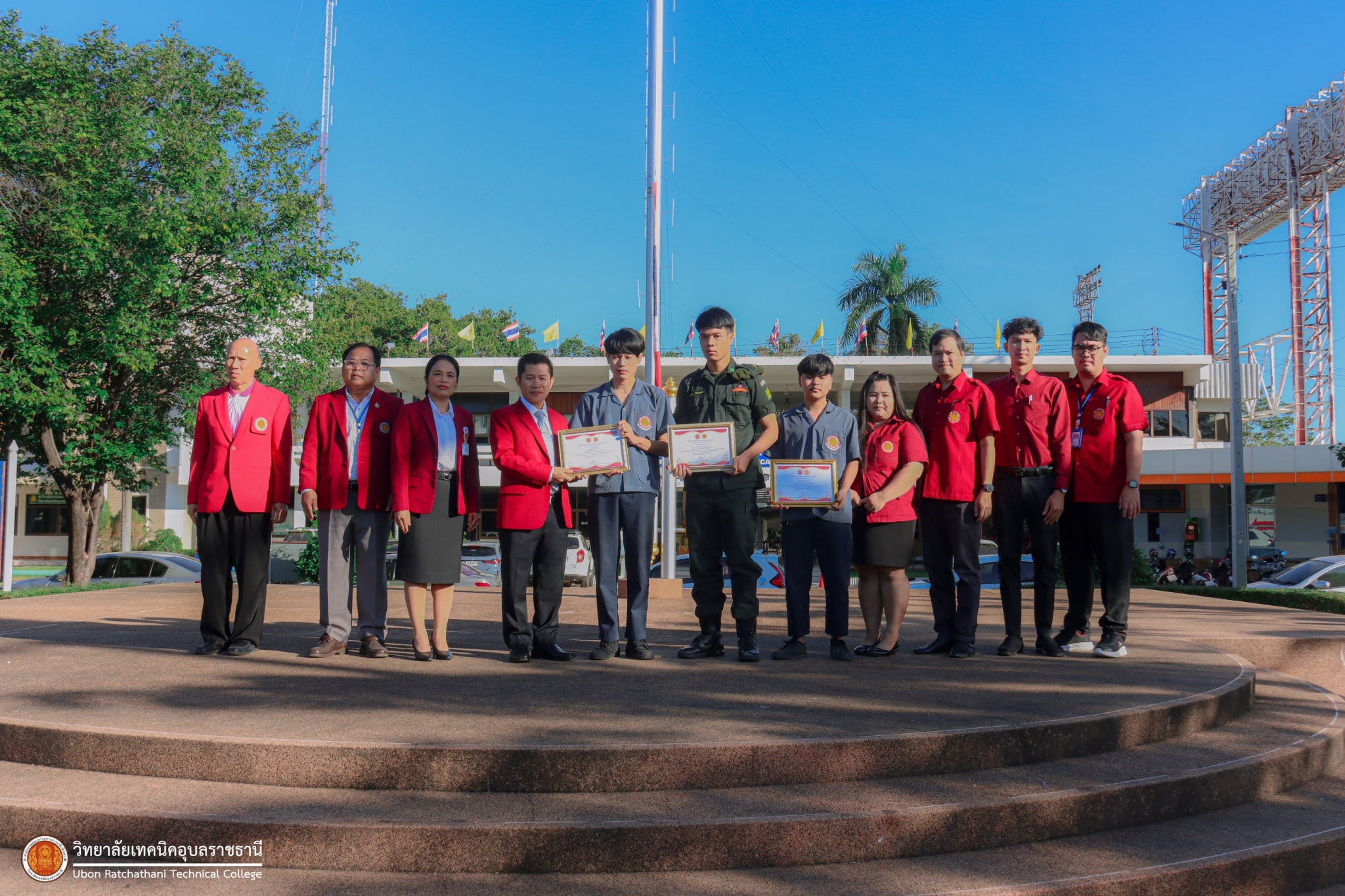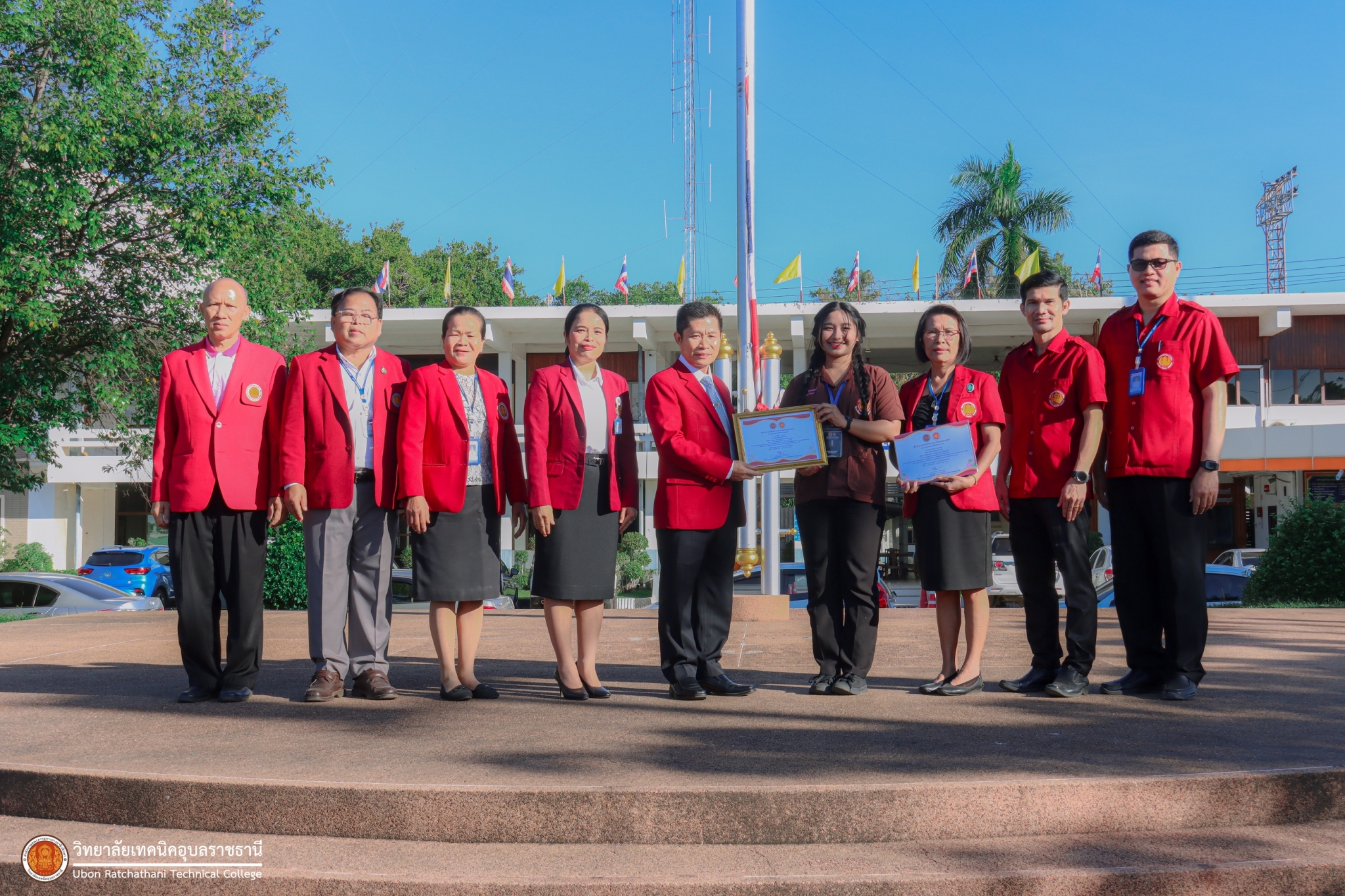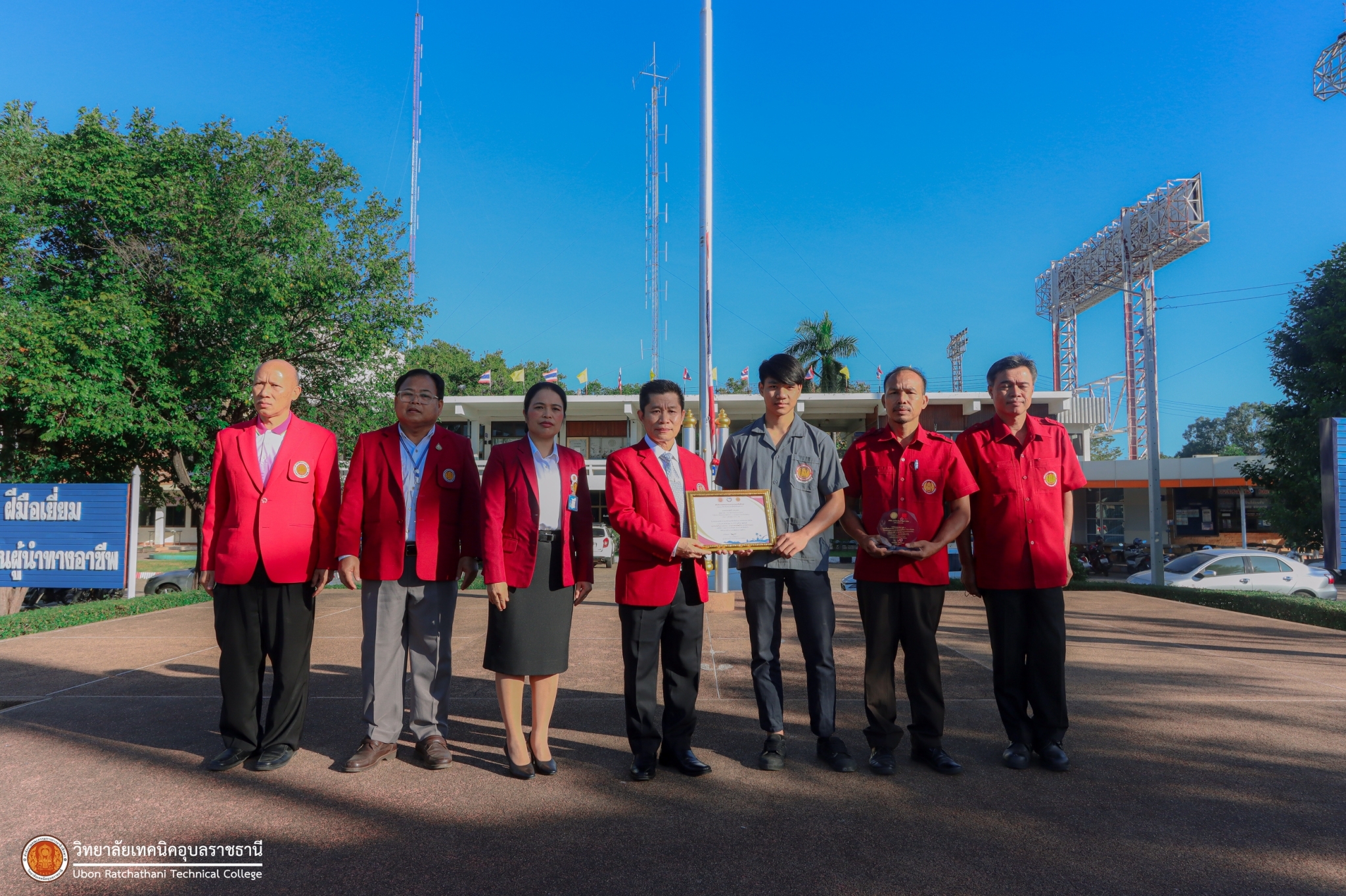 วันที่ ๖ ธันวาคม ๒๕๖๖ เวลา ๐๗.๓๐ น. นายธาตรี พิบูลมณฑา ผู้อำนวยการวิทยาลัยเทคนิคอุบลราชธานี ให้เกียรติเป็นประธานในพิธีมอบเกียรติบัตรเชิดชูเกียรติแก่นักเรียน นักศึกษา วิทยาลัยเทคนิคอุบลราชธานี ณ ลานกิจกรรมหน้าเสาธง ในโอกาสที่ได้รับรางวัลชนะเลิศ จากการแข่งขันทักษะวิชาชีพและทักษะพื้นฐาน จำนวน ๓๒ ทักษะ ในงานประชุมวิชาการองค์การนักวิชาชีพในอนาคตแห่งประเทศไทย (อวท.) ระดับจังหวัดอุบลราชธานี ครั้งที่ ๓๒ ประจำปีการศึกษา ๒๕๖๖ และได้ไปแข่งขันต่อในระดับภาค โดยมี นายไวพจน์ ศรีธัญ รองผู้อำนวยการฝ่ายพัฒนากิจการนักเรียนนักศึกษา นายสุวิชา มั่นยืน รองผู้อำนวยการฝ่ายวิชาการ นางราตรี สะดีวงศ์ รองผู้อำนวยการฝ่ายแผนงานและความร่วมมือ นางสาวสายฝน สาระผล รองผู้อำนวยการฝ่ายบริหารทรัพยากร นำหัวหน้าแผนกวิชา หัวหน้างาน ครูผู้ควบคุม และบุคลากรทางการศึกษาที่เกี่ยวข้อง เข้าร่วมพิธีอย่างพร้อมเพรียง ทั้งนี้เพื่อเชิดชูเกียรติและแสดงความยินดีแก่นักเรียน นักศึกษา วิทยาลัยเทคนิคอุบลราชธานี ที่ได้รับรางวัลชนะเลิศ จากการแข่งขันทักษะวิชาชีพและทักษะพื้นฐาน ระดับจังหวัดอุบลราชธานี และได้ไปแข่งขันต่อในระดับภาคที่จังหวัดนครราชสีมาต่อไป