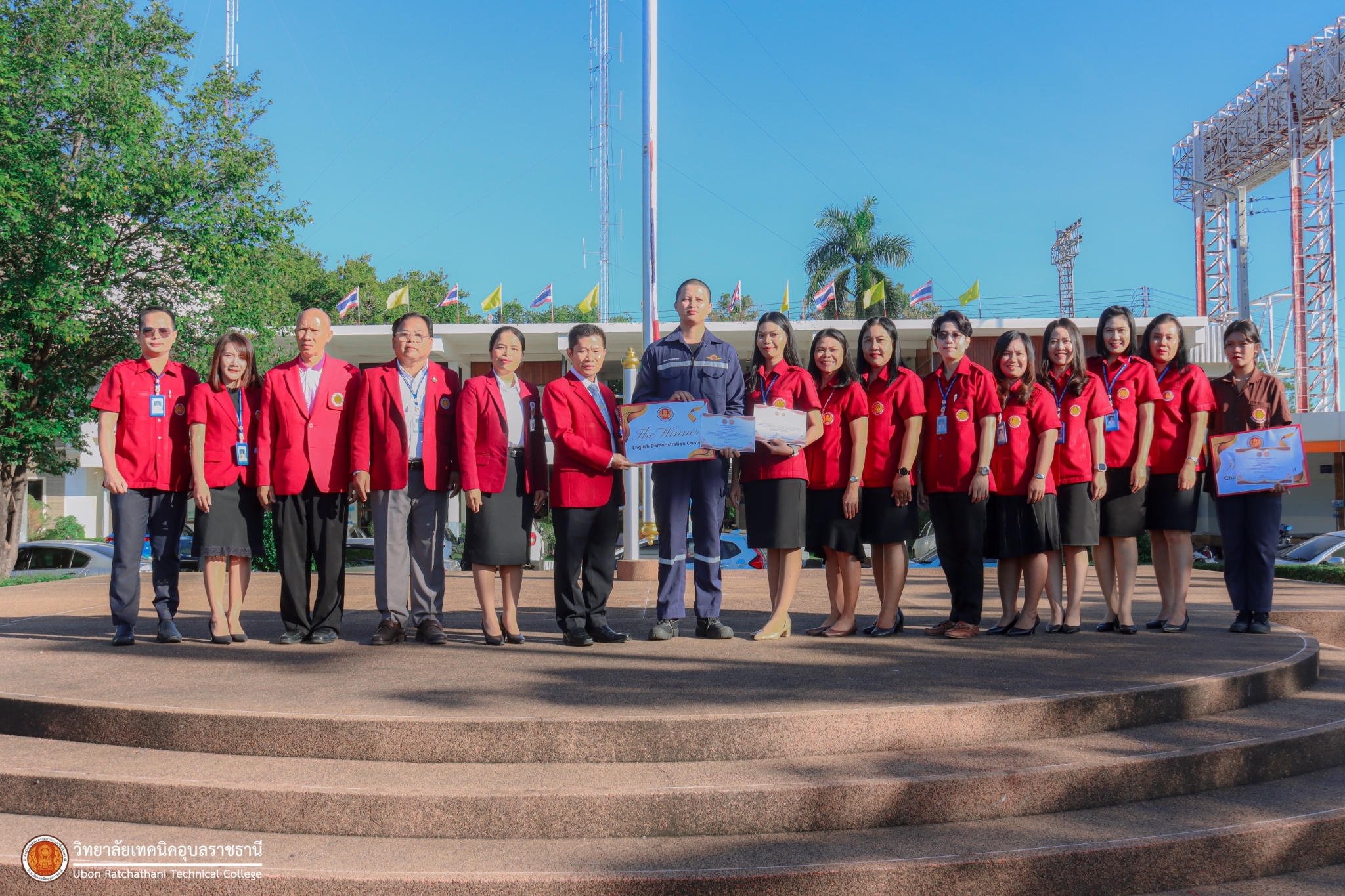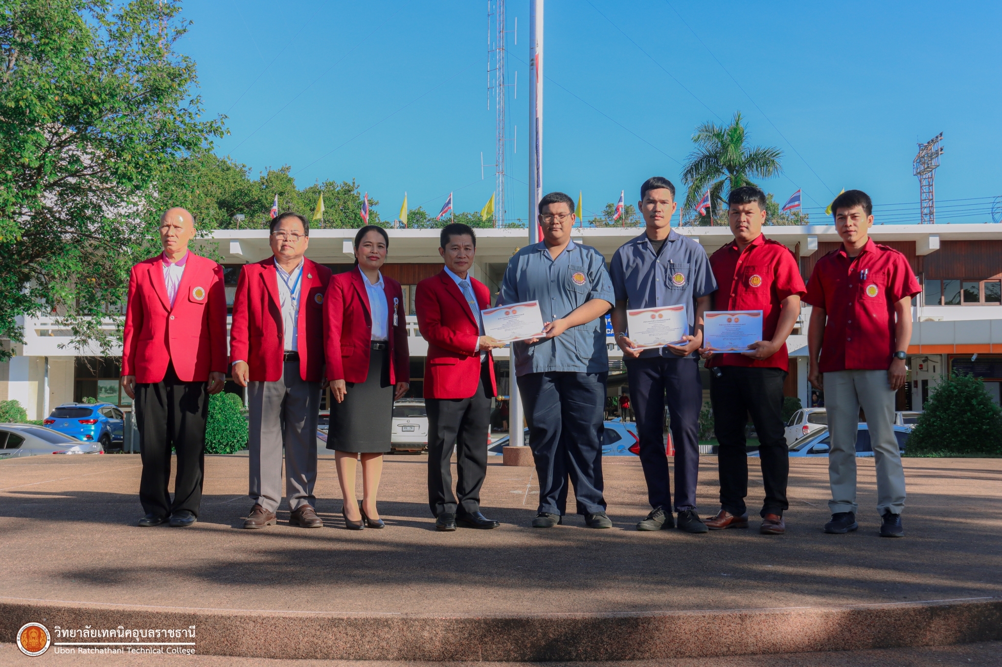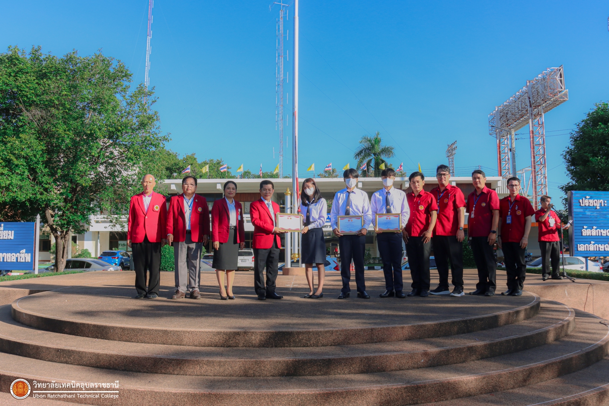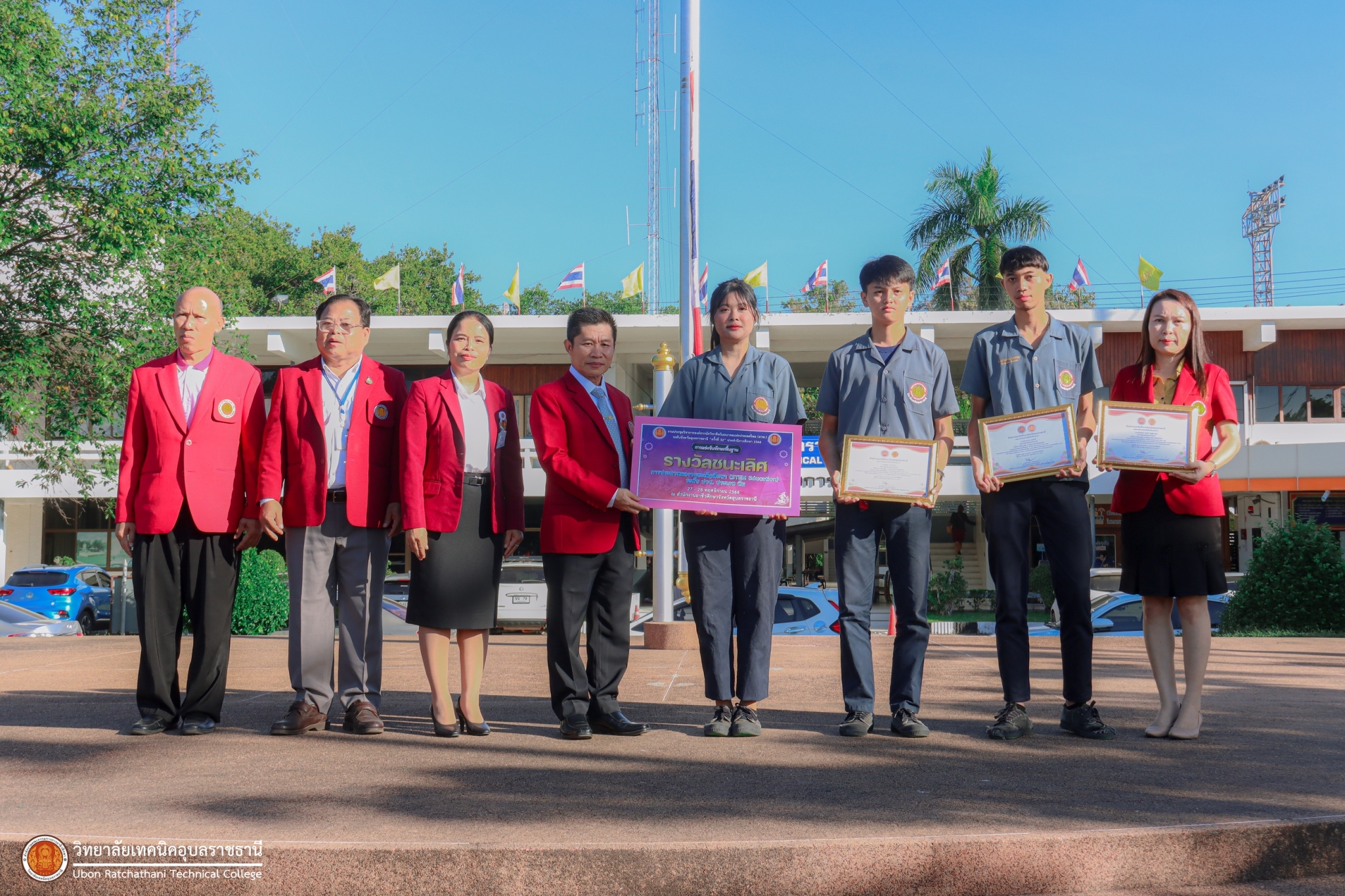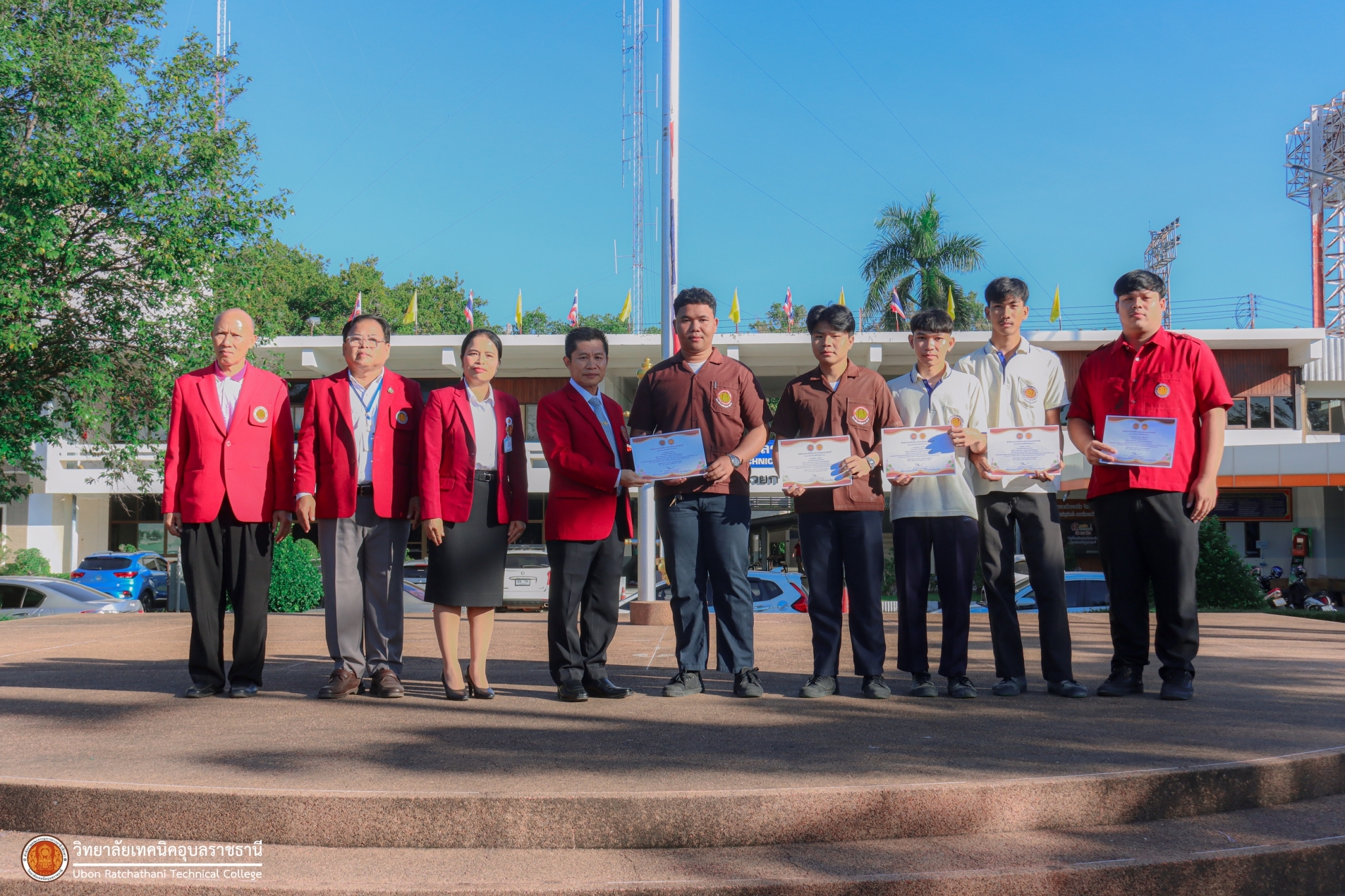 วันที่ ๖ ธันวาคม ๒๕๖๖ เวลา ๐๗.๓๐ น. นายธาตรี พิบูลมณฑา ผู้อำนวยการวิทยาลัยเทคนิคอุบลราชธานี ให้เกียรติเป็นประธานในพิธีมอบเกียรติบัตรเชิดชูเกียรติแก่นักเรียน นักศึกษา วิทยาลัยเทคนิคอุบลราชธานี ณ ลานกิจกรรมหน้าเสาธง ในโอกาสที่ได้รับรางวัลชนะเลิศ จากการแข่งขันทักษะวิชาชีพและทักษะพื้นฐาน จำนวน ๓๒ ทักษะ ในงานประชุมวิชาการองค์การนักวิชาชีพในอนาคตแห่งประเทศไทย (อวท.) ระดับจังหวัดอุบลราชธานี ครั้งที่ ๓๒ ประจำปีการศึกษา ๒๕๖๖ และได้ไปแข่งขันต่อในระดับภาค โดยมี นายไวพจน์ ศรีธัญ รองผู้อำนวยการฝ่ายพัฒนากิจการนักเรียนนักศึกษา นายสุวิชา มั่นยืน รองผู้อำนวยการฝ่ายวิชาการ นางราตรี สะดีวงศ์ รองผู้อำนวยการฝ่ายแผนงานและความร่วมมือ นางสาวสายฝน สาระผล รองผู้อำนวยการฝ่ายบริหารทรัพยากร นำหัวหน้าแผนกวิชา หัวหน้างาน ครูผู้ควบคุม และบุคลากรทางการศึกษาที่เกี่ยวข้อง เข้าร่วมพิธีอย่างพร้อมเพรียง ทั้งนี้เพื่อเชิดชูเกียรติและแสดงความยินดีแก่นักเรียน นักศึกษา วิทยาลัยเทคนิคอุบลราชธานี ที่ได้รับรางวัลชนะเลิศ จากการแข่งขันทักษะวิชาชีพและทักษะพื้นฐาน ระดับจังหวัดอุบลราชธานี และได้ไปแข่งขันต่อในระดับภาคที่จังหวัดนครราชสีมาต่อไป