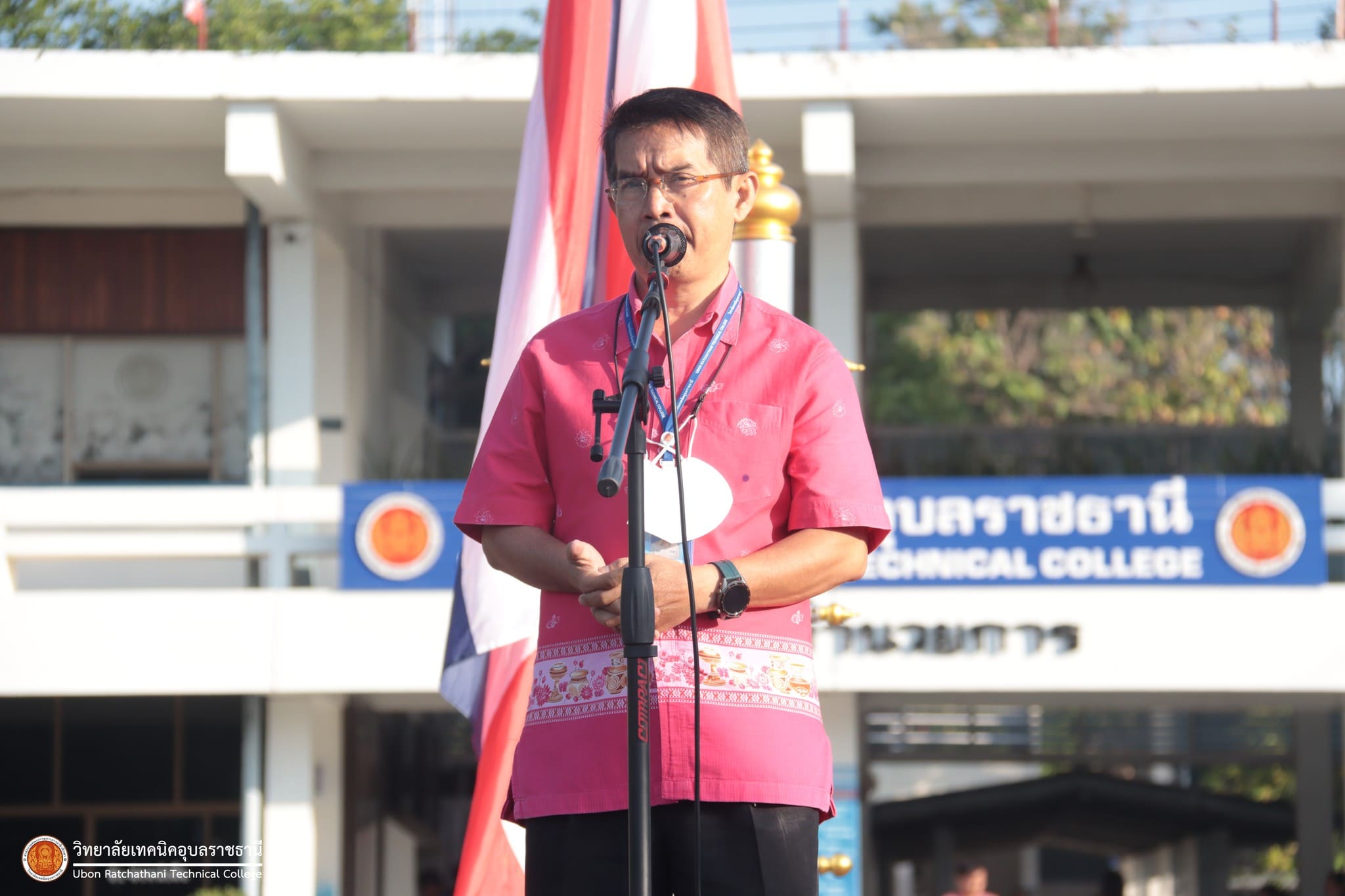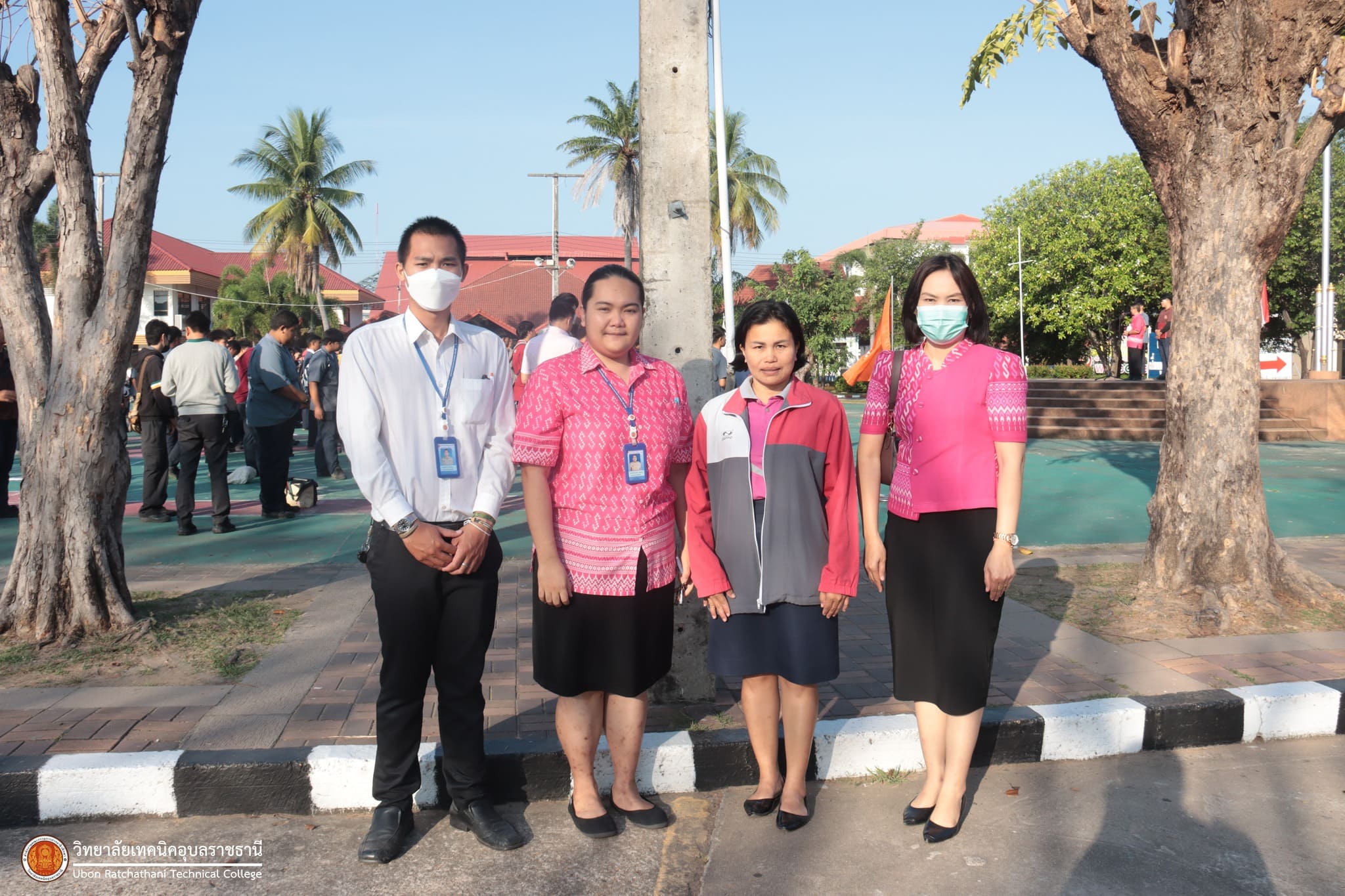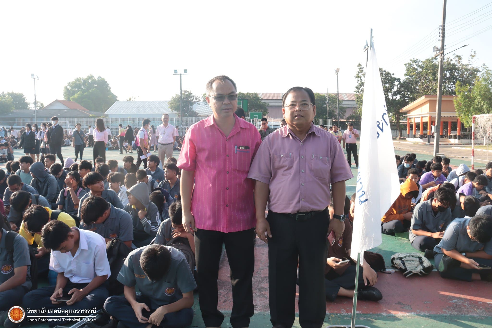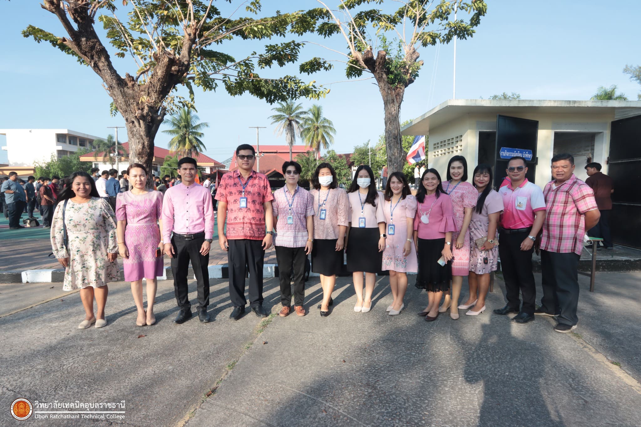 วันที่ ๑๒ ธันวาคม ๒๕๖๖ เวลา ๐๗.๓๐ น. นายธาตรี พิบูลมณฑา ผู้อำนวยการวิทยาลัยเทคนิคอุบลราชธานี มอบหมายให้ว่าที่ ร.ต.ขวัญชัย เนืองเนตร ครูแผนกวิชาช่างเชื่อมโลหะ อบรมคุณธรรม จริยธรรม และให้ความรู้แก่นักเรียน นักศึกษา ณ ลานกิจกรรมหน้าเสาธง นอกจากนี้ได้กล่าวแนะนำ นางสาวชุติกาญจน์ สุขเกษม ตำแหน่งครูผู้ช่วย ในโอกาสที่มารายงานตัวเพื่อเข้ารับการบรรจุและแต่งตั้งเข้ารับราชการเป็นข้าราชการครูและบุคลากรทางการศึกษา ตำแหน่งครูผู้ช่วย แผนกวิชาช่างกลโรงงาน โดยโครงการผลิตครูเพื่อพัฒนาท้องถิ่น ปี พ.ศ. ๒๕๖๖ (รอบที่ ๑) โดยมี นายไวพจน์ ศรีธัญ รองผู้อำนวยการฝ่ายพัฒนากิจการนักเรียนนักศึกษา นายสุวิชา มั่นยืน รองผู้อำนวยการฝ่ายวิชาการ นางราตรี สะดีวงศ์ รองผู้อำนวยการฝ่ายแผนงานและความร่วมมือ พร้อมด้วยหัวหน้าแผนกวิชา หัวหน้างาน ครู นำนักเรียน นักศึกษา เข้าร่วมกิจกรรมเข้าแถวเคารพธงชาติอย่างพร้อมเพรียง
