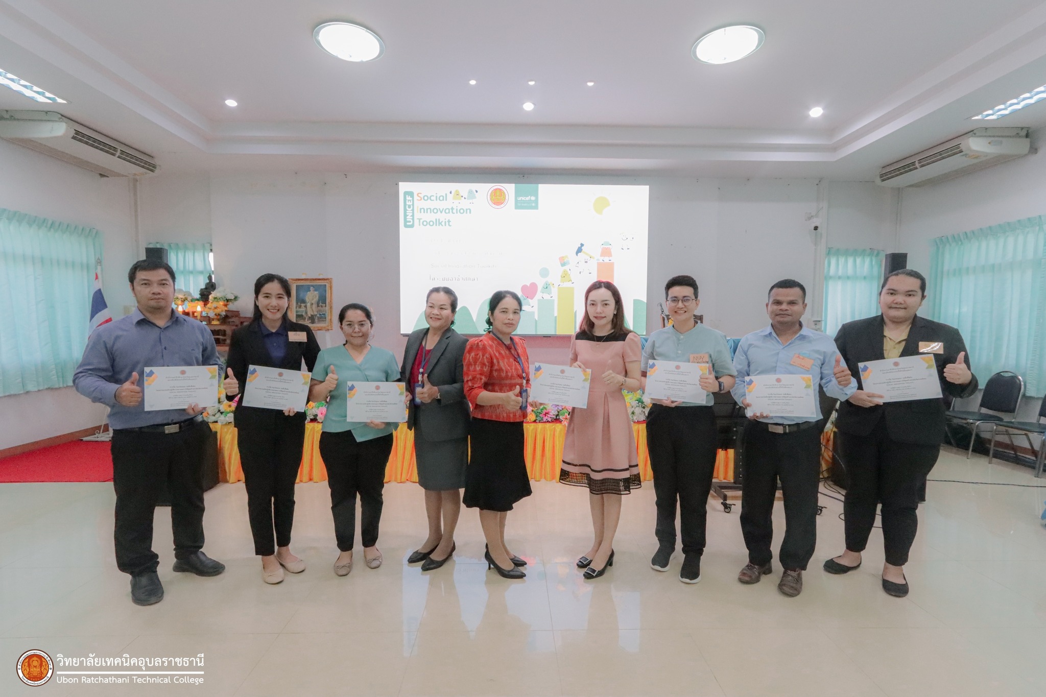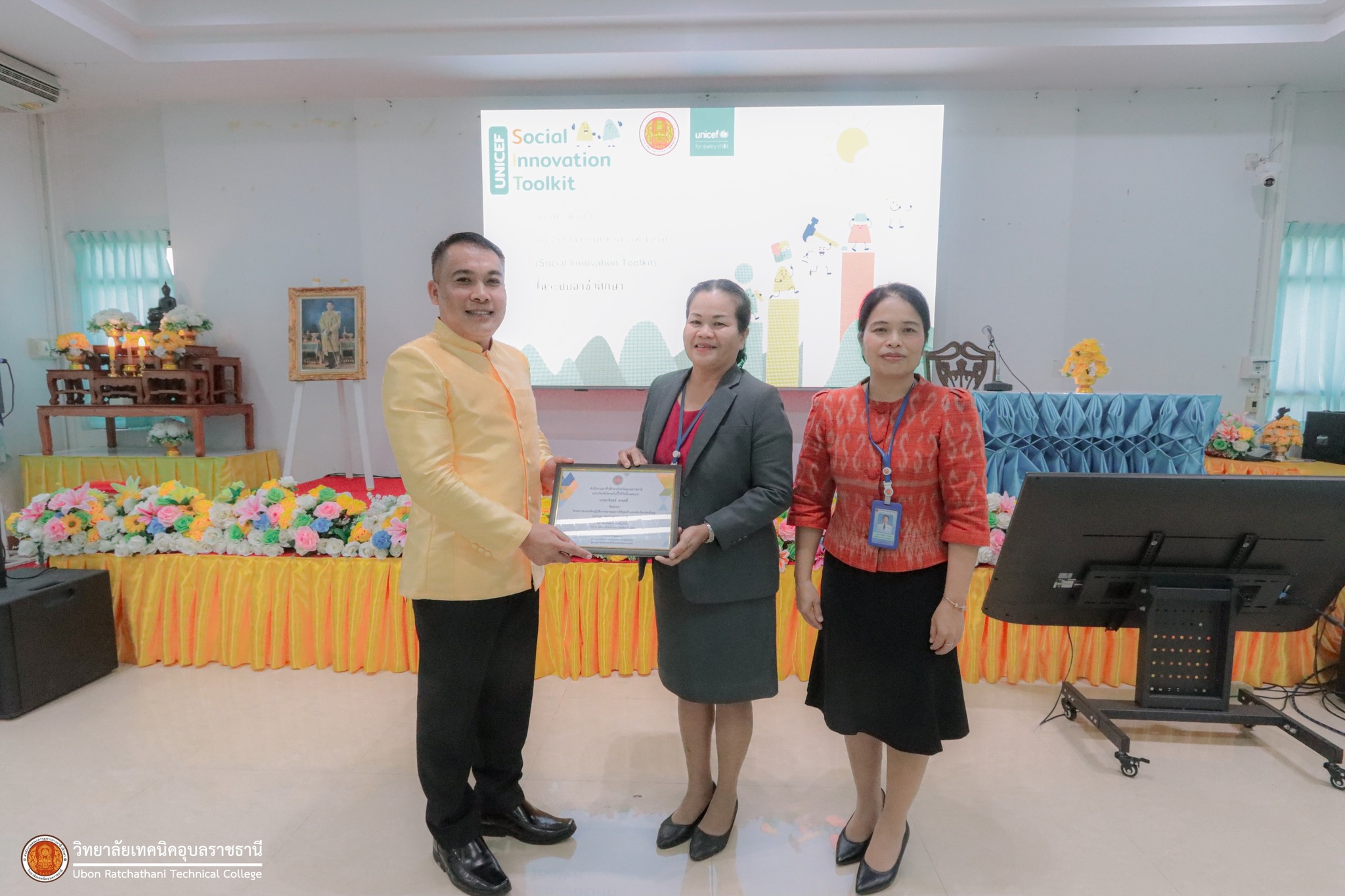 สอจ.อุบลฯ จัดพิธีปิดและให้เกียรติมอบเกียรติบัตรผู้เข้าร่วมโครงการฝึกอบรมเชิงปฏิบัติการ ขยายผลการใช้ชุดสร้างสรรค์นวัตกรรมสังคม (Social Innovation Toolkit) ฯ