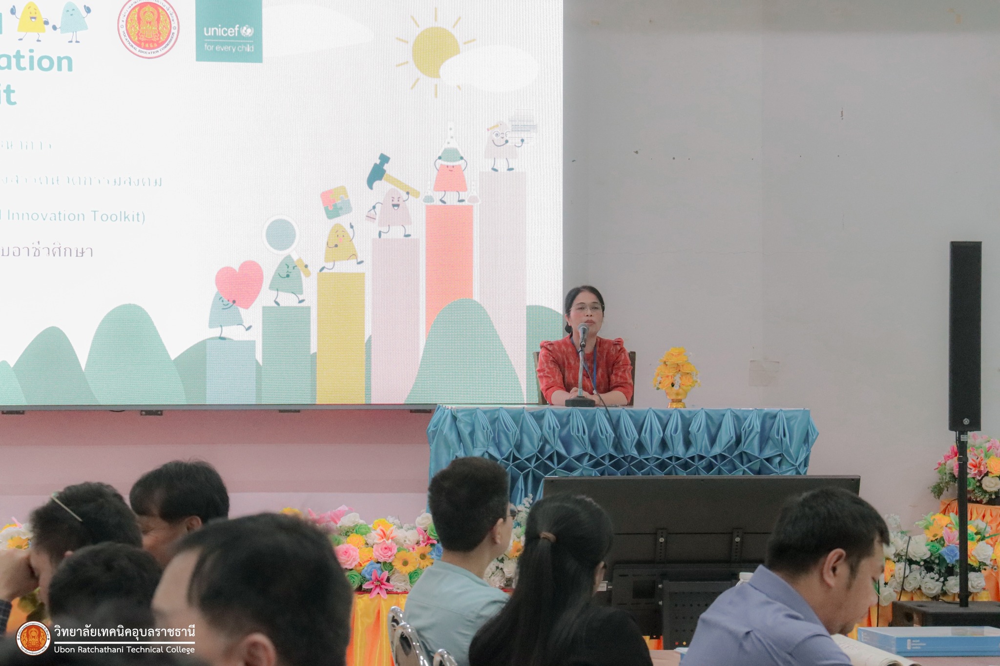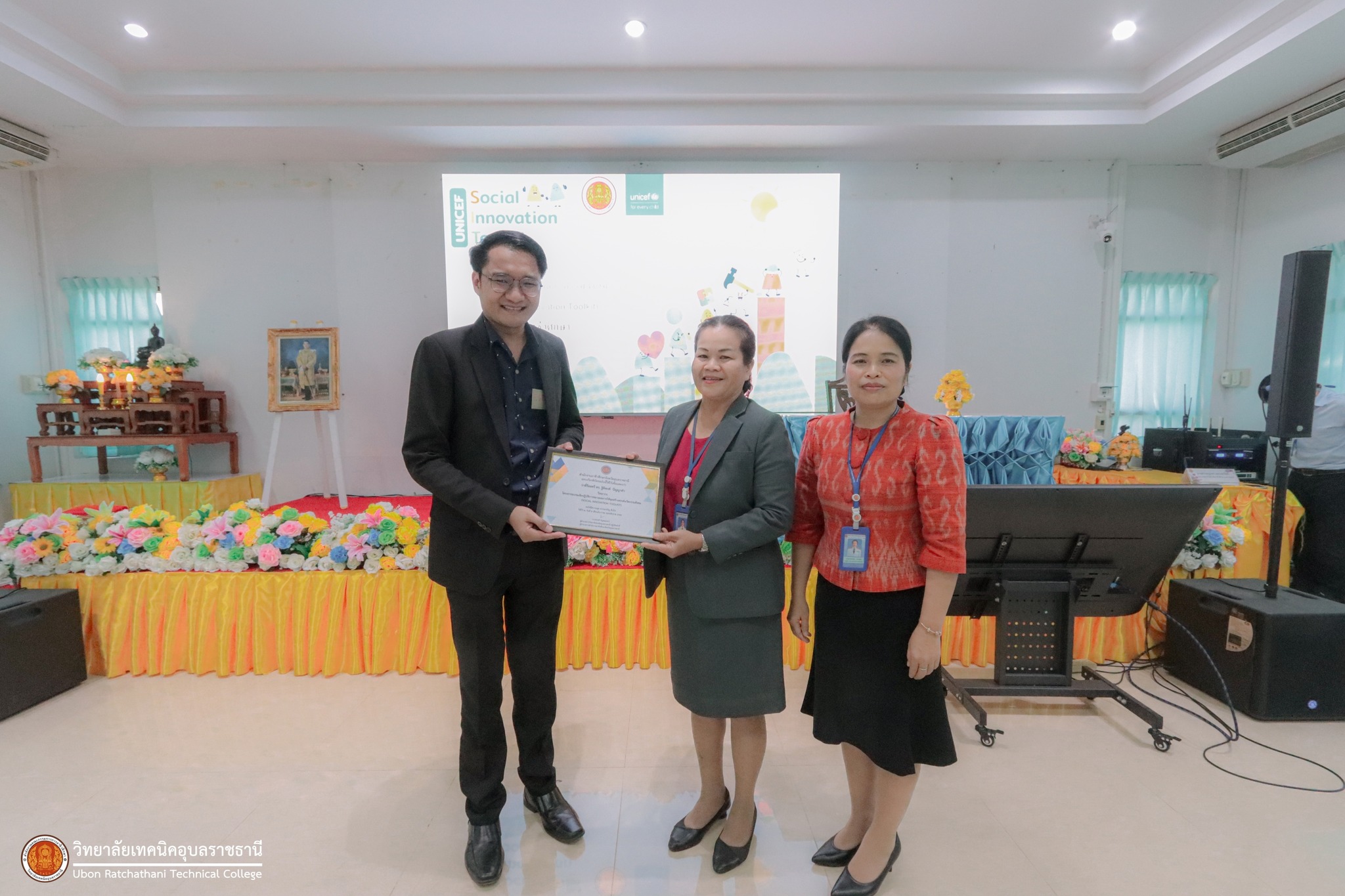 วันที่ ๘ ธันวาคม ๒๕๖๖ เวลา ๑๔.๓๐ น. นายธาตรี พิบูลมณฑา ผู้อำนวยการวิทยาลัยเทคนิคอุบลราชธานี ปฏิบัติหน้าที่ ผู้อำนวยการสำนักงานอาชีวศึกษาจังหวัดอุบลราชธานี มอบหมายให้ นางสาวสายฝน สาระผล รองผู้อำนวยการฝ่ายบริหารทรัพยากร เป็นประธานในพิธีปิดและให้เกียรติมอบเกียรติบัตรแก่วิทยากรจากหน่วยศึกษานิเทศก์ สำนักงานคณะกรรมการการอาชีวศึกษา วิทยากรจากแกนนำครู และคณะครู ที่เข้าร่วมโครงการฝึกอบรมเชิงปฏิบัติการ ขยายผลการใช้ชุดสร้างสรรค์นวัตกรรมสังคม (Social Innovation Toolkit) ระดับครูผู้สอนในระบบอาชีวศึกษา ซึ่งจัดอบรมระหว่างวันที่ ๗ – ๘ ธันวาคม ๒๕๖๖ ณ ห้องประชุมบัวแสด วิทยาลัยเทคนิคอุบลราชธานี โดยมี นางราตรี สะดีวงศ์ รองผู้อำนวยการฝ่ายแผนงานและความร่วมมือ ปฏิบัติหน้าที่ เลขานุการสำนักงานอาชีวศึกษาจังหวัดอุบลราชธานี นางณชิตา เถาว์โท หัวหน้าสำนักงานอาชีวศึกษาจังหวัดอุบลราชธานี และคณะผู้บริหารสถานศึกษา ในสังกัดสำนักงานอาชีวศึกษาจังหวัดอุบลราชธานี นำตัวแทนคณะครู เข้าร่วมพิธีปิดอย่างพร้อมเพรียง ทั้งนี้เพื่อขยายผลให้แก่ครูอาชีวศึกษาจังหวัดอุบลราชธานี ในการใช้ชุดสร้างสรรค์นวัตกรรมสังคมอย่างประสิทธิภาพ ส่งเสริมให้ครูมีความรู้และทักษะความสามารถเชิงสมรรถนะ (Soft Skills) พัฒนาทักษะของครูให้มีความพร้อมในการทำงานและการใช้ชีวิตในศตวรรษที่ ๒๑ ต่อไป