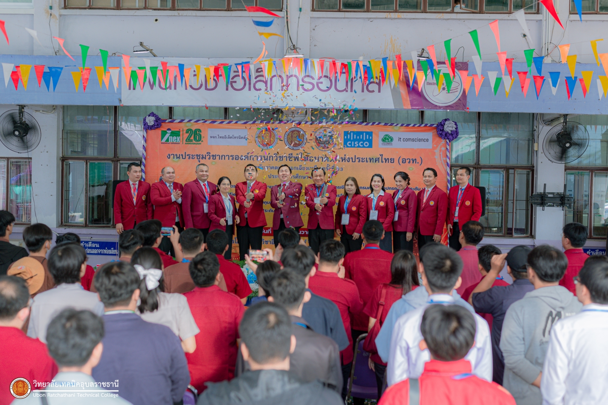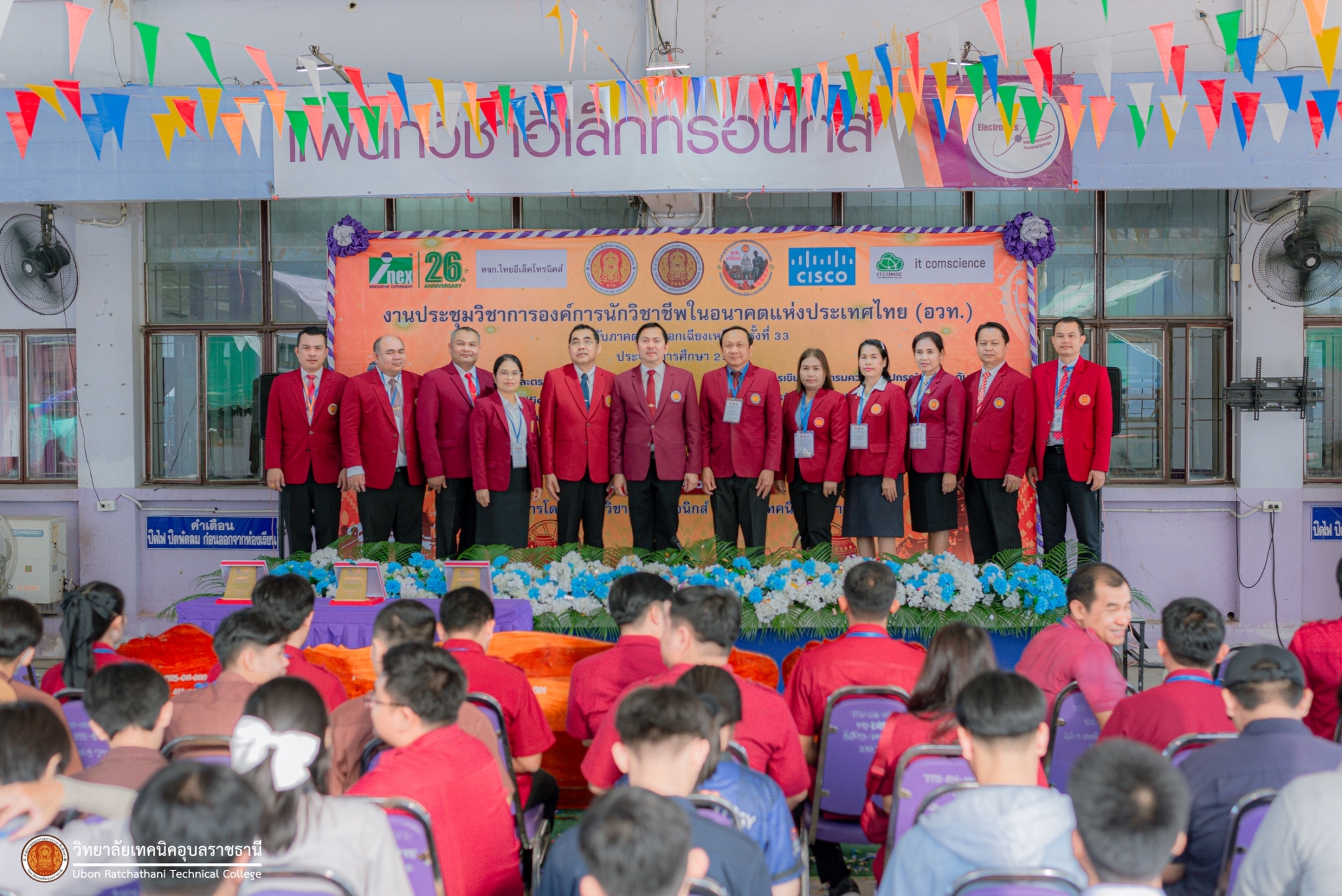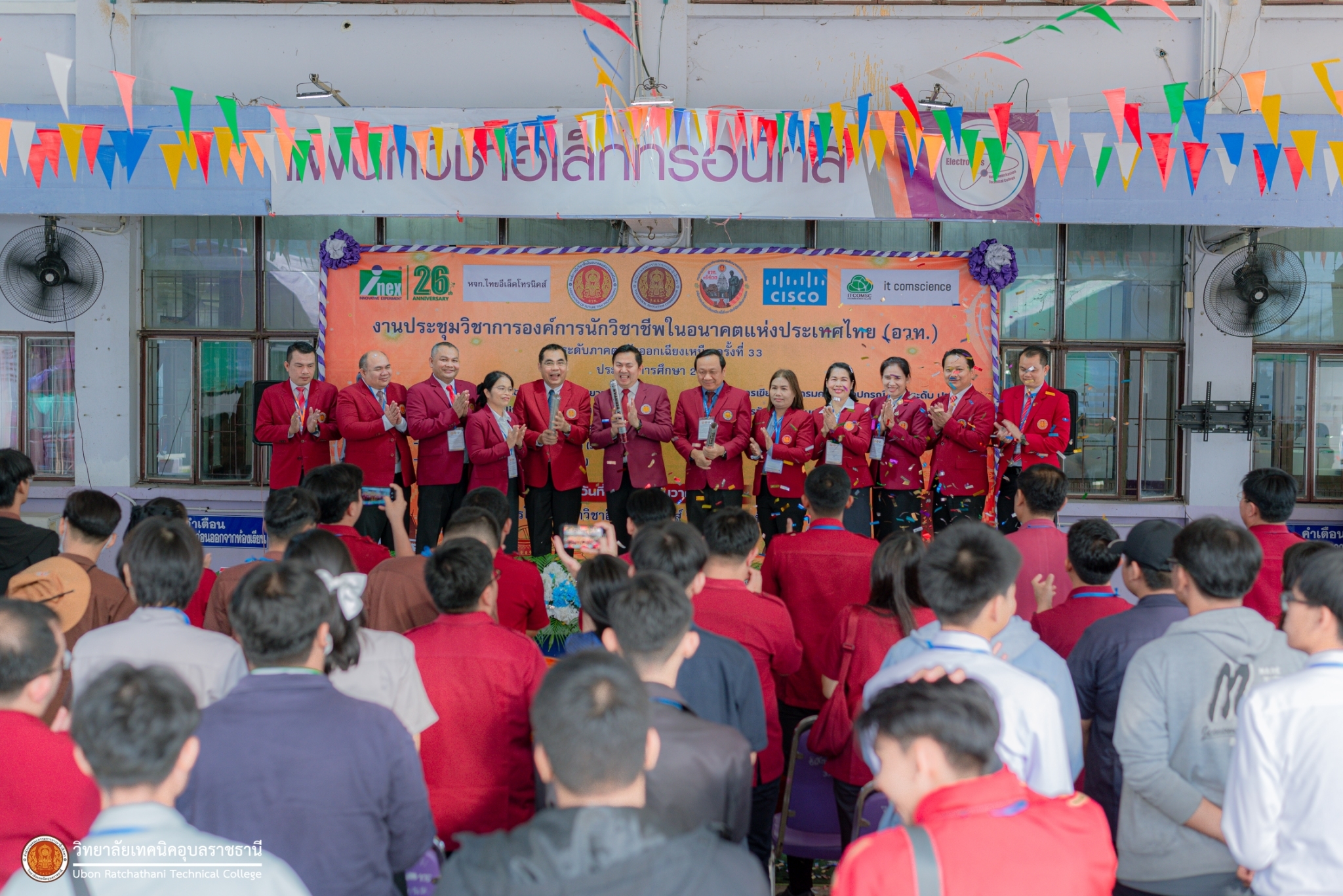 วันที่ ๑๙ ธันวาคม ๒๕๖๖ เวลา ๑๑.๐๐ น. ดร.ธนภัทร แสงจันทร์ ผู้อำนวยการวิทยาลัยเทคนิคนครราชสีมา ปฏิบัติหน้าที่ ผู้อำนวยการสำนักงานอาชีวศึกษาจังหวัดนครราชสีมา ให้เกียรติเป็นประธานในพิธีเปิดการแข่งขันทักษะการจัดการ Cloud Computing ทักษะการเขียนโปรแกรมควบคุมอุปกรณ์ IOT และทักษะการพัฒนาสื่อมัลติมีเดีย ระดับภาคตะวันออกเฉียงเหนือ ณ แผนกวิชาอิเล็กทรอนิกส์ วิทยาลัยเทคนิคนครราชสีมา โดยได้รับเกียรติจาก นายวิโรจน์ ธิมา ผู้อำนวยการวิทยาลัยการอาชีพศรีสะเกษ เป็นผู้กล่าวรายงาน ในการนี้ นายธาตรี พิบูลมณฑา ผู้อำนวยการวิทยาลัยเทคนิคอุบลราชธานี ปฏิบัติหน้าที่ ผู้อำนวยการสำนักงานอาชีวศึกษาจังหวัดอุบลราชธานี มอบหมายให้ นางสาวสายฝน สาระผล รองผู้อำนวยการฝ่ายบริหารทรัพยากร ปฏิบัติหน้าที่ เลขานุการ พร้อมด้วยคณะครู นำนักเรียน นักศึกษา วิทยาลัยเทคนิคอุบลราชธานี เข้าร่วมพิธีอย่างพร้อมเพรียง