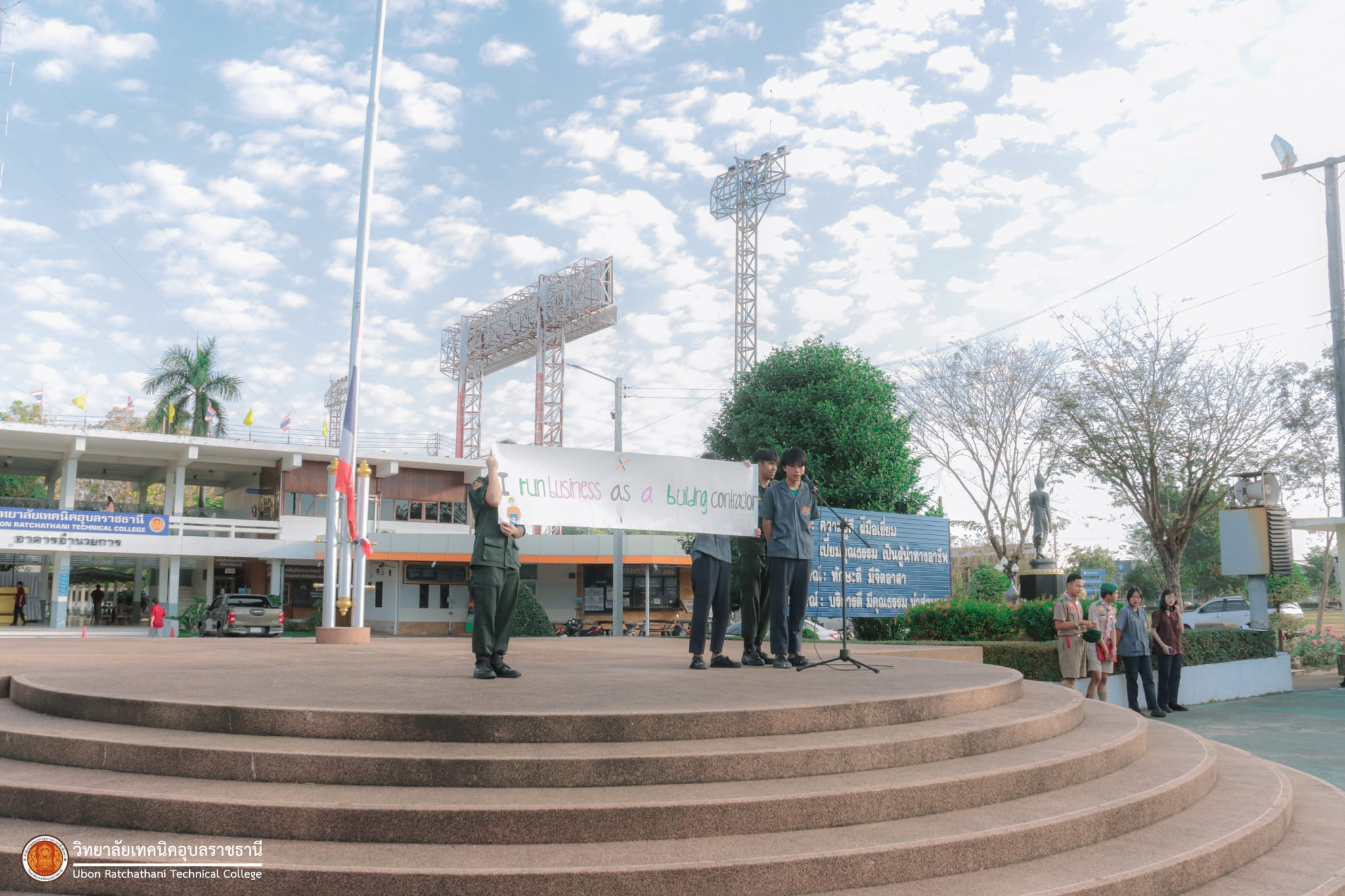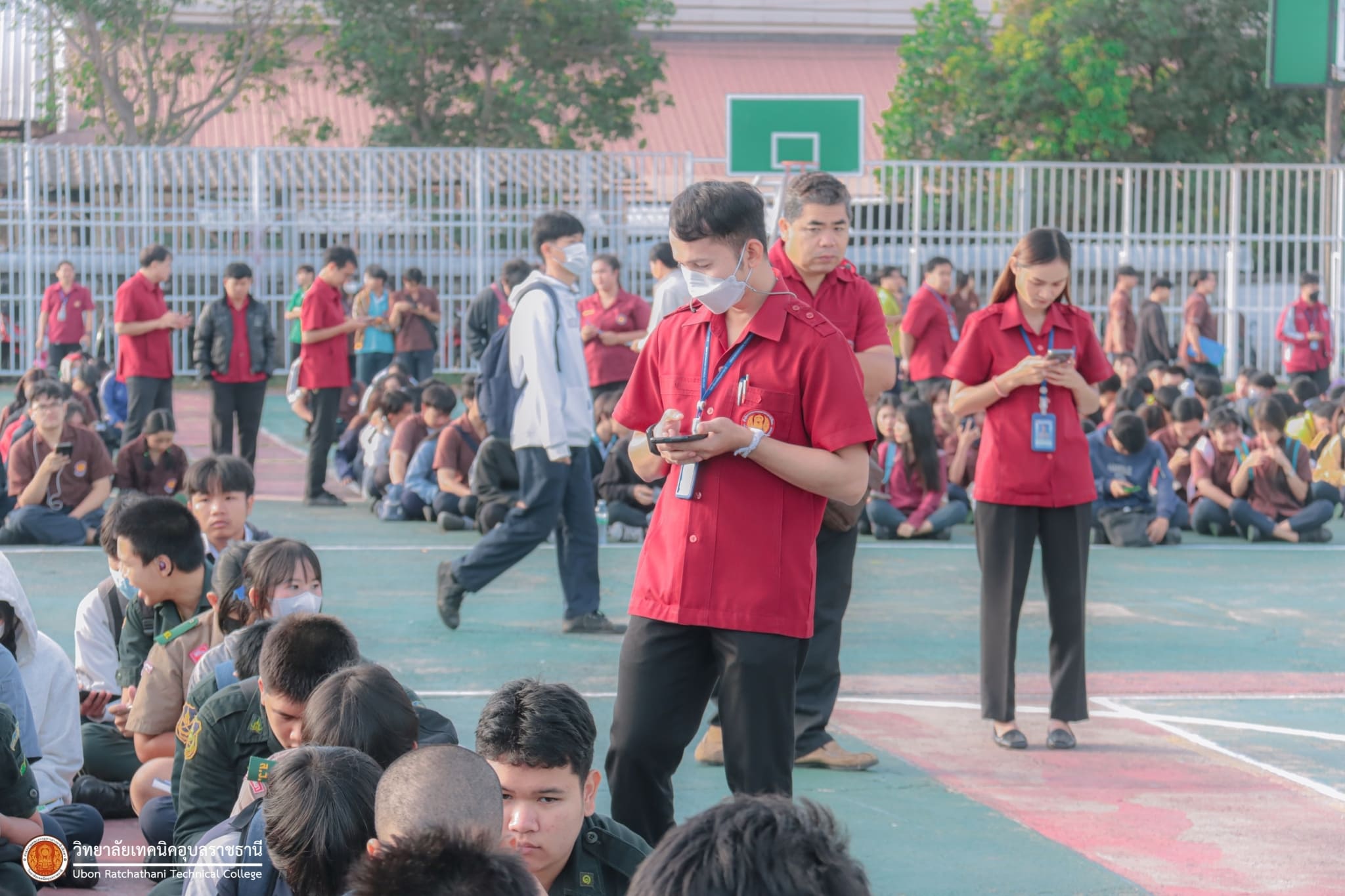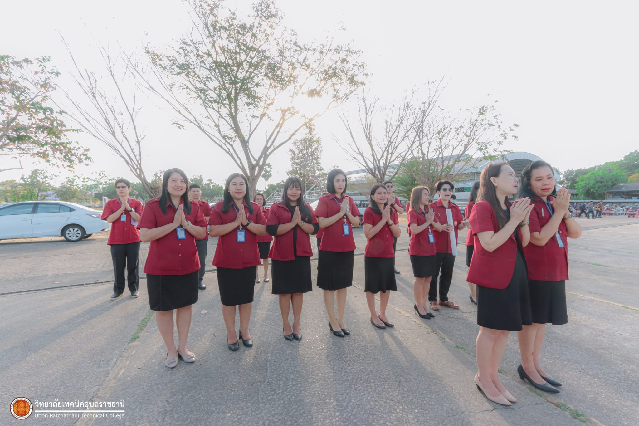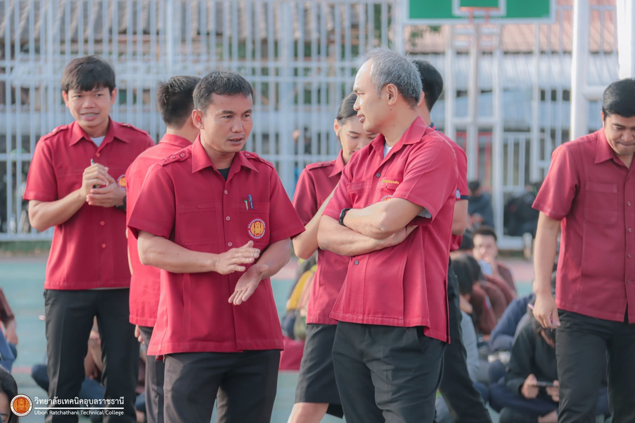 วันที่ ๒ มกราคม ๒๕๖๗ เวลา ๐๗.๓๐ น. นายธาตรี พิบูลมณฑา ผู้อำนวยการวิทยาลัยเทคนิคอุบลราชธานี ให้เกียรติกล่าวให้โอวาทและอวยพรปีใหม่ให้แก่คณะครู และนักเรียน นักศึกษา ณ ลานกิจกรรมหน้าเสาธง นอกจากนี้ได้เน้นย้ำเรื่องความรับผิดชอบต่อหน้าที่ และการตรงต่อเวลาในการเข้าร่วมกิจกรรมหน้าเสาธงของนักเรียน นักศึกษาอีกด้วย โดยมี นายไวพจน์ ศรีธัญ รองผู้อำนวยการฝ่ายพัฒนากิจการนักเรียนนักศึกษา นายสุวิชา มั่นยืน รองผู้อำนวยการฝ่ายวิชาการ และนางสาวสายฝน สาระผล รองผู้อำนวยการฝ่ายบริหารทรัพยากร นำคณะครู บุคลากรทางการศึกษา และนักเรียน นักศึกษา เข้าร่วมกิจกรรมอย่างพร้อมเพรียง