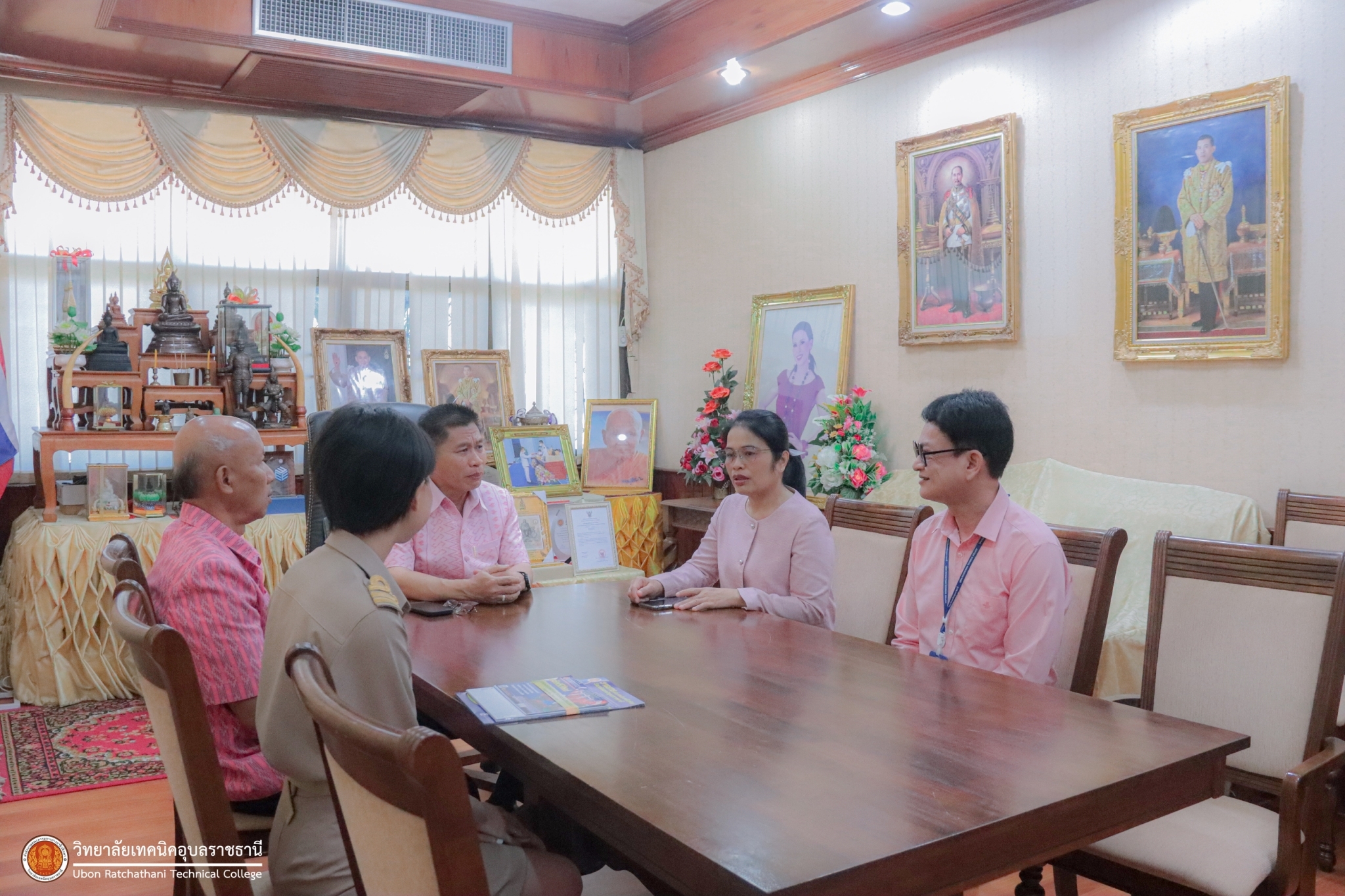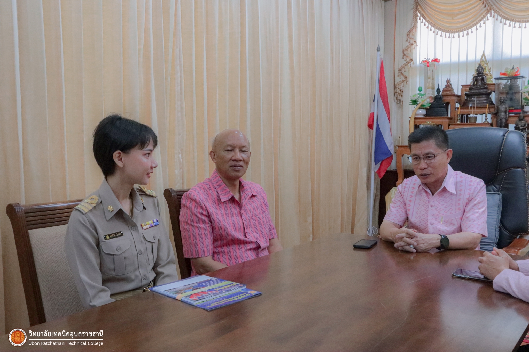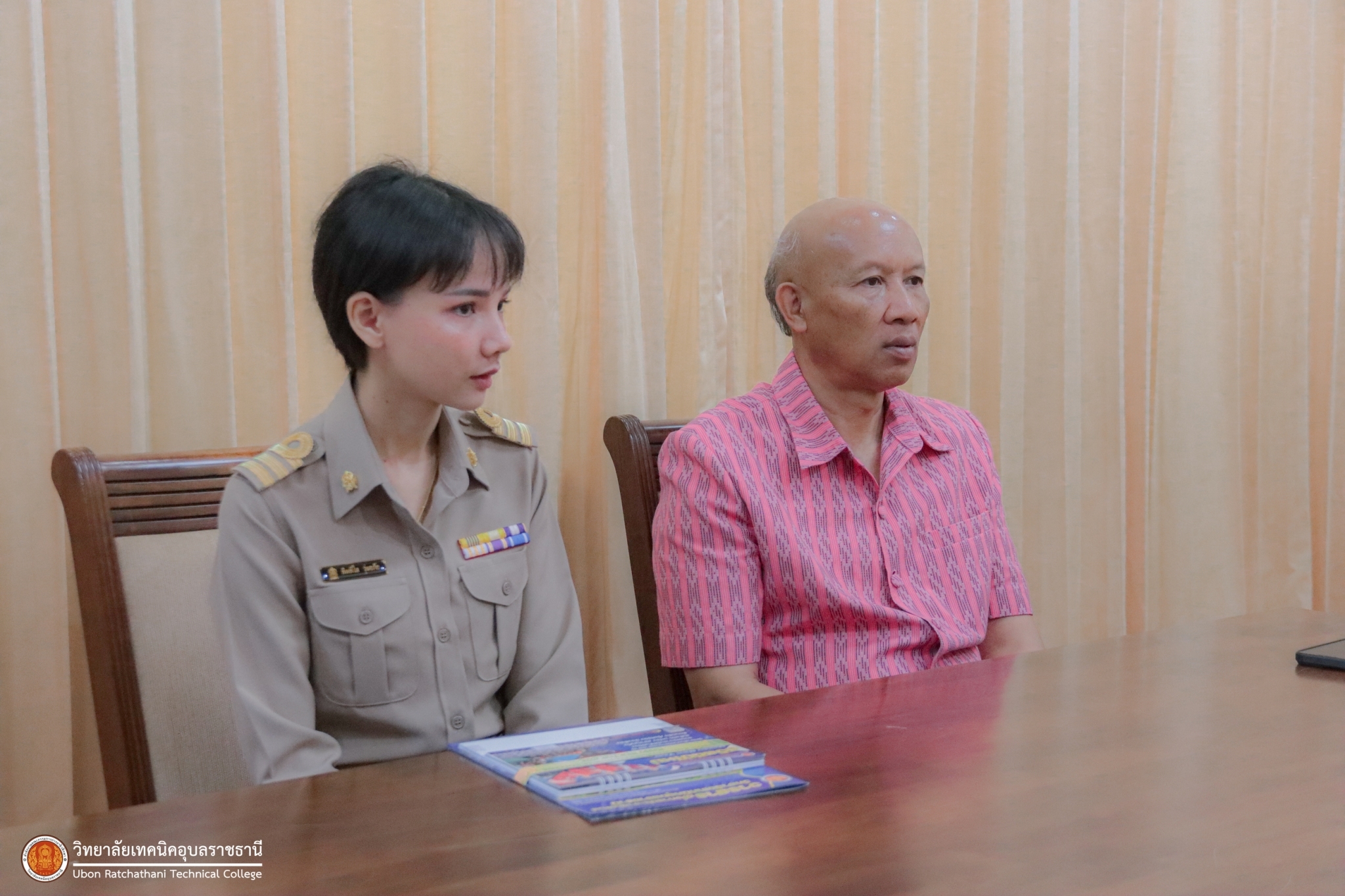 วันที่ ๒ มกราคม ๒๕๖๗ เวลา ๐๘.๓๐ น. นายธาตรี พิบูลมณฑา ผู้อำนวยการวิทยาลัยเทคนิคอุบลราชธานี พร้อมด้วย นายไวพจน์ ศรีธัญ รองผู้อำนวยการฝ่ายพัฒนากิจการนักเรียนนักศึกษา นางสาวสายฝน สาระผล รองผู้อำนวยการฝ่ายบริหารทรัพยากร ให้เกียรติต้อนรับ นางสาวพิมพิไล วุ่นอภัย ตำแหน่งครูผู้ช่วย เนื่องในโอกาสที่มารายงานตัวเพื่อเข้ารับการบรรจุและแต่งตั้งเข้ารับราชการเป็นข้าราชการครู และบุคลากรทางการศึกษา ตำแหน่งครูผู้ช่วย แผนกวิชาสามัญสัมพันธ์ หมวดวิชาวิทยาศาสตร์ วิทยาลัยเทคนิคอุบลราชธานี ณ ห้องประชุมผู้อำนวยการวิทยาลัยเทคนิคอุบลราชธานี โดยมี นายภัทรศักดิ์ ภัทรธรรมพิบูล หัวหน้างานบุคลากร ร่วมให้การต้อนรับ