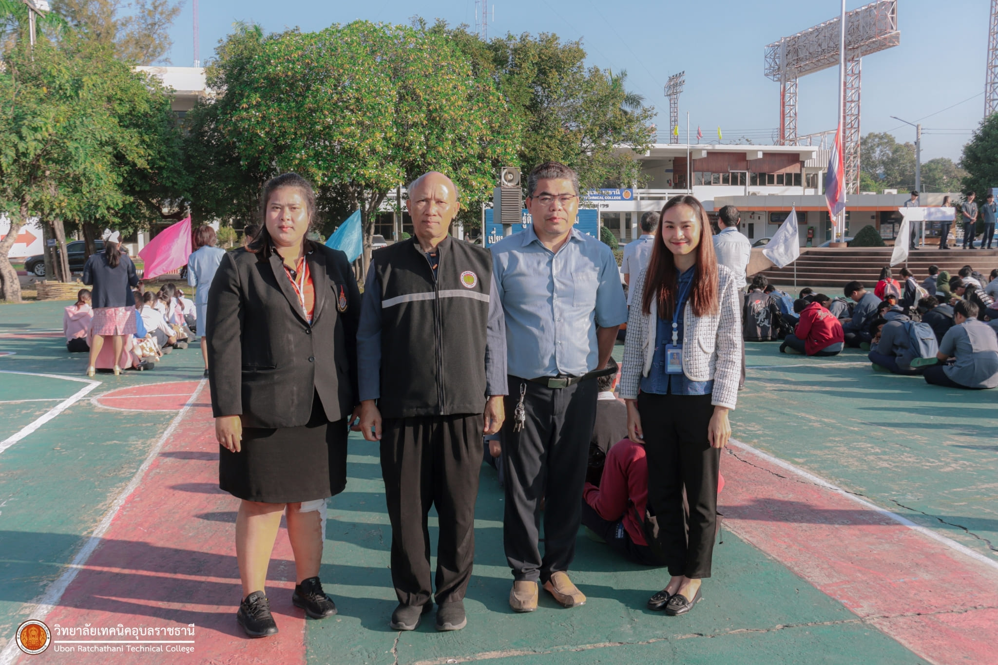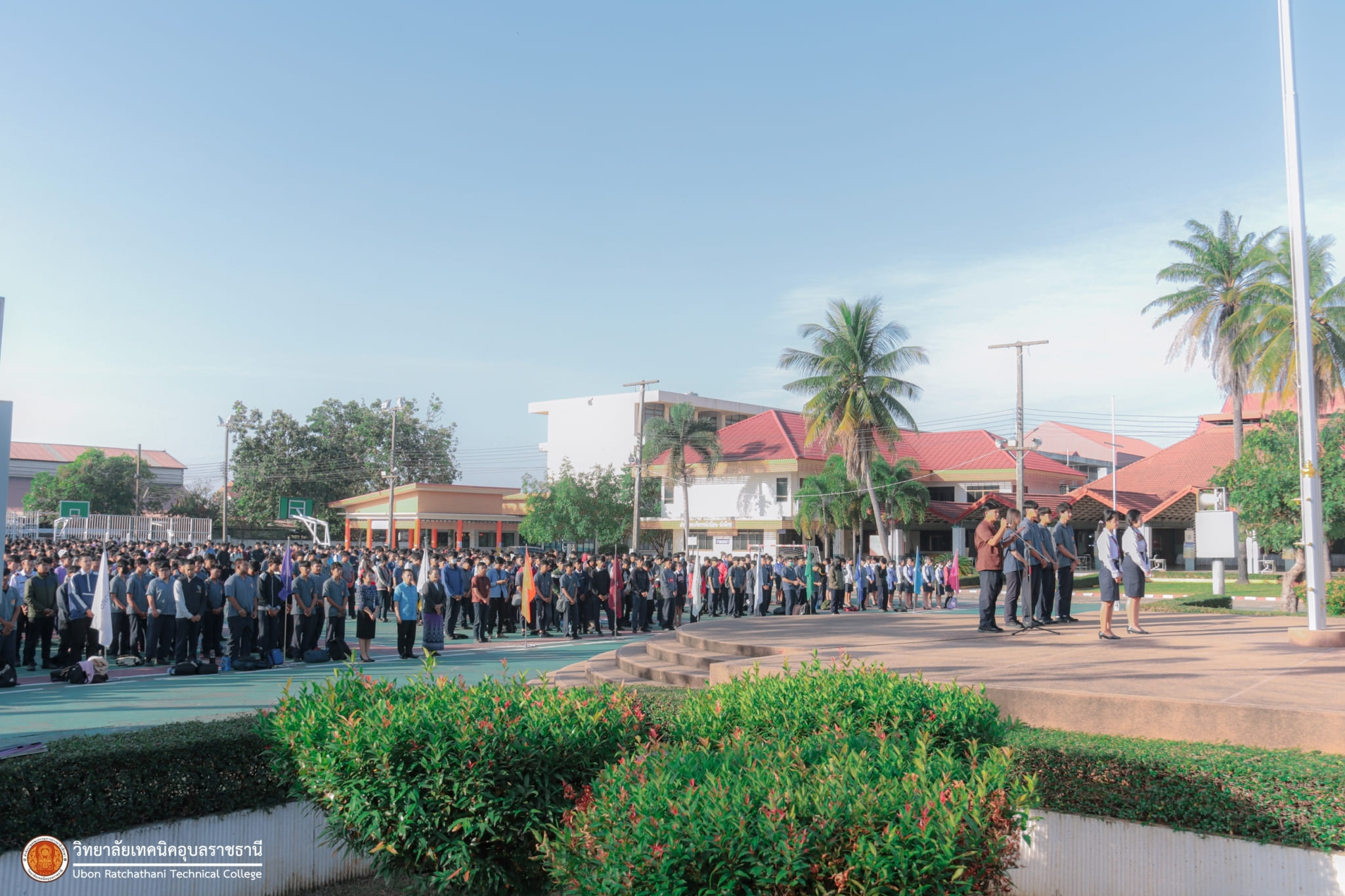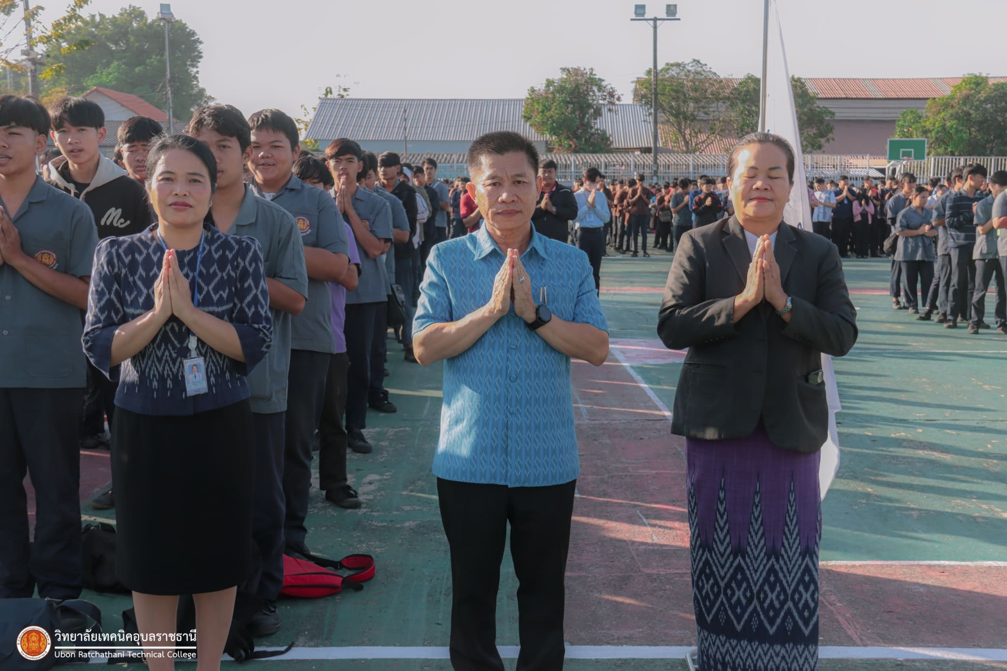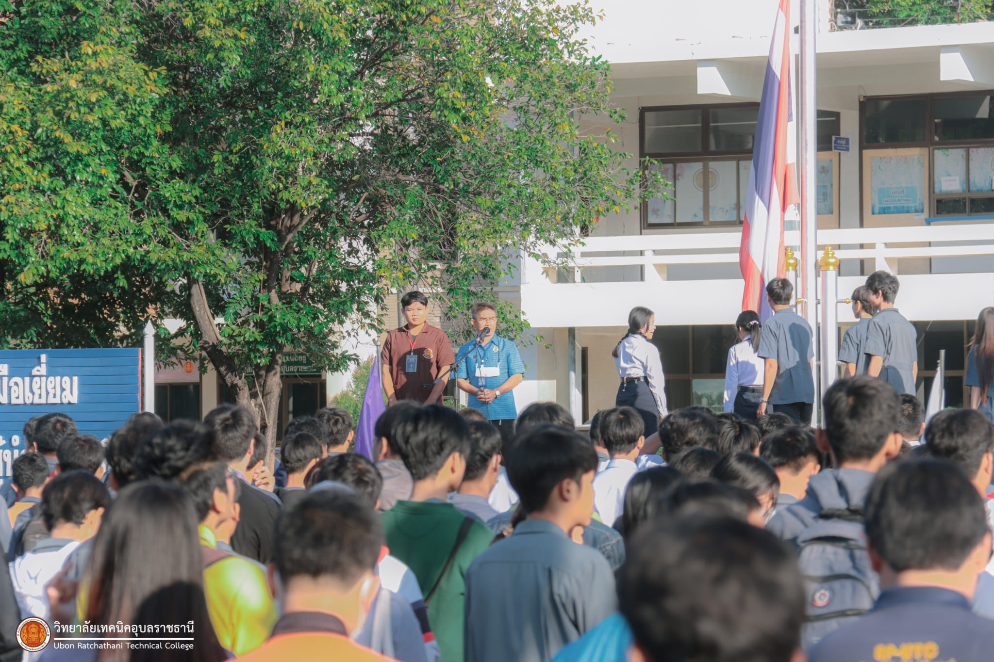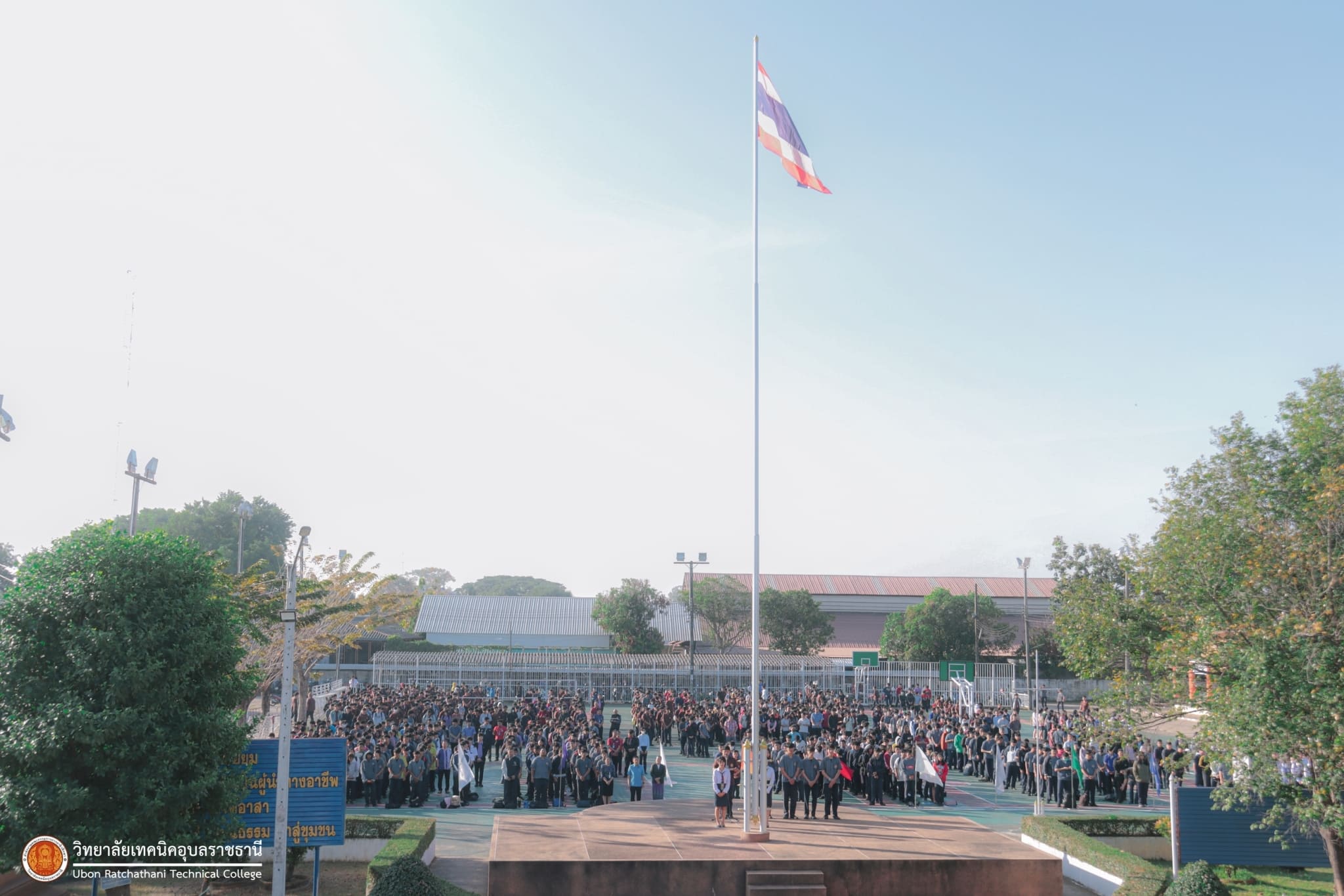 วันที่ ๕ มกราคม ๒๕๖๗ เวลา ๐๗.๓๐ น. นายธาตรี พิบูลมณฑา ผู้อำนวยการวิทยาลัยเทคนิคอุบลราชธานี มอบหมายให้ นางสาวสายฝน สาระผล รองผู้อำนวยการฝ่ายบริหารทรัพยากร กล่าวให้โอวาทและอวยพรปีใหม่แก่คณะครู และนักเรียน นักศึกษา ณ ลานกิจกรรมหน้าเสาธง นอกจากนี้ได้ประชาสัมพันธ์ข้อมูลข่าวสาร เรื่องการแข่งขันทักษะระดับชาติ อีกทั้งยังได้ให้ ตัวแทนนักศึกษาระดับชั้น ปวส.๑ แผนกวิชาช่างอากาศยาน ที่จะเข้าร่วมการแข่งขันทักษะระดับชาติ แนะนำตัว โดยมี นายไวพจน์ ศรีธัญ รองผู้อำนวยการฝ่ายพัฒนากิจการนักเรียนนักศึกษา และนางราตรี สะดีวงศ์ รองผู้อำนวยการฝ่ายแผนงานและความร่วมมือ นำคณะครู บุคลากรทางการศึกษา และนักเรียน นักศึกษา เข้าร่วมกิจกรรมอย่างพร้อมเพรียง