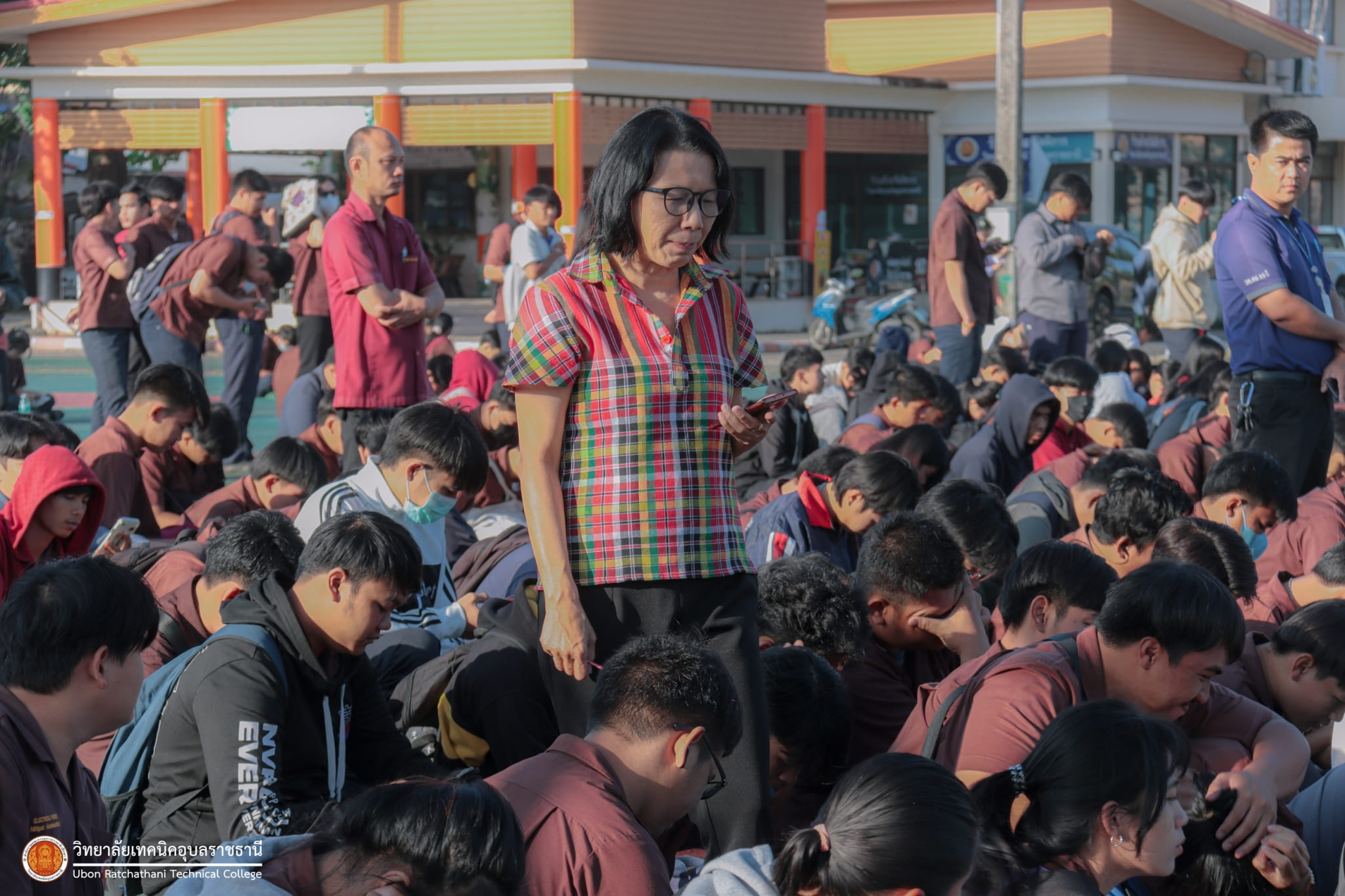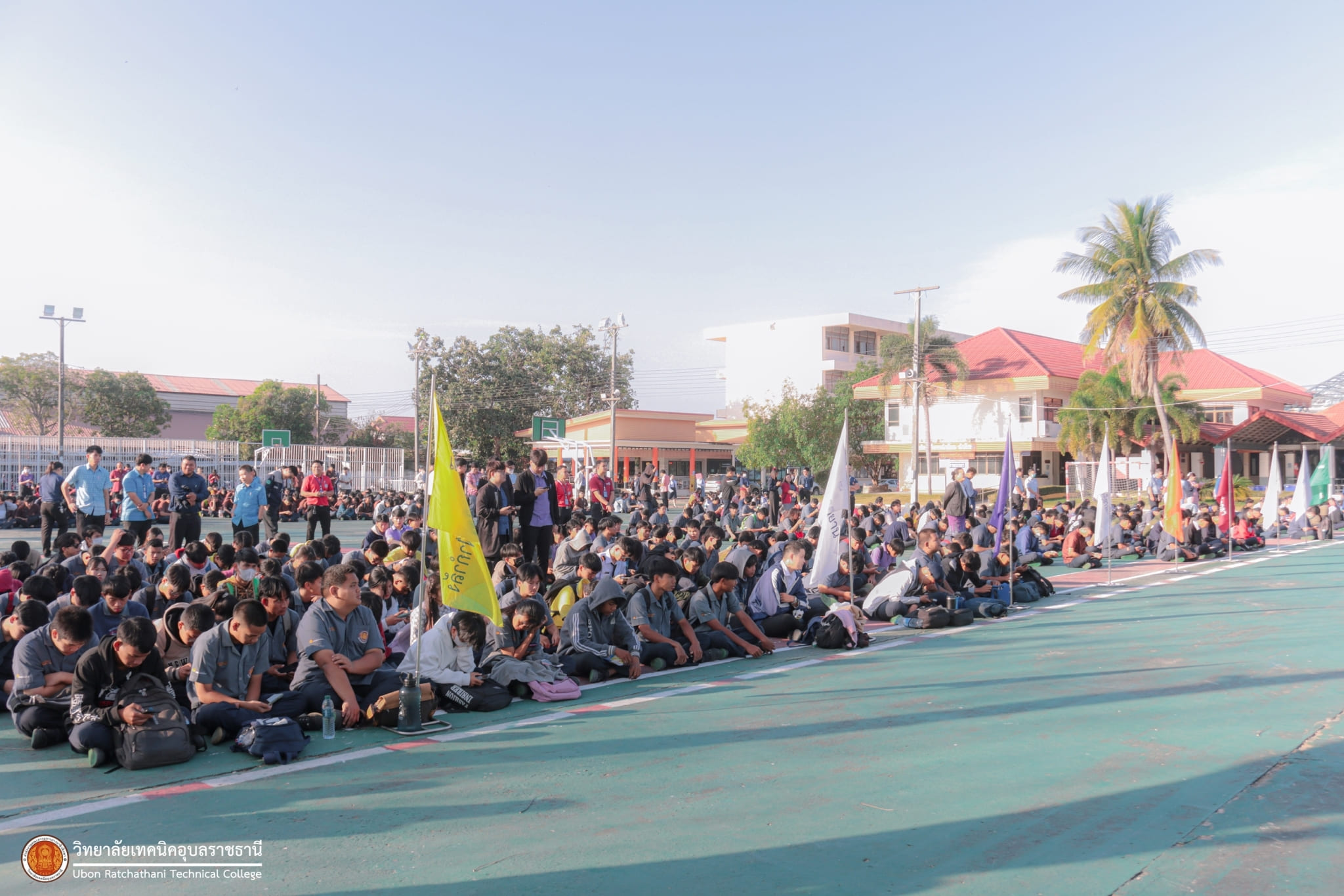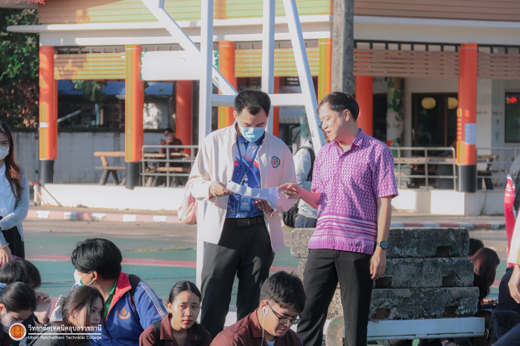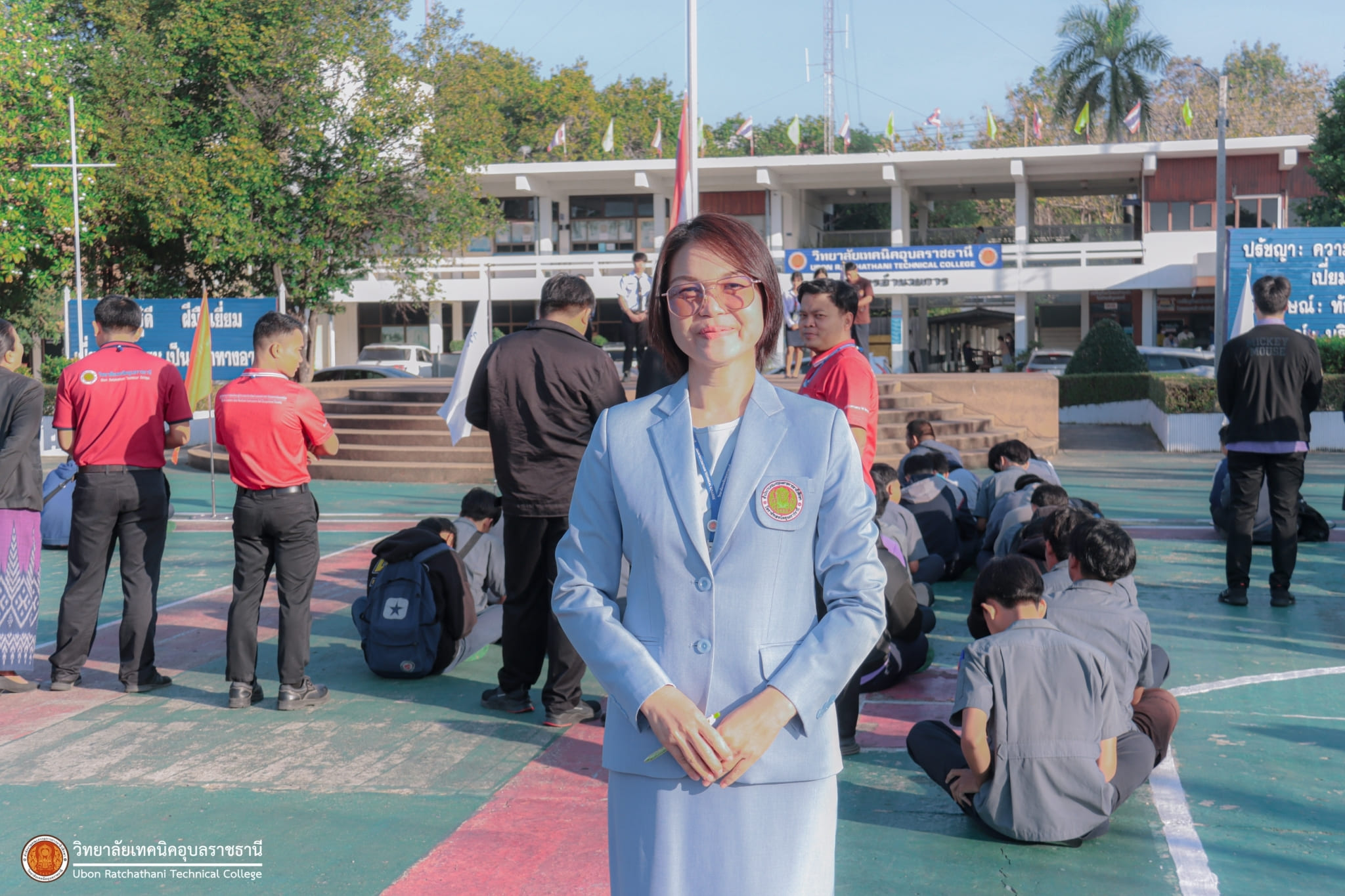 วันที่ ๕ มกราคม ๒๕๖๗ เวลา ๐๗.๓๐ น. นายธาตรี พิบูลมณฑา ผู้อำนวยการวิทยาลัยเทคนิคอุบลราชธานี มอบหมายให้ นางสาวสายฝน สาระผล รองผู้อำนวยการฝ่ายบริหารทรัพยากร กล่าวให้โอวาทและอวยพรปีใหม่แก่คณะครู และนักเรียน นักศึกษา ณ ลานกิจกรรมหน้าเสาธง นอกจากนี้ได้ประชาสัมพันธ์ข้อมูลข่าวสาร เรื่องการแข่งขันทักษะระดับชาติ อีกทั้งยังได้ให้ ตัวแทนนักศึกษาระดับชั้น ปวส.๑ แผนกวิชาช่างอากาศยาน ที่จะเข้าร่วมการแข่งขันทักษะระดับชาติ แนะนำตัว โดยมี นายไวพจน์ ศรีธัญ รองผู้อำนวยการฝ่ายพัฒนากิจการนักเรียนนักศึกษา และนางราตรี สะดีวงศ์ รองผู้อำนวยการฝ่ายแผนงานและความร่วมมือ นำคณะครู บุคลากรทางการศึกษา และนักเรียน นักศึกษา เข้าร่วมกิจกรรมอย่างพร้อมเพรียง