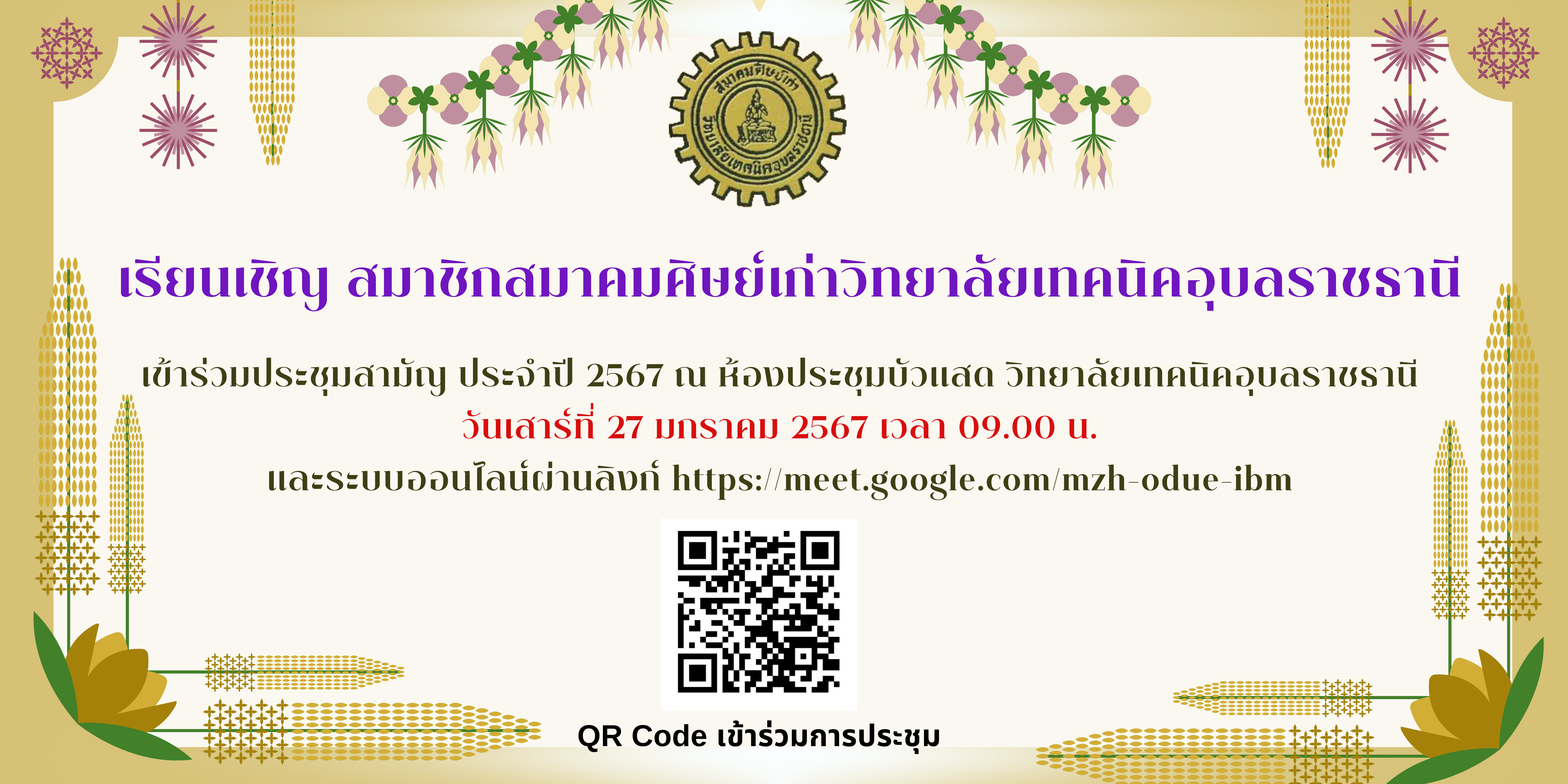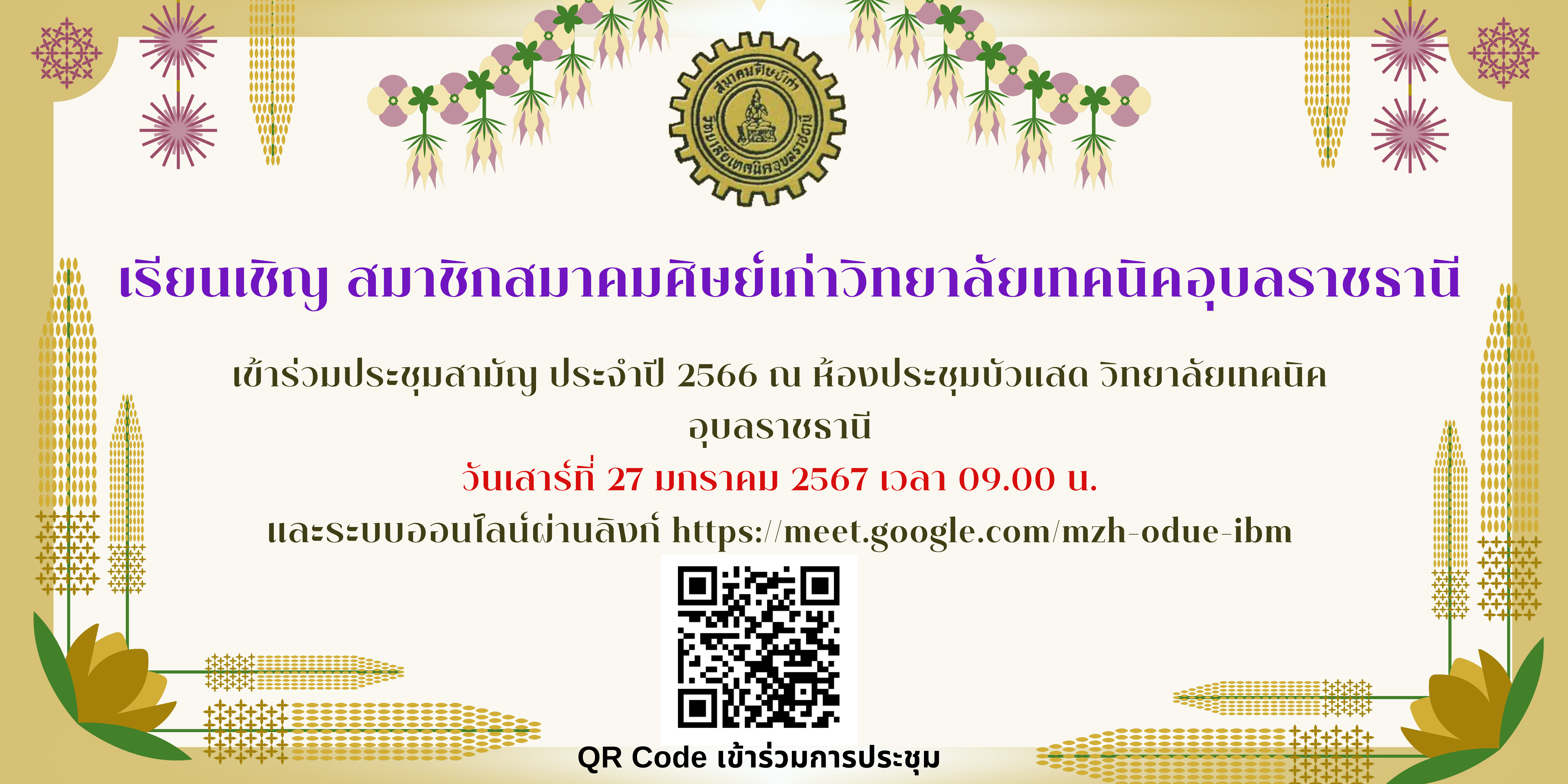 FacebookTwitterLineวันที่ ๑๗ กรกฎาคม ๒๕๖๗ เวลา ๑๔.๐๐ น. นายธาตรี พิบูลมณฑา ผู้อำนวยการวิทยาลัยเทคนิคอุบลราชธานี มอบหมายให้ (เพิ่มเติม…)
