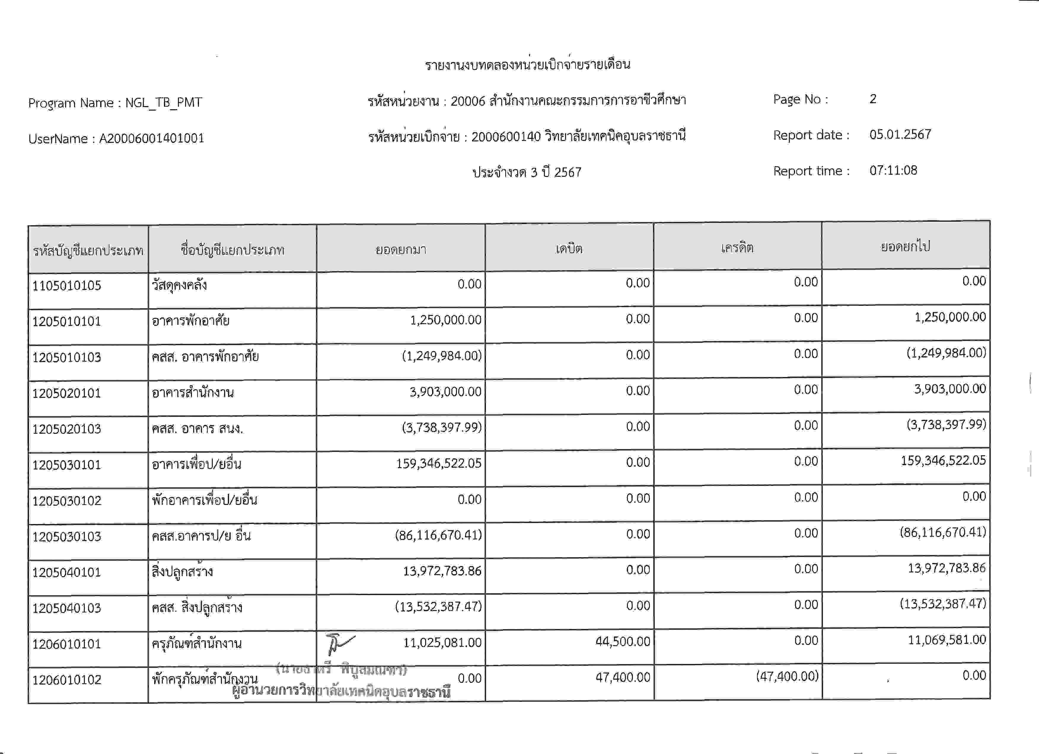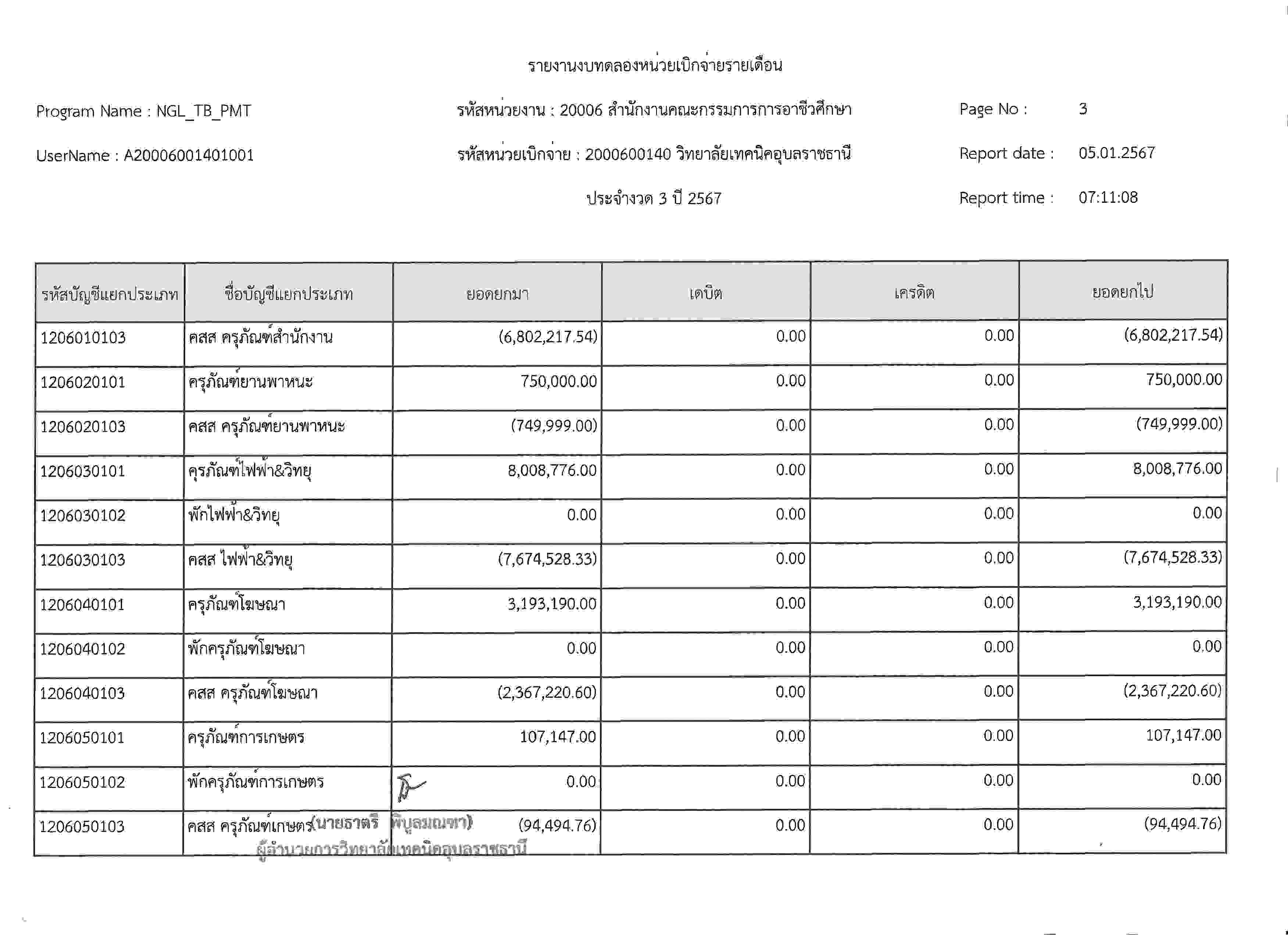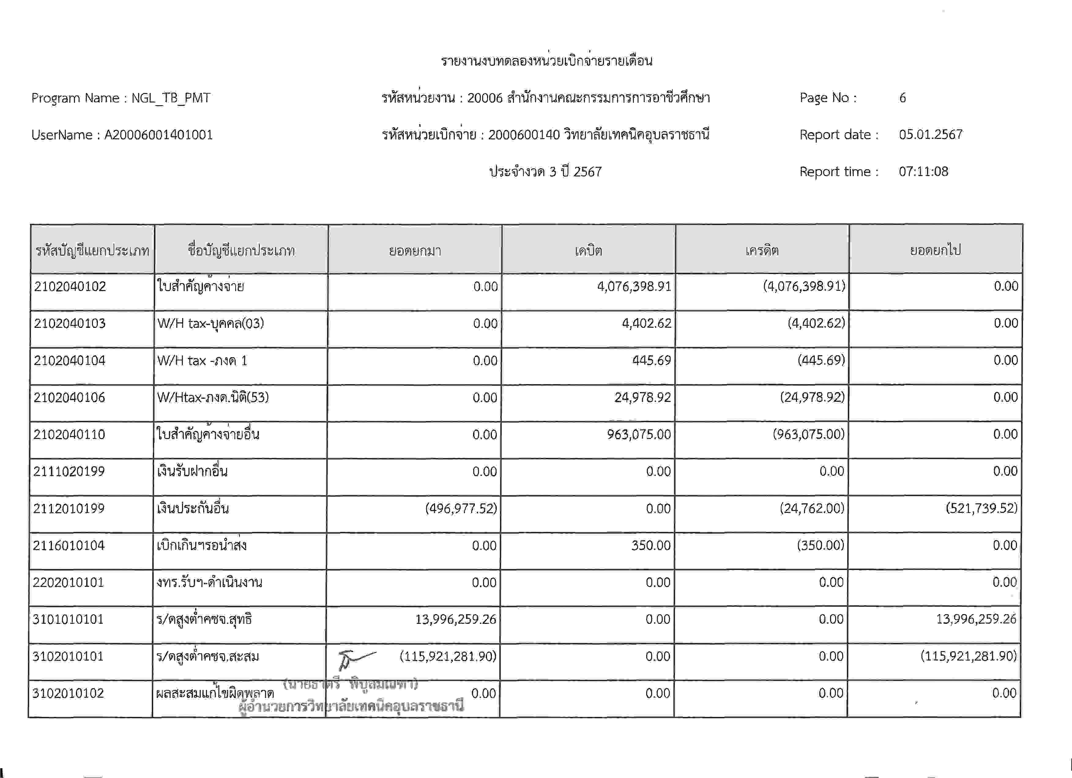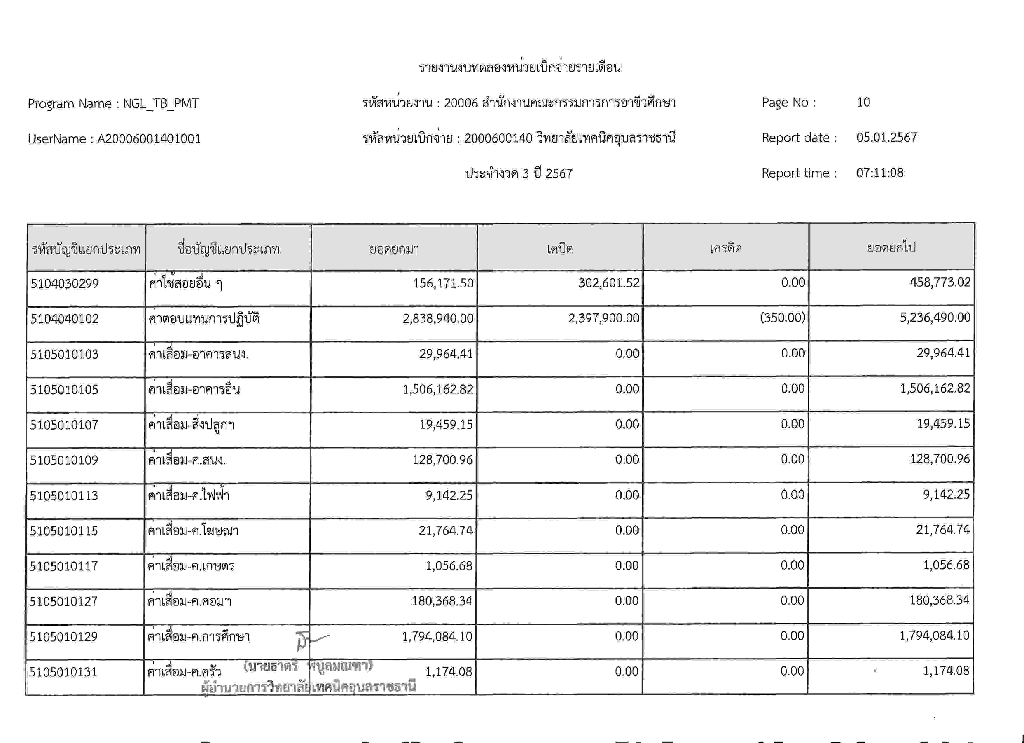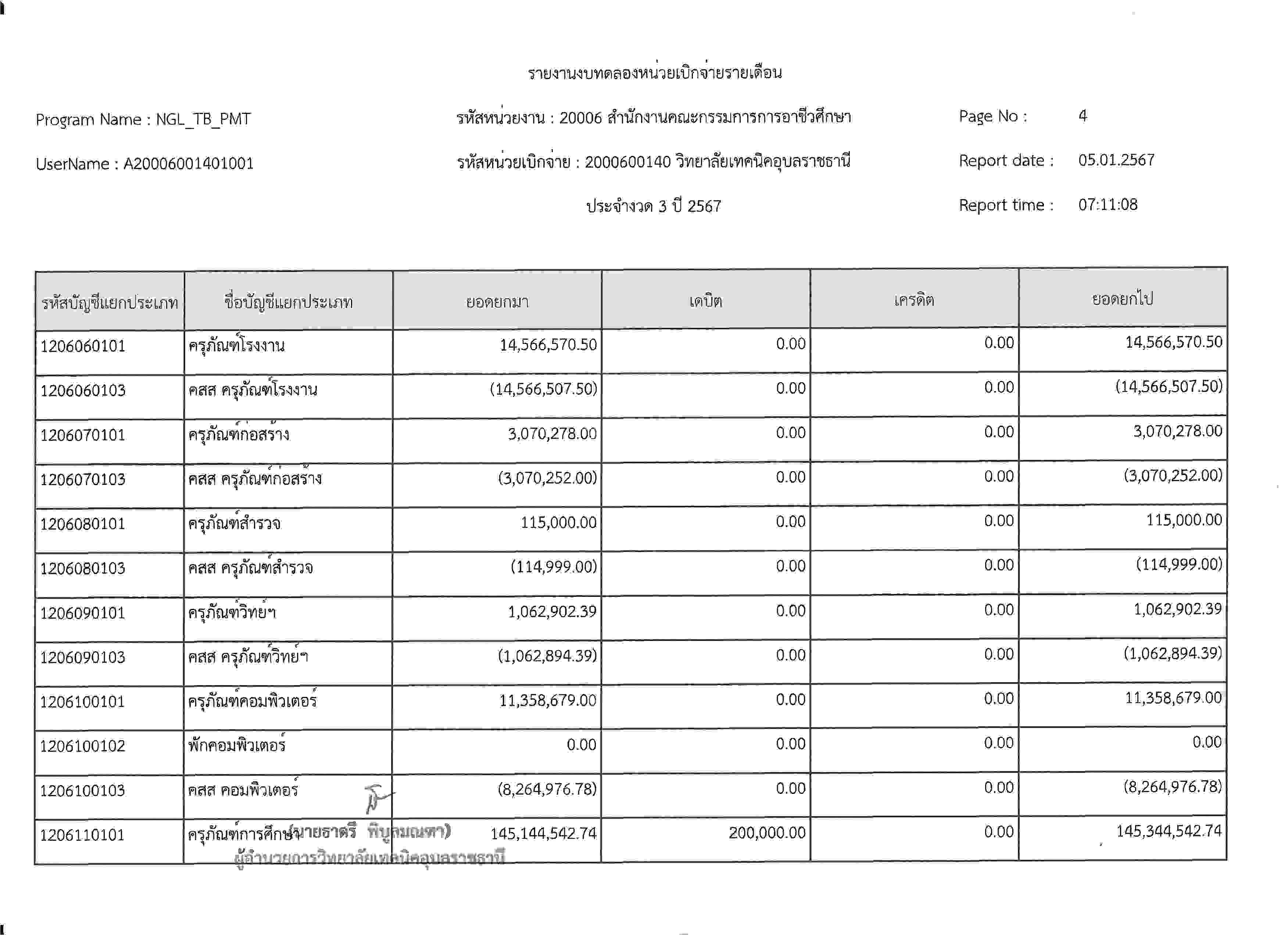 รายงานงบทดลองประจำเดือนธันวาคม 2566