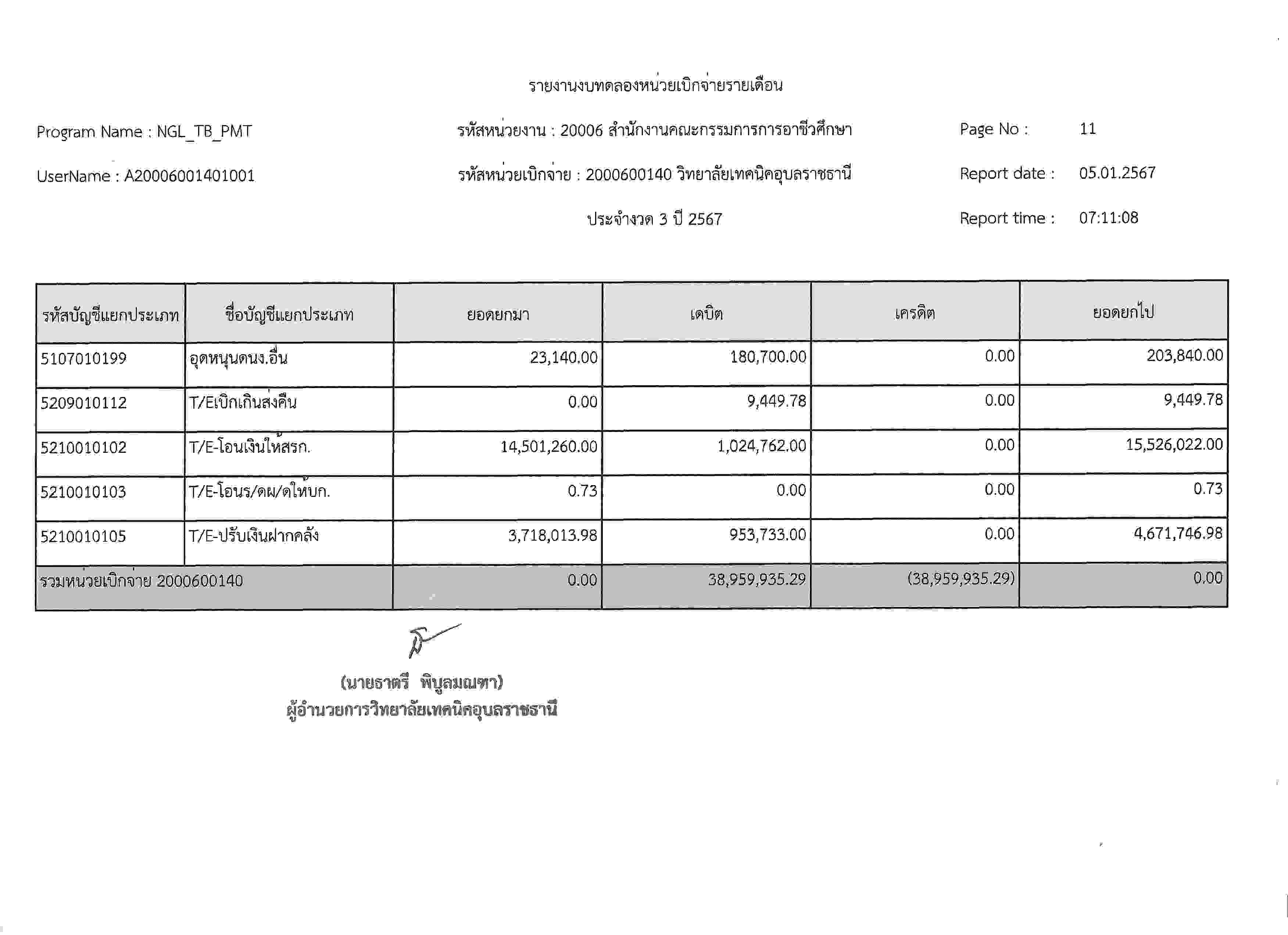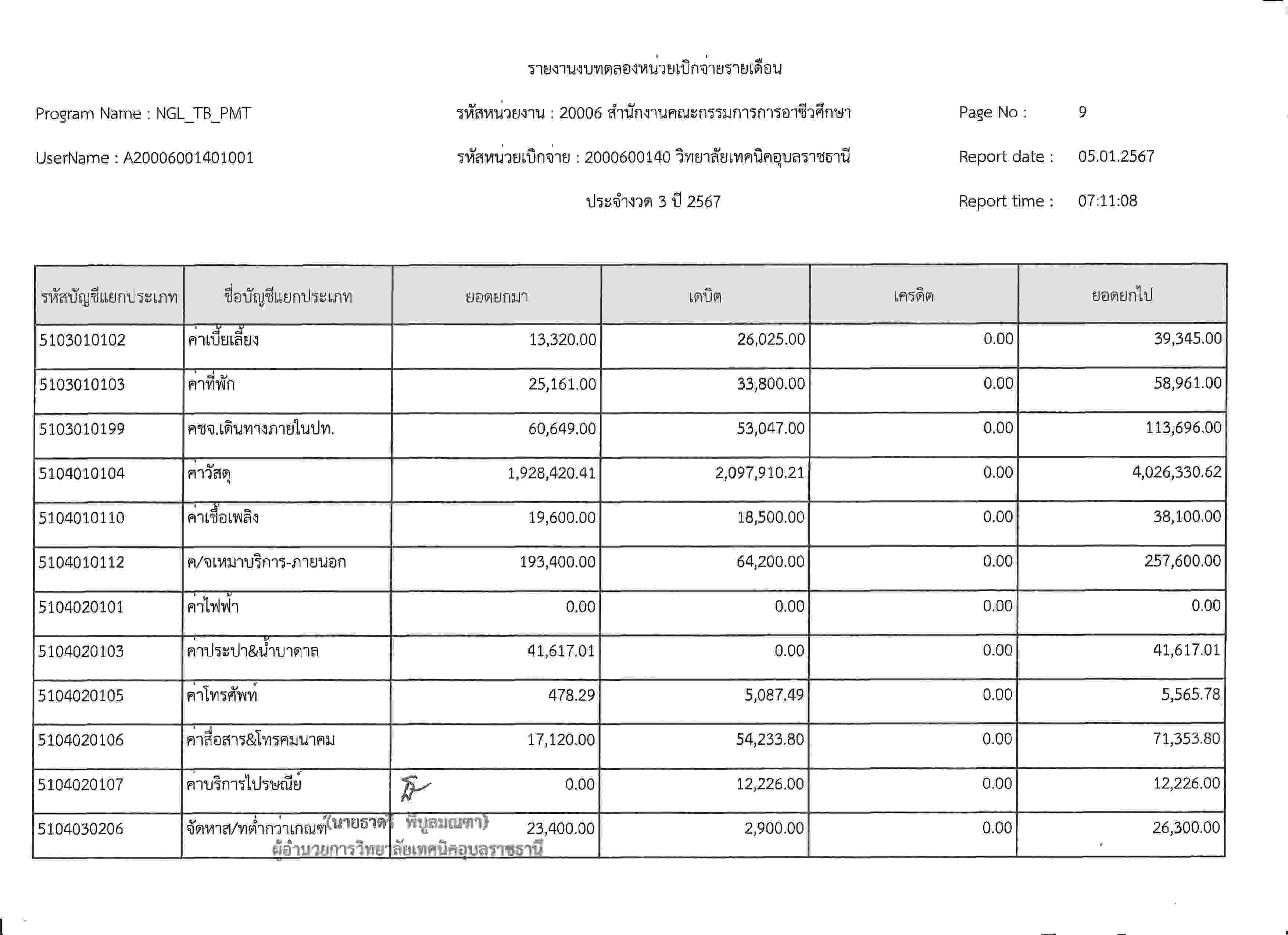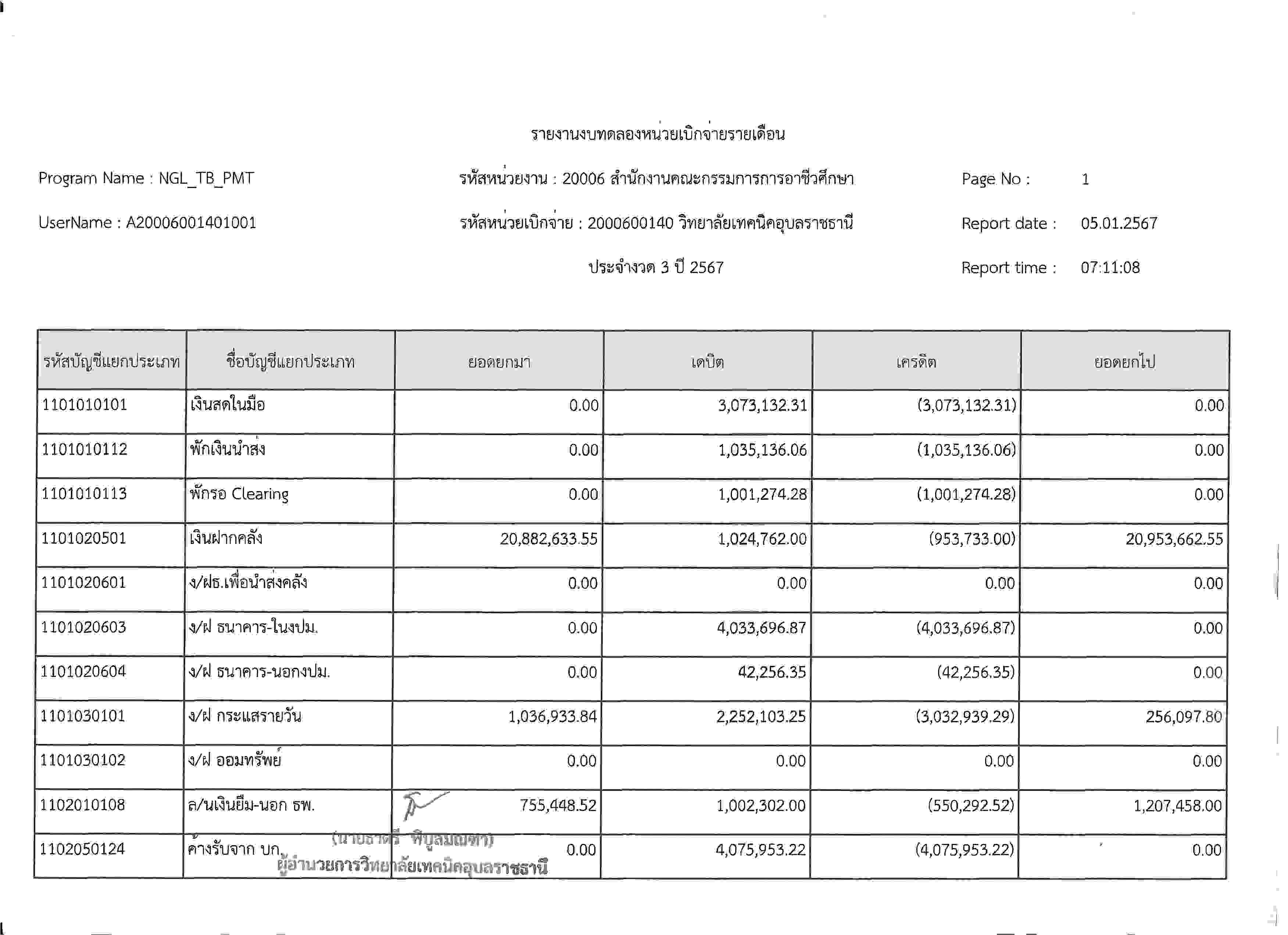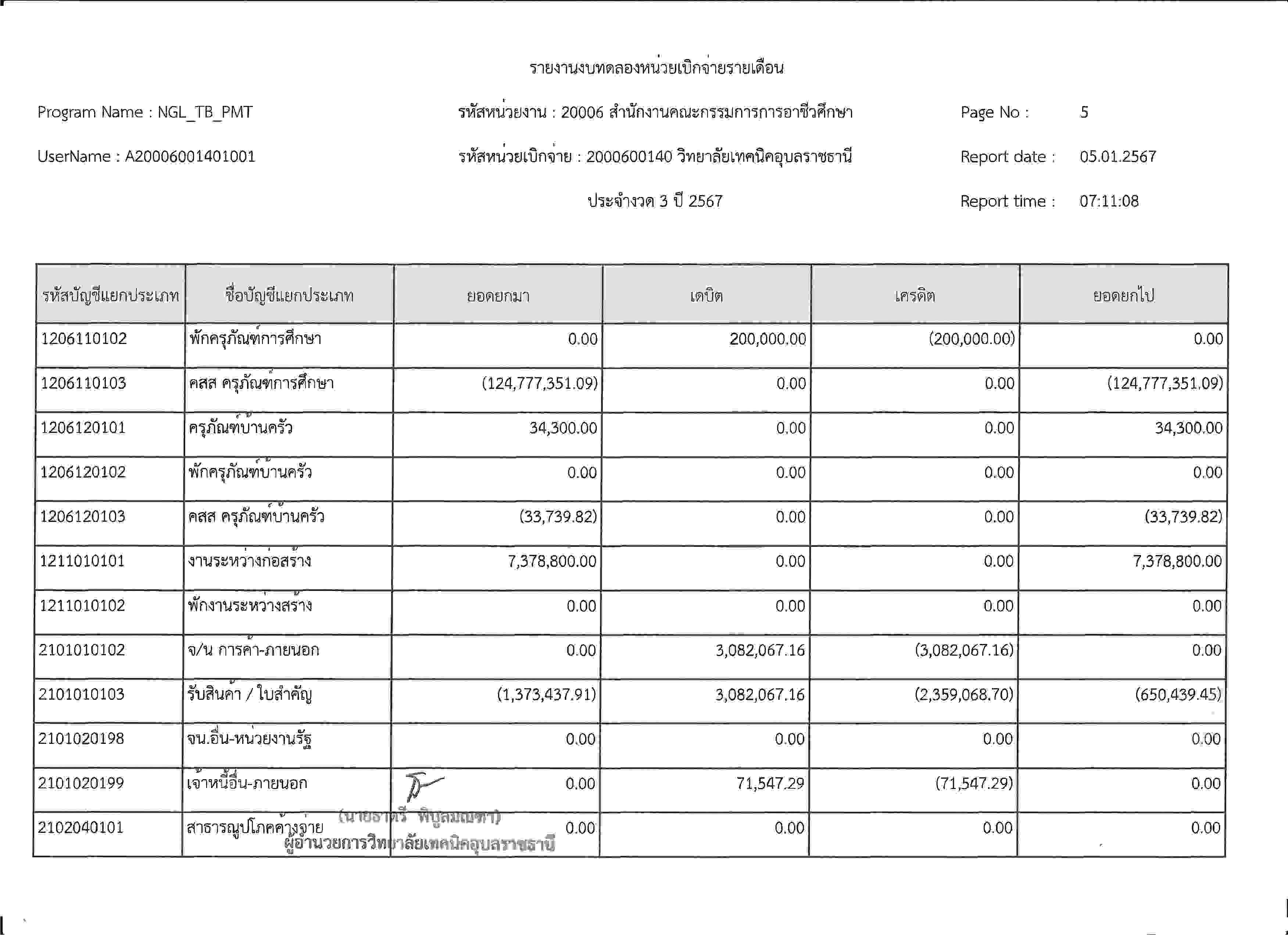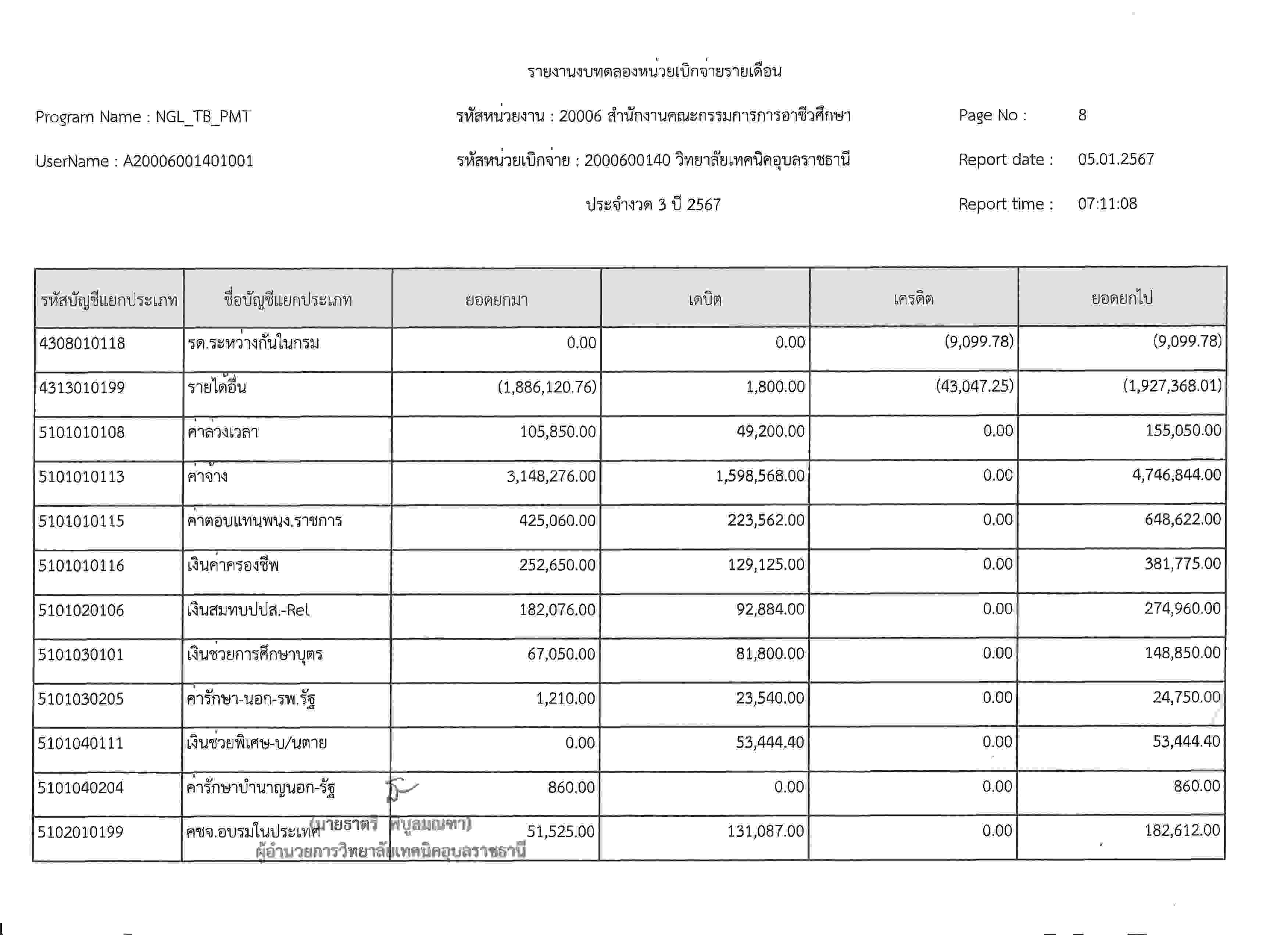 รายงานงบทดลองประจำเดือนธันวาคม 2566