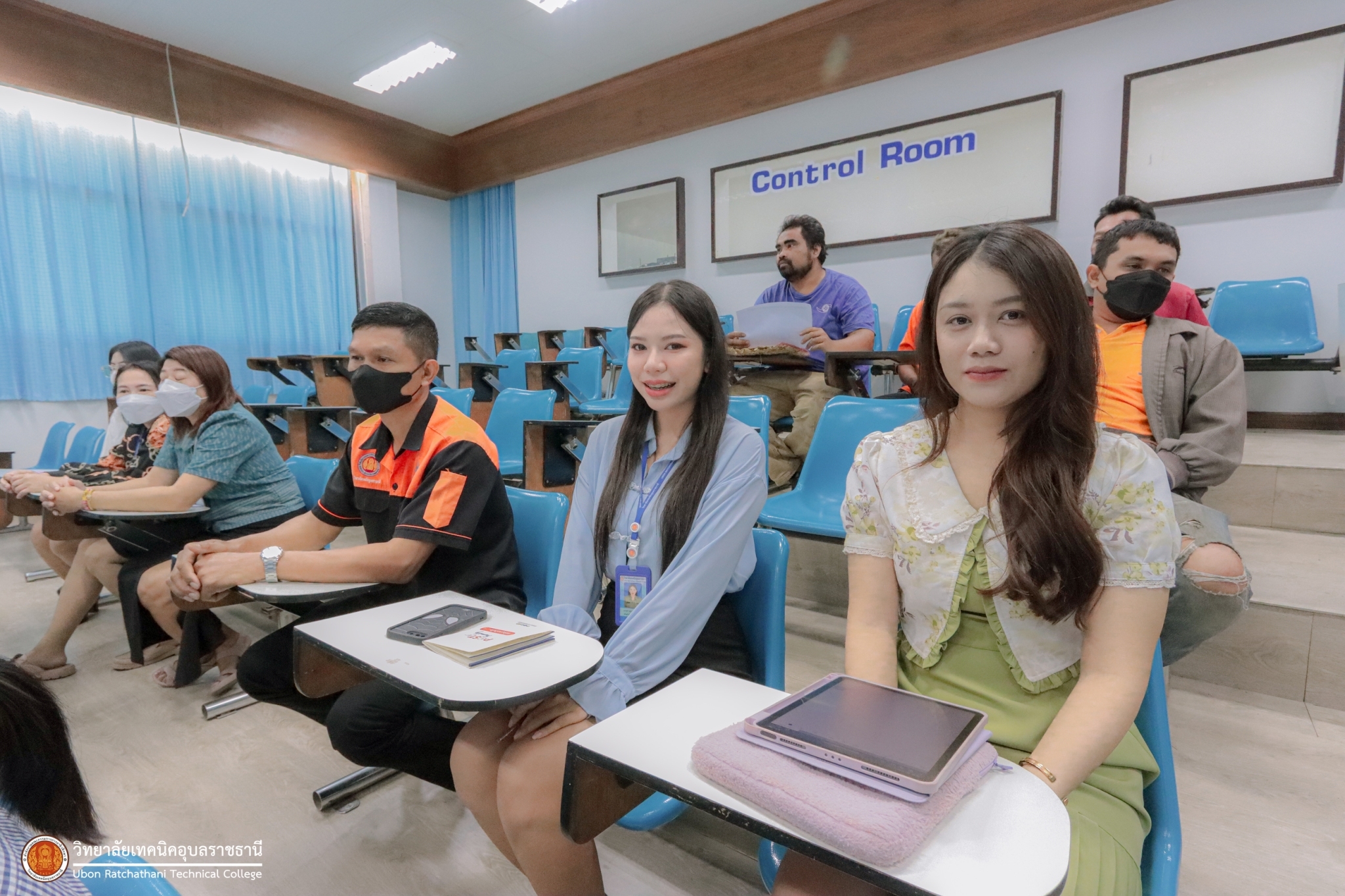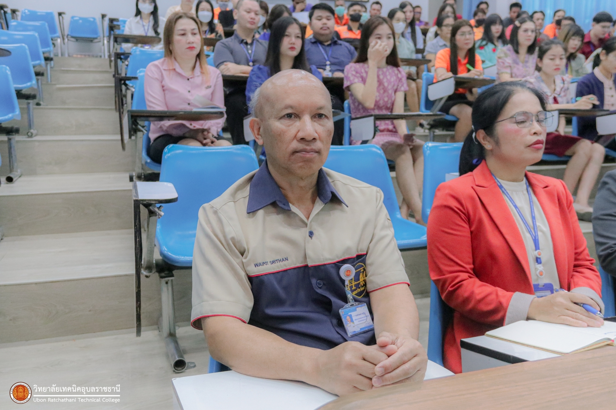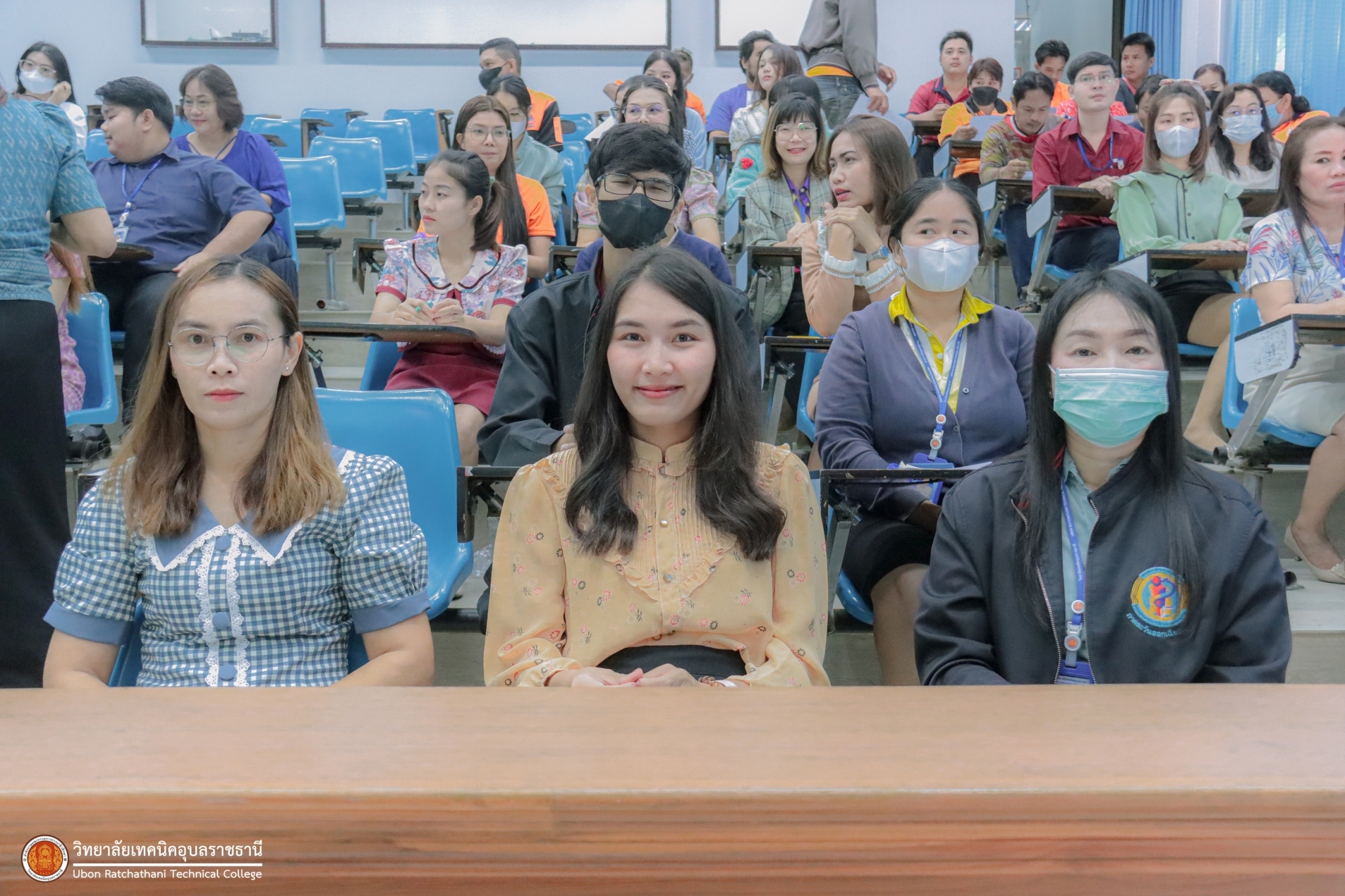วันที่ ๑๑ มกราคม ๒๕๖๗ เวลา ๐๘.๓๐ น. นายธาตรี พิบูลมณฑา ผู้อำนวยการวิทยาลัยเทคนิคอุบลราชธานี ให้เกียรติเป็นประธานในการประชุมเจ้าหน้าที่ธุรการ แม่บ้าน นักการภารโรง พนักงานขับรถ ณ ห้องประชุมบัวฟ้า วิทยาลัยเทคนิคอุบลราชธานี โดยมี นายไวพจน์ ศรีธัญ รองผู้อำนวยการฝ่ายพัฒนากิจการนักเรียนนักศึกษา นายสุวิชา มั่นยืน รองผู้อำนวยการฝ่ายวิชาการ นางราตรี สะดีวงศ์ รองผู้อำนวยการฝ่ายแผนงานและความร่วมมือ นางสาวสายฝน สาระผล รองผู้อำนวยการฝ่ายบริหารทรัพยากร พร้อมด้วยเจ้าหน้าที่ธุรการ แม่บ้าน นักการภารโรง พนักงานขับรถ เข้าร่วมการประชุมอย่างพร้อมเพรียง ทั้งนี้เพื่อชี้แจงแนวทางการปฏิบัติราชการในสถานศึกษาให้เป็นไปอย่างมีประสิทธิภาพต่อไป