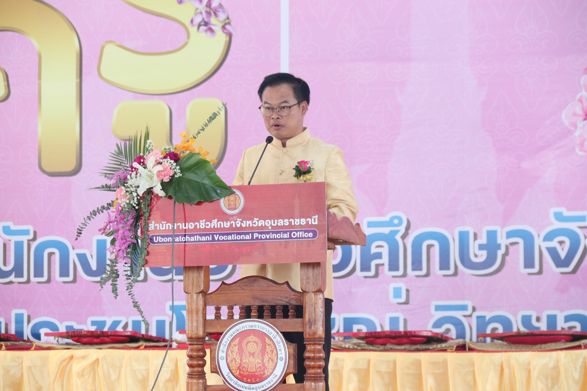 วันที่ ๑๖ มกราคม ๒๕๖๗ เวลา ๐๘.๓๐ น. นายธาตรี พิบูลมณฑา ผู้อำนวยการวิทยาลัยเทคนิคอุบลราชธานี ปฏิบัติหน้าที่ ผู้อำนวยการสำนักงานอาชีวศึกษาจังหวัดอุบลราชธานี มอบหมายให้ ดร.นิรันดร์ สมมุติ รองประธานกรรมการอาชีวศึกษาจังหวัดอุบลราชธานี คนที่ ๑ นำคณะผู้บริหาร ครู และบุคลากรทางการศึกษาในสังกัดสำนักงานอาชีวศึกษาจังหวัดอุบลราชธานี ร่วมพิธีเชิดชูเกียรติ เนื่องในโอกาสวันครู ครั้งที่ ๖๘ ประจำปีพุทธศักราช ๒๕๖๗ ในการนี้ได้รับเกียรติจาก นายลิขิต พลเหลา ผู้อำนวยการสถาบันการอาชีวศึกษาภาคตะวันออกเฉียงเหนือ ๔ เป็นประธานในพิธี ทั้งนี้เพื่อมอบเกียรติบัตรยกย่องเชิดชูเกียรติผู้บริหาร ครู และบุคลากรทางการศึกษา ของสถานศึกษาในสังกัดสำนักงานอาชีวศึกษาจังหวัดอุบลราชธานีทั้งภาครัฐและเอกชน โดยในปีนี้สำนักงานอาชีวศึกษาจังหวัดอุบลราชธานีมีผู้ได้รับเกียรติบัตรยกย่องเชิดชูเกียรติจำนวนทั้งสิ้น ๙๕๕ คน