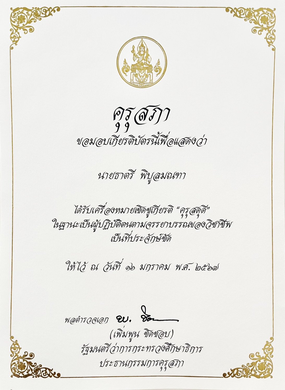 ผอ.วท.อุบลฯ เข้ารับรางวัล “คุรุสดุดี” เนื่องในงานวันครู ครั้งที่ ๖๘ พ.ศ. ๒๕๖๗ ณ หอประชุมคุรุสภา