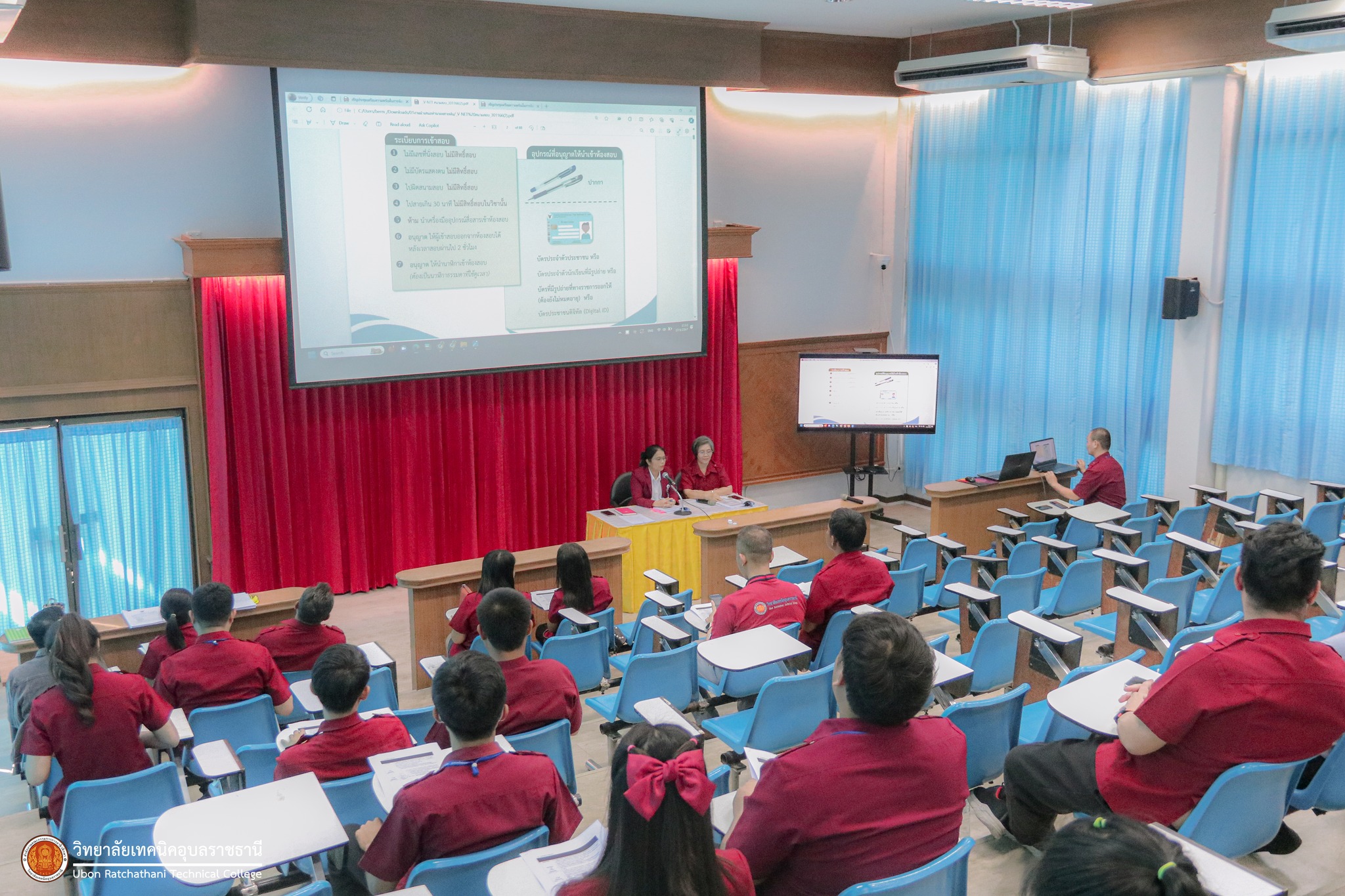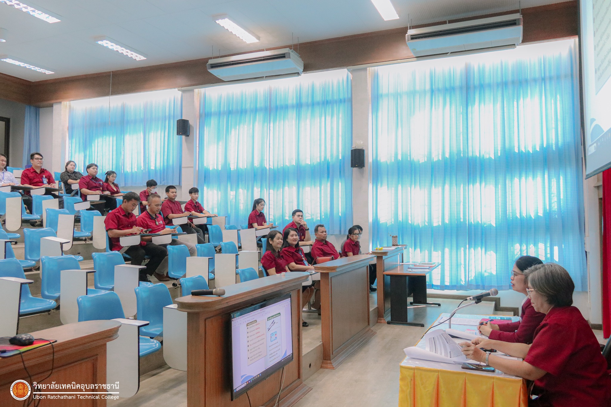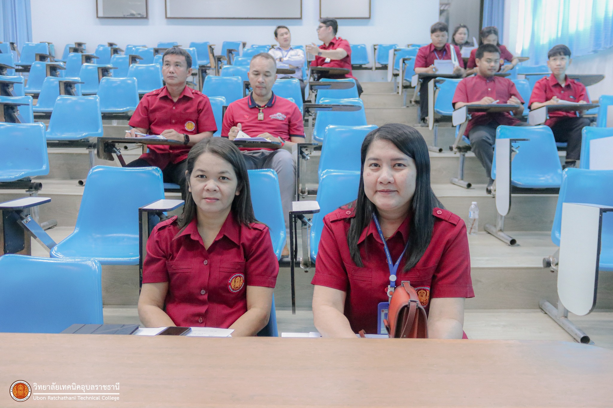วันที่ ๑๗ มกราคม ๒๕๖๗ เวลา ๑๕.๐๐ น. นายธาตรี พิบูลมณฑา ผู้อำนวยการวิทยาลัยเทคนิคอุบลราชธานี มอบหมายให้ นางสาวสายฝน สาระผล รองผู้อำนวยการฝ่ายบริหารทรัพยากร เป็นประธานในการประชุมชี้แจงการดำเนินการทดสอบทางการศึกษาระดับชาติ ด้านอาชีวศึกษา (V-NET) ด้วยระบบดิจิทัล (Digital Testing) ปีการศึกษา ๒๕๖๖ ซึ่งจัดขึ้นระหว่างวันที่ ๒๐ – ๒๑ มกราคม ๒๕๖๗ ณ ห้องประชุมบัวฟ้า วิทยาลัยเทคนิคอุบลราชธานี โดยมี นางพนิดา องค์สวัสดิ์ หัวหน้างานวัดผลและประเมินผล พร้อมด้วยคณะกรรมการคุมสอบ และบุคลากรทางการศึกษาที่เกี่ยวข้อง เข้าร่วมการประชุมอย่างพร้อมเพรียง ทั้งนี้เพื่อให้การดำเนินการทดสอบทางการศึกษาระดับชาติ ด้านอาชีวศึกษา (V-NET) ปีการศึกษา ๒๕๖๖ เป็นไปด้วยความเรียบร้อยต่อไป