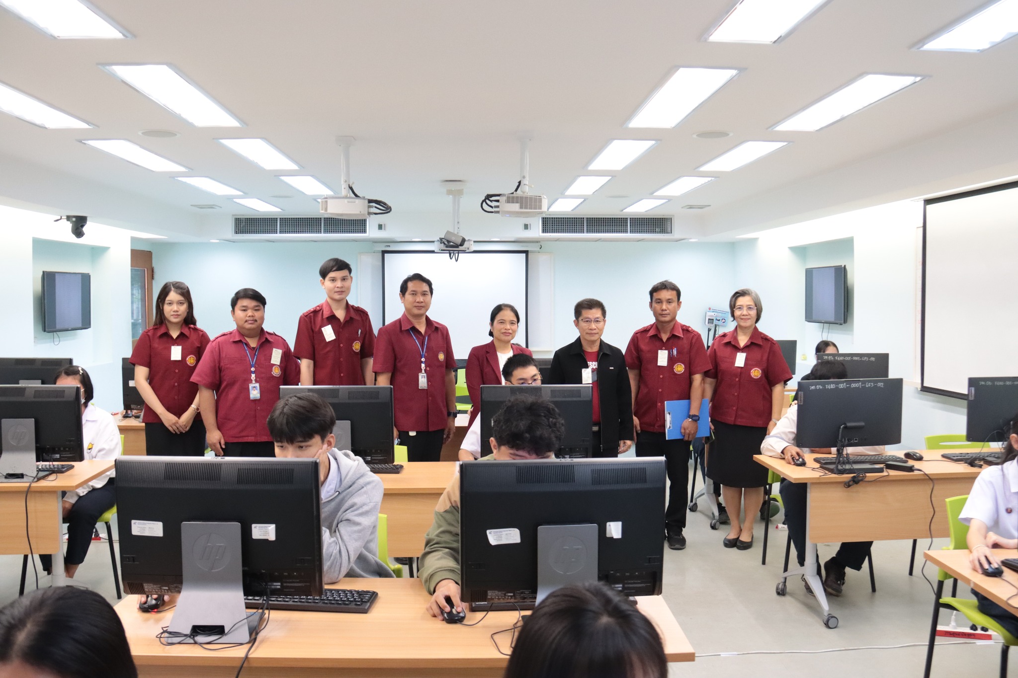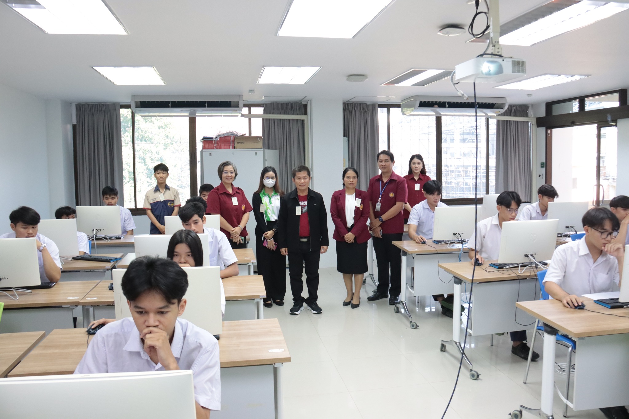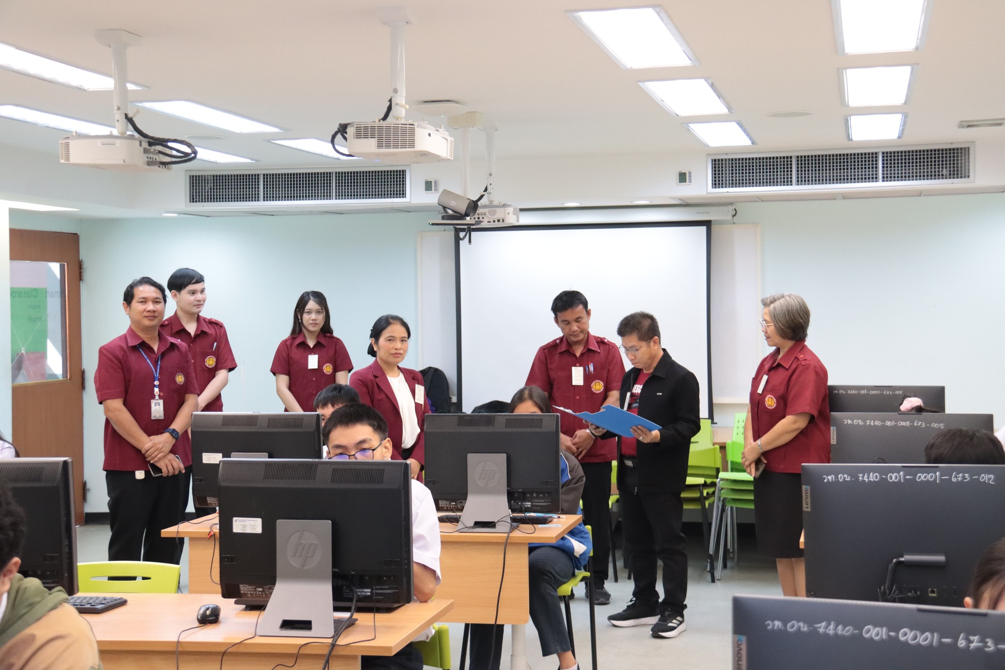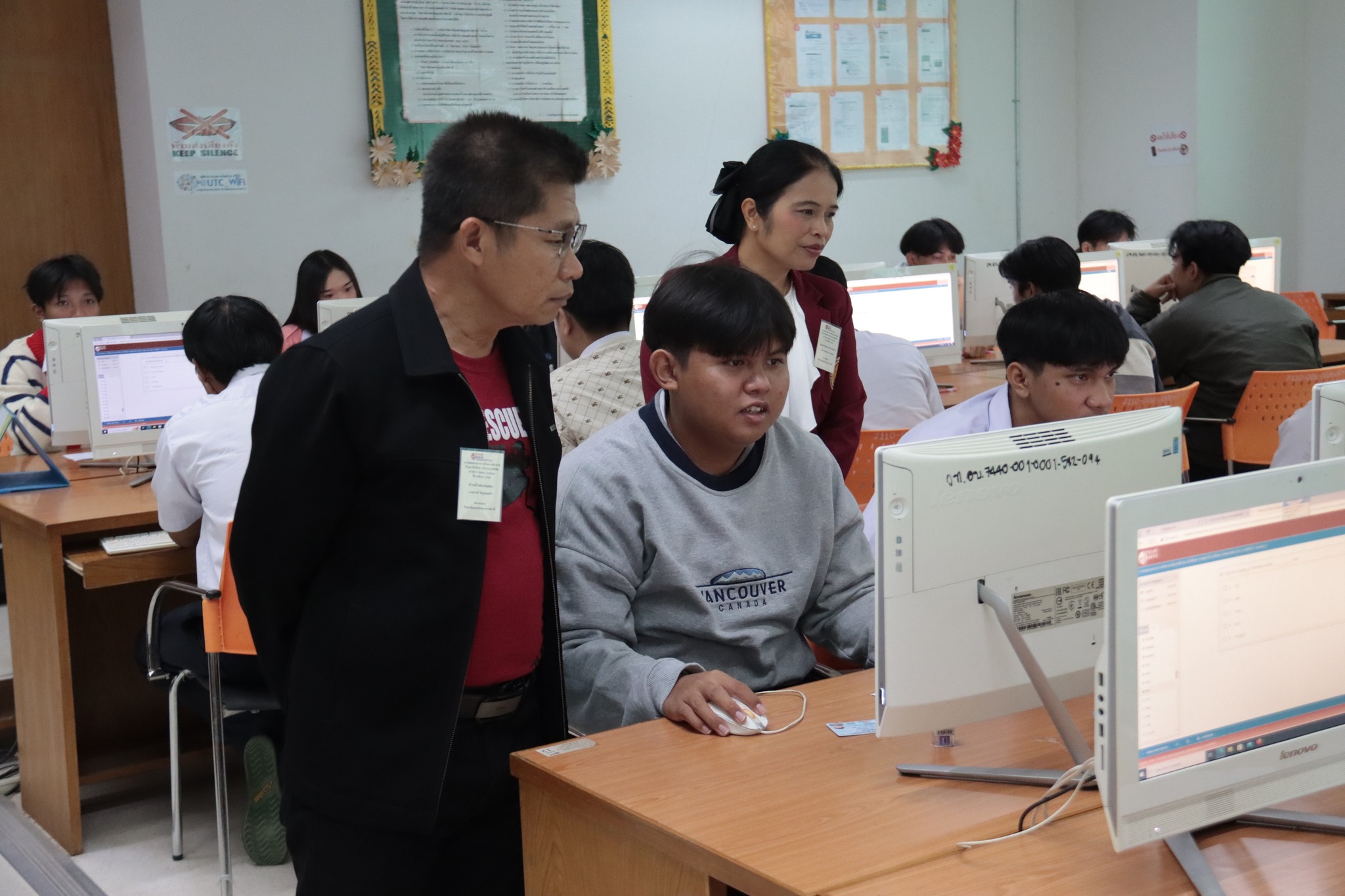 วันที่ ๒๑ มกราคม ๒๕๖๗ เวลา ๑๐.๐๐ น. นายธาตรี พิบูลมณฑา ผู้อำนวยการวิทยาลัยเทคนิคอุบลราชธานี พร้อมด้วย นางสาวสายฝน สาระผล รองผู้อำนวยการฝ่ายบริหารทรัพยากร นางพนิดา องค์สวัสดิ์ หัวหน้างานวัดผลและประเมินผล และนายอิทธิพล สุขเติม หัวหน้างานศูนย์ข้อมูลสารสนเทศ /เจ้าหน้าที่ระบบสนามสอบ เข้าตรวจเยี่ยมการดำเนินการทดสอบทางการศึกษาระดับชาติ ด้านอาชีวศึกษา (V-NET) ด้วยระบบดิจิทัล (Digital Testing) ปีการศึกษา ๒๕๖๖ ซึ่งได้แก่ ๑.ห้อง Smart Classroom ๒.ห้องสืบค้นข้อมูล ชั้น ๑ อาคารวิทยบริการและห้องสมุด และ๓.อาคาร ๓ แผนกวิชาเทคโนโลยีคอมพิวเตอร์ โดยมีคณะครู เจ้าหน้าที่ระบบห้องสอบ และกรรมการคุมสอบ ปฏิบัติหน้าที่ ณ สนามสอบวิทยาลัยเทคนิคอุบลราชธานี ทั้งนี้เพื่อให้การดำเนินงานเป็นไปด้วยความเรียบร้อย โปร่งใส ยุติธรรม และมีประสิทธิภาพสอดคล้องกับแนวทางและวิธีการดำเนินงานของการทดสอบทางการศึกษาระดับชาติ รวมทั้งเป็นไปตามมาตรฐานการทดสอบทางการศึกษาแห่งชาติต่อไป