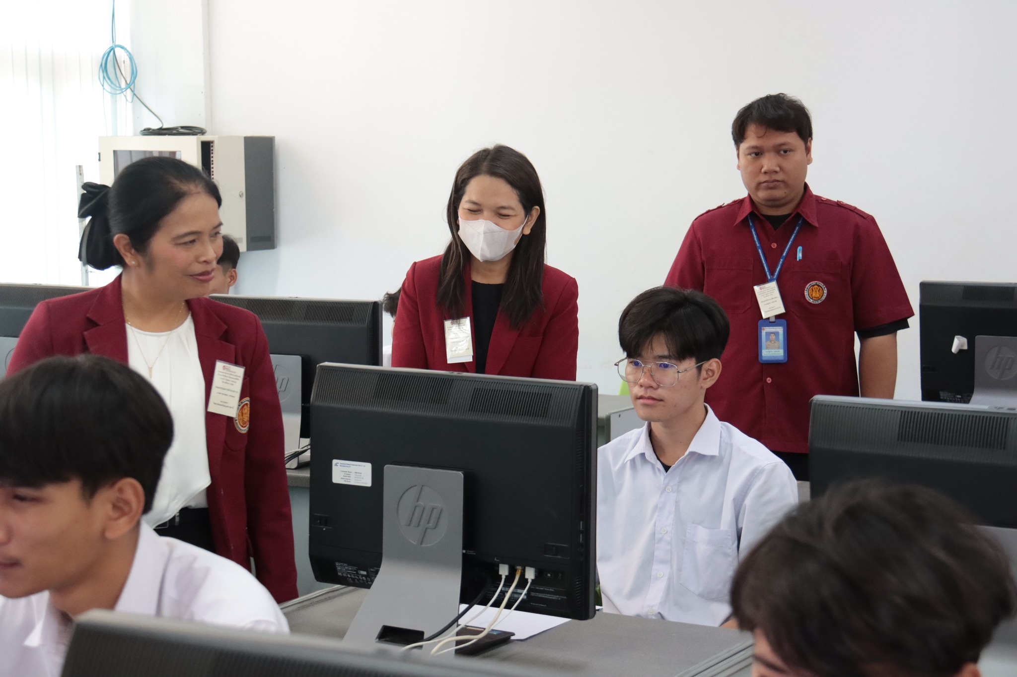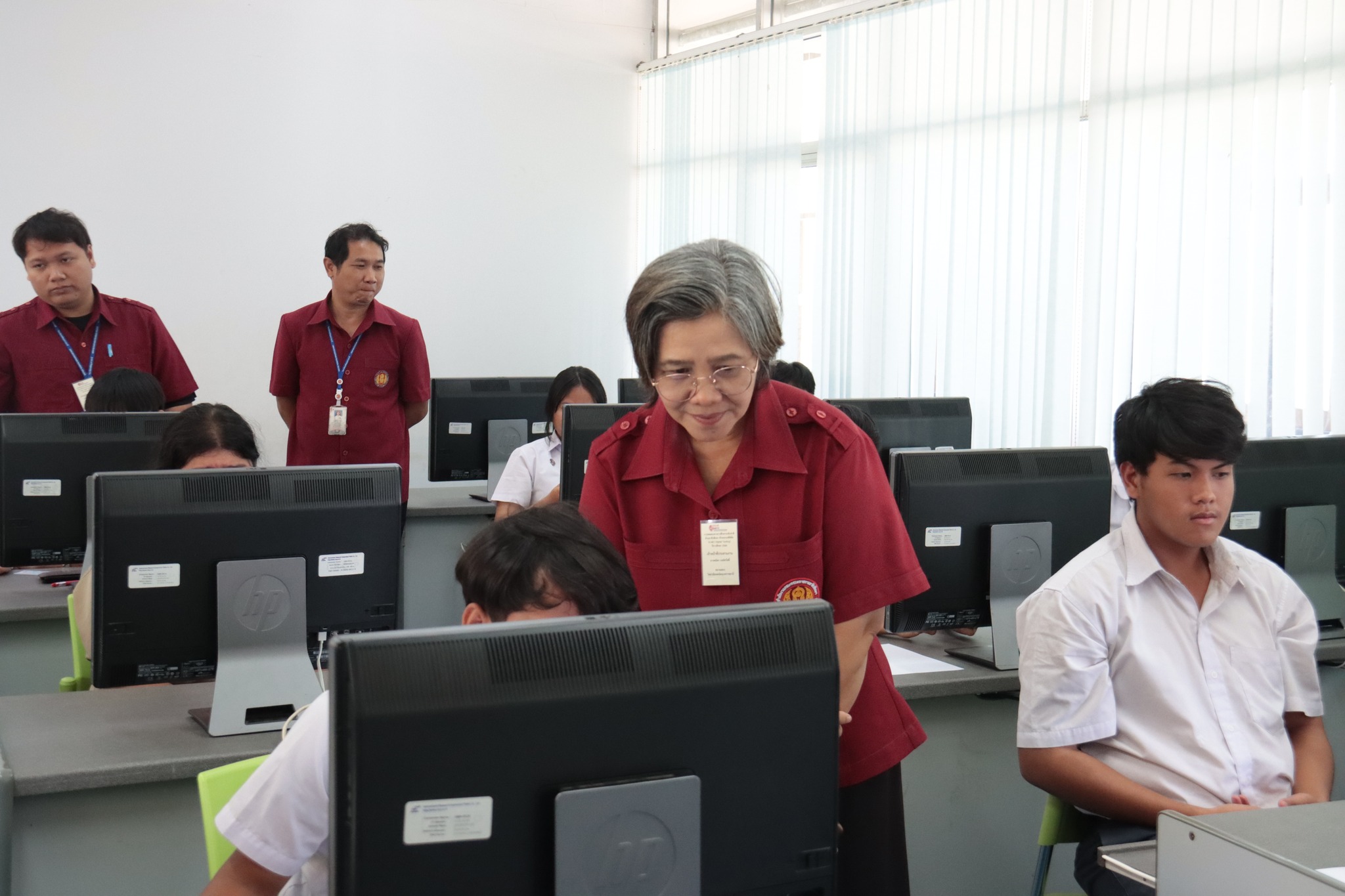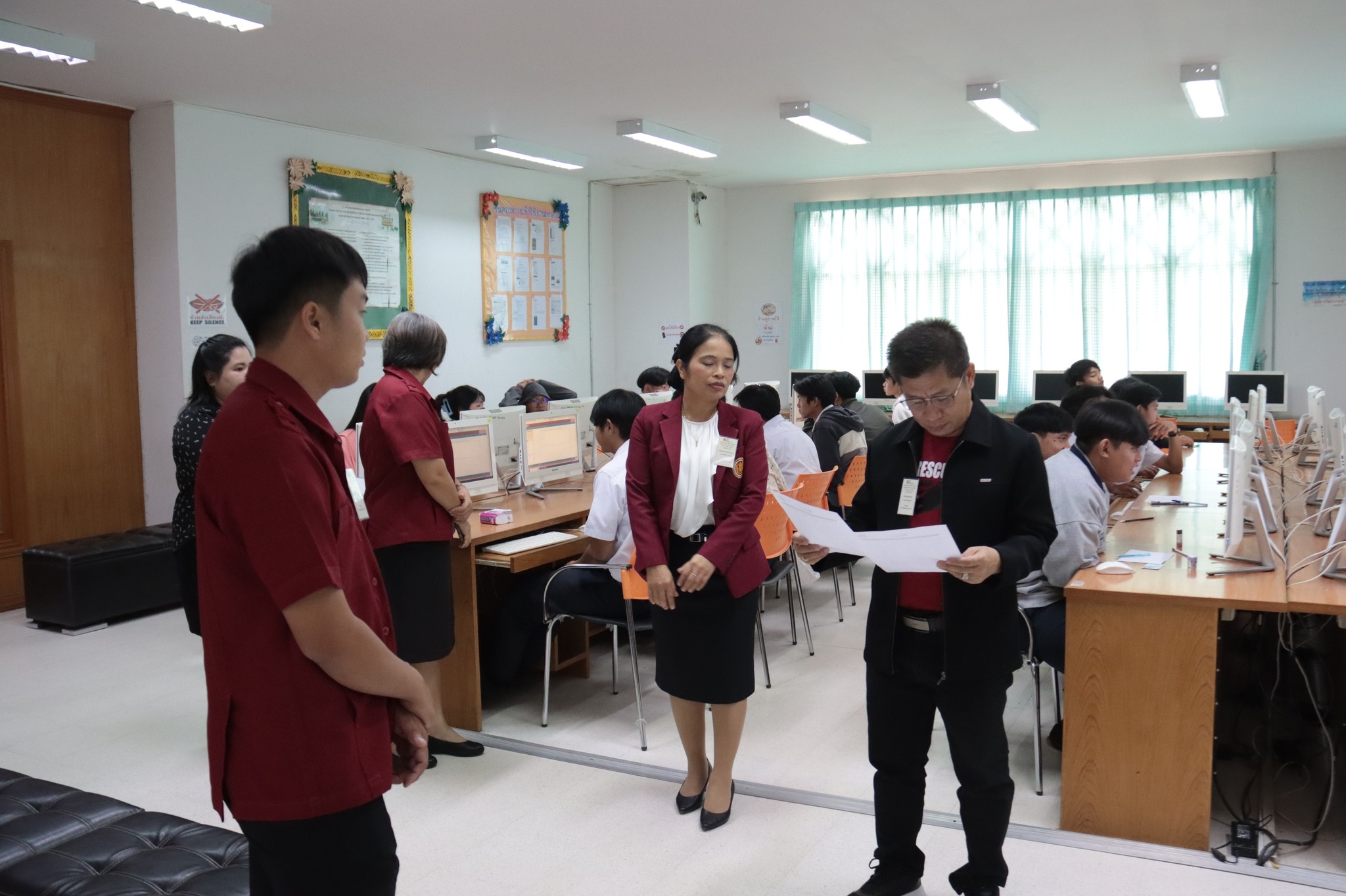 วันที่ ๒๑ มกราคม ๒๕๖๗ เวลา ๑๐.๐๐ น. นายธาตรี พิบูลมณฑา ผู้อำนวยการวิทยาลัยเทคนิคอุบลราชธานี พร้อมด้วย นางสาวสายฝน สาระผล รองผู้อำนวยการฝ่ายบริหารทรัพยากร นางพนิดา องค์สวัสดิ์ หัวหน้างานวัดผลและประเมินผล และนายอิทธิพล สุขเติม หัวหน้างานศูนย์ข้อมูลสารสนเทศ /เจ้าหน้าที่ระบบสนามสอบ เข้าตรวจเยี่ยมการดำเนินการทดสอบทางการศึกษาระดับชาติ ด้านอาชีวศึกษา (V-NET) ด้วยระบบดิจิทัล (Digital Testing) ปีการศึกษา ๒๕๖๖ ซึ่งได้แก่ ๑.ห้อง Smart Classroom ๒.ห้องสืบค้นข้อมูล ชั้น ๑ อาคารวิทยบริการและห้องสมุด และ๓.อาคาร ๓ แผนกวิชาเทคโนโลยีคอมพิวเตอร์ โดยมีคณะครู เจ้าหน้าที่ระบบห้องสอบ และกรรมการคุมสอบ ปฏิบัติหน้าที่ ณ สนามสอบวิทยาลัยเทคนิคอุบลราชธานี ทั้งนี้เพื่อให้การดำเนินงานเป็นไปด้วยความเรียบร้อย โปร่งใส ยุติธรรม และมีประสิทธิภาพสอดคล้องกับแนวทางและวิธีการดำเนินงานของการทดสอบทางการศึกษาระดับชาติ รวมทั้งเป็นไปตามมาตรฐานการทดสอบทางการศึกษาแห่งชาติต่อไป