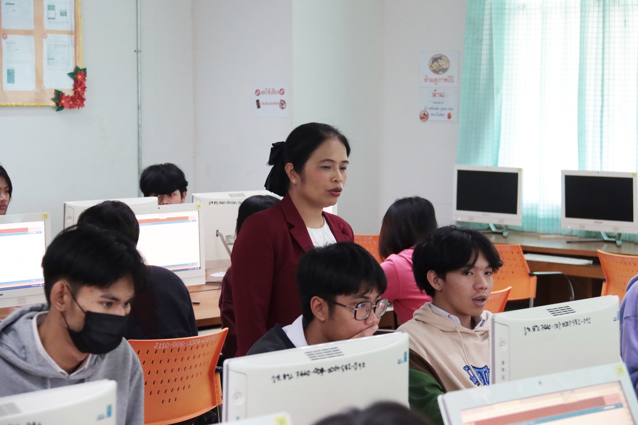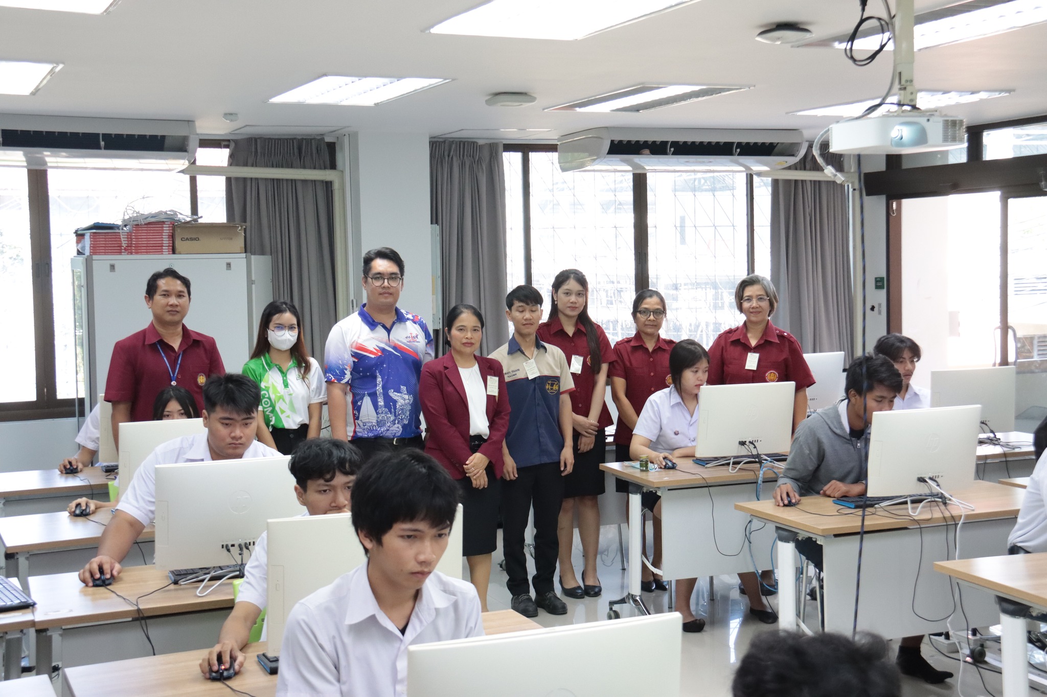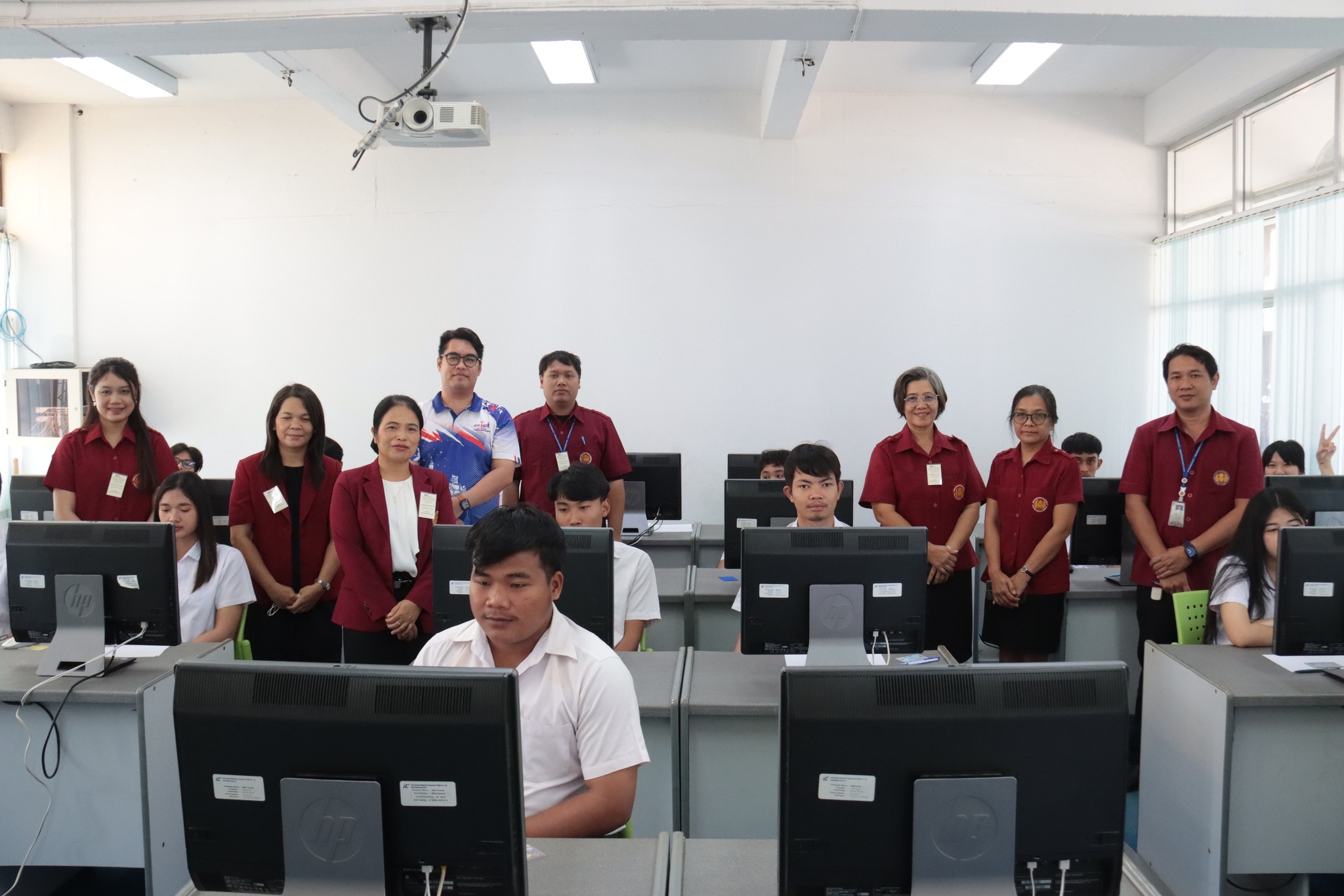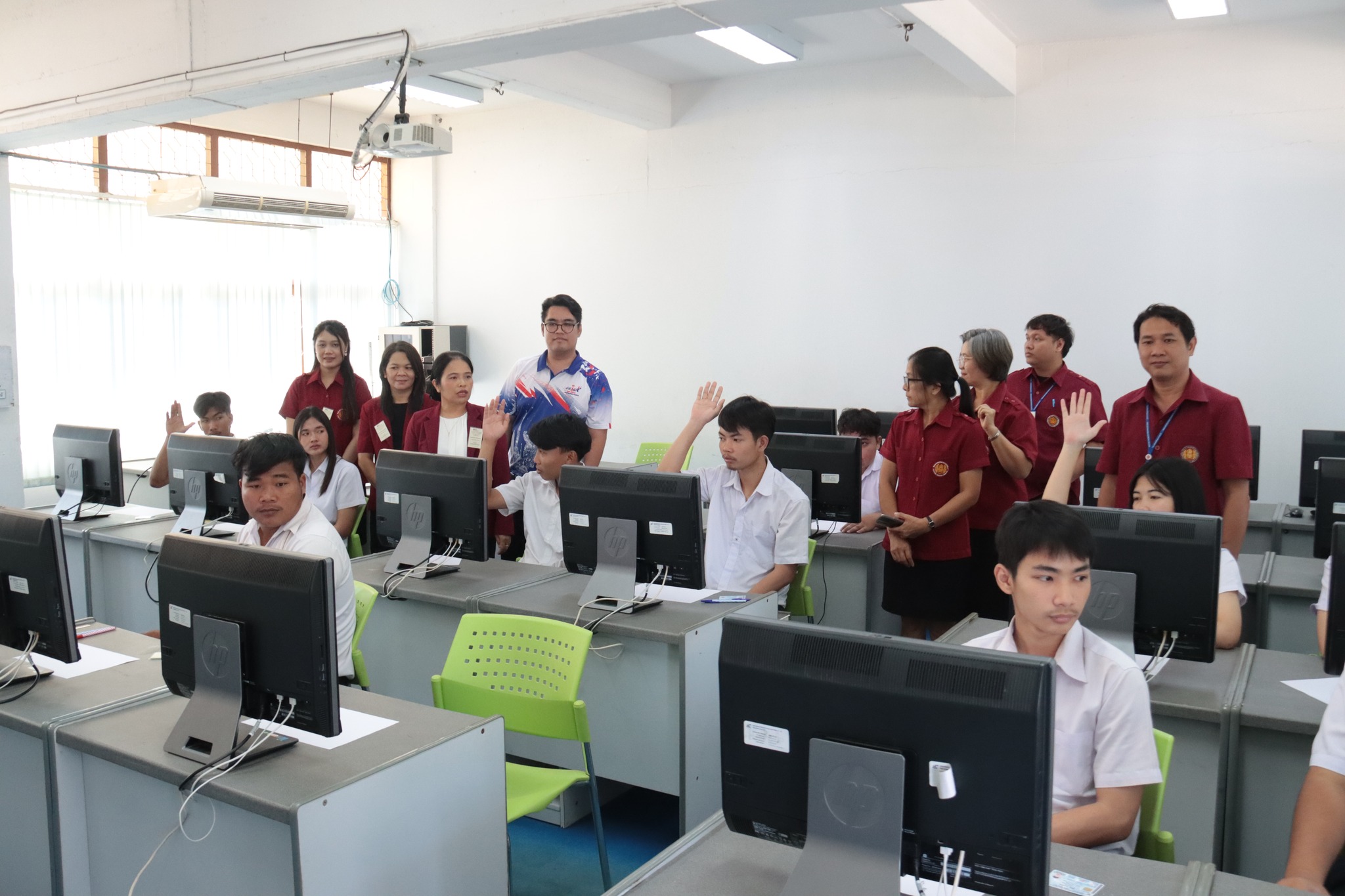 วันที่ ๒๑ มกราคม ๒๕๖๗ เวลา ๑๐.๐๐ น. นายธาตรี พิบูลมณฑา ผู้อำนวยการวิทยาลัยเทคนิคอุบลราชธานี พร้อมด้วย นางสาวสายฝน สาระผล รองผู้อำนวยการฝ่ายบริหารทรัพยากร นางพนิดา องค์สวัสดิ์ หัวหน้างานวัดผลและประเมินผล และนายอิทธิพล สุขเติม หัวหน้างานศูนย์ข้อมูลสารสนเทศ /เจ้าหน้าที่ระบบสนามสอบ เข้าตรวจเยี่ยมการดำเนินการทดสอบทางการศึกษาระดับชาติ ด้านอาชีวศึกษา (V-NET) ด้วยระบบดิจิทัล (Digital Testing) ปีการศึกษา ๒๕๖๖ ซึ่งได้แก่ ๑.ห้อง Smart Classroom ๒.ห้องสืบค้นข้อมูล ชั้น ๑ อาคารวิทยบริการและห้องสมุด และ๓.อาคาร ๓ แผนกวิชาเทคโนโลยีคอมพิวเตอร์ โดยมีคณะครู เจ้าหน้าที่ระบบห้องสอบ และกรรมการคุมสอบ ปฏิบัติหน้าที่ ณ สนามสอบวิทยาลัยเทคนิคอุบลราชธานี ทั้งนี้เพื่อให้การดำเนินงานเป็นไปด้วยความเรียบร้อย โปร่งใส ยุติธรรม และมีประสิทธิภาพสอดคล้องกับแนวทางและวิธีการดำเนินงานของการทดสอบทางการศึกษาระดับชาติ รวมทั้งเป็นไปตามมาตรฐานการทดสอบทางการศึกษาแห่งชาติต่อไป