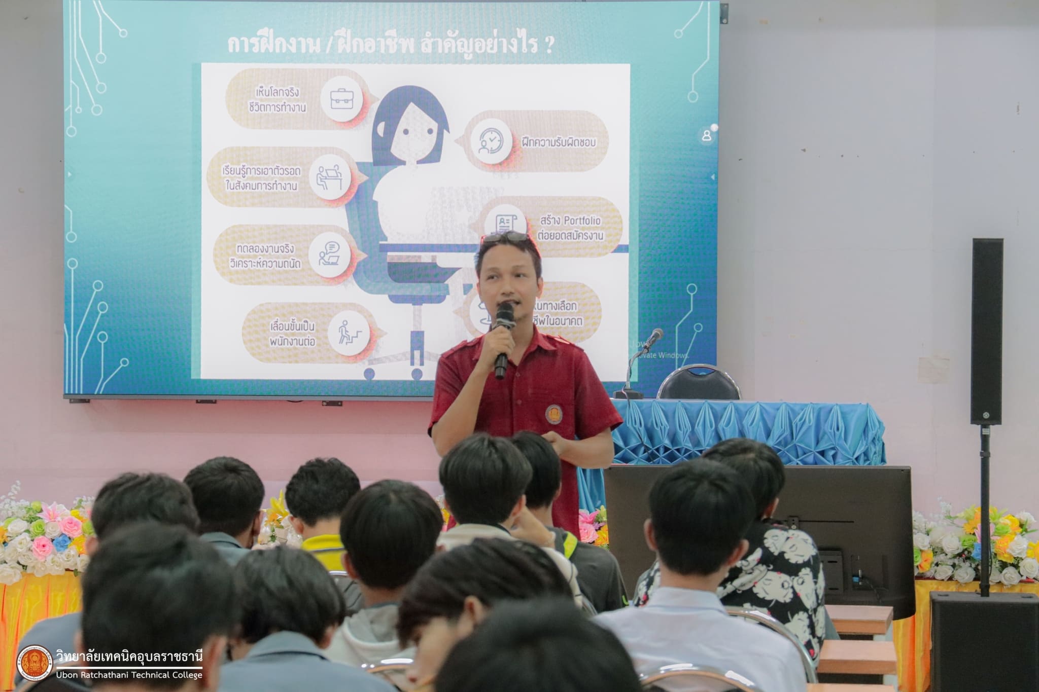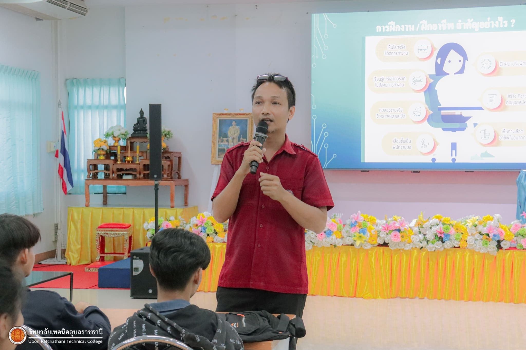 วันที่ ๒๔ มกราคม ๒๕๖๗ เวลา ๑๖.๐๐ น. นายธาตรี พิบูลมณฑา ผู้อำนวยการวิทยาลัยเทคนิคอุบลราชธานี ได้มอบหมายให้ นายทรงศักดิ์ สัตนาโค หัวหน้างานอาชีวศึกษาระบบทวิภาคี จัดอบรมชี้แจงเตรียมความพร้อมก่อนออกฝึกงาน ฝึกอาชีพ นักศึกษาระดับ ปวช.๒ แผนกวิชาช่างยนต์/เครื่องกล และแผนกวิชาช่างไฟฟ้ากำลัง ณ ห้องประชุมบัวแสด วิทยาลัยเทคนิคอุบลราชธานี โดยมีคณะครู แผนกวิชาช่างยนต์/เครื่องกล แผนกวิชาช่างไฟฟ้ากำลัง นำนักศึกษาเข้ารับการอบรมอย่างพร้อมเพรียง ทั้งนี้เพื่อให้นักศึกษาได้รับประสบการณ์ในการทำงาน ตลอดจนได้ฝึกภาคปฏิบัติ จากการปฏิบัติงานจริงและเมื่อจบภาคการศึกษาแล้ว สามารถนำไปพัฒนาตนเองเพื่อให้เป็นบุคลากรที่มีคุณภาพที่เหมาะสมและเป็นที่ต้องการของตลาดแรงงานต่อไป