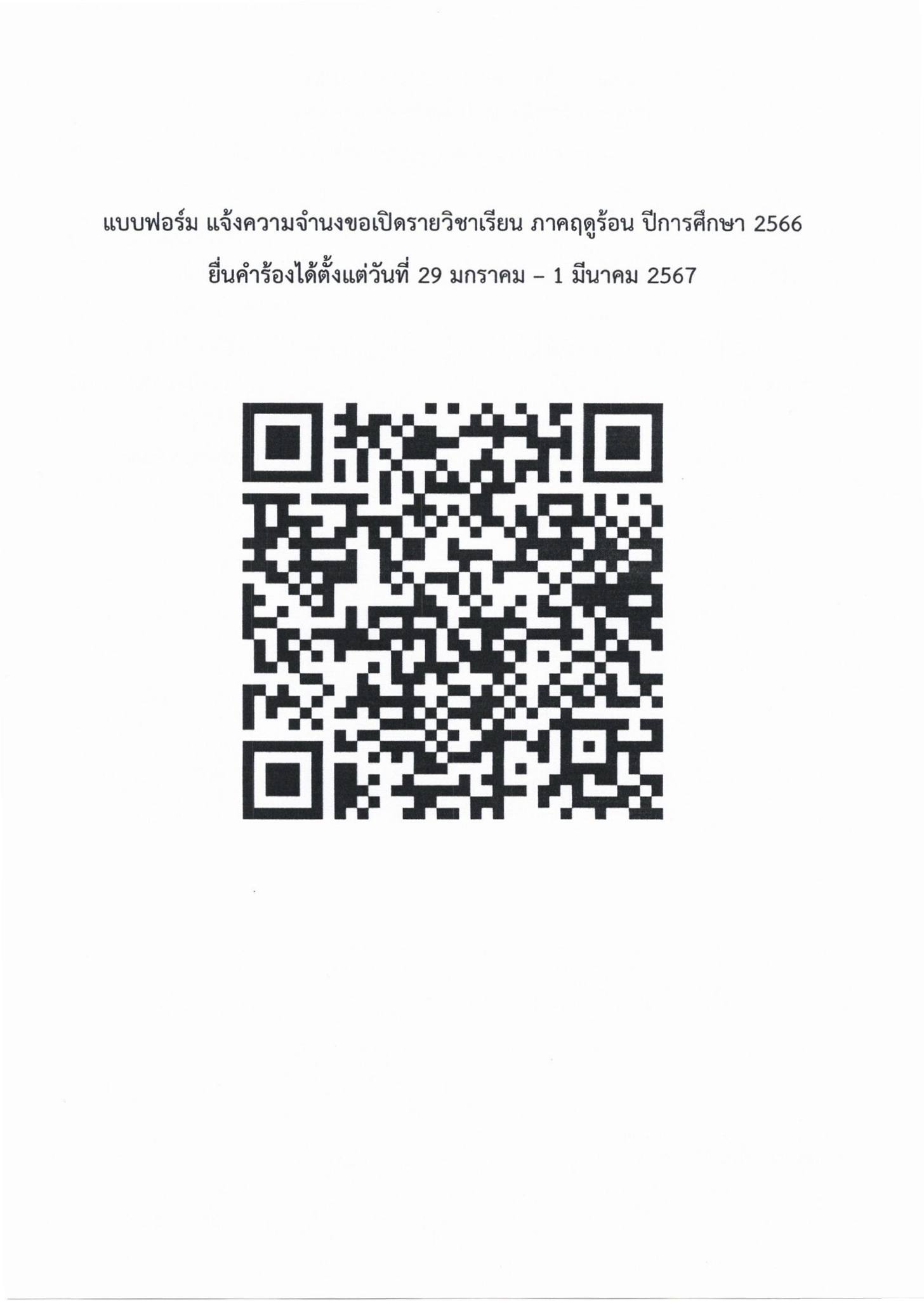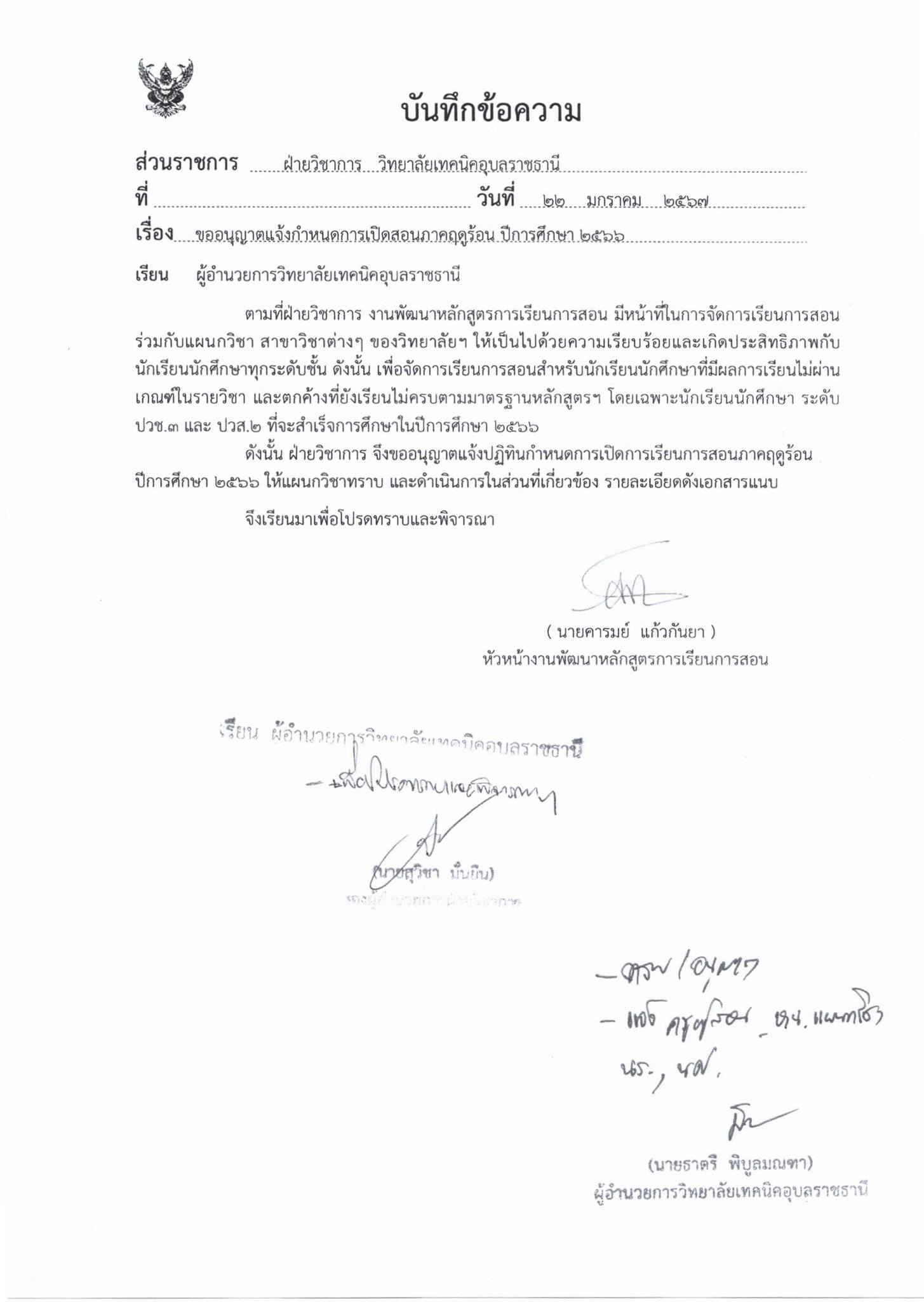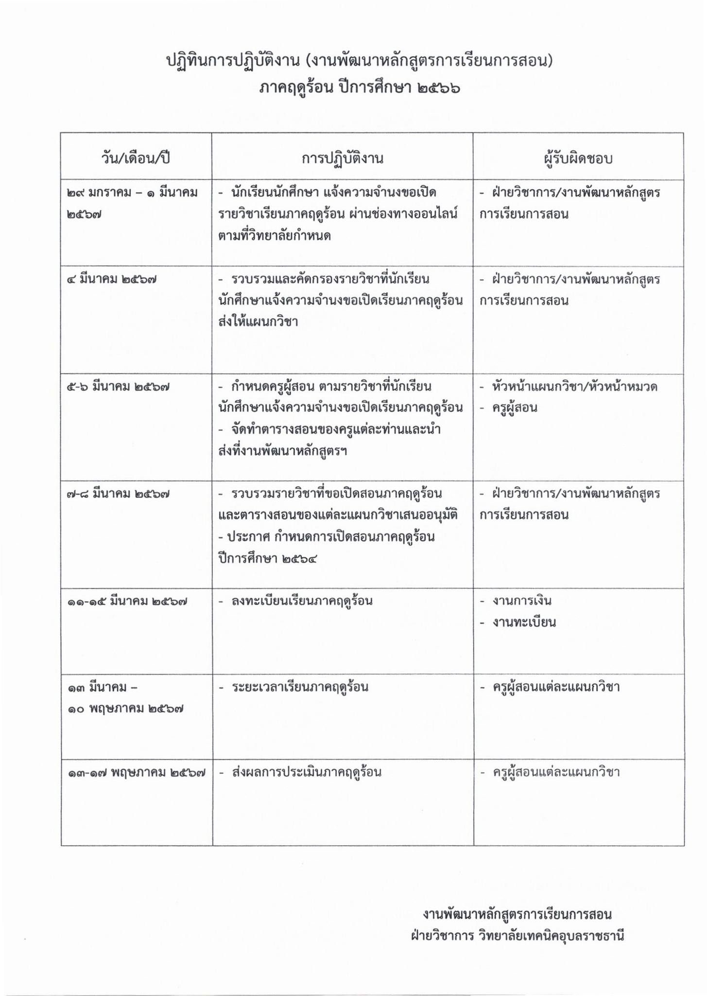เรื่องแจ้งกำหนดการเปิดสอนภาคฤดูร้อน ปีการศึกษา 2566