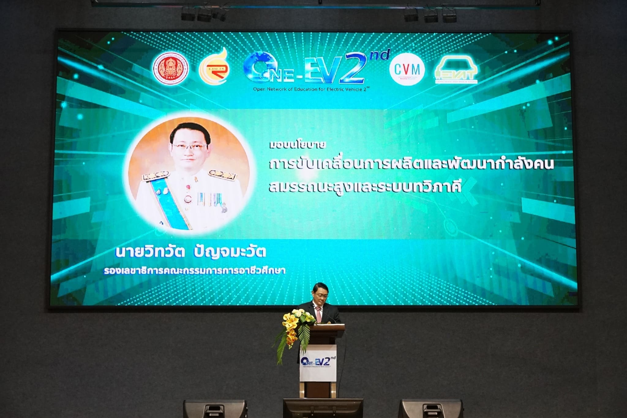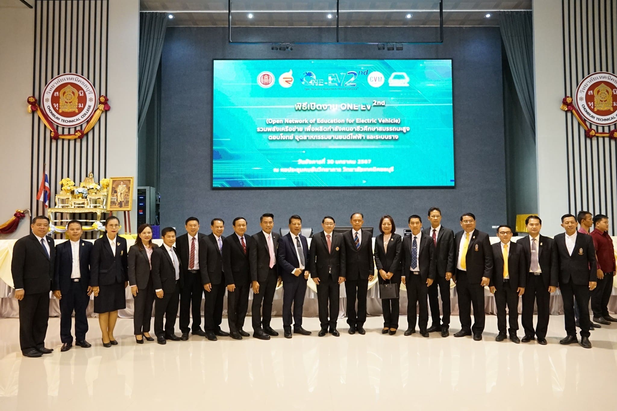 พิธีเปิดงาน ONE-EV (Open Network of Education for Electric Vehicle) “รวมพลังเครือข่าย เพื่อผลิตกำลังคนอาชีวศึกษาสมรรถนะสูง ตอบโจทย์อุตสาหกรรมยานยนต์ไฟฟ้า และระบบราง”