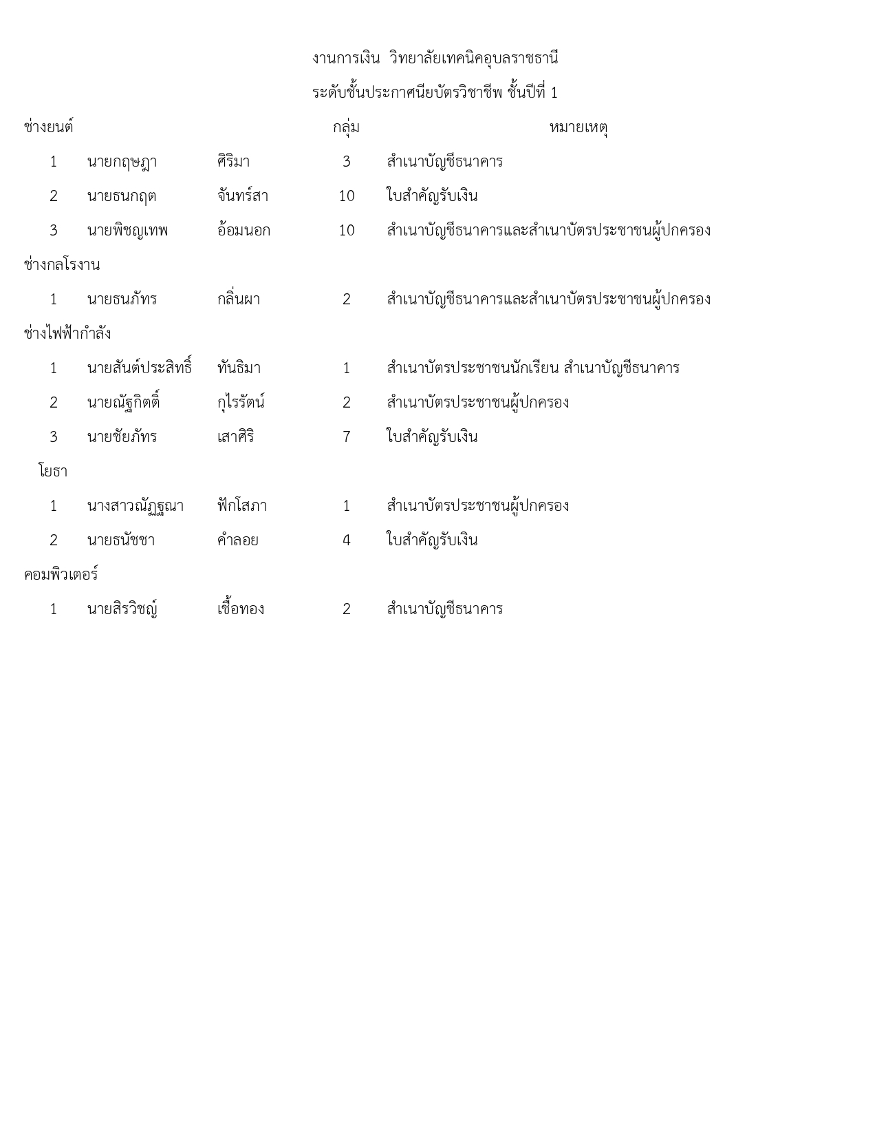 ตามประกาศวิทยาลัยเทคนิคอุบลราชธานี (เพิ่มเติม…)