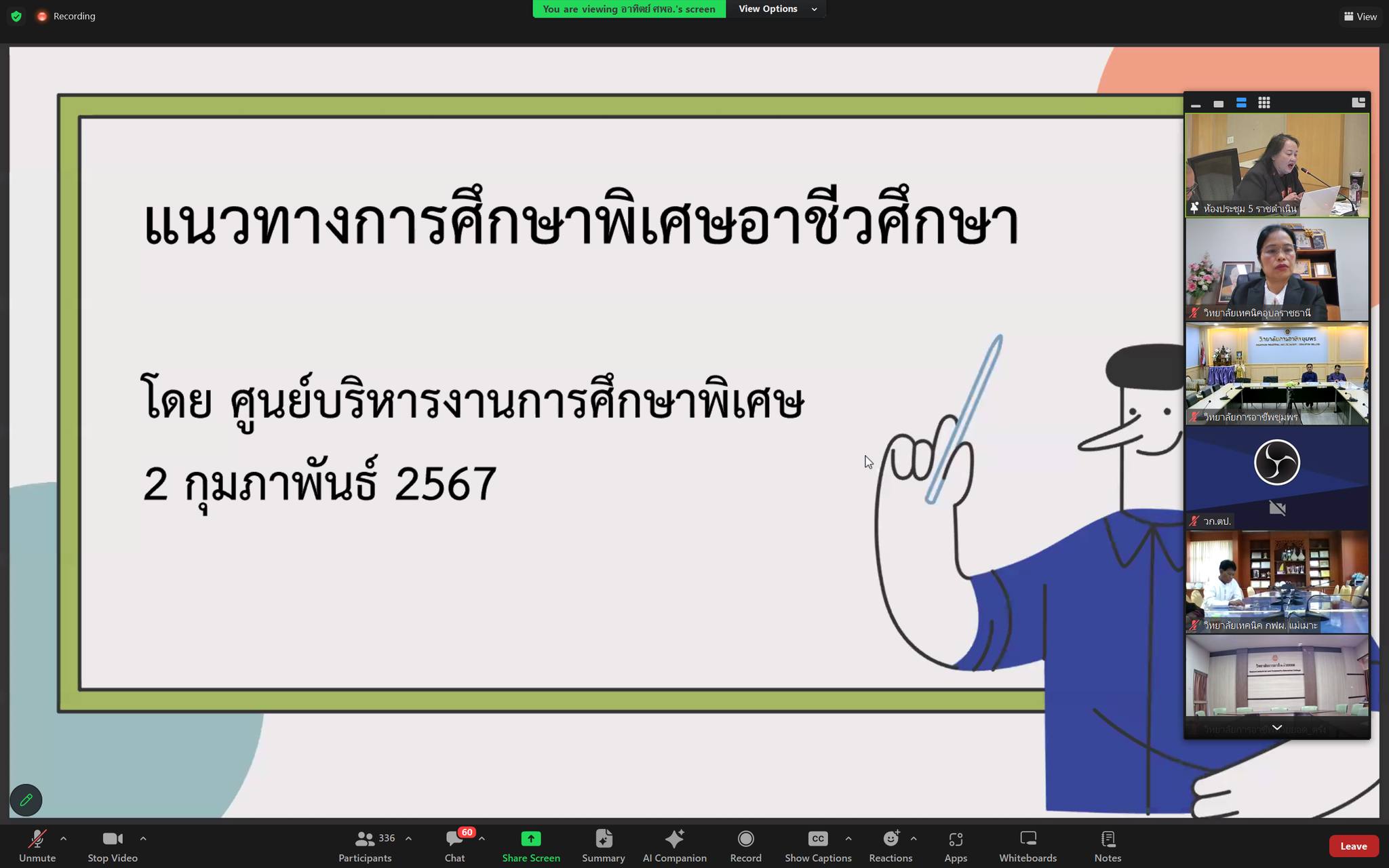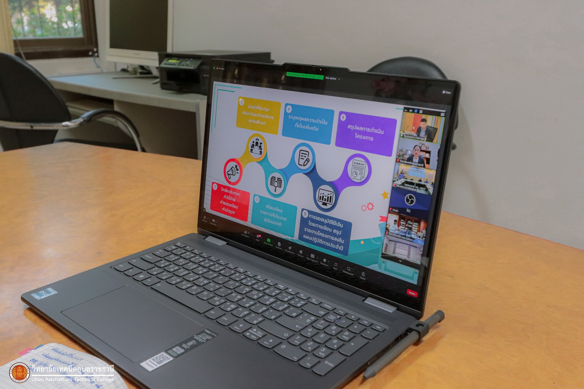 วันที่ ๒ กุมภาพันธ์ ๒๕๖๗ เวลา ๐๙.๓๐ น. นายธาตรี พิบูลมณฑา ผู้อำนวยการวิทยาลัยเทคนิคอุบลราชธานี ได้มอบหมายให้ นางสาวสายฝน สาระผล รองผู้อำนวยการฝ่ายบริหารทรัพยากร เข้าร่วมประชุมชี้แจงการบริหารจัดการเงินอุดหนุนทางการศึกษาสำหรับคนพิการ ในระดับอาชีวศึกษา ประจำปีการศึกษา ๒๕๖๗ ผ่านระบบสื่ออิเล็กทรอนิกส์ (Zoom Meeting) ณ วิทยาลัยเทคนิคอุบลราชธานี ซึ่งเป็นการชี้แจงการใช้คู่มือการบริหารจัดการเงินอุดหนุนทางการศึกษาสำหรับคนพิการ ได้แก่ ๑.เรื่อง หลักเกณฑ์การเรียกเก็บค่าธรรมเนียมการศึกษาที่สถานศึกษาต้องออกเป็นประกาศ ๒.เรื่อง ระบบการเงิน บัญชี และการตรวจสอบยืนยันนักเรียน นักศึกษาพิการจากงานทะเบียน และ๓.เรื่อง คุณสมบัติ แนวปฏิบัติในการขอรับเงิน อุดหนุน และขั้นตอนการดำเนินงาน ทั้งนี้เพื่อชี้แจงการบริหารเงินอุดหนุนทางการศึกษาสำหรับคนพิการ ในระดับอาชีวศึกษา ให้เป็นไปด้วยความเรียบร้อยต่อไป