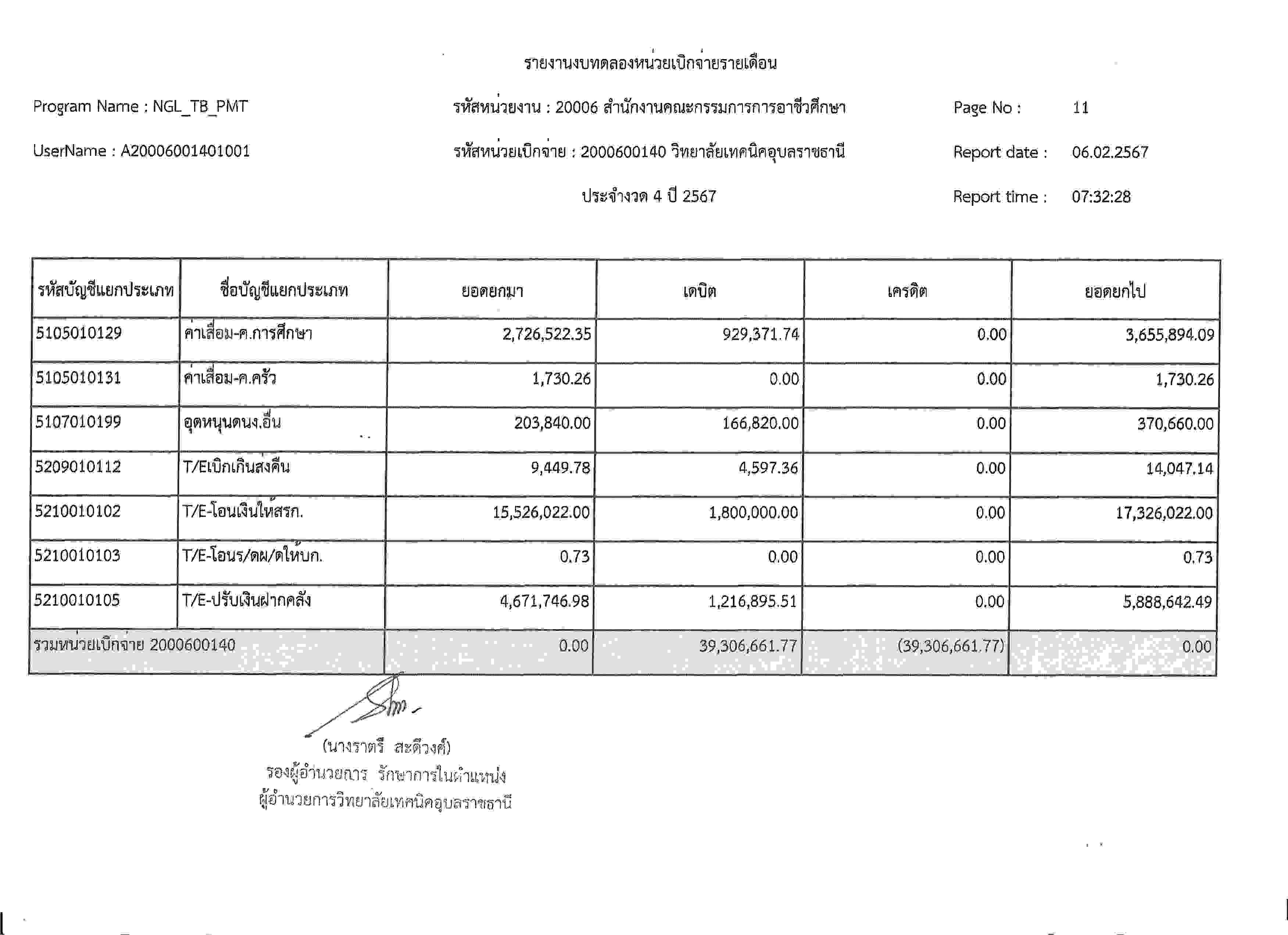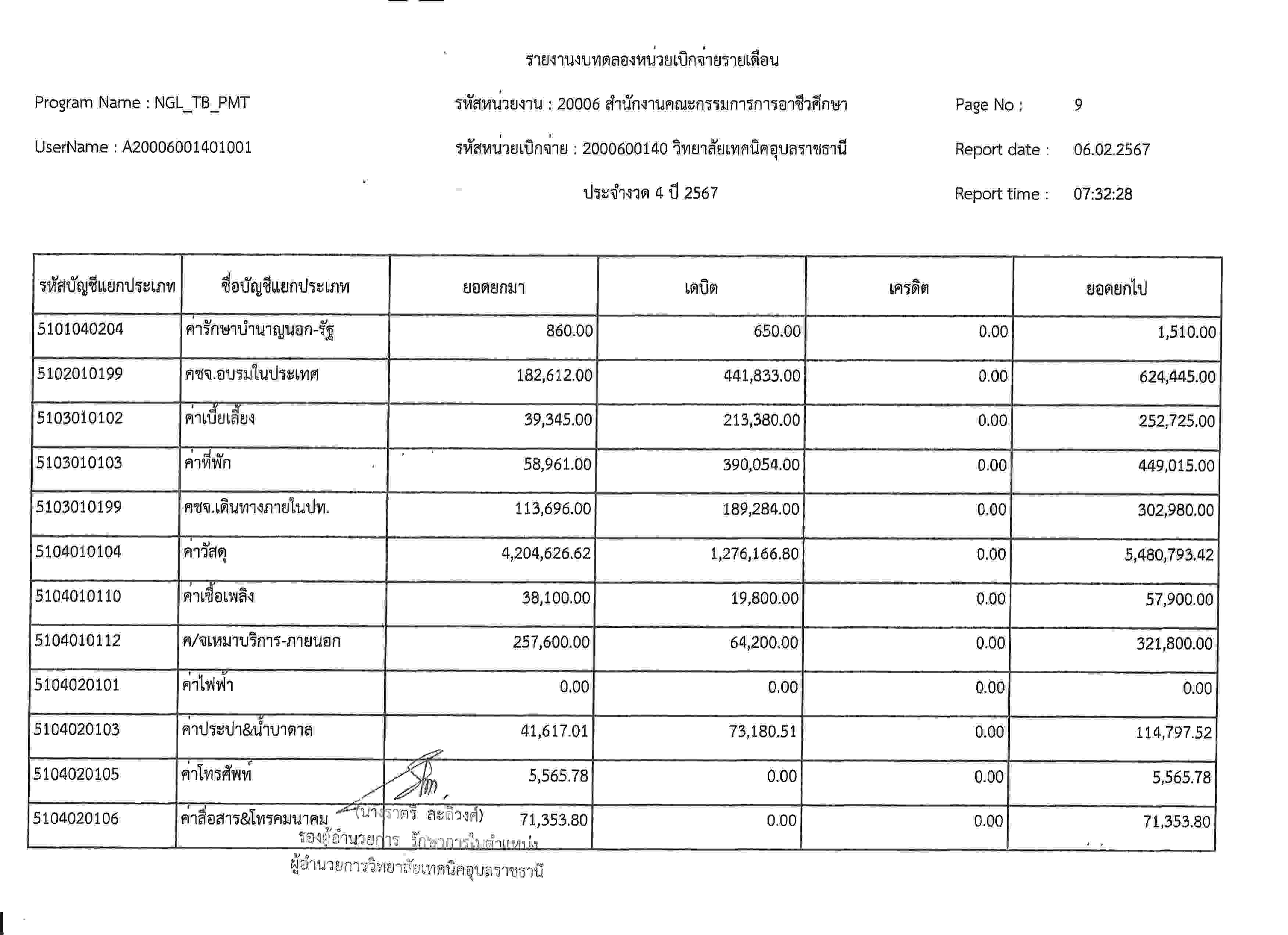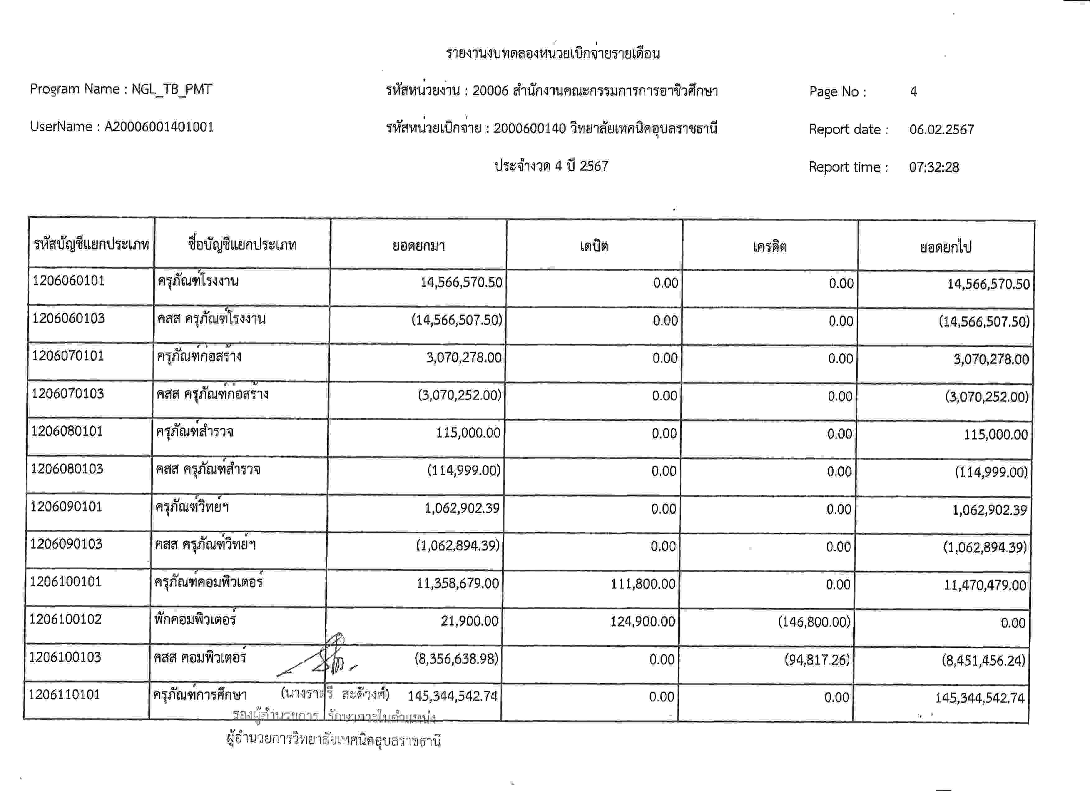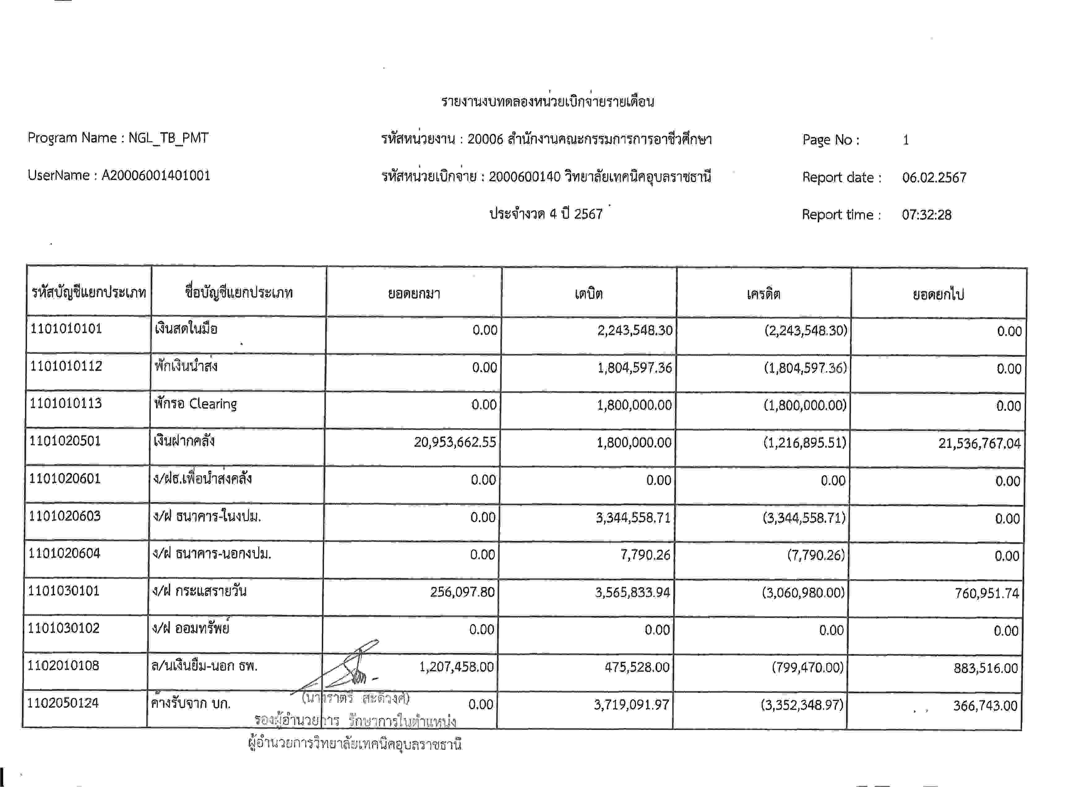 รายงานงบทดลองประจำเดือนมกราคม 2567