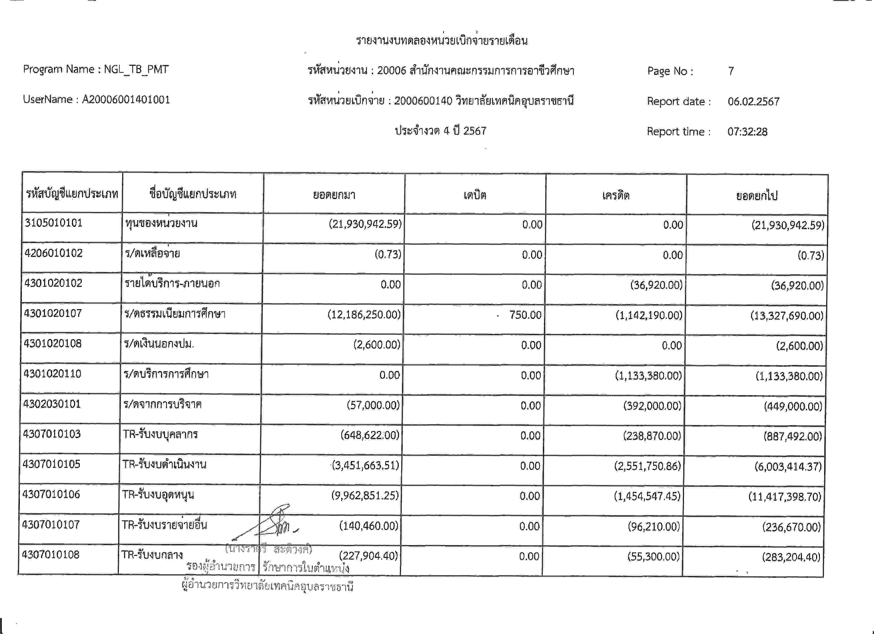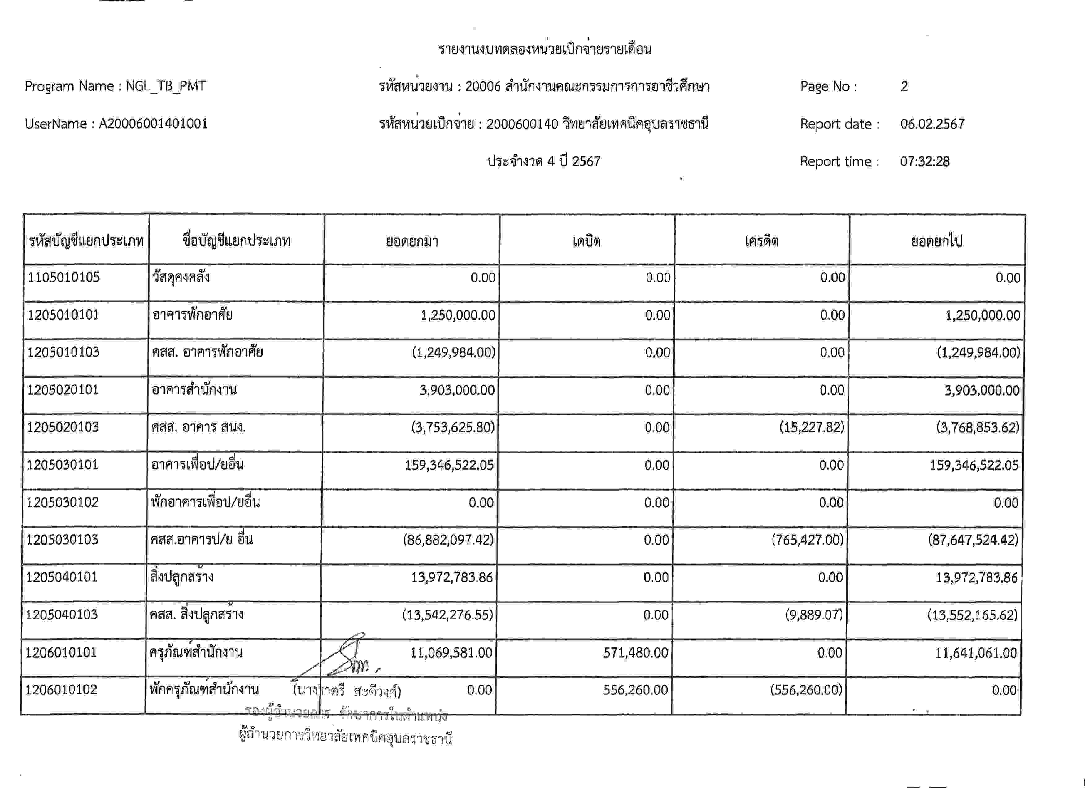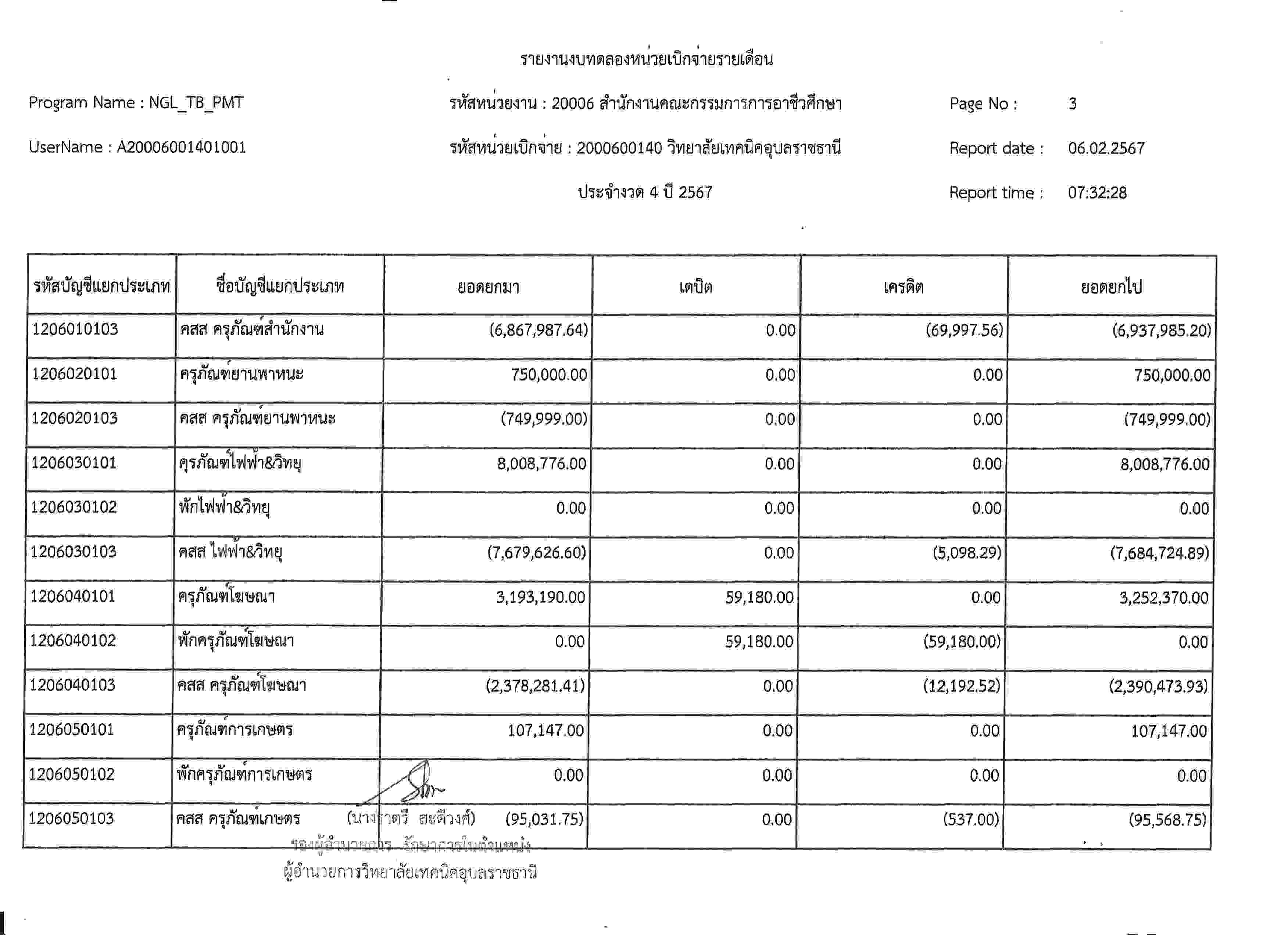 รายงานงบทดลองประจำเดือนมกราคม 2567